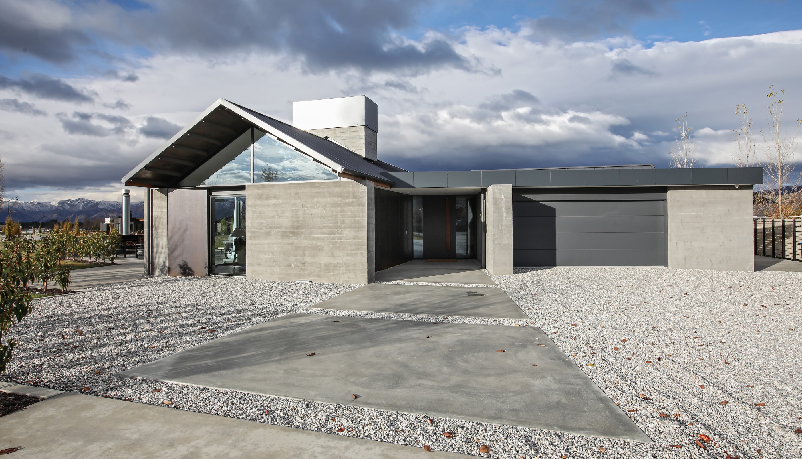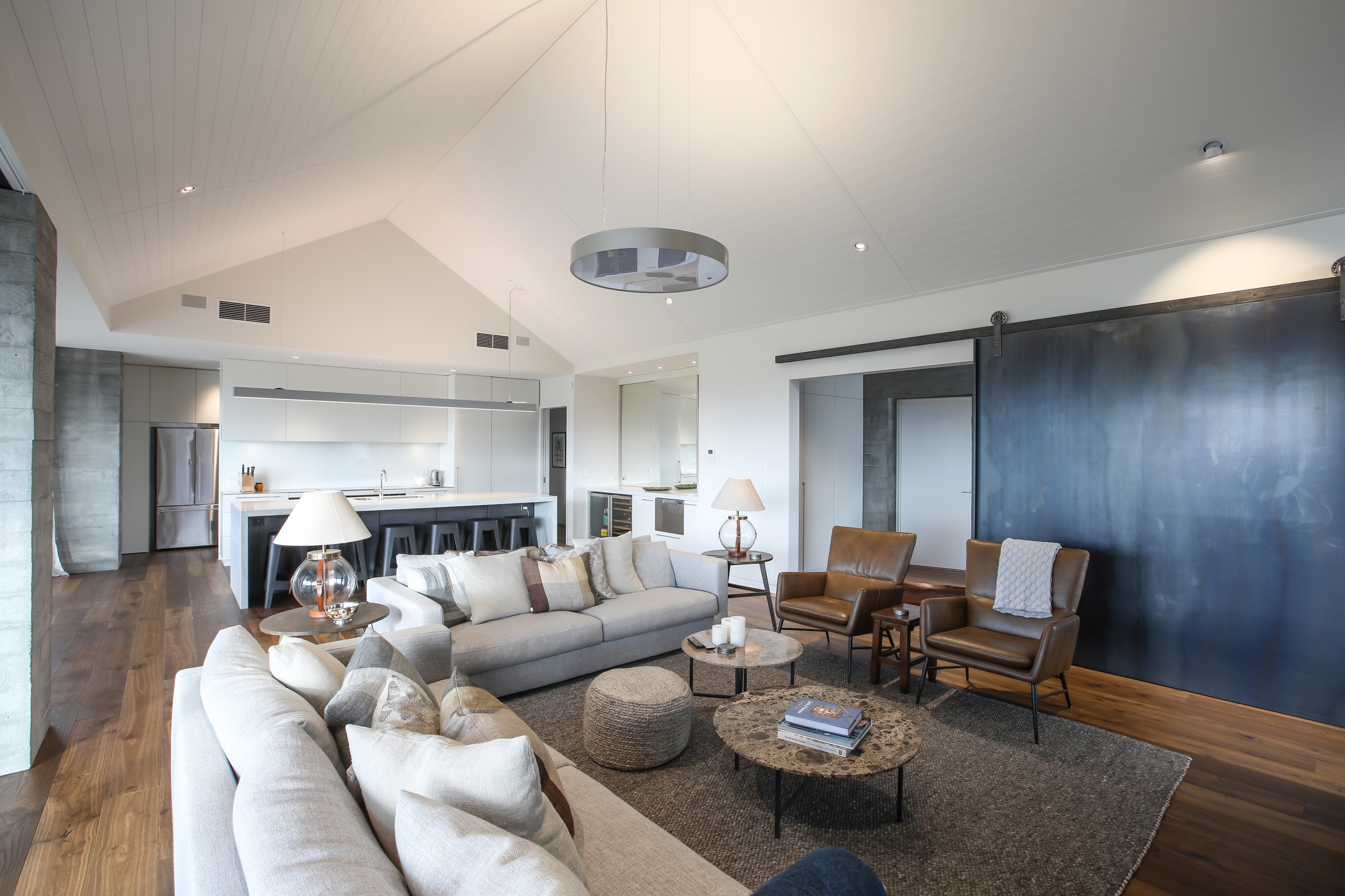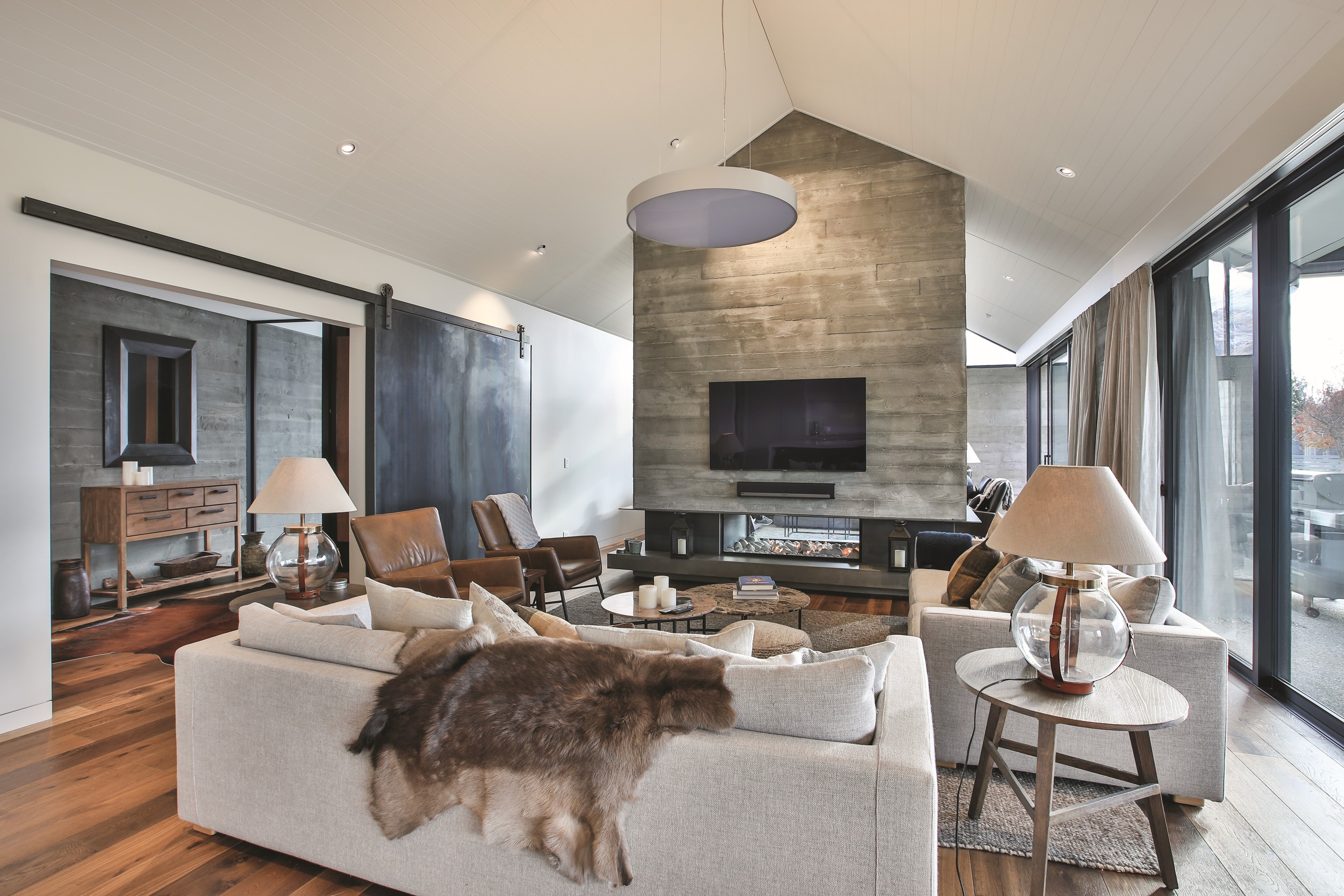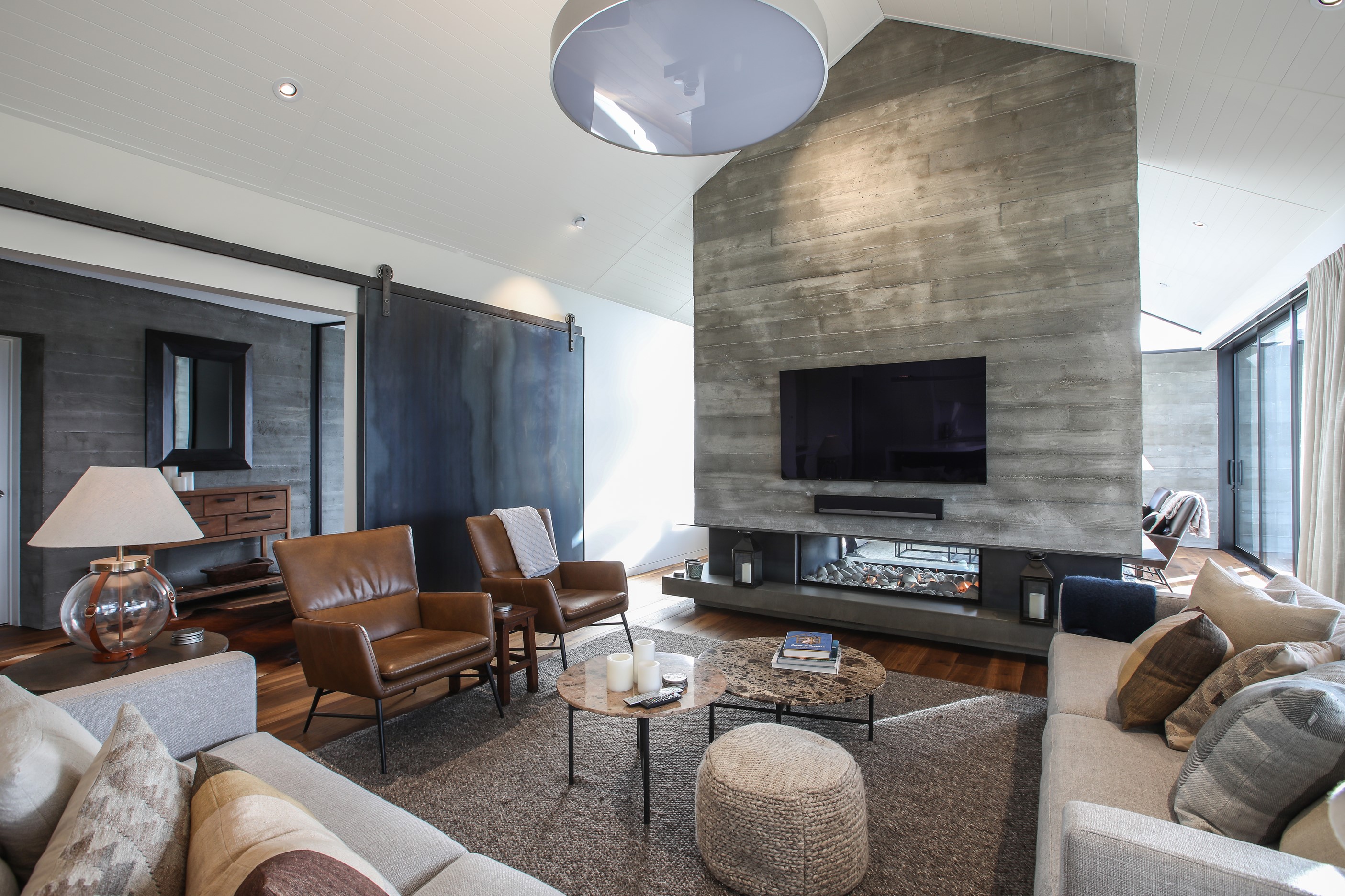 A striking presence. That’s how this bold home in the mountains has been described. Solid raw materials – the likes of steel and concrete – enhance the clean lines of the single-storey exterior, yet also anchor it to the beautiful but sometimes arid natural environment. And this is no small home: in its 391sqm floorplan it has more than five bedrooms that can accommodate up to 14 people. Inside, the aesthetic is softened with the warmth of timber flooring, clever furnishings and shuttered concrete walls that link the inside to the out. Living areas flow into the impressive outdoor area – designed to be used in all weather – and the wide open spaces beyond. The large, well-equipped kitchen, with scullery, is a paradise for entertainers. The cook is never going to miss out on the conversation in this house. There’s also a sense of serenity here, thanks to muted tones, natural materials, and the concrete, which makes a feature of the fireplace and some walls. For all the beauty inside, the home never fails to invite in the scenery of the land it inhabits. Large-scale windows and doors frame the majesty of Central Otago.