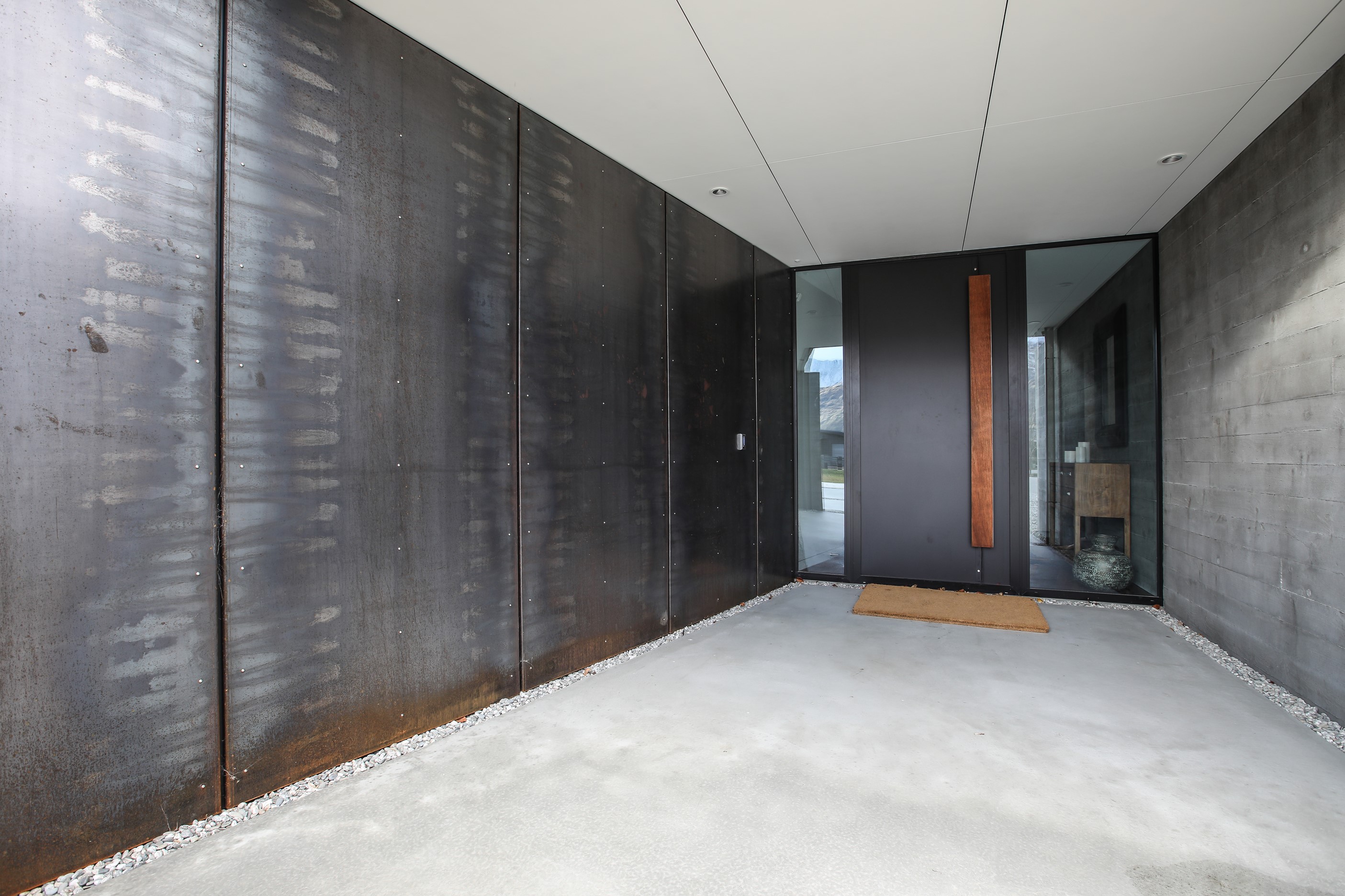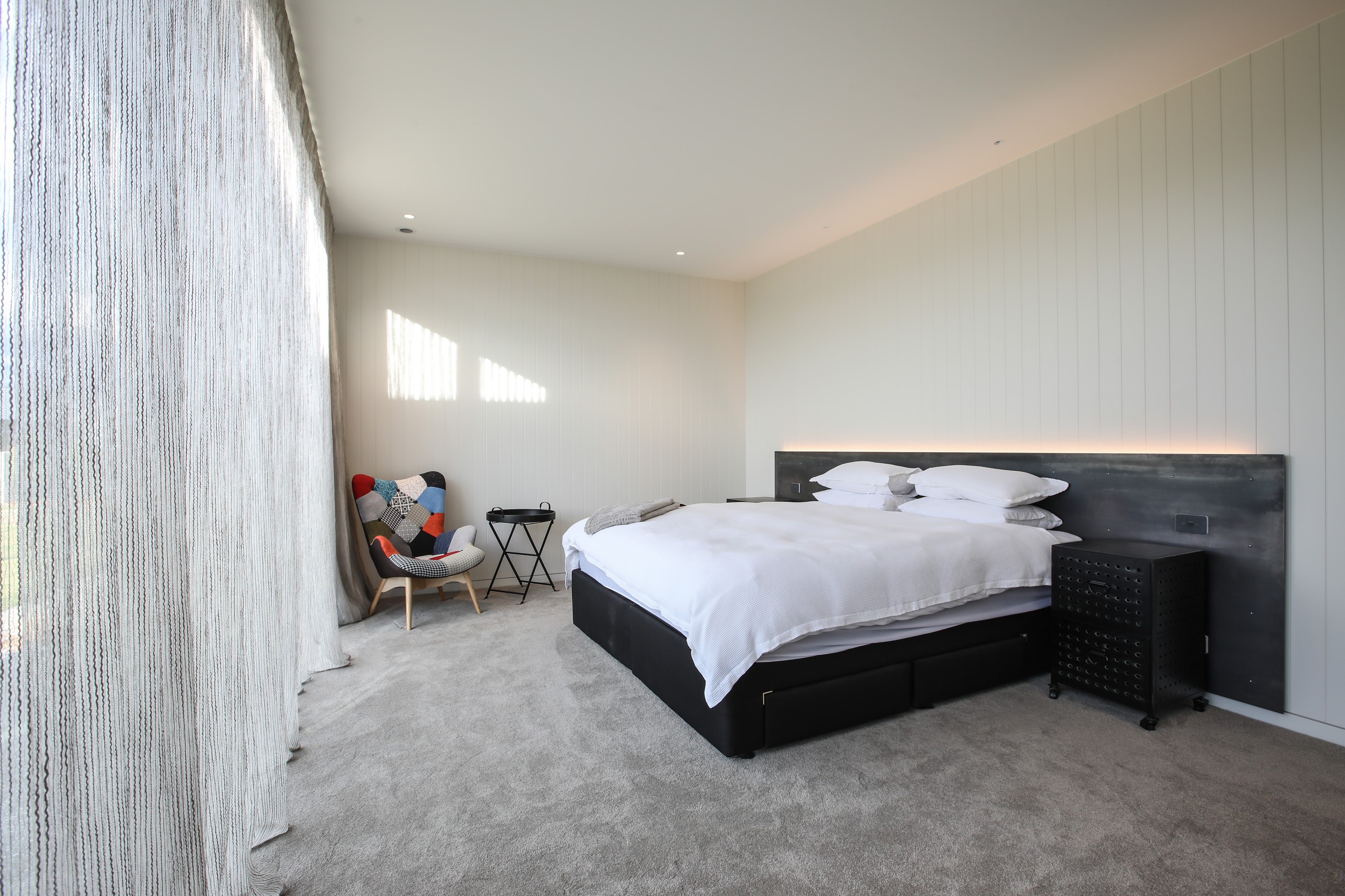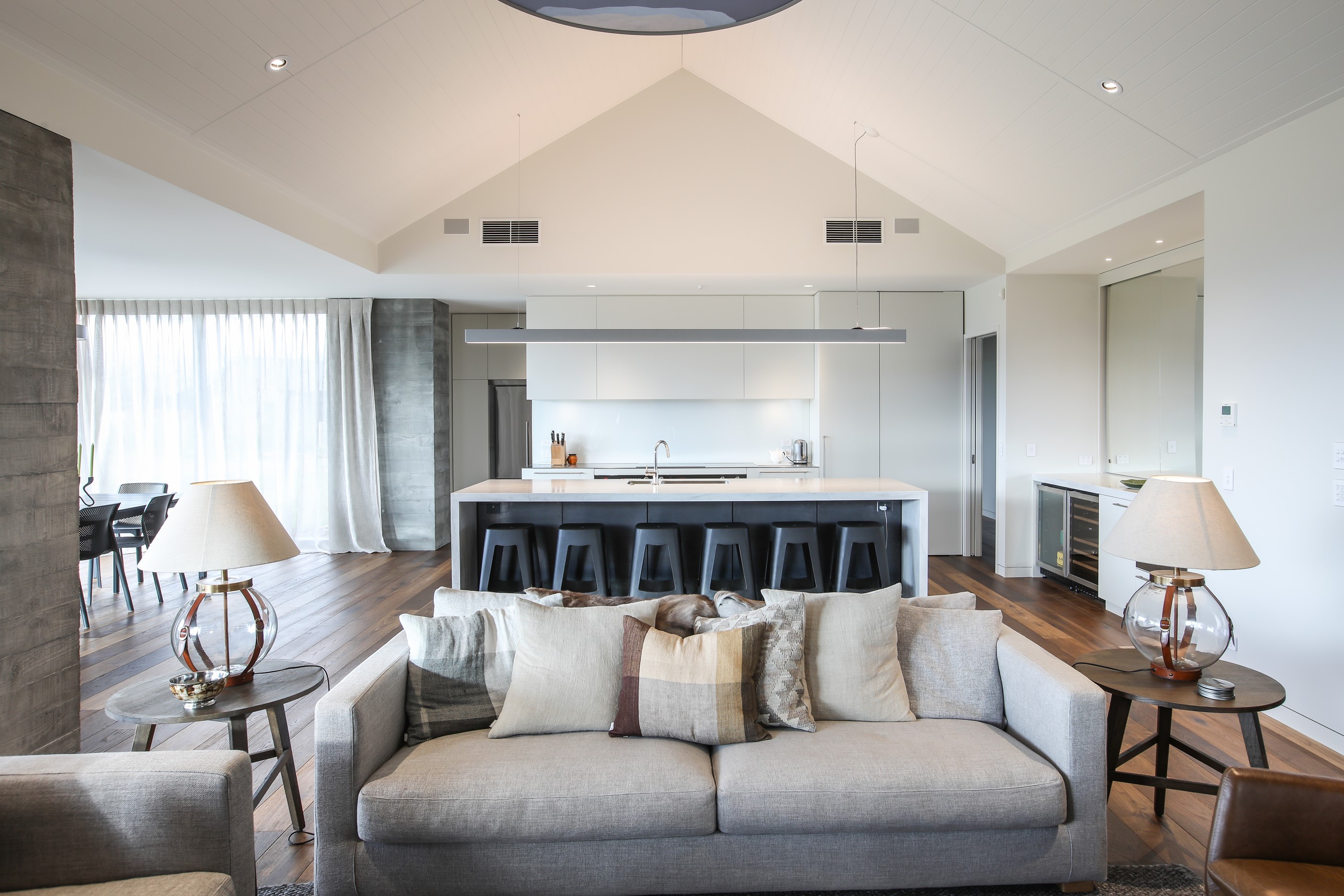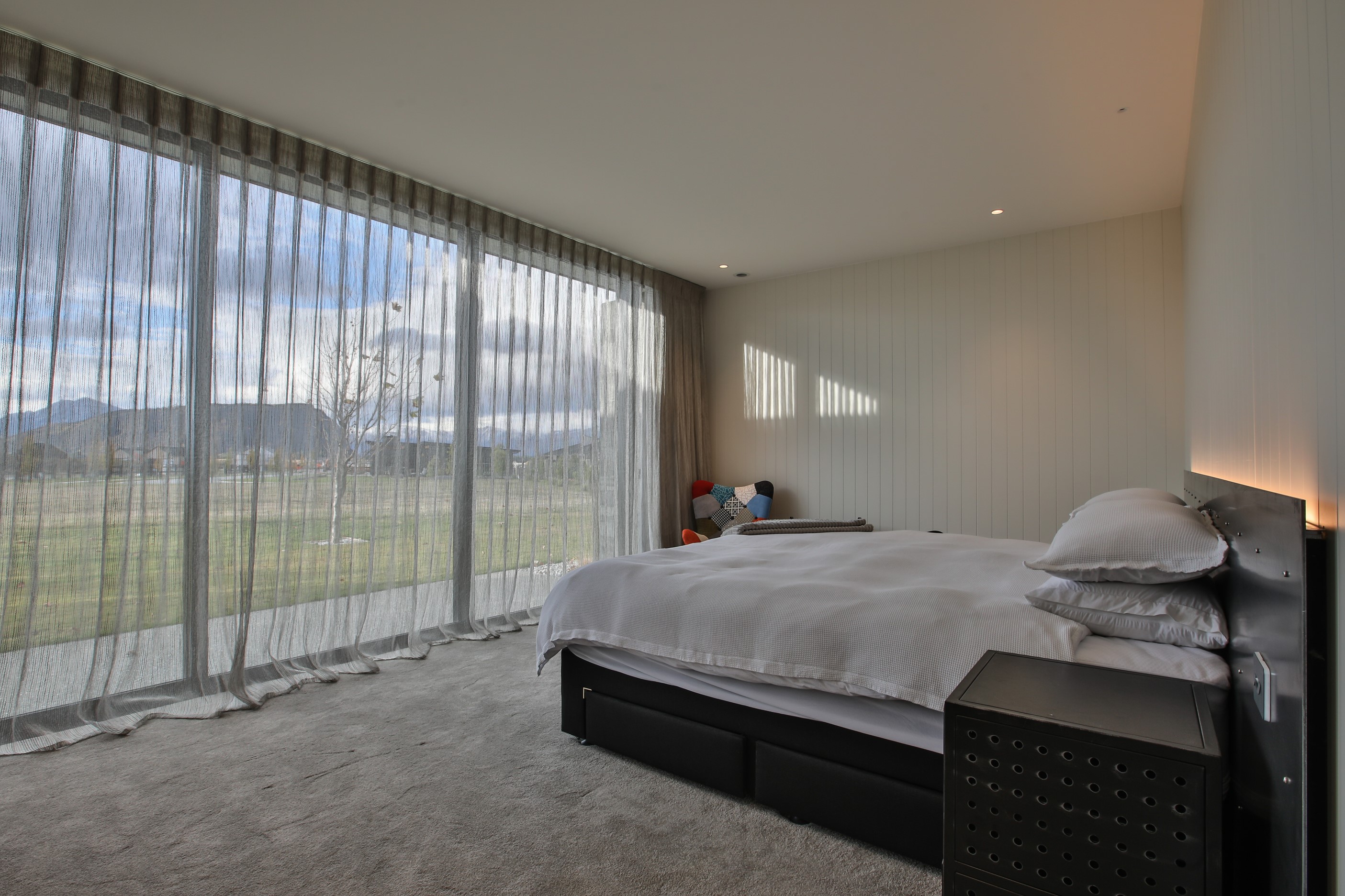 A striking presence. That’s how this bold home in the mountains has been described. Solid raw materials – the likes of steel and concrete – enhance the clean lines of the single-storey exterior, yet also anchor it to the beautiful but sometimes arid natural environment. And this is no small home: in its 391sqm floorplan it has more than five bedrooms that can accommodate up to 14 people. Inside, the aesthetic is softened with the warmth of timber flooring, clever furnishings and shuttered concrete walls that link the inside to the out. Living areas flow into the impressive outdoor area – designed to be used in all weather – and the wide open spaces beyond. The large, well-equipped kitchen, with scullery, is a paradise for entertainers. The cook is never going to miss out on the conversation in this house. There’s also a sense of serenity here, thanks to muted tones, natural materials, and the concrete, which makes a feature of the fireplace and some walls. For all the beauty inside, the home never fails to invite in the scenery of the land it inhabits. Large-scale windows and doors frame the majesty of Central Otago.