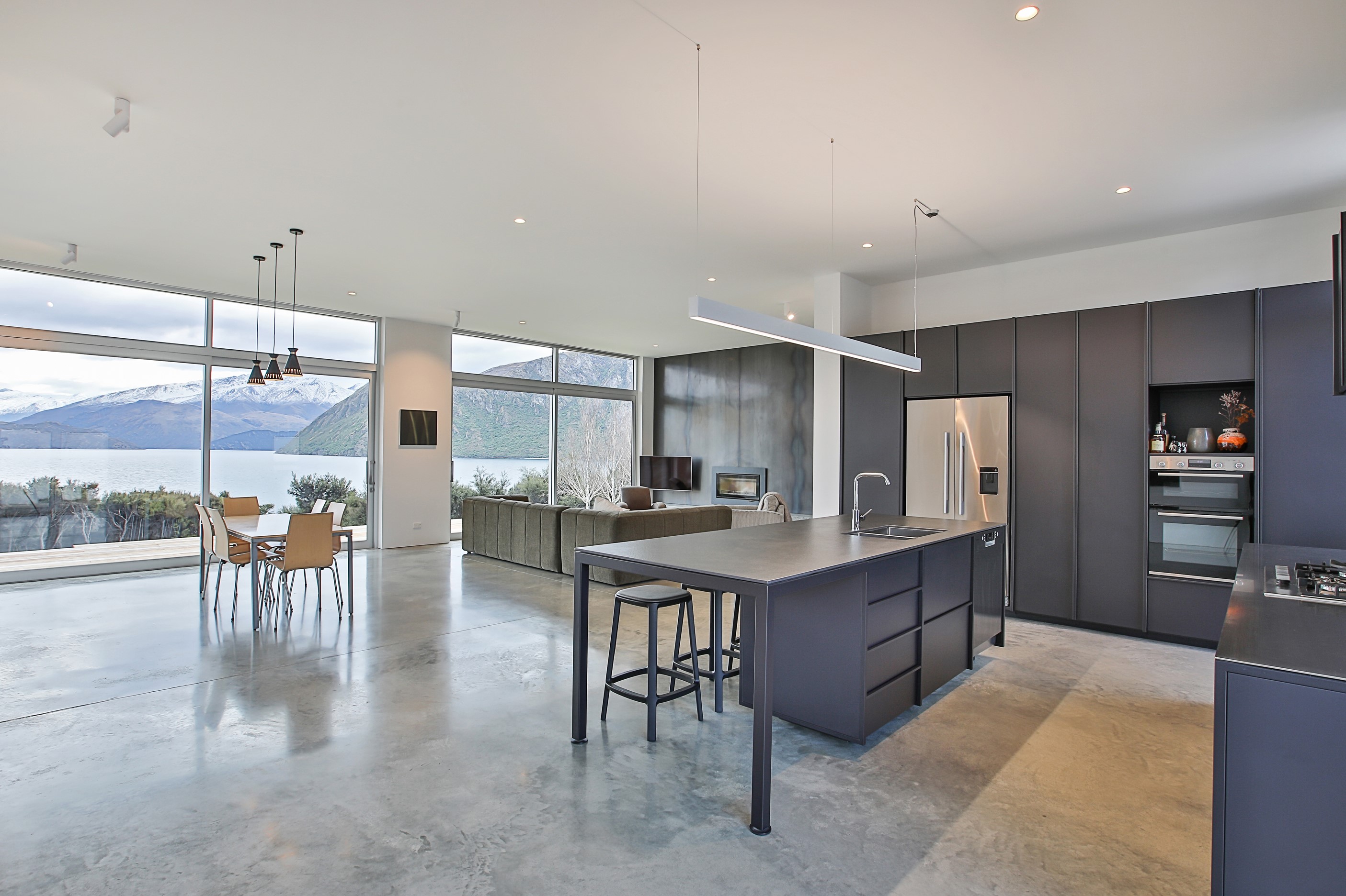 This lovely home above Lake Wānaka has been extended – not that you’d ever know it. The carefully designed and executed addition has been seamlessly melded into the original property so it looks as if it has always sat in its prime, elevated position. New to the house is a spacious open-plan kitchen and living area with floor-to-ceiling glass that frames the stunning views of the lake and snow-dusted mountains. Also added is a new main bedroom suite, with a bathroom and walk-in wardrobe. The old deck, which was 60sqm, was demolished to accommodate 120sqm of new decking. The residence itself has been boosted in size from 108sqm to a more comfortable 165sqm. External cladding of vertical cedar, stone and plaster, plus metal fascias, match the extension to the house and let it sit naturally in its environment. New life has been breathed into this cherished family home that honours the original dwelling and land. The builders have produced a natural, comfortable, functional and beautiful extension that will be enjoyed by the owners for many years to come.