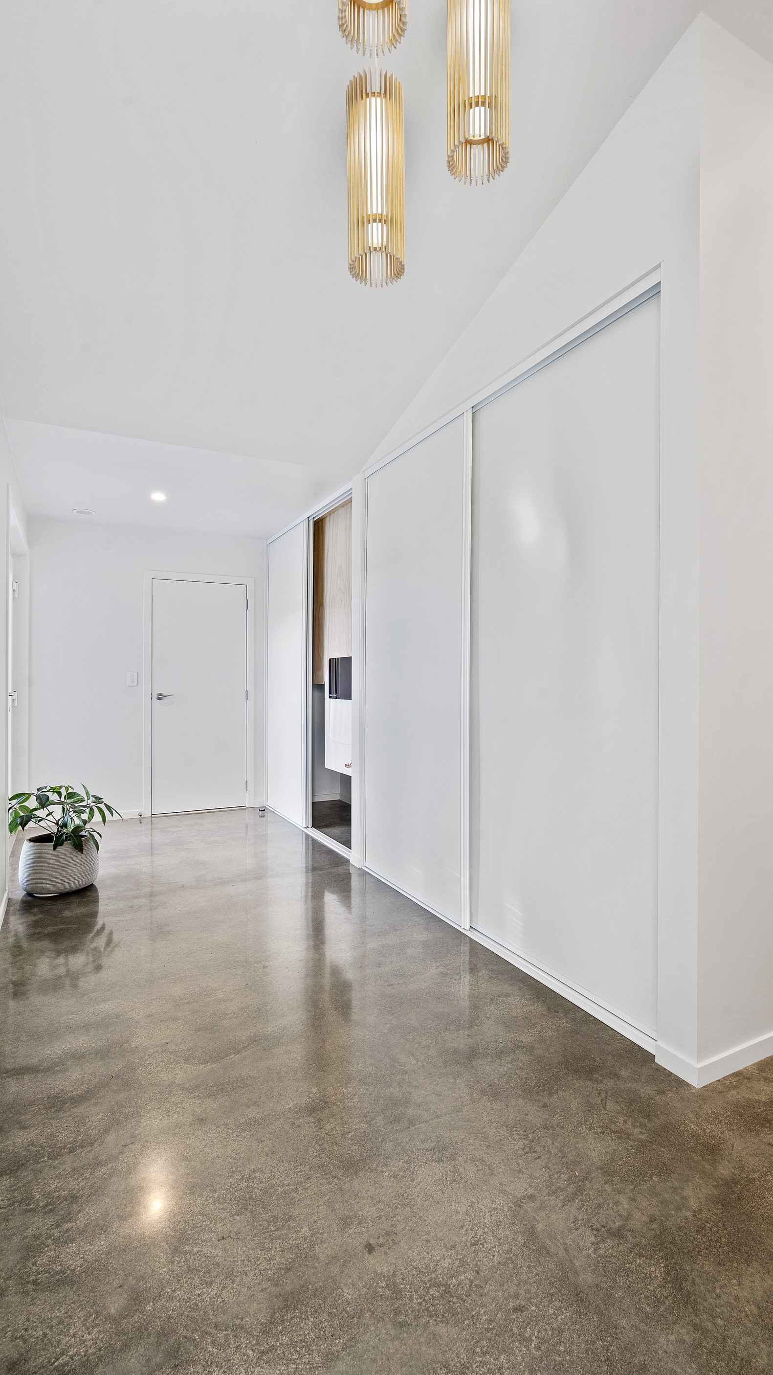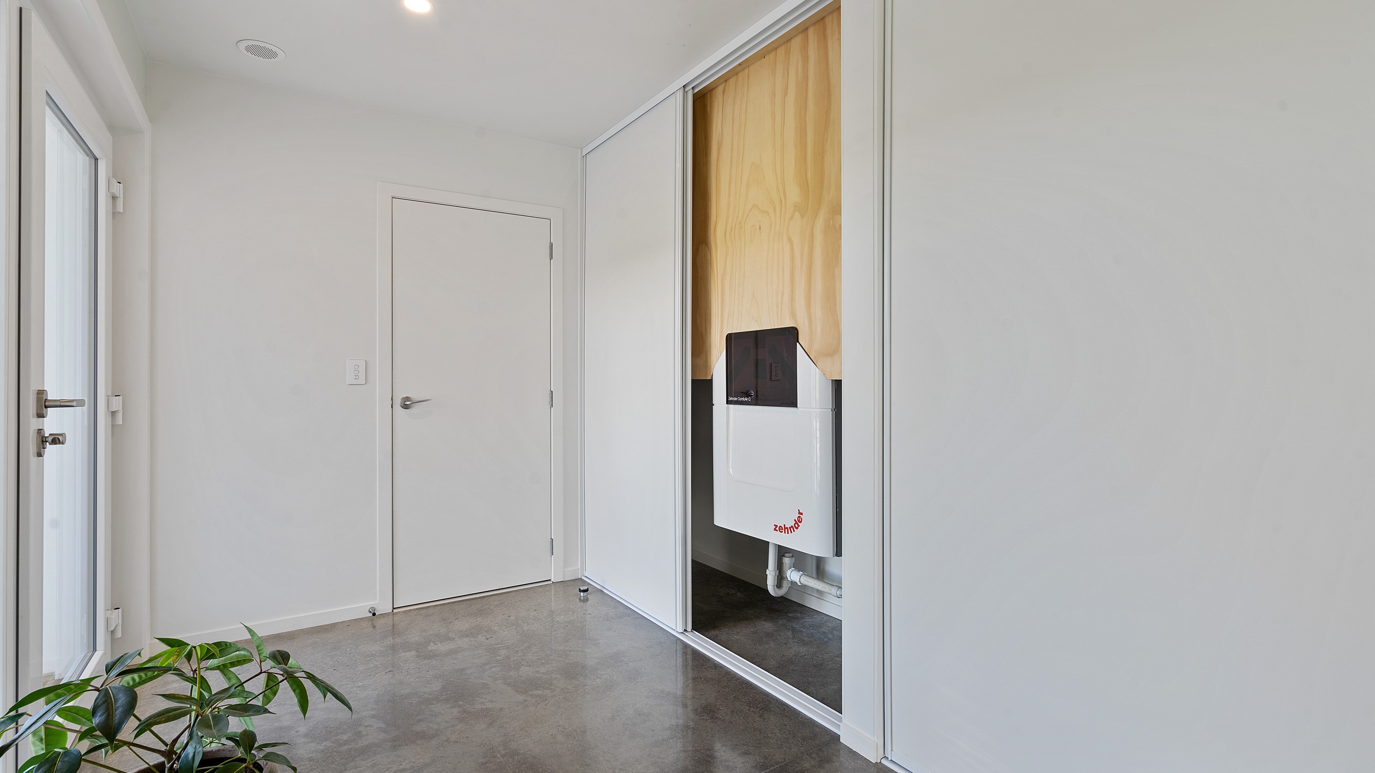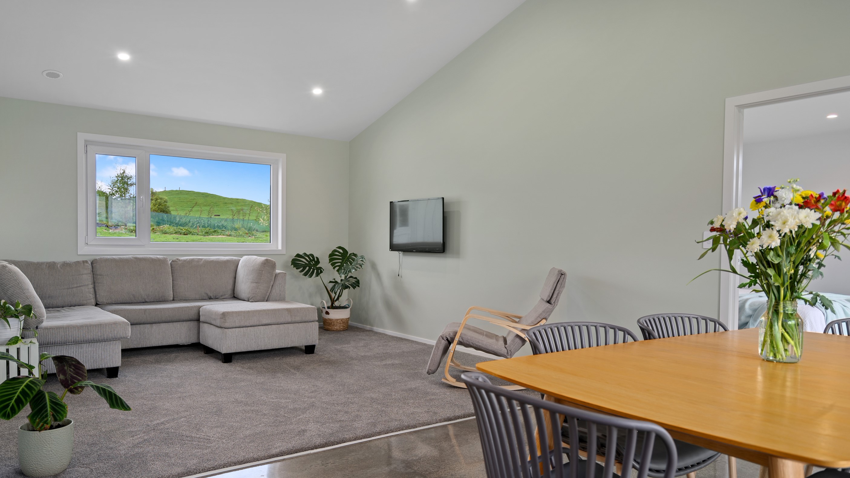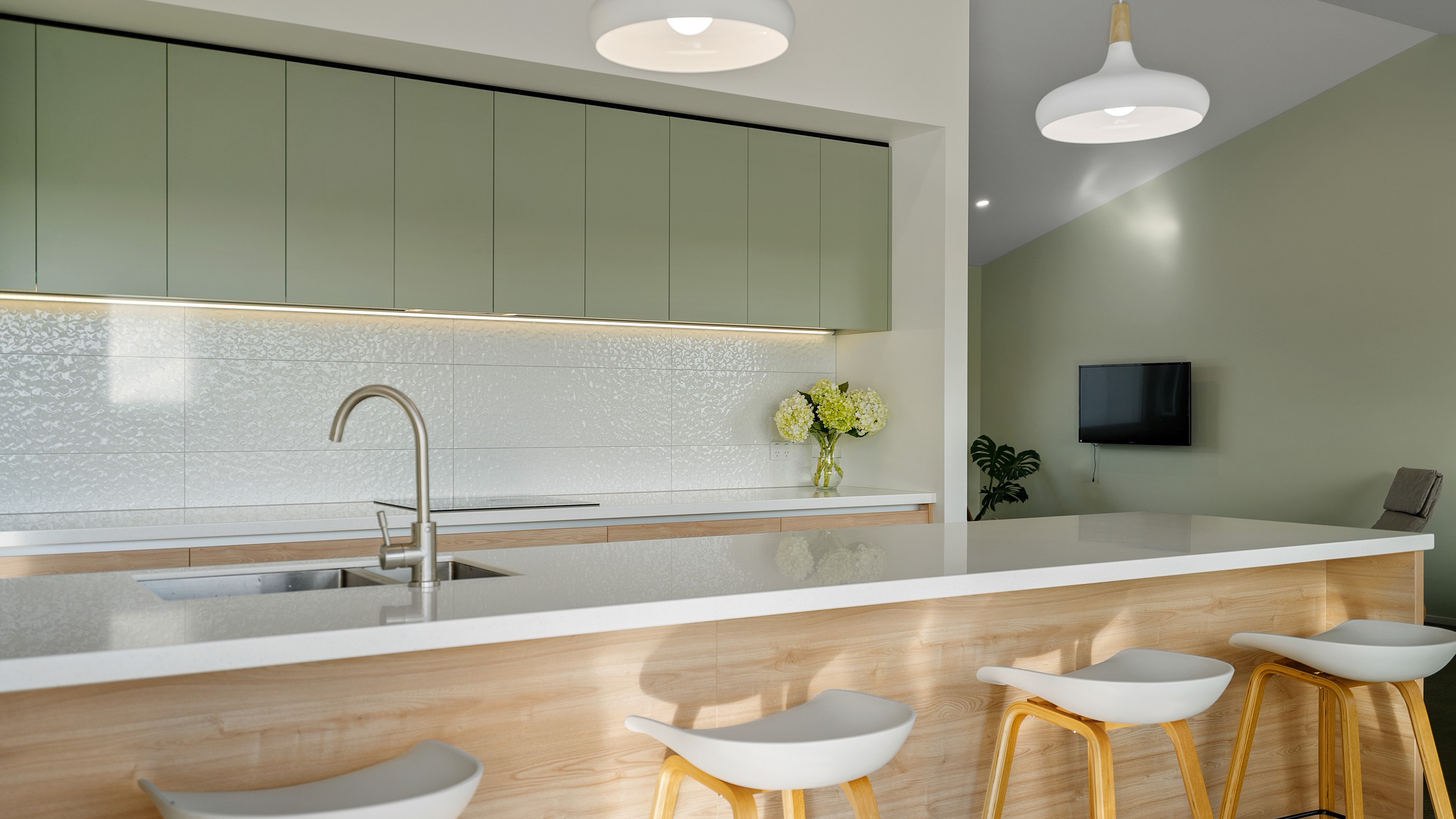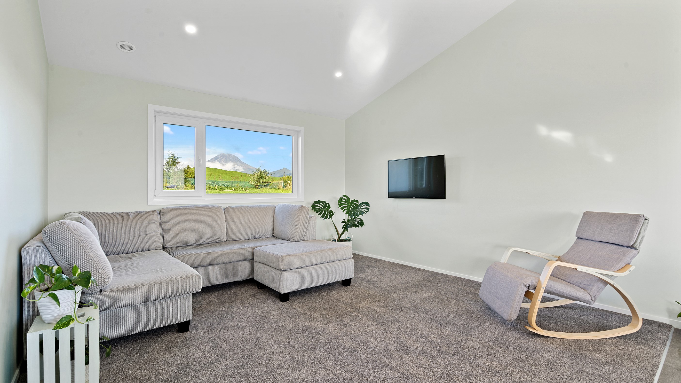 With a backdrop of rolling green hills and tranquil countryside, this four-bedroom, two-bathroom rural home is perfectly positioned for a young family. The design, with a 200sqm footprint, has been cleverly thought out to minimise wasted space and maximise family harmony. High-raking ceilings combine with open-plan living and large windows to create a sense of space and light. The living area opens out to a portico for all-weather entertaining. Meeting the internationally recognised Passive House standard, the home delivers comfort, health and energy efficiency to the occupants. The heat recovery ventilation system works quietly in the background, allowing for a constant supply of fresh air. In addition, uPVC joinery adds to the energy efficiency of the home, while enhancing the cottage-vibe aesthetic. Outside, white board-and-batten cladding with natural detailing and a gabled portico give a nod to Mount Taranaki sitting majestically in the background. With an orchard and edible gardens, the homeowners can enjoy healthy eating and time outdoors.