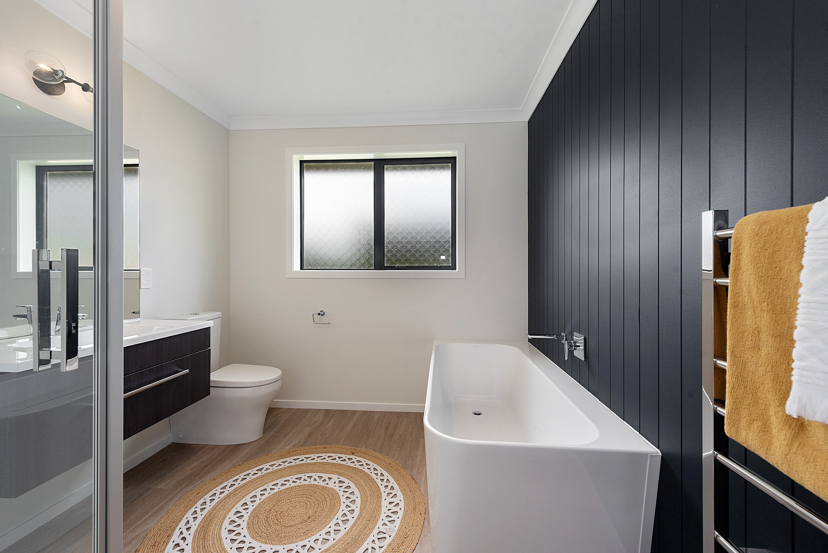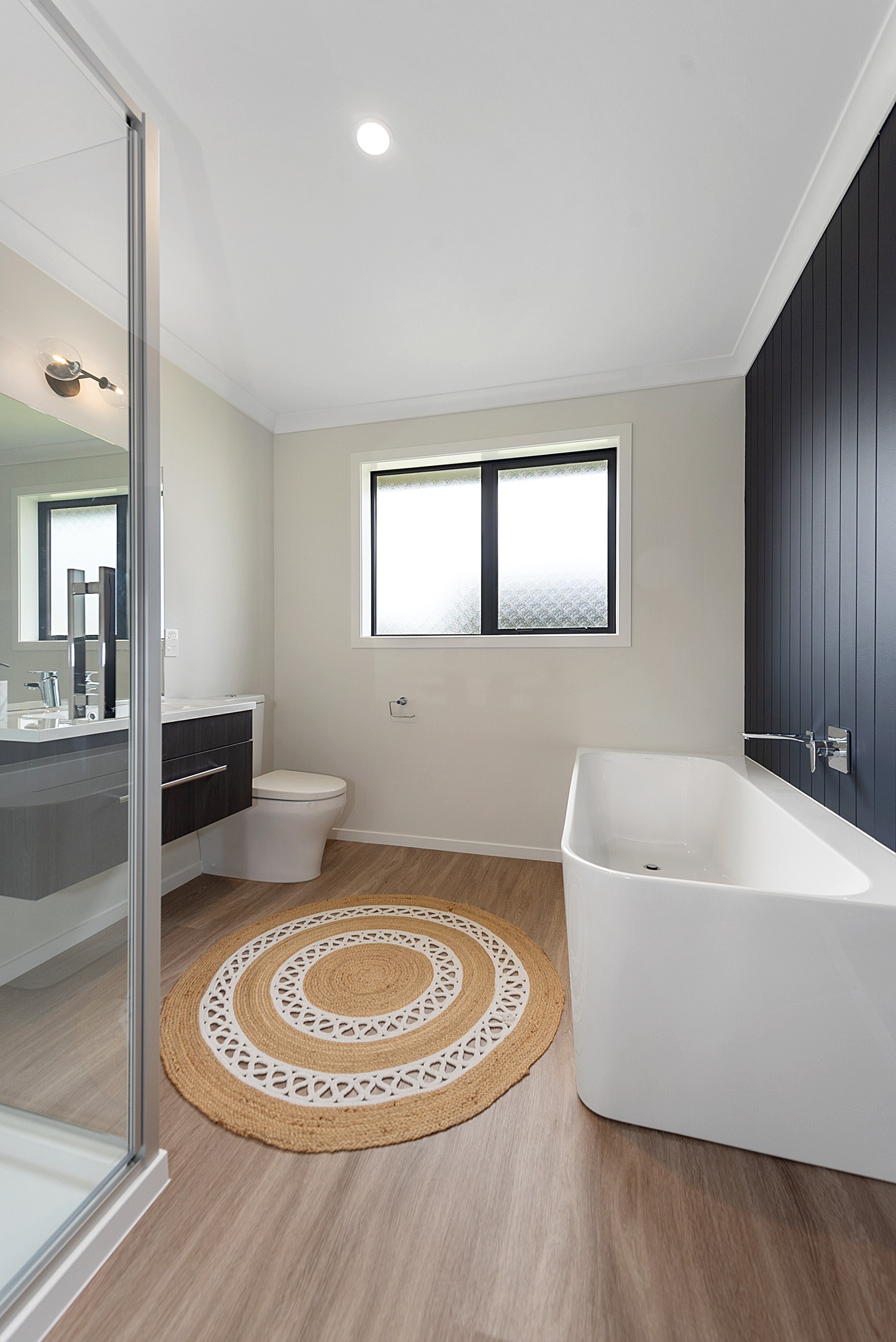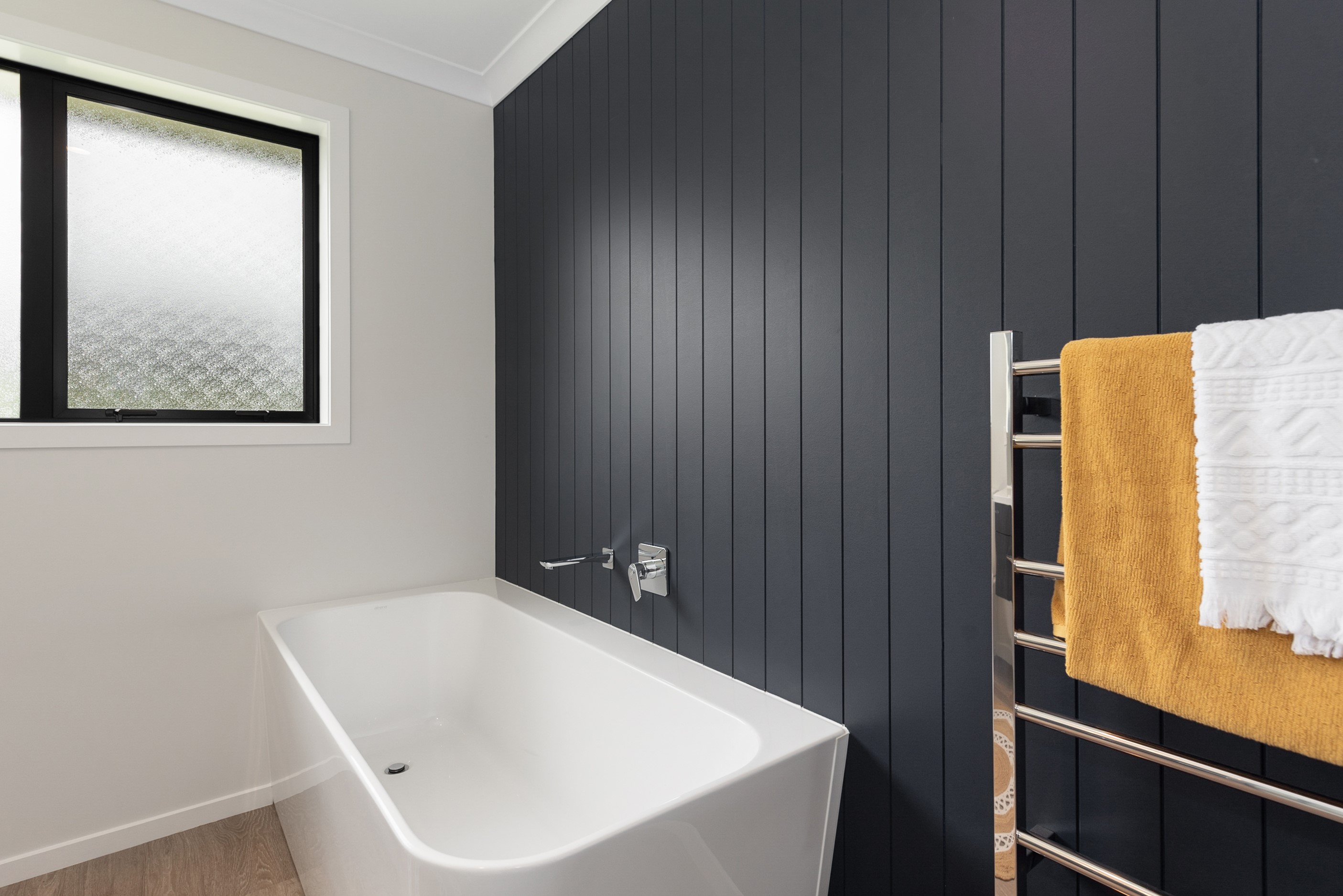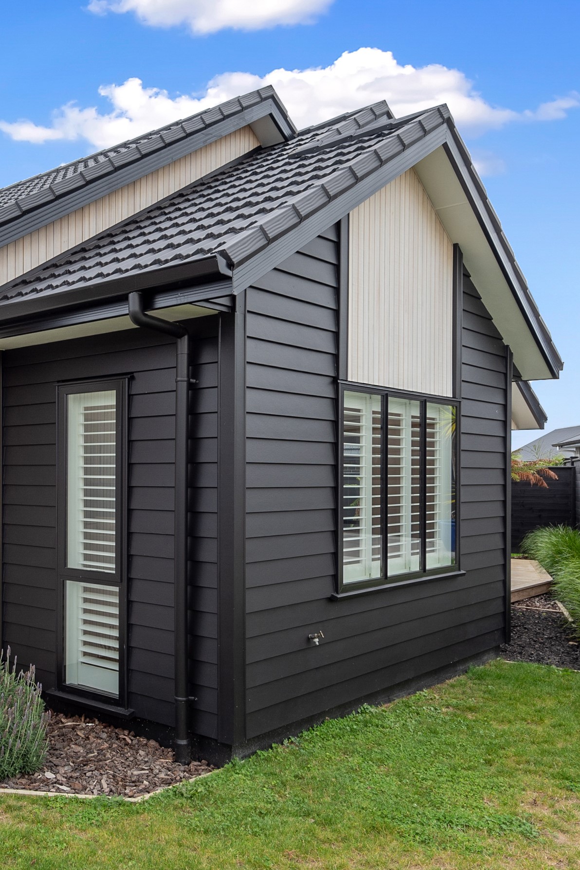 If you’re looking for a family home that makes a striking first impression, here’s a cracking example. A range of textures on the exterior create a look that’s classic yet cutting-edge, dark and brooding yet immediately appealing. It’s the combination of Linea weatherboards and vertical timber that does the trick. Swish as it looks, this is also a tailor-made family home, with a 180sqm floorplan, four spacious bedrooms and two bathrooms, including an ensuite in the main bedroom. The contemporary layout comes with an open-plan kitchen (and walk-in pantry), dining and living areas. In the dining zone, a built-in window seat has been included to make the most of the relaxing space. Vertical tongue-and-groove-style wall linings have been strategically positioned throughout the interior to add texture and visual interest. The palette is subtle and easy on the eye, but the addition of colour in key areas, such as green in the bedrooms, introduces personality. Indoor-outdoor flow? For seamless, sumptuous living, pour a glass of wine, slide open the doors from the living zone and step out onto expansive decks.
