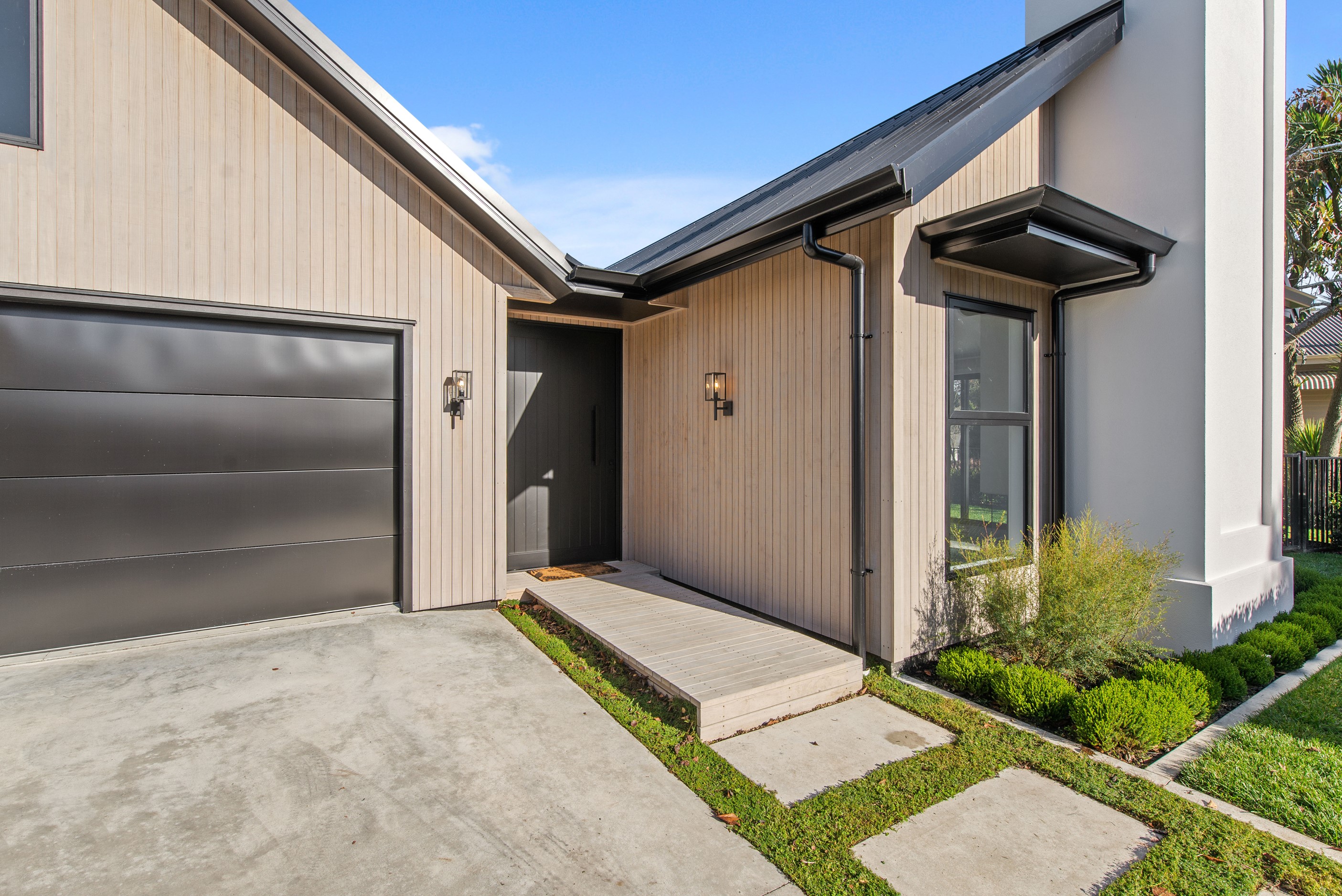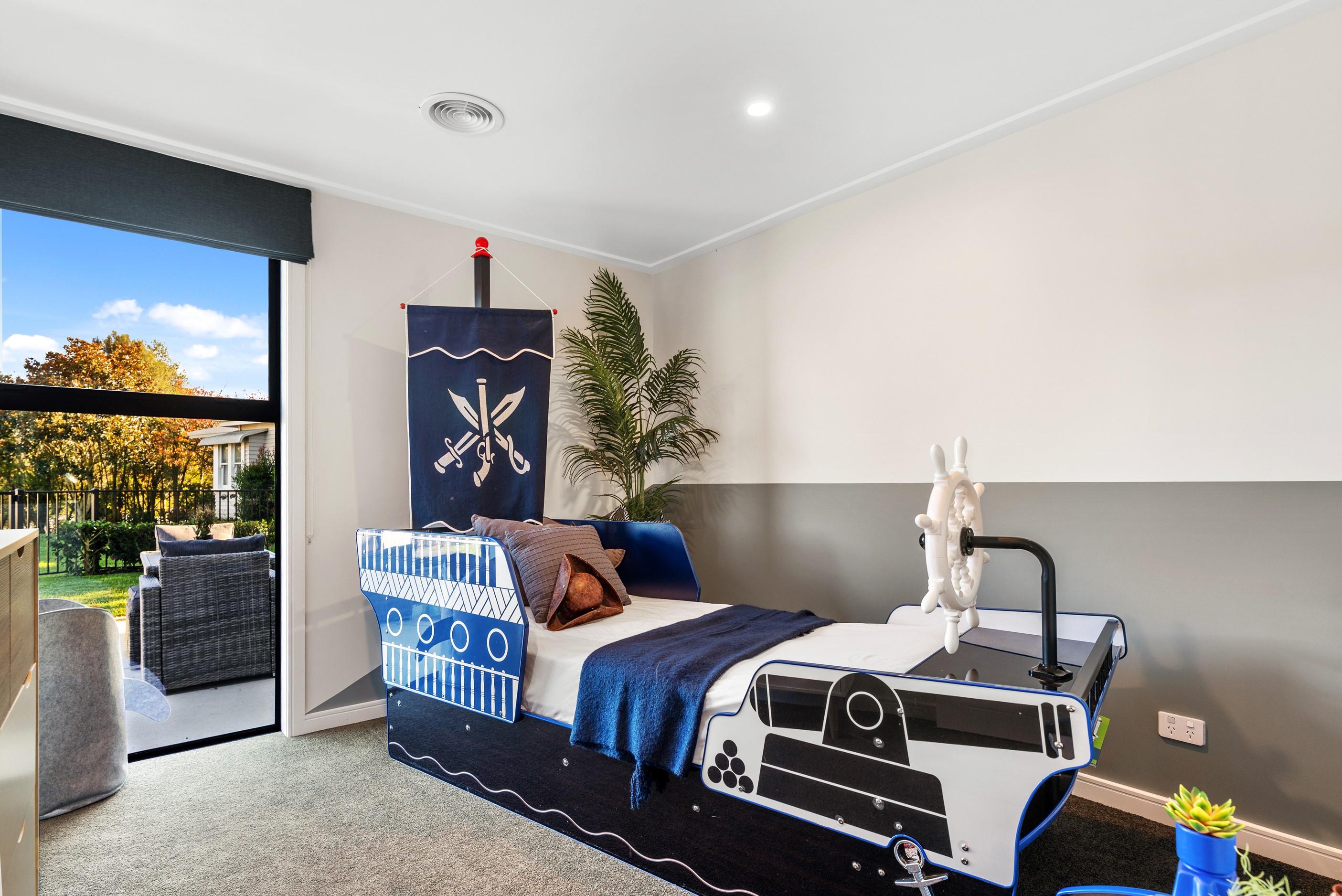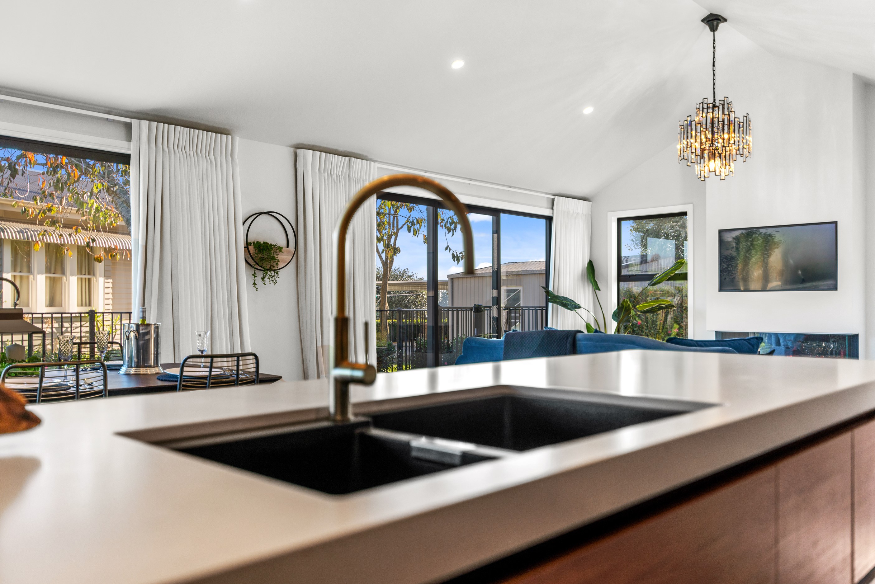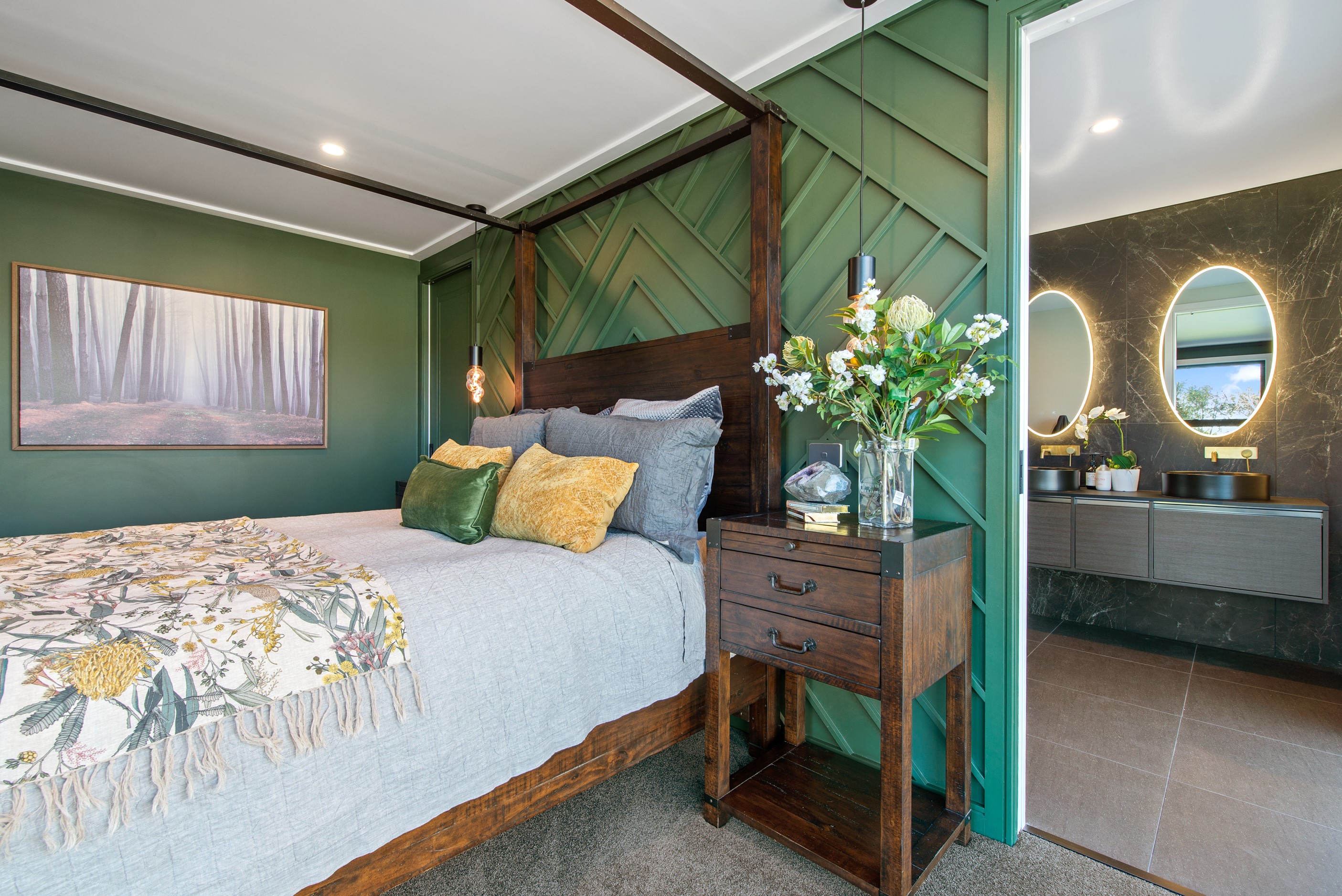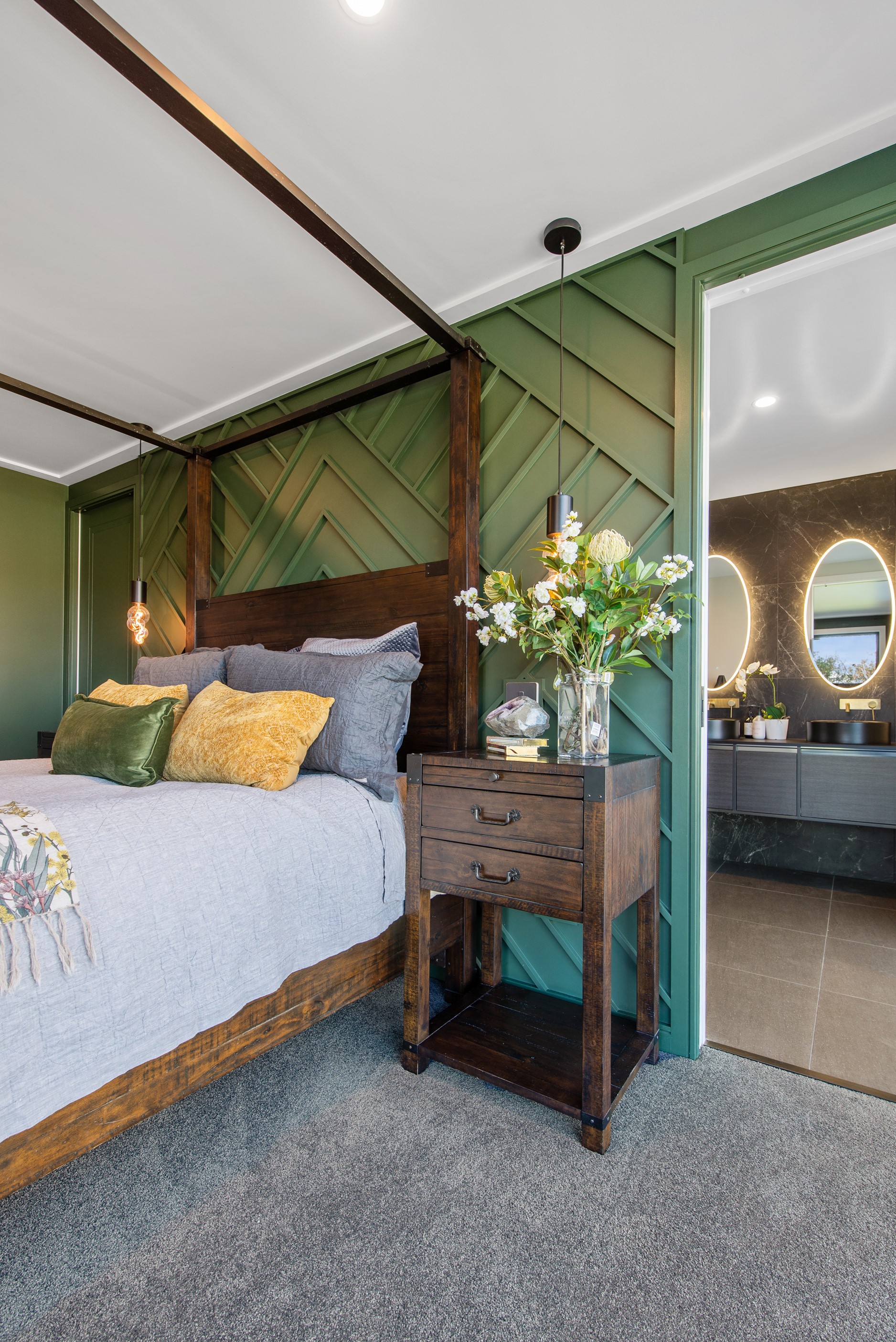 This home is not the largest in its neighbourhood, but it doesn’t want for anything. For a start, it oozes timeless appeal – it’s the kind of property that doesn’t date. Within its 201sqm footprint, there are four bedrooms. The main suite has a walk-in wardrobe and ensuite with a double vanity. This and the family bathroom are both tiled and full of design features. Black fittings and fixtures, including the basins and bath, give the rooms a stylish edge. The kitchen’s moody and woody tones are complemented by a tiled splashback, feature lighting over the island and a spacious scullery with a sliding barn door. Pitched ceilings made with scissor trusses give the kitchen, dining and living zone a real sense of openness and space. From here, doors open onto a wide deck that’s ideal for family barbecues. You’ll find feature walls throughout the home – in the main bedroom, bathrooms, a child’s room and entrance. On the outside, vertical shiplap is teamed with coloursteel roofing, fascia and spouting. The overall effect is of simple, classic style that will last a lifetime. What’s not to love about this house?