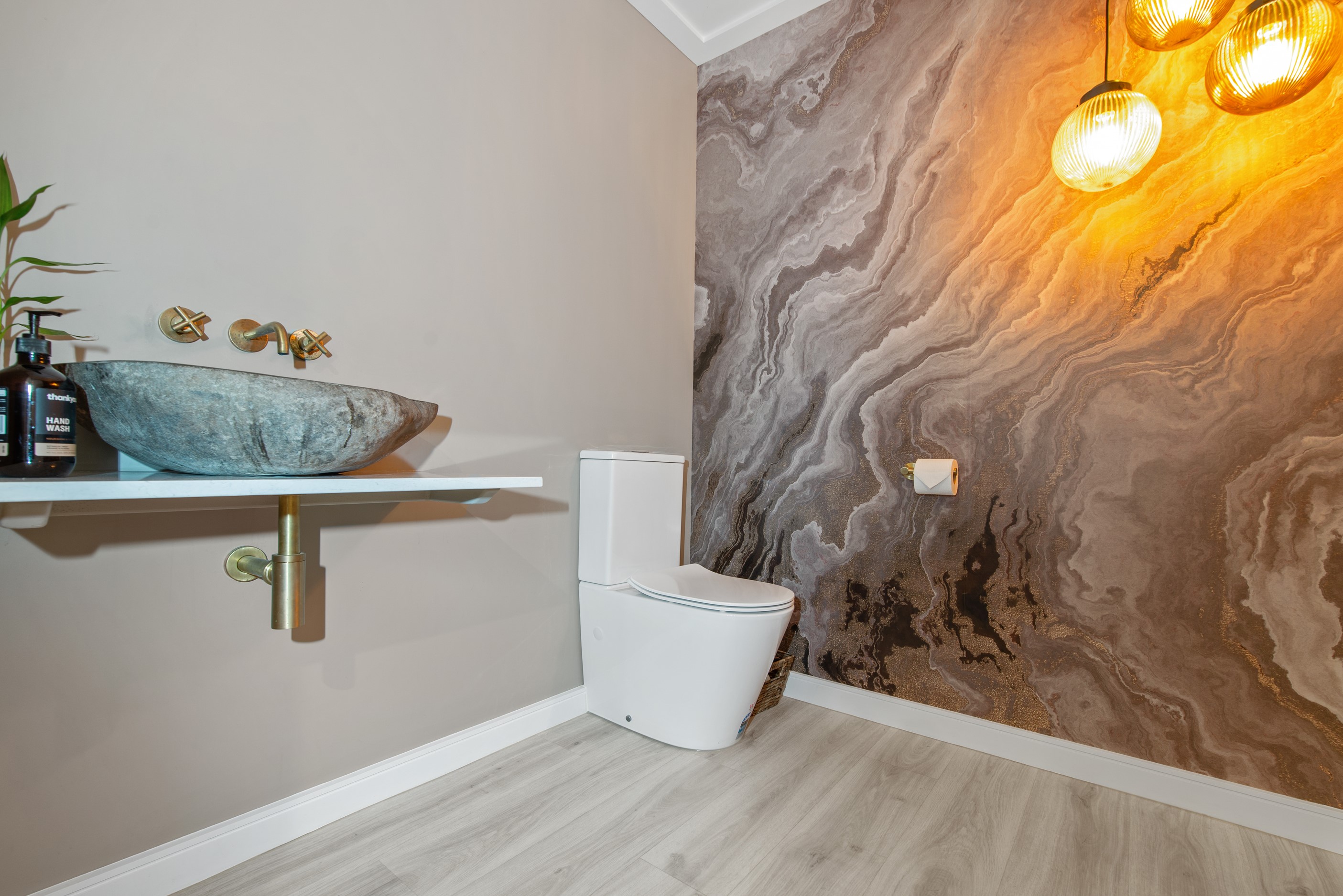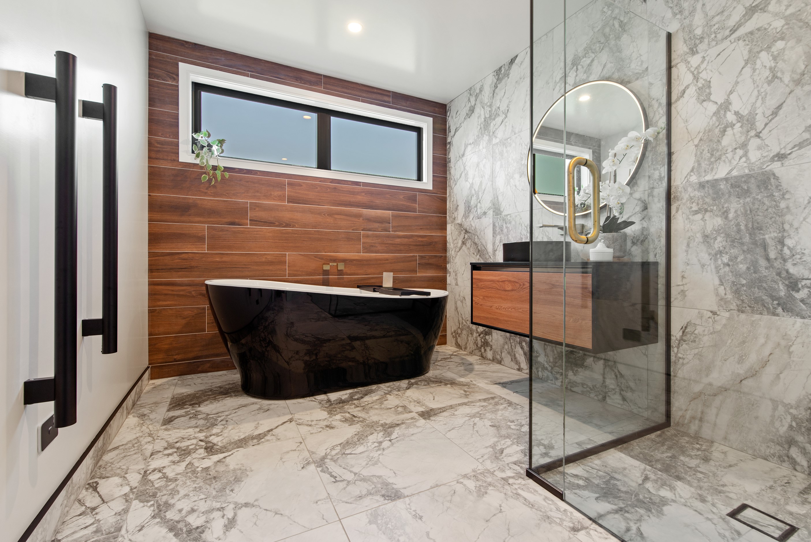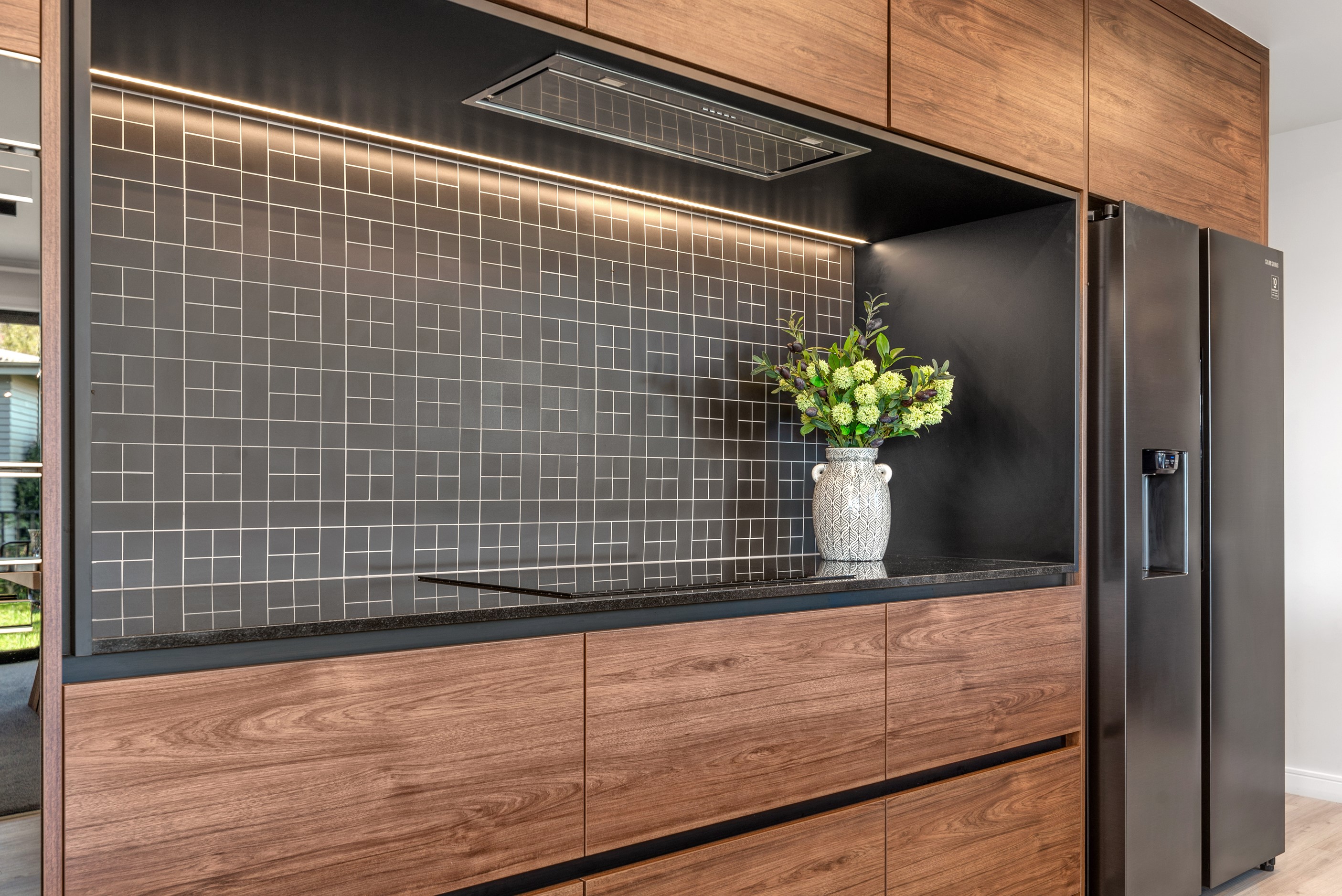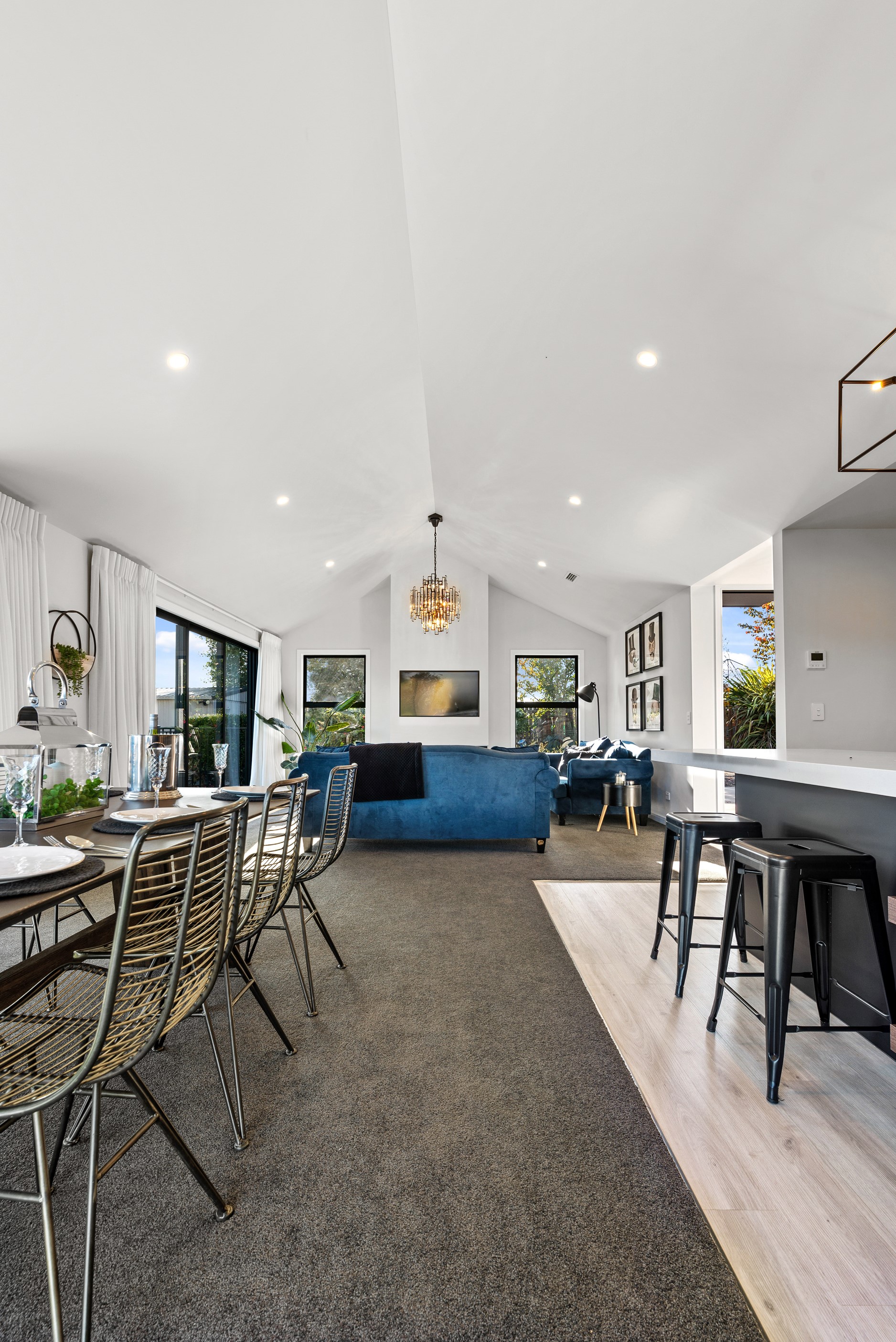This home is not the largest in its neighbourhood, but it doesn’t want for anything. For a start, it oozes timeless appeal – it’s the kind of property that doesn’t date. Within its 201sqm footprint, there are four bedrooms. The main suite has a walk-in wardrobe and ensuite with a double vanity. This and the family bathroom are both tiled and full of design features. Black fittings and fixtures, including the basins and bath, give the rooms a stylish edge. The kitchen’s moody and woody tones are complemented by a tiled splashback, feature lighting over the island and a spacious scullery with a sliding barn door. Pitched ceilings made with scissor trusses give the kitchen, dining and living zone a real sense of openness and space. From here, doors open onto a wide deck that’s ideal for family barbecues. You’ll find feature walls throughout the home – in the main bedroom, bathrooms, a child’s room and entrance. On the outside, vertical shiplap is teamed with coloursteel roofing, fascia and spouting. The overall effect is of simple, classic style that will last a lifetime. What’s not to love about this house?