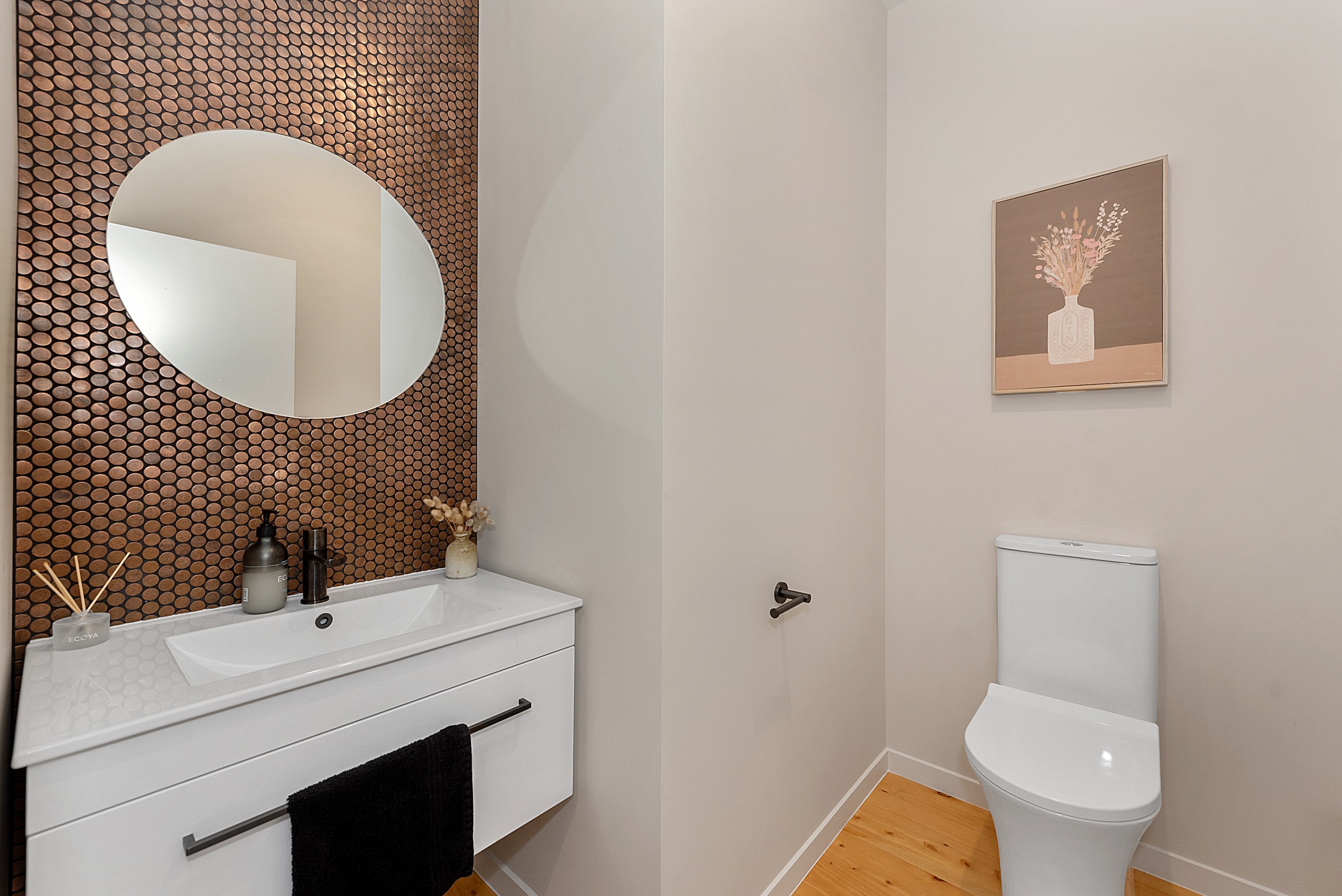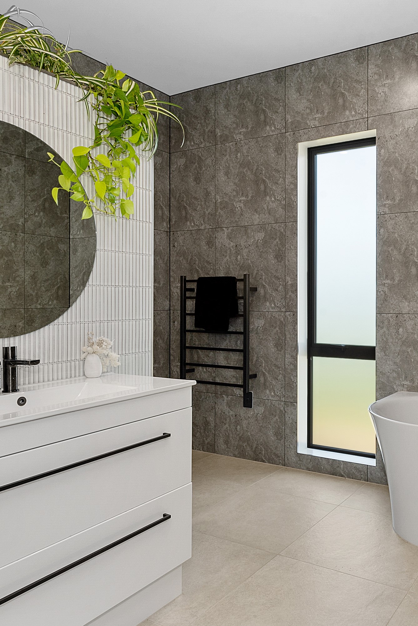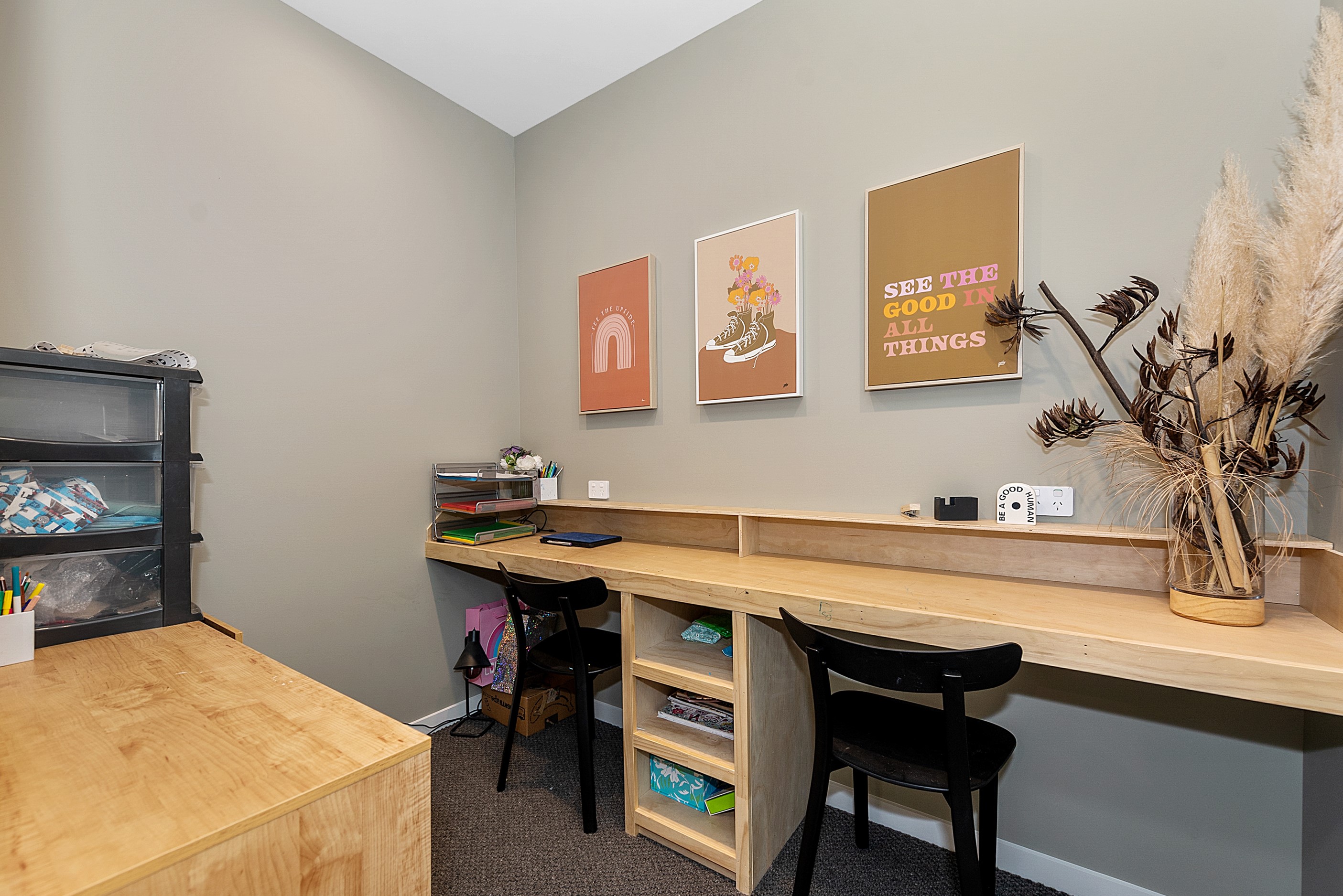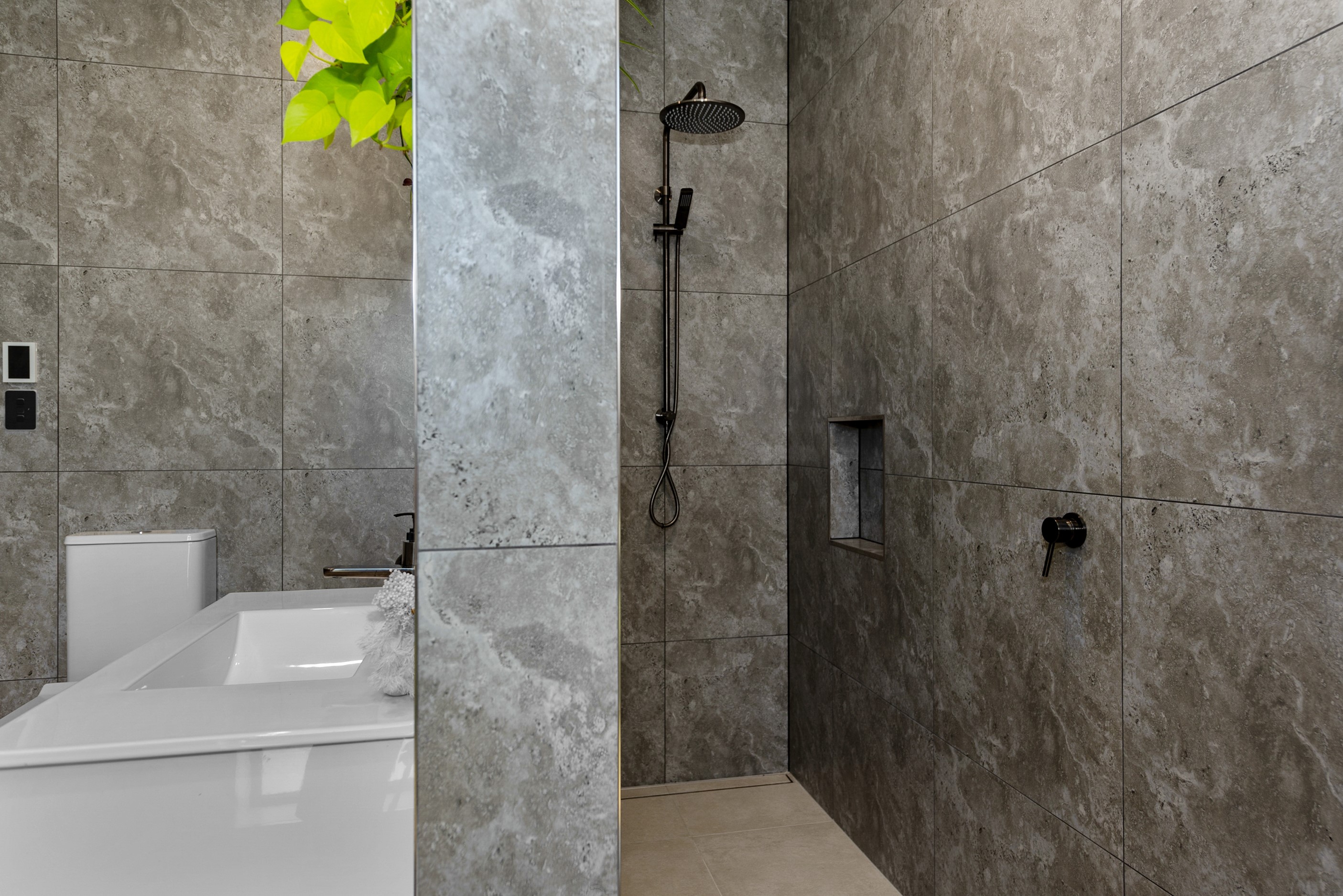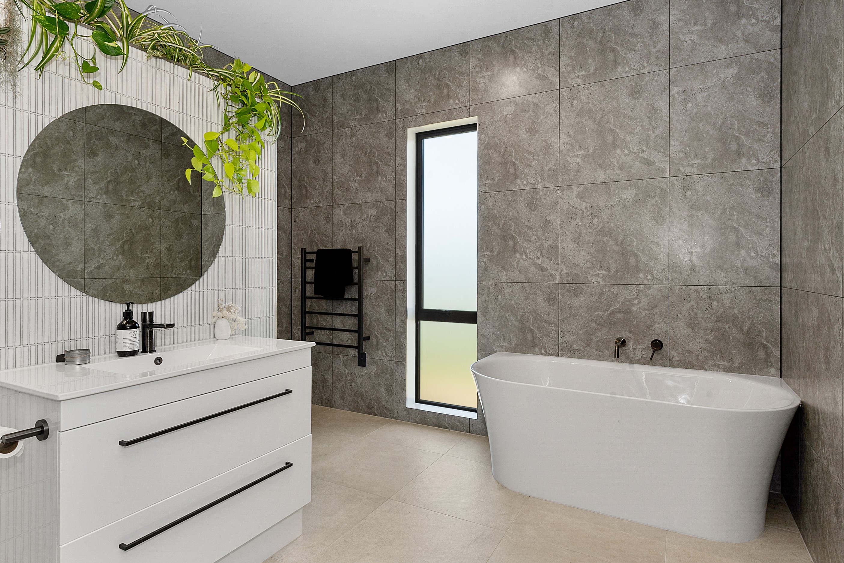 The design for this distinctive brick U-shaped house started with the outdoor lounge. Once this space was given centre stage, the big open-plan kitchen/dining/living zone was designed to connect with it. As a result, you can step out of the house proper, into the outdoor lounge with louvred roof and inbuilt barbecue, and onto an extensive front lawn. It has indoor-outdoor flow in spades and the kids love the easy access to the outdoors. Inside the 350sqm, four-bedroom house you’ll find macrocarpa walls and ceilings in the outdoor lounge and ply ceilings with a 4mm negative detail in the kitchen living area, second lounge and hallways. Wood – there’s macrocarpa on the floor too – and brick around the interior give a cosy feel. A living wall in one of two bathrooms ensures nature also has a presence here. Outside, aged red brick is offset with bandsawn macrocarpa, allowing the house to sit naturally in its rural landscape. This house has all you’d expect from a builder’s home – sumptuous bathrooms, a double garage and a main bedroom with walk-in wardrobe and ensuite. There’s also a warm, relaxing feel, which was the family’s goal.
