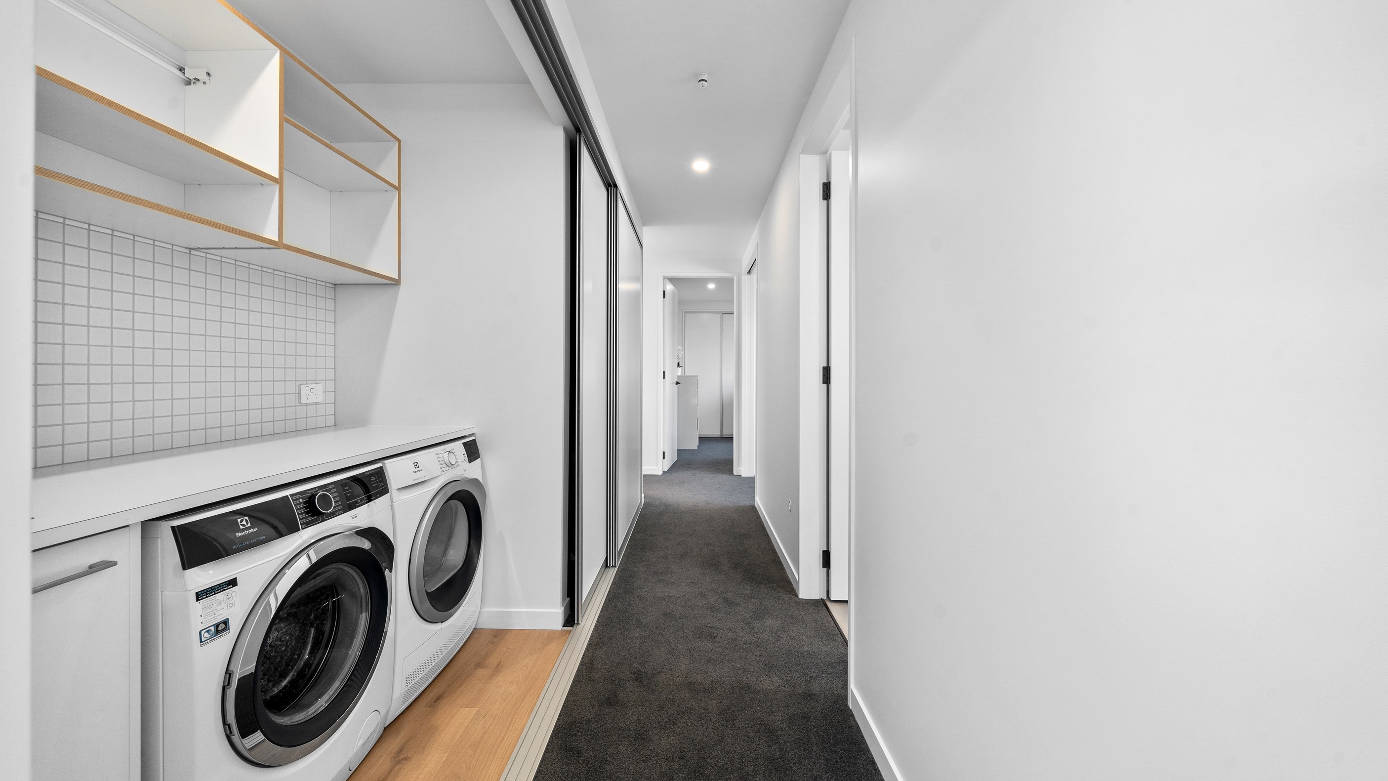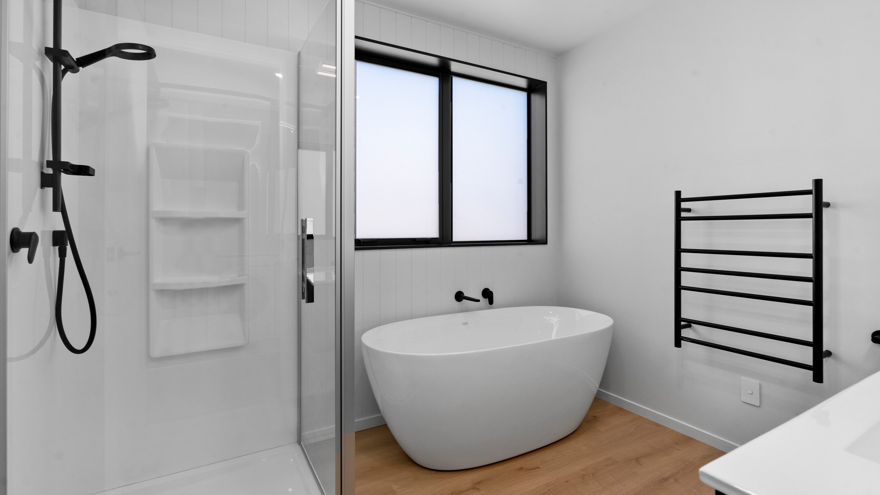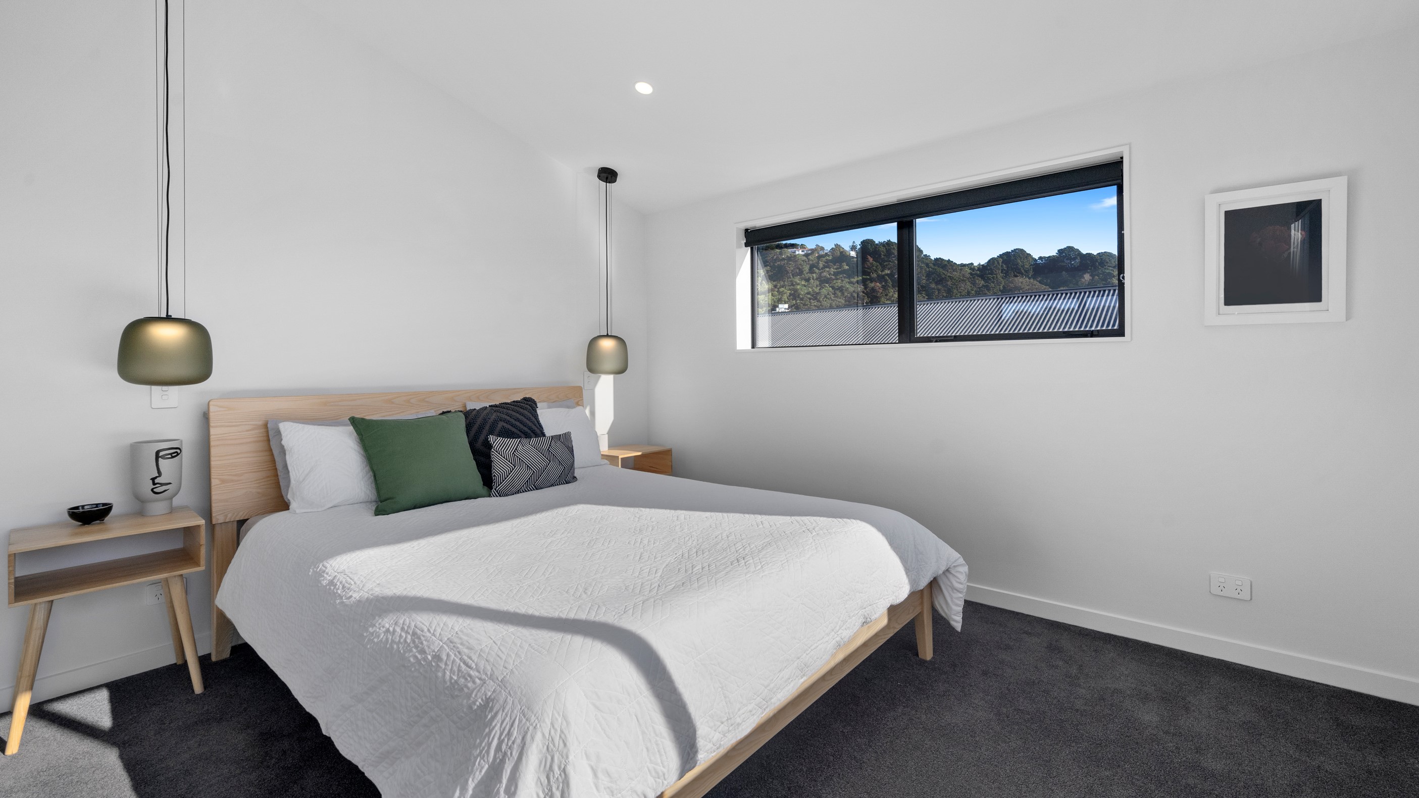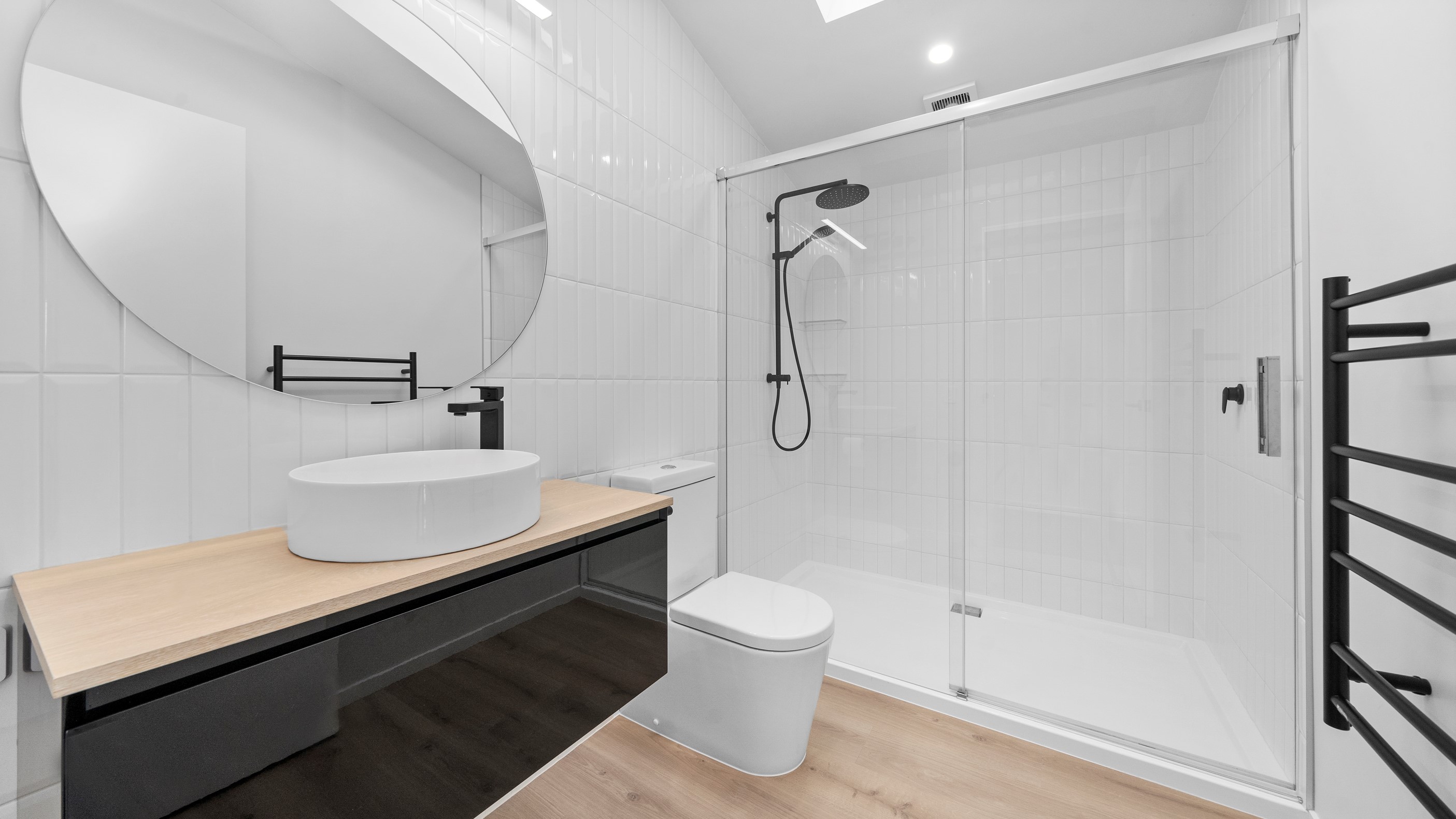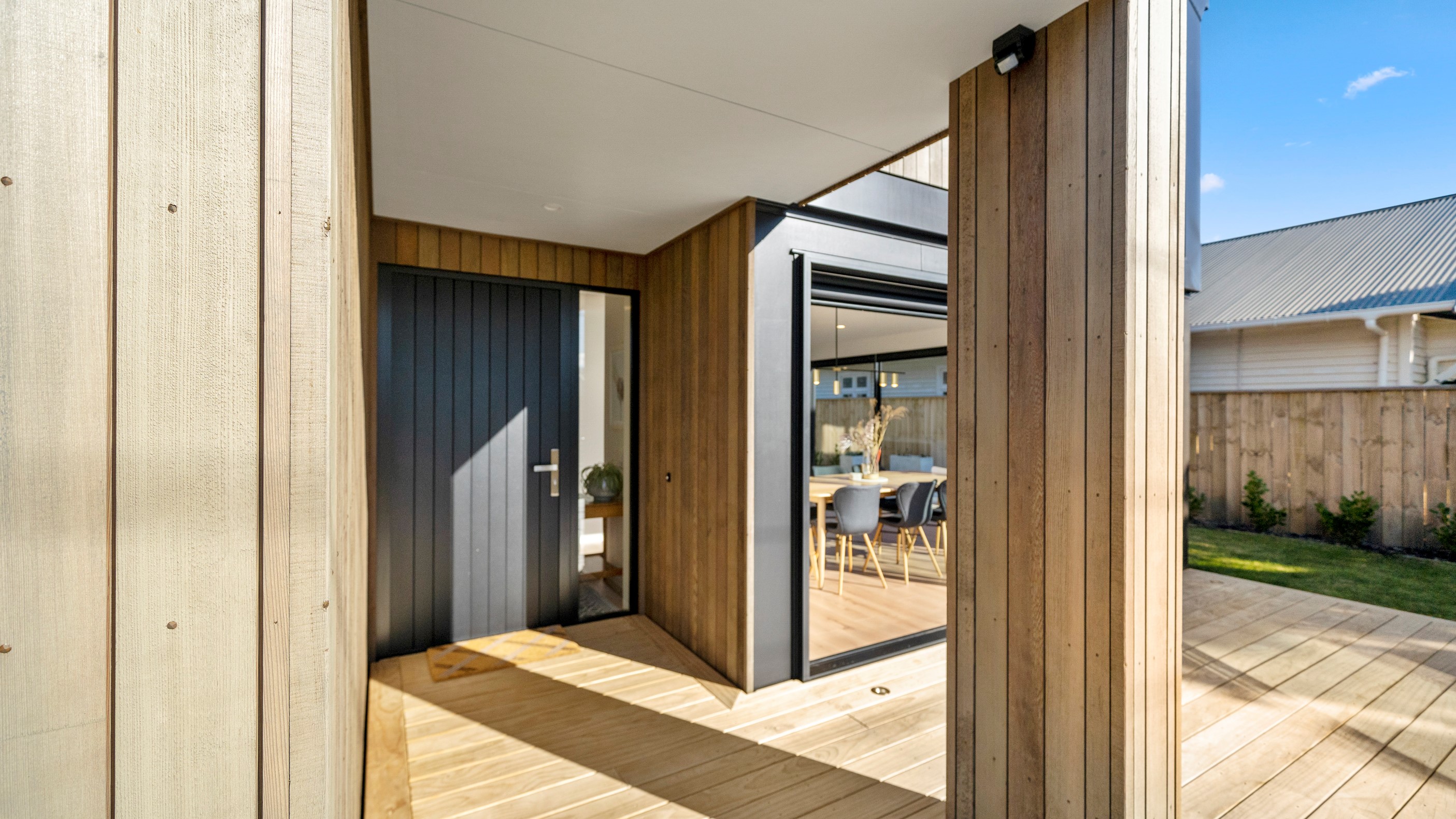 The pavilion form was the inspiration for this three-bedroom family home that delivers the architectural style the clients wanted, plus plenty more. Split over two levels, the 209sqm house has sight lines throughout to create a sense of space, and a double-height living area connects the ground floor with upstairs. It’s a dramatic design move that anchors the rear of the property to its outdoor living spaces. Downstairs, you’ll find the open-plan living, kitchen and dining zone in gleaming white with black accents, such as feature lighting hanging from the lofty ceiling. The kids’ zone is in a separate wing downstairs and also accommodates overnight guests. This area contains a separate laundry and large storage areas tucked behind sliding doors. A striking black balustrade leads you upstairs to the mezzanine where you’ll find a library, study nooks and the main bedroom with walk-in wardrobe and ensuite. This was designed to be a stylish, efficient and warm forever family home that makes the most of its beachside location. It’s fair to say, mission accomplished.