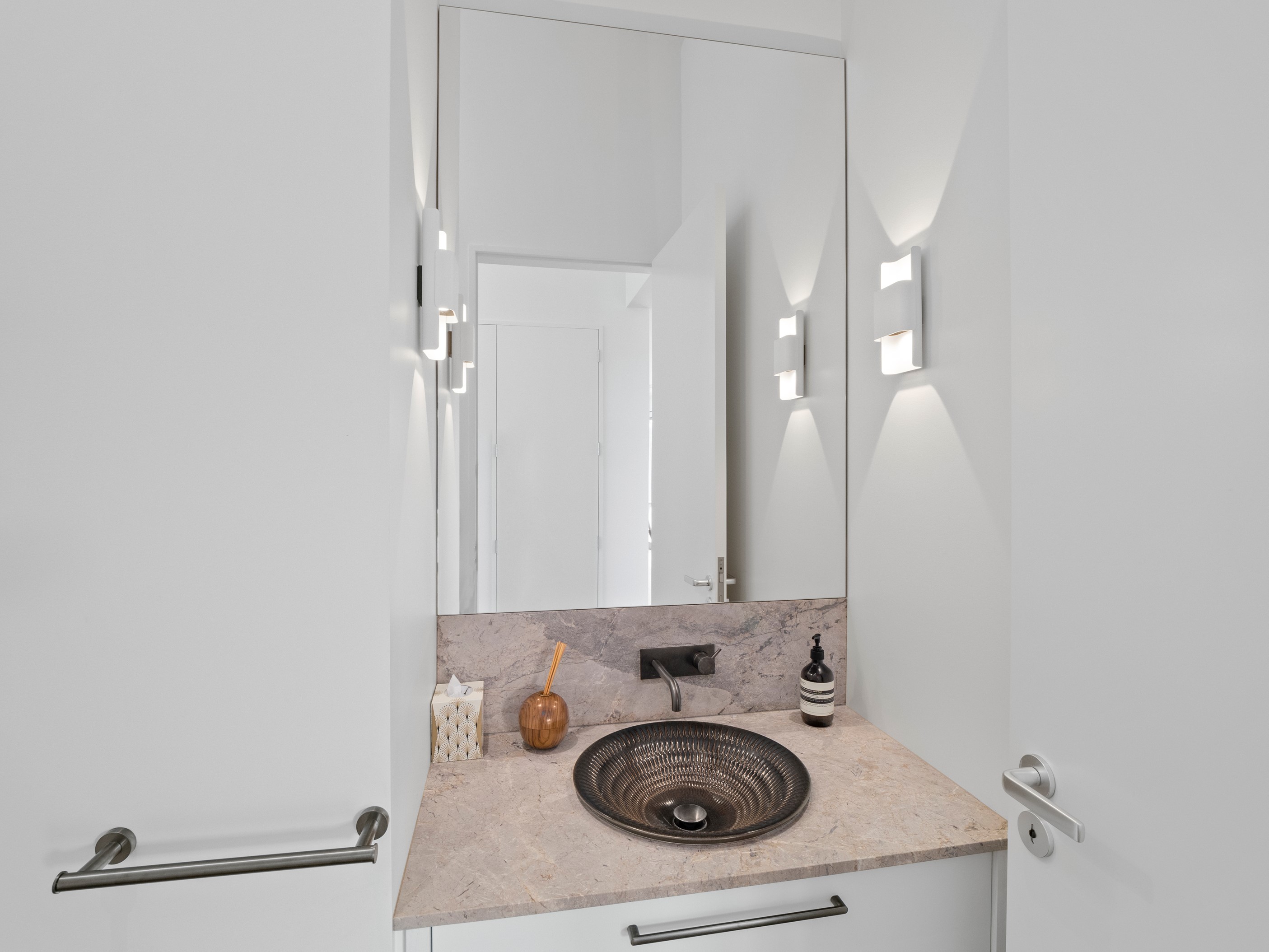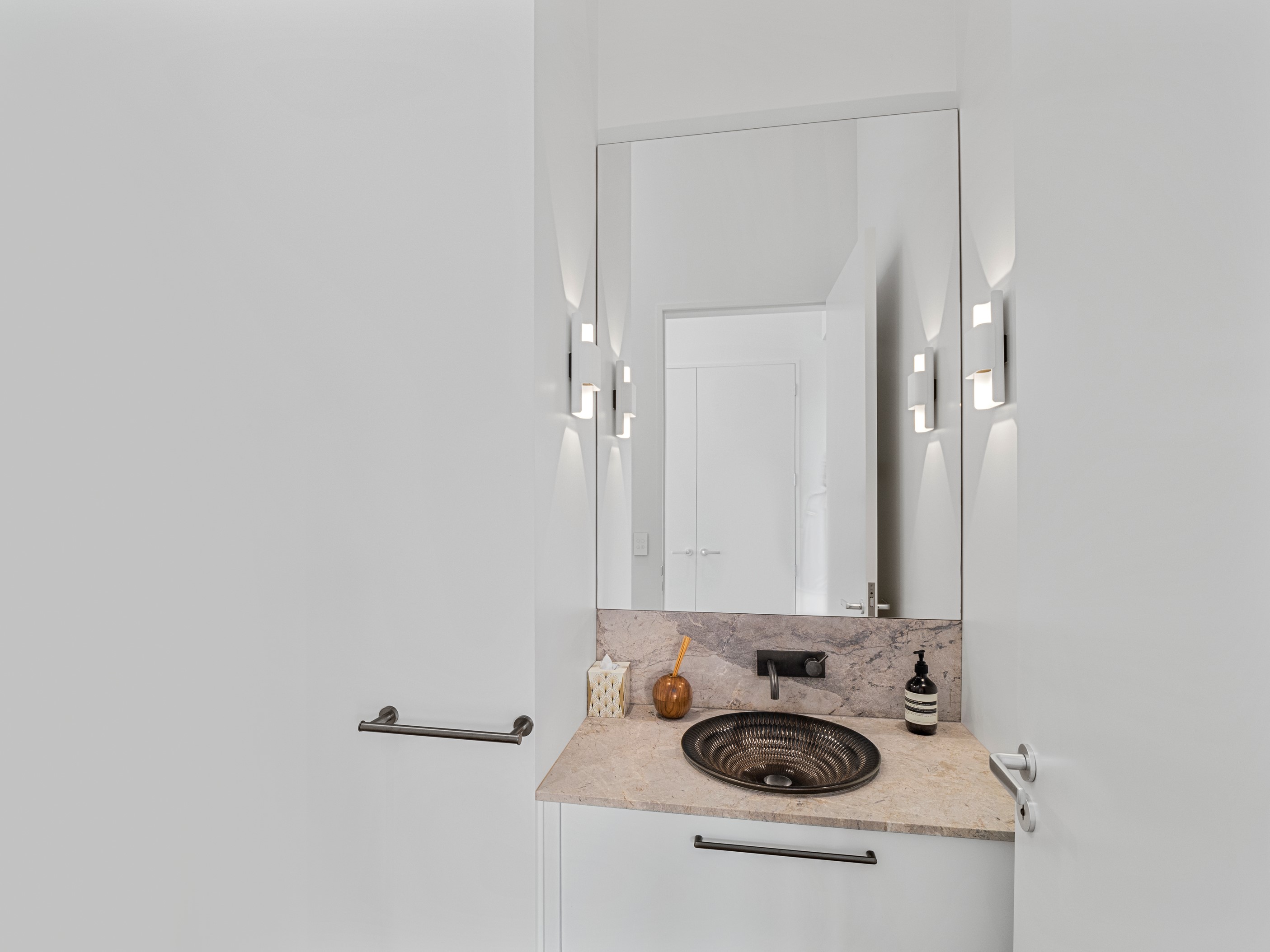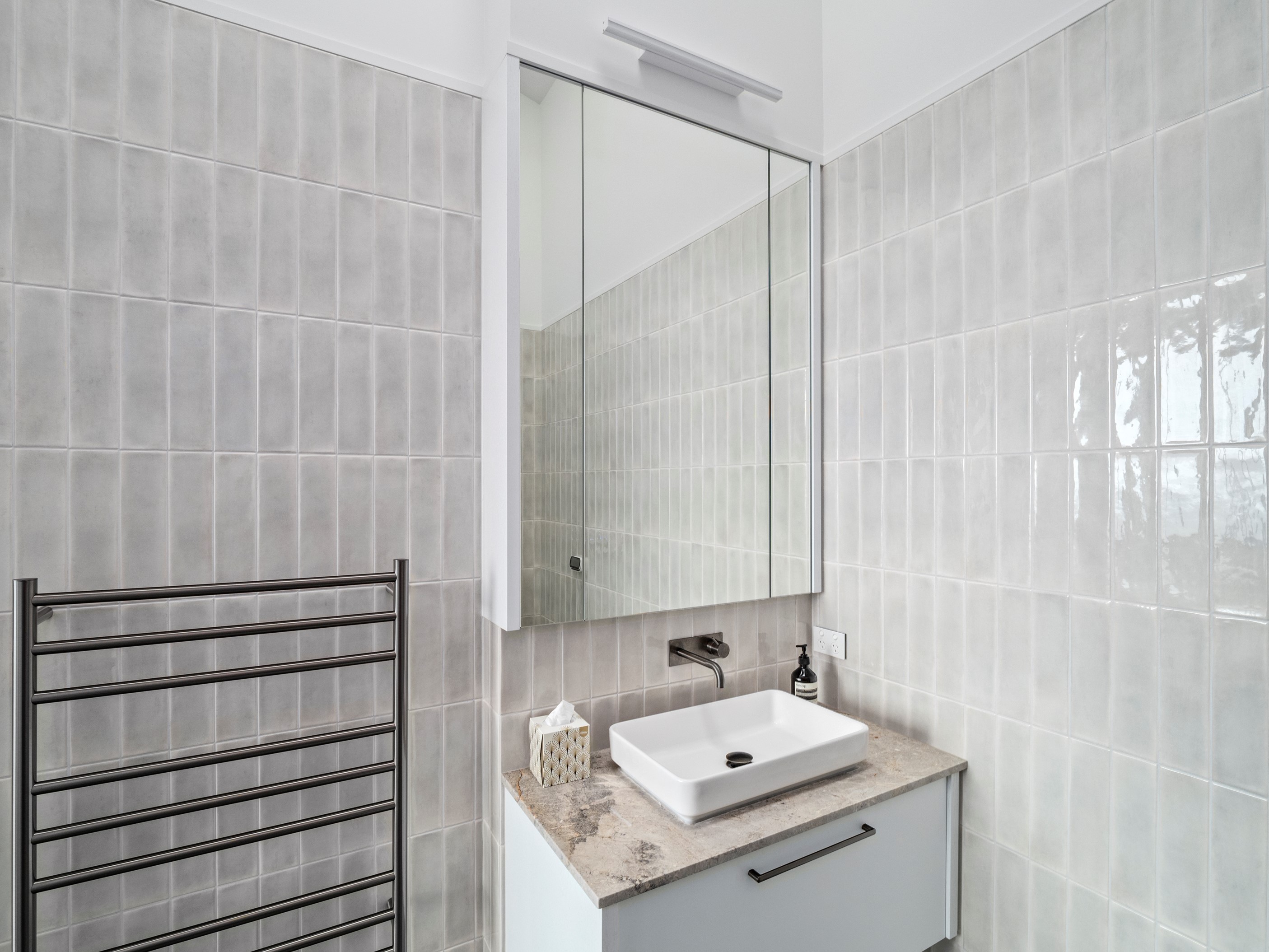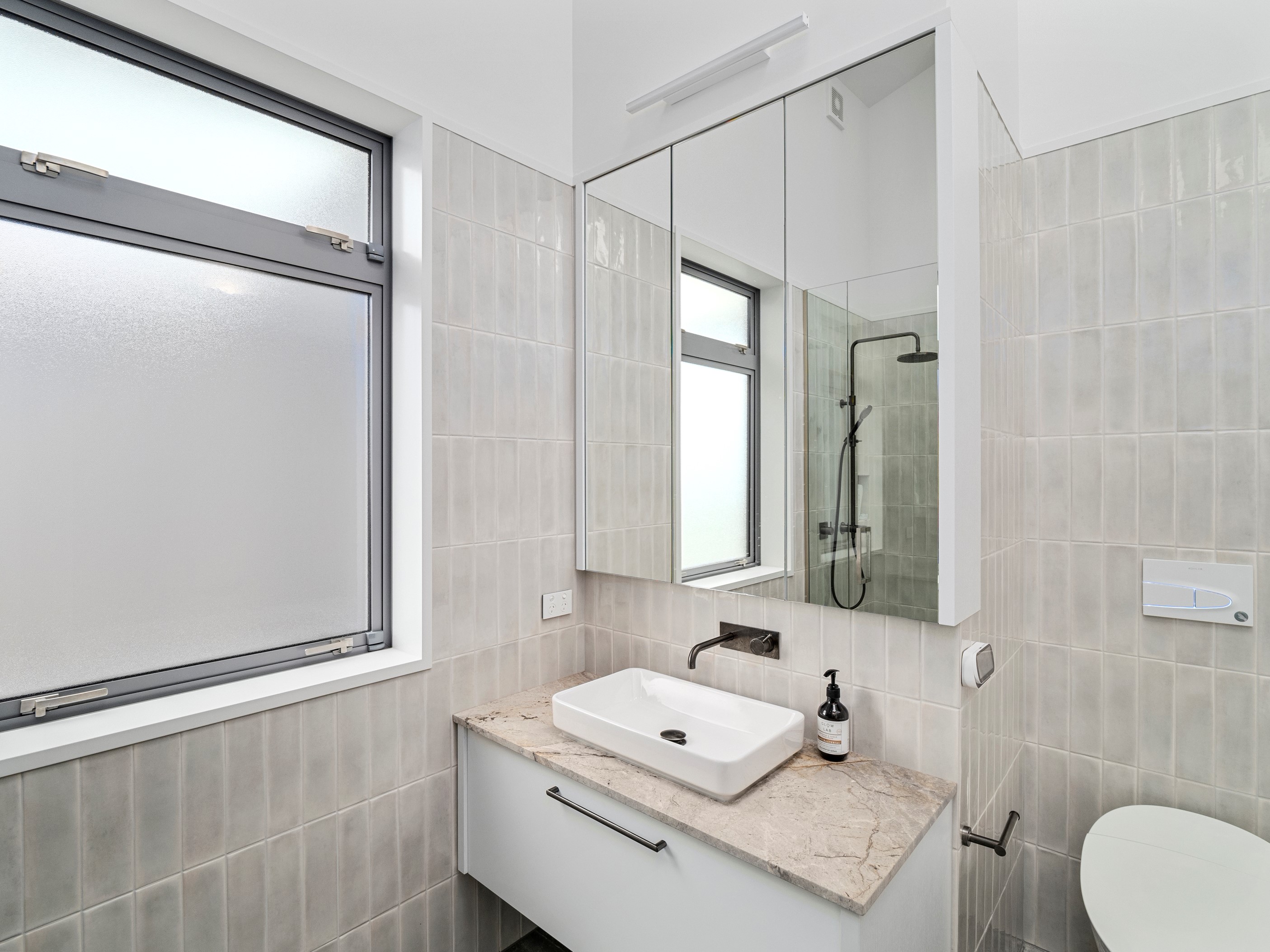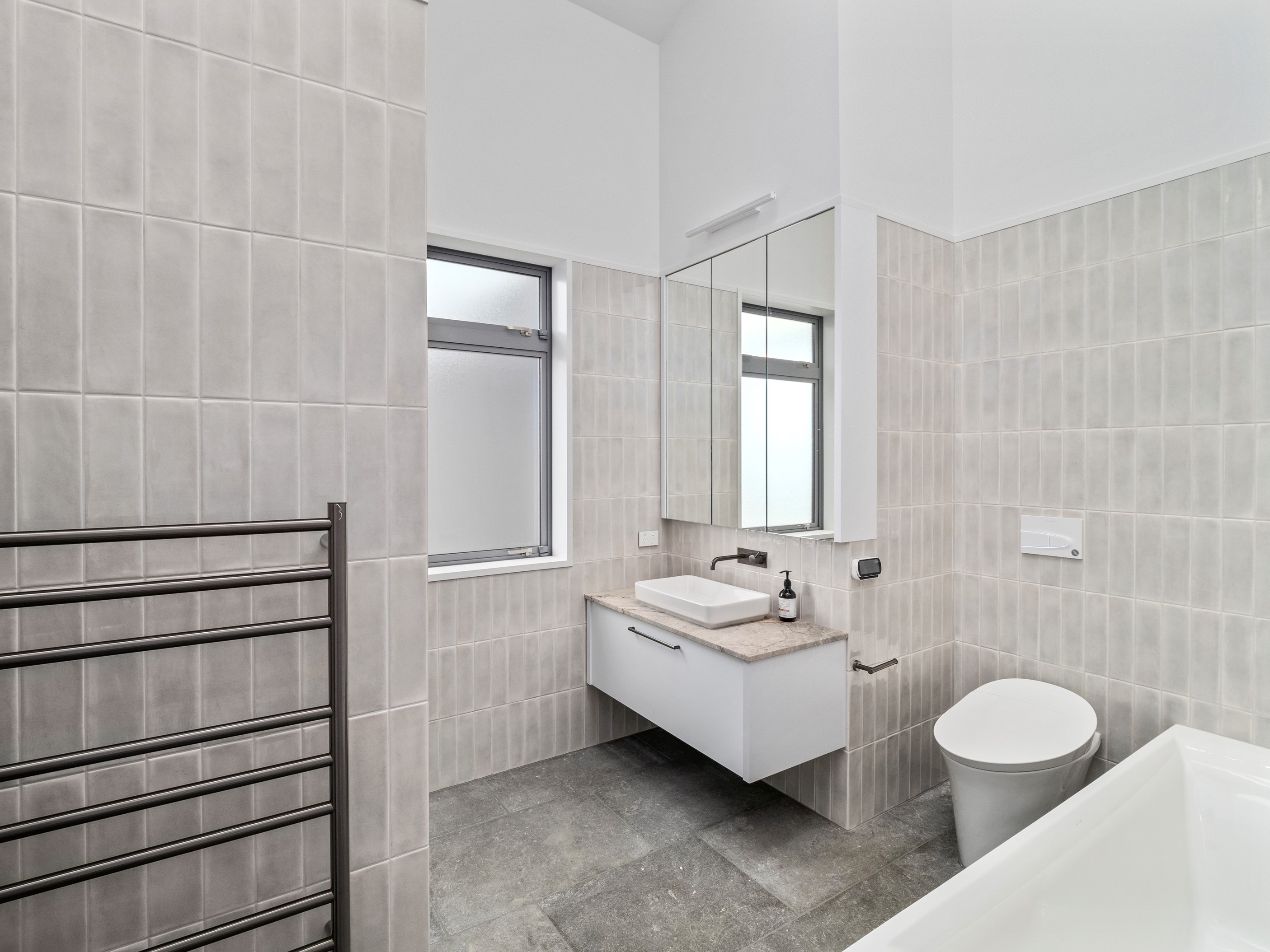 Grandstand views towards Matheson Bay and Matakana Hill make this coastal site extremely special, but also exposed. So, how do you enjoy the benefits without any compromise? You create “pockets of shelter with view shafts”, as the architect of this luxury 332sqm home, Belinda George says on her website. In her response to site, George designed outdoor rooms to the north, east and west of the four-bedroom home, allowing the owners to connect with the outdoors, no matter the time of year, no matter the weather. Vertical cedar wraps the distinct and intriguing forms of the house and also a 64sqm cottage. Pared-back linear faces are punctuated with recesses and windows that open up towards the views. Meanwhile, the spaces facing the inland part of the section are scaled back and more intimate. A Japanese-style garden in the north-west can be enjoyed from the deck and there’s a putting green on the lawn. A little further afield a village of solar panels provides energy. As you’d imagine in a build of this calibre, the fit-out is high-end, yet it remains understated and welcoming. The abiding themes here are of cleverness, coastal elegance and next-level craftsmanship.