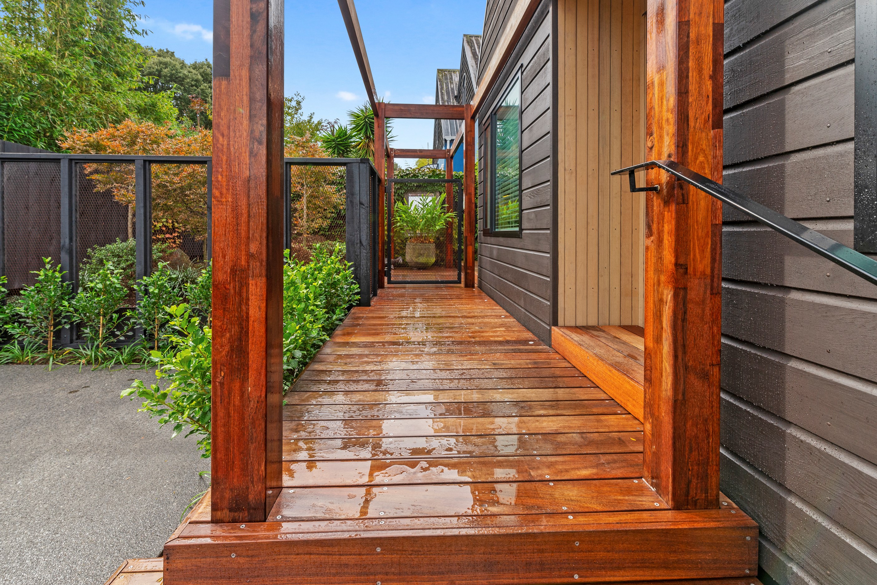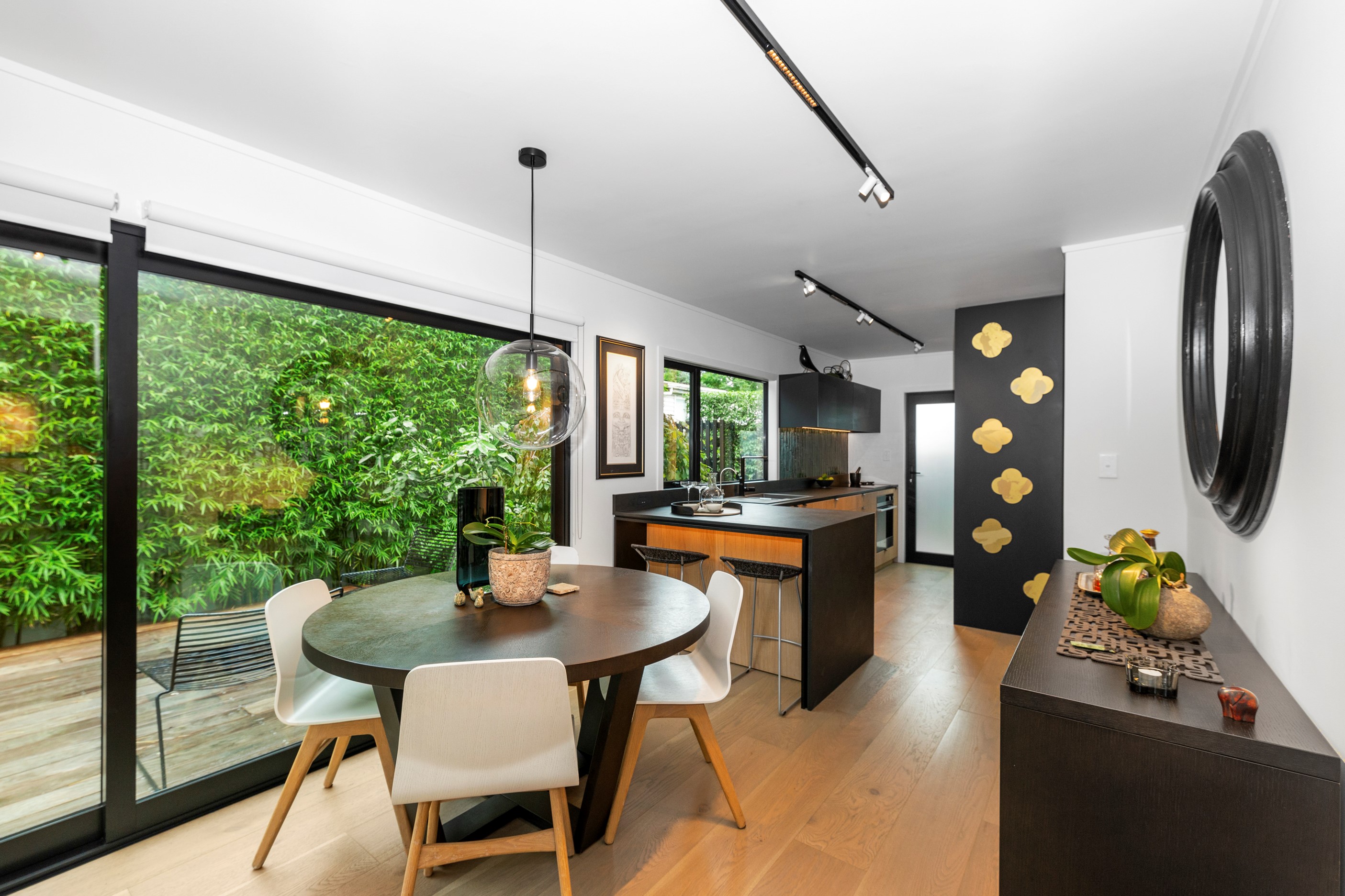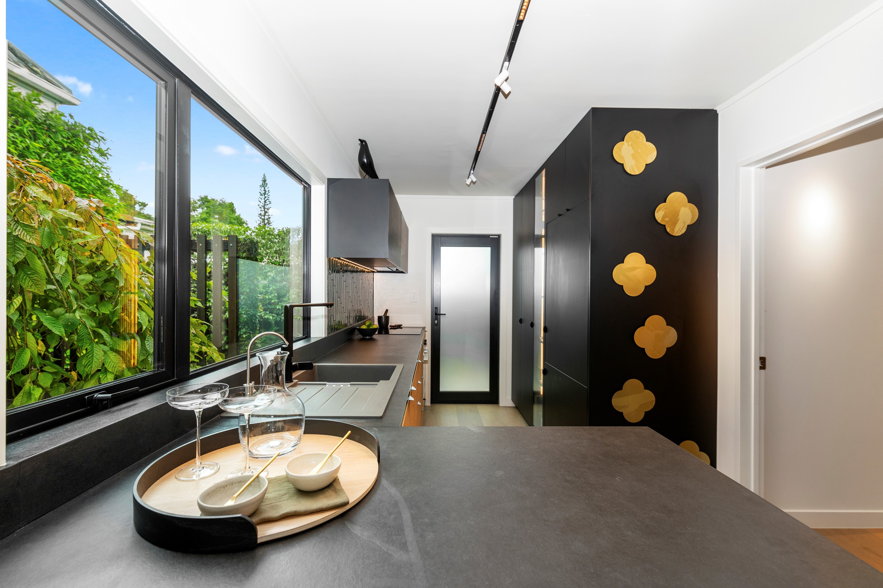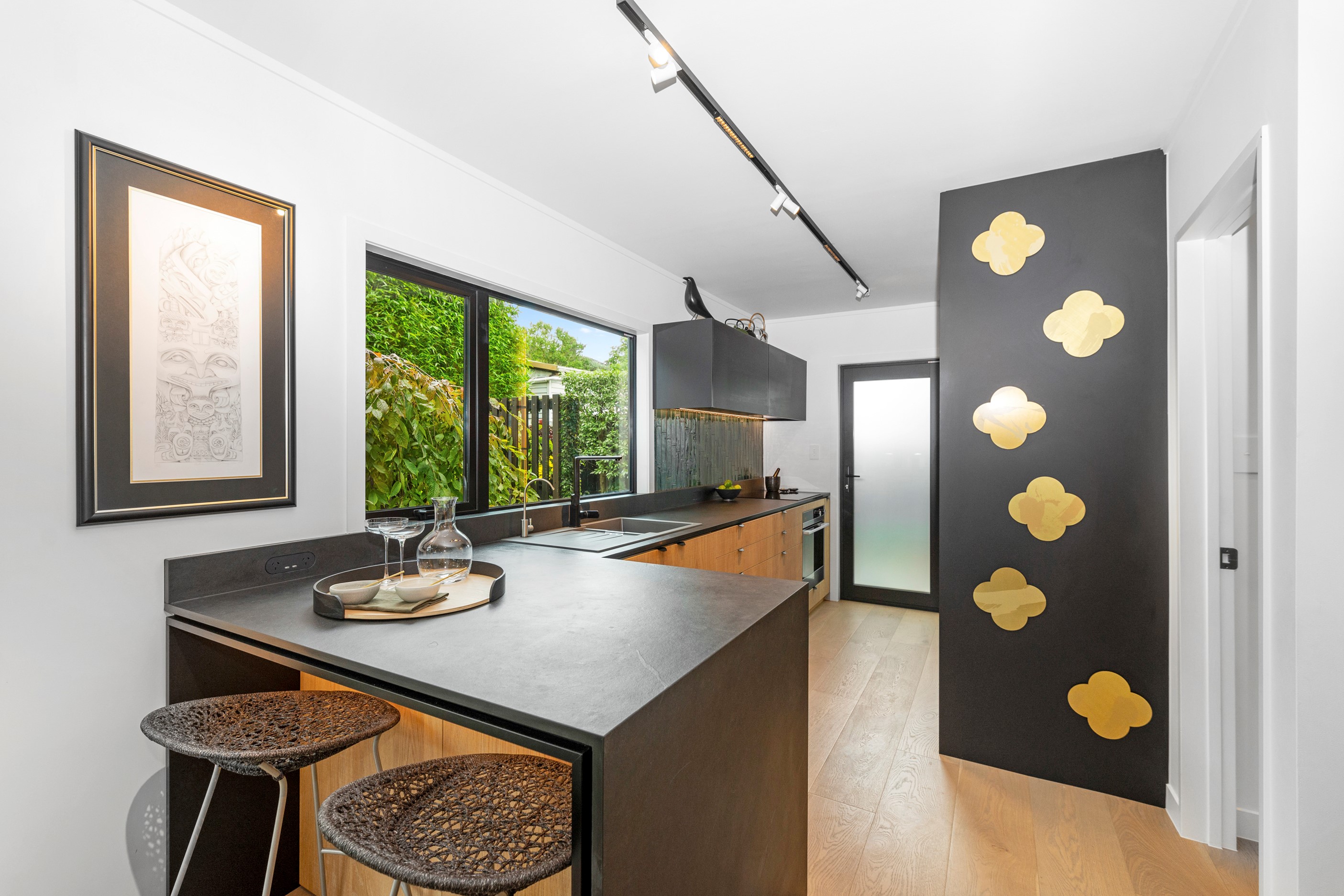 If it wasn’t for the roofline, you might not recognise this house, such is the transformation. Once tired, and with joinery and cladding that had seen better days, the 80s townhouse is now a stylish low-maintenance oasis in one of the central city’s vibrant beach suburbs. It took a head-to-toe refurbishment to elevate the 155sqm home from fatigued to fabulous. A new roof, windows, skylights, cladding, interior and landscaping are major features of the renovation, and the architect-owner now has the light-filled retreat he wanted. The north face of the three-bedroom home juxtaposes horizontal dark-stained cedar weatherboard with pale vertical cedar, and hardwood decking wraps around it, adding another layer of timber. Inside, the aesthetic is calm and soothing. Cedar features and subway tiles have been applied vertically– white in bathrooms and jade green in the kitchen. Upstairs, two bedrooms and a bathroom make the most of the 45-degree roof space. On the ground floor you’ll find everything else, including living spaces linking to a deck. It’s warm, too. The upgrade exceeds building-code requirements, ensuring comfy living conditions and Lower energy bills.