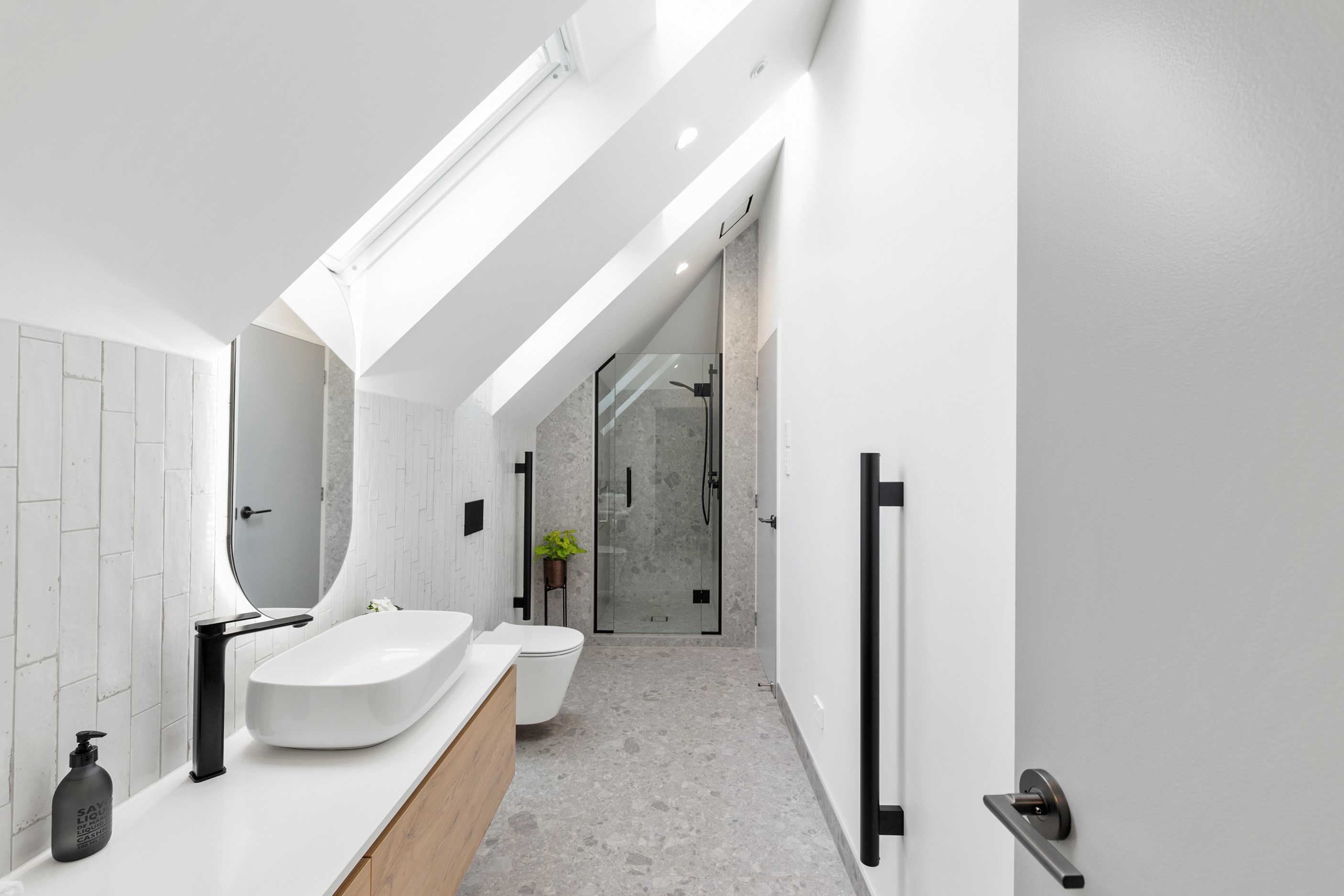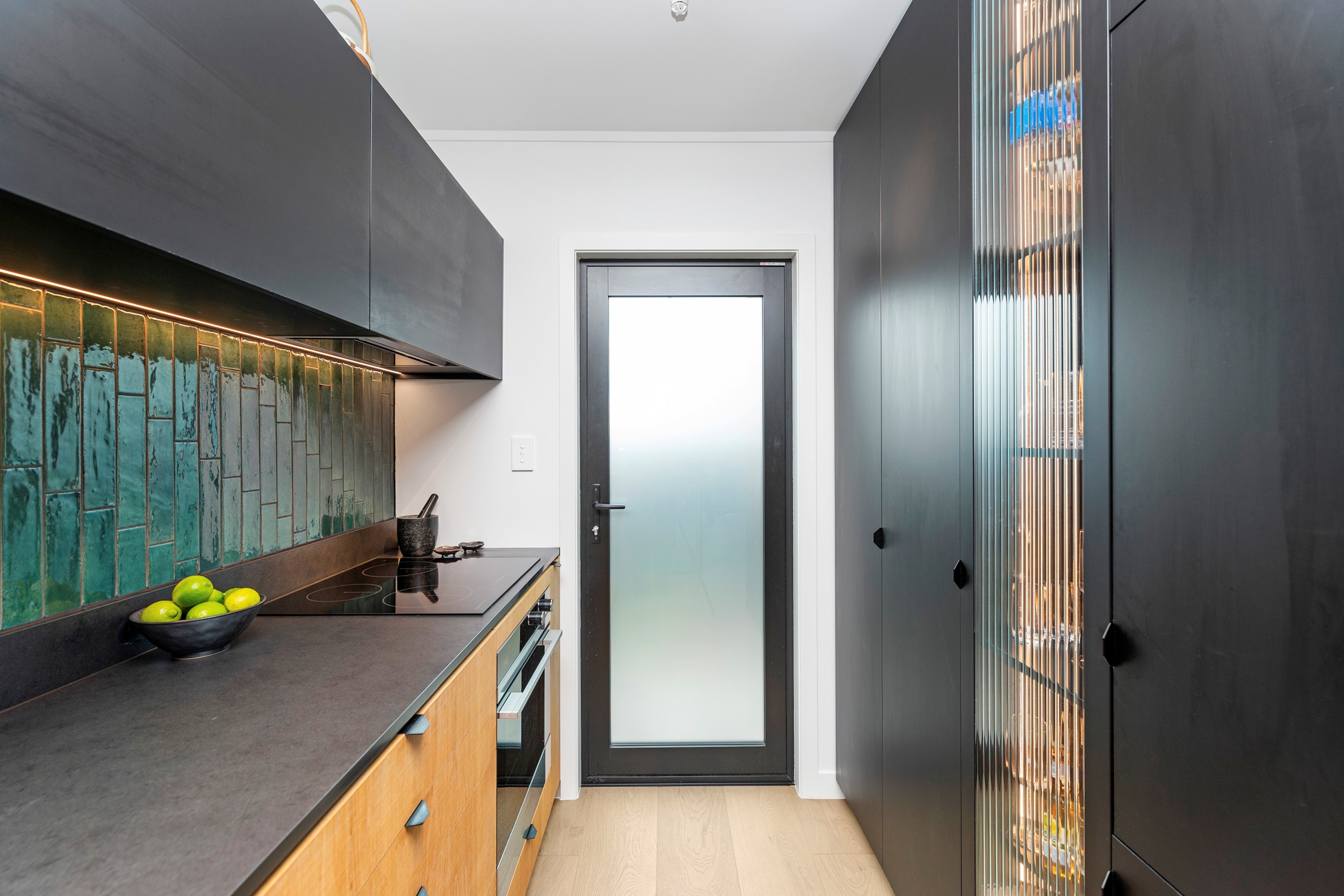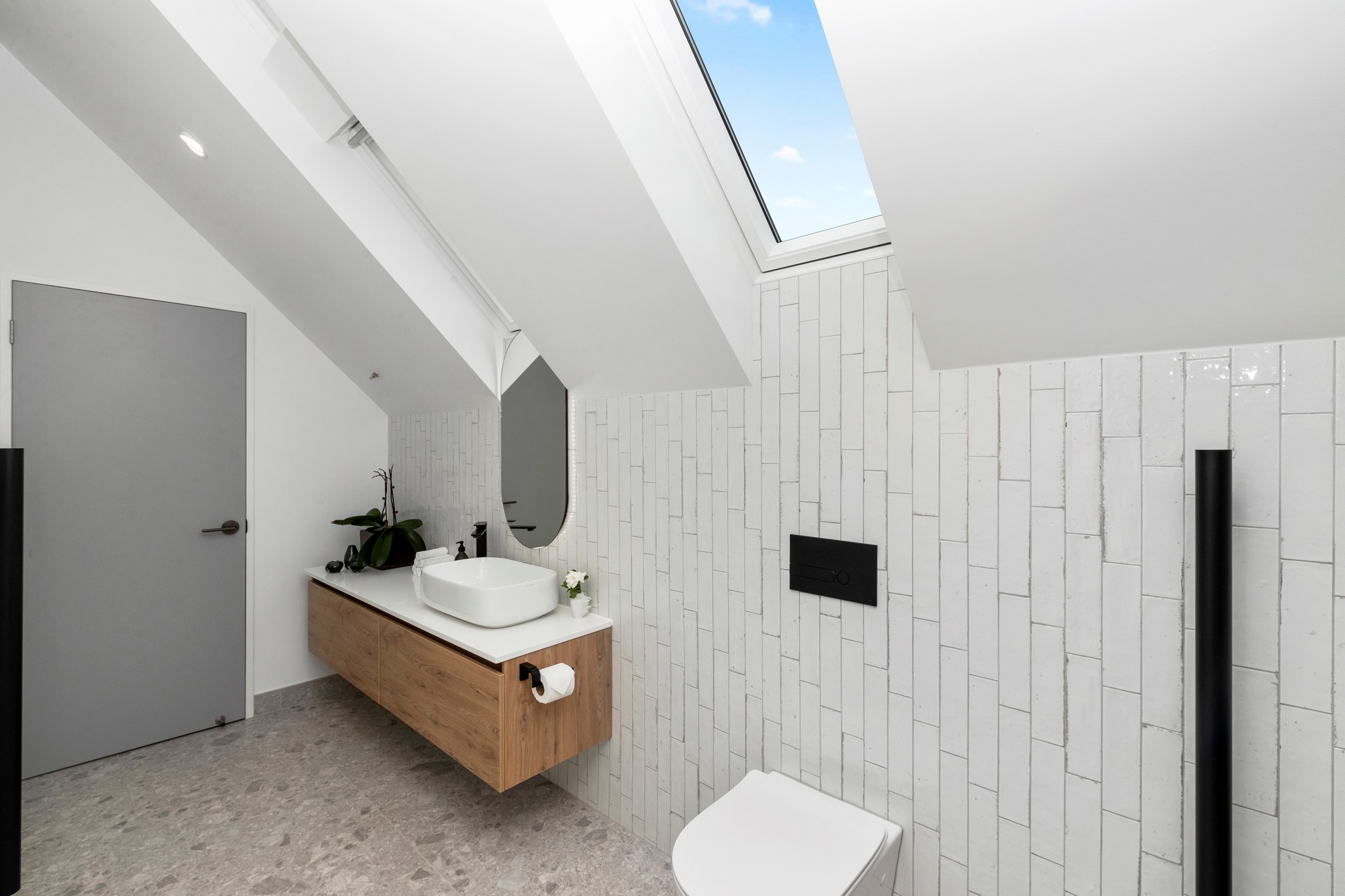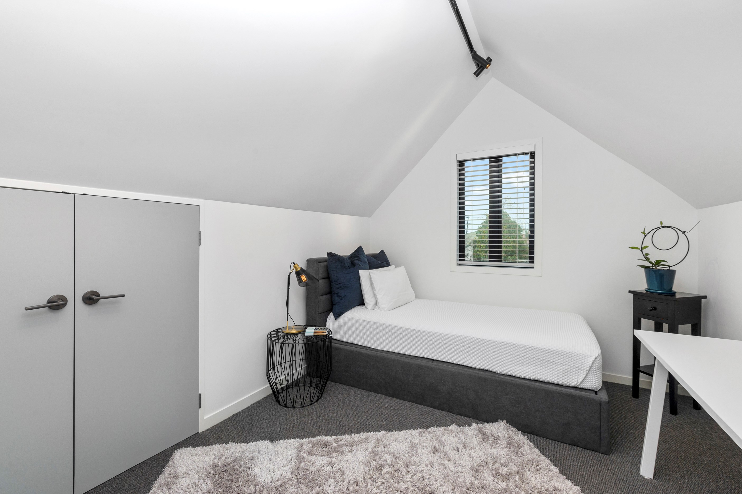 If it wasn’t for the roofline, you might not recognise this house, such is the transformation. Once tired, and with joinery and cladding that had seen better days, the 80s townhouse is now a stylish low-maintenance oasis in one of the central city’s vibrant beach suburbs. It took a head-to-toe refurbishment to elevate the 155sqm home from fatigued to fabulous. A new roof, windows, skylights, cladding, interior and landscaping are major features of the renovation, and the architect-owner now has the light-filled retreat he wanted. The north face of the three-bedroom home juxtaposes horizontal dark-stained cedar weatherboard with pale vertical cedar, and hardwood decking wraps around it, adding another layer of timber. Inside, the aesthetic is calm and soothing. Cedar features and subway tiles have been applied vertically– white in bathrooms and jade green in the kitchen. Upstairs, two bedrooms and a bathroom make the most of the 45-degree roof space. On the ground floor you’ll find everything else, including living spaces linking to a deck. It’s warm, too. The upgrade exceeds building-code requirements, ensuring comfy living conditions and Lower energy bills.