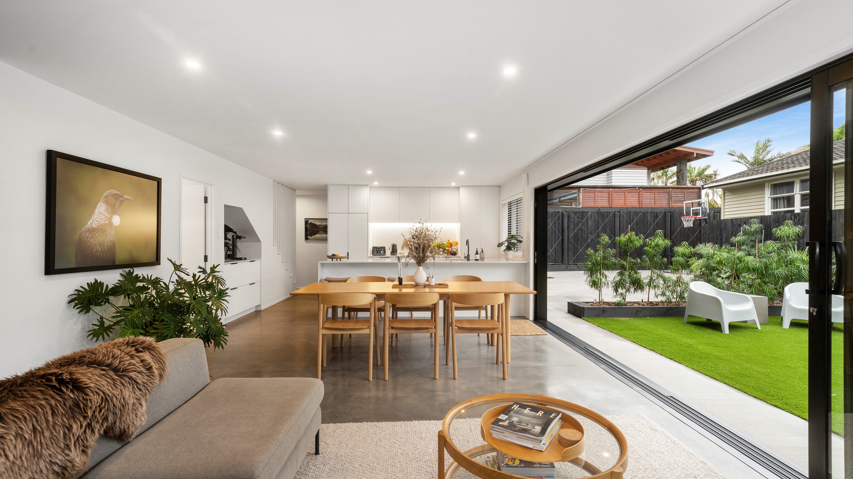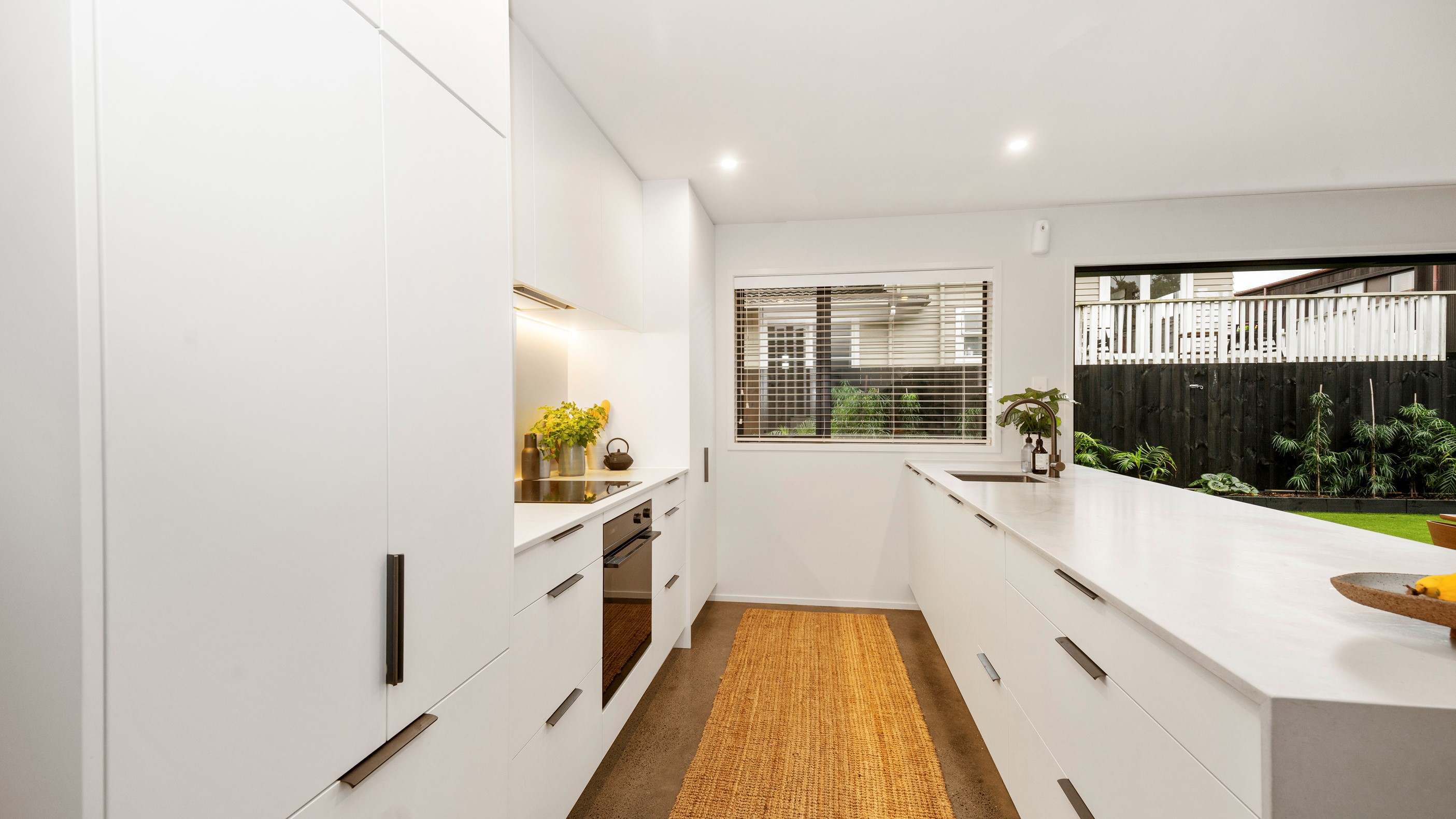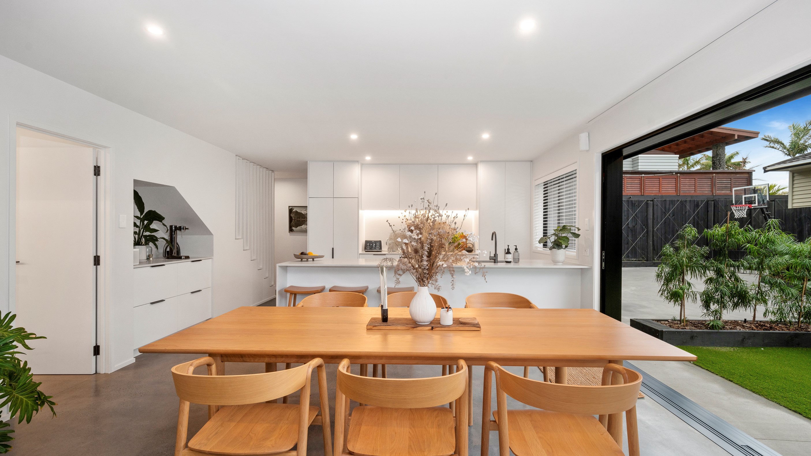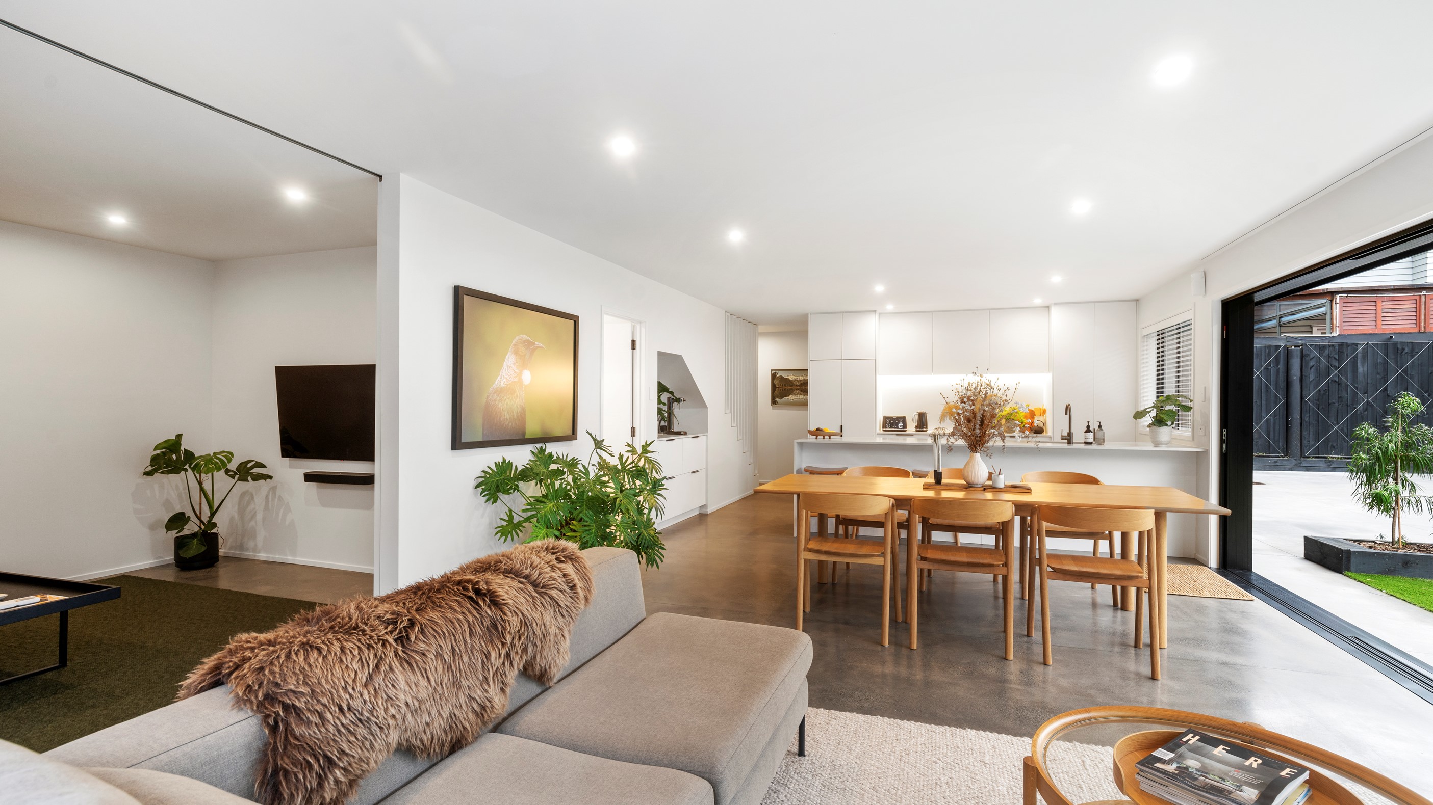 In this instance, the term ‘builder’s own home’ means more than just the fact he constructed his 211sqm house. He also completed the subdivision of the section and drew on seven years as a draughts person to design his family home. He also designed the kitchen and wardrobe systems. He shared the interior design tasks with his partner. And the landscaping? Yes, he did that, too. This four-bedroom, three bathroom residence has strong lines and is designed to be low maintenance. It was also created for easy living, and one look inside the tasteful interior tells you that has been achieved. Open the doors from the dining and living space and suddenly the area becomes a whole lot bigger. Sliders blur the line between inside and out, especially when you can step directly out to a concrete patio. The double garage has plenty of room for the cars, but was designed to double as a hangout for the family’s teens. With polished concrete floors, acoustic insulation, a TV and sofas, it’s a smart idea that has been smartly executed. This home is a showcase for the builder’s many skills.