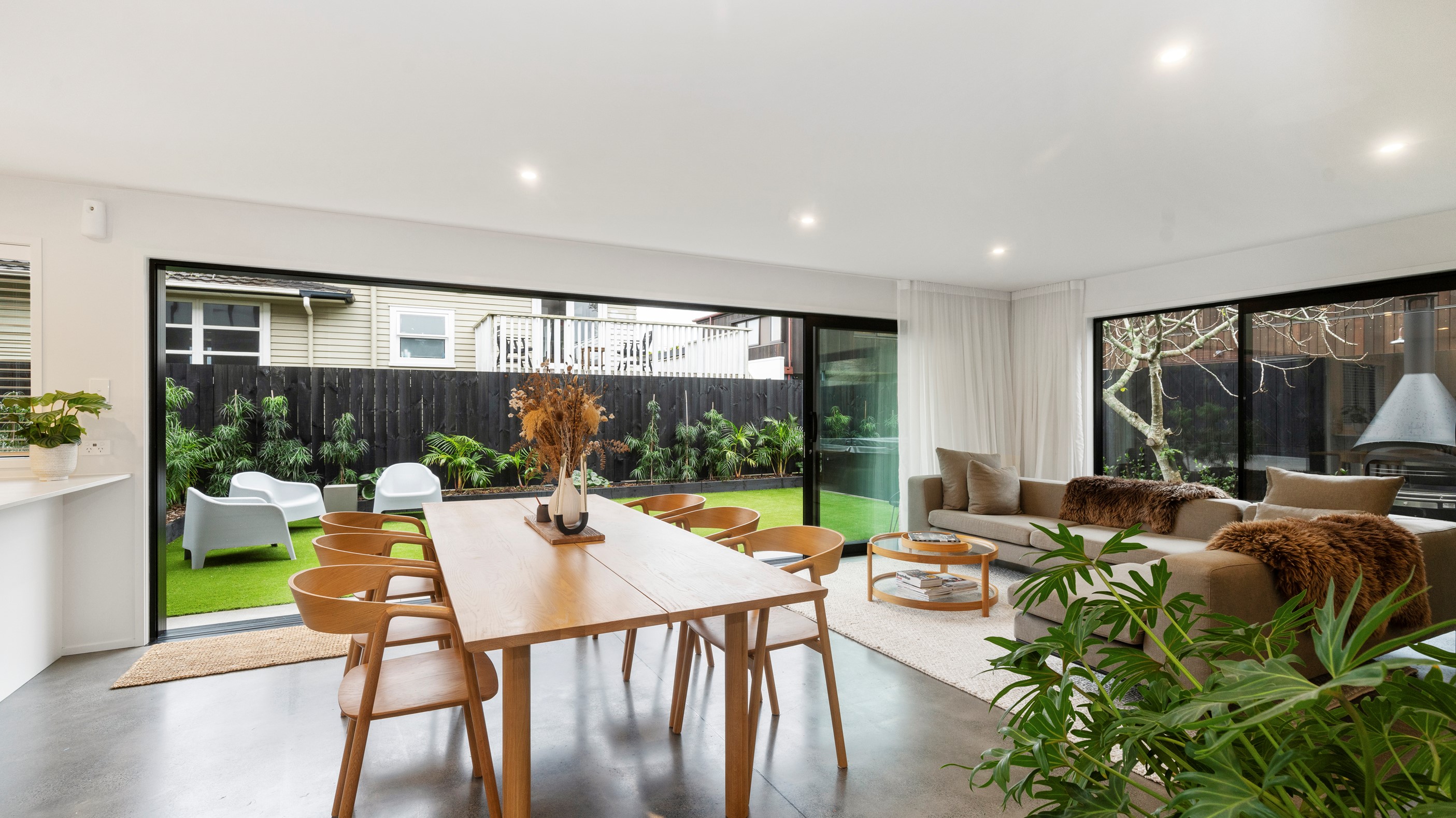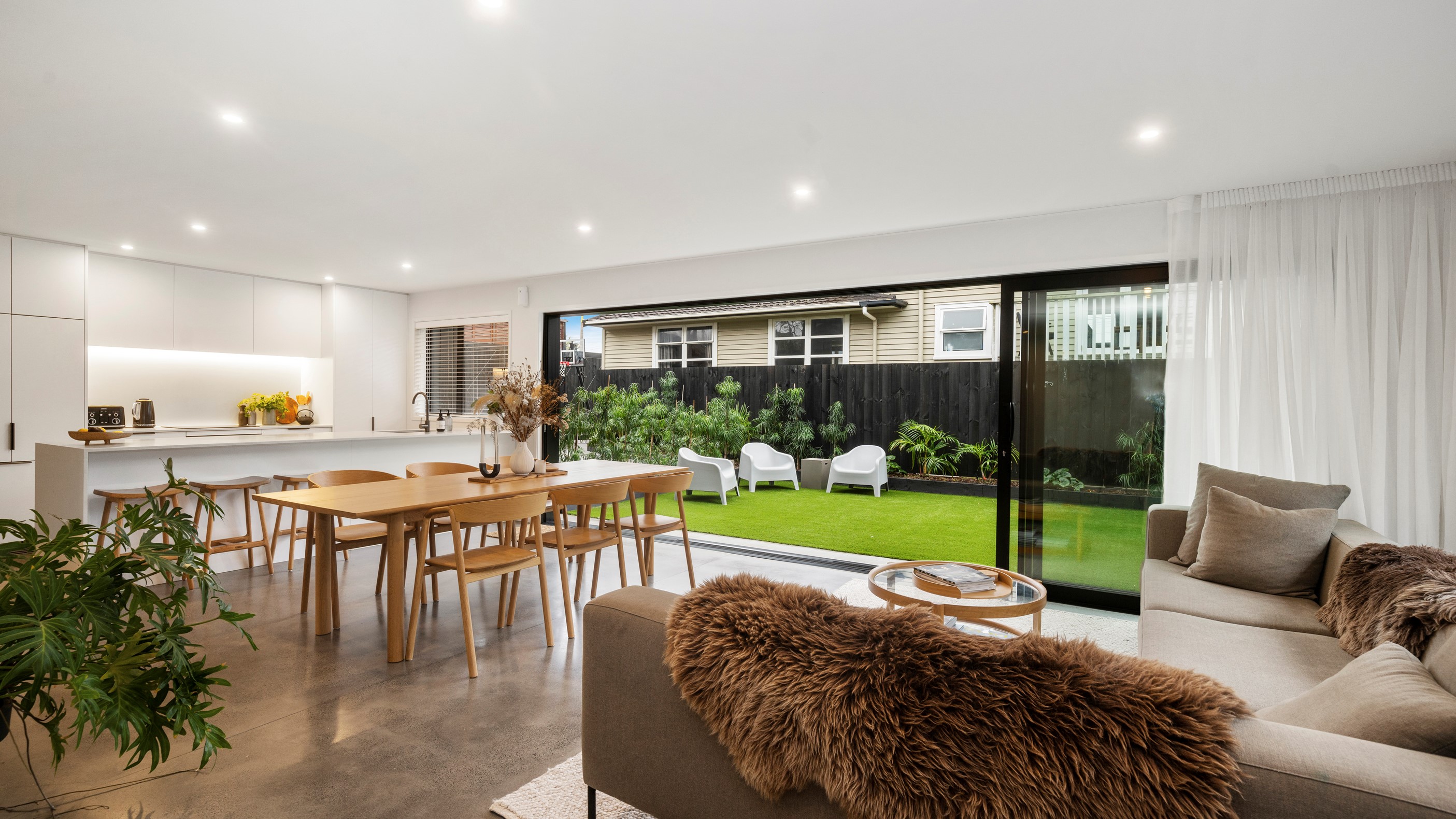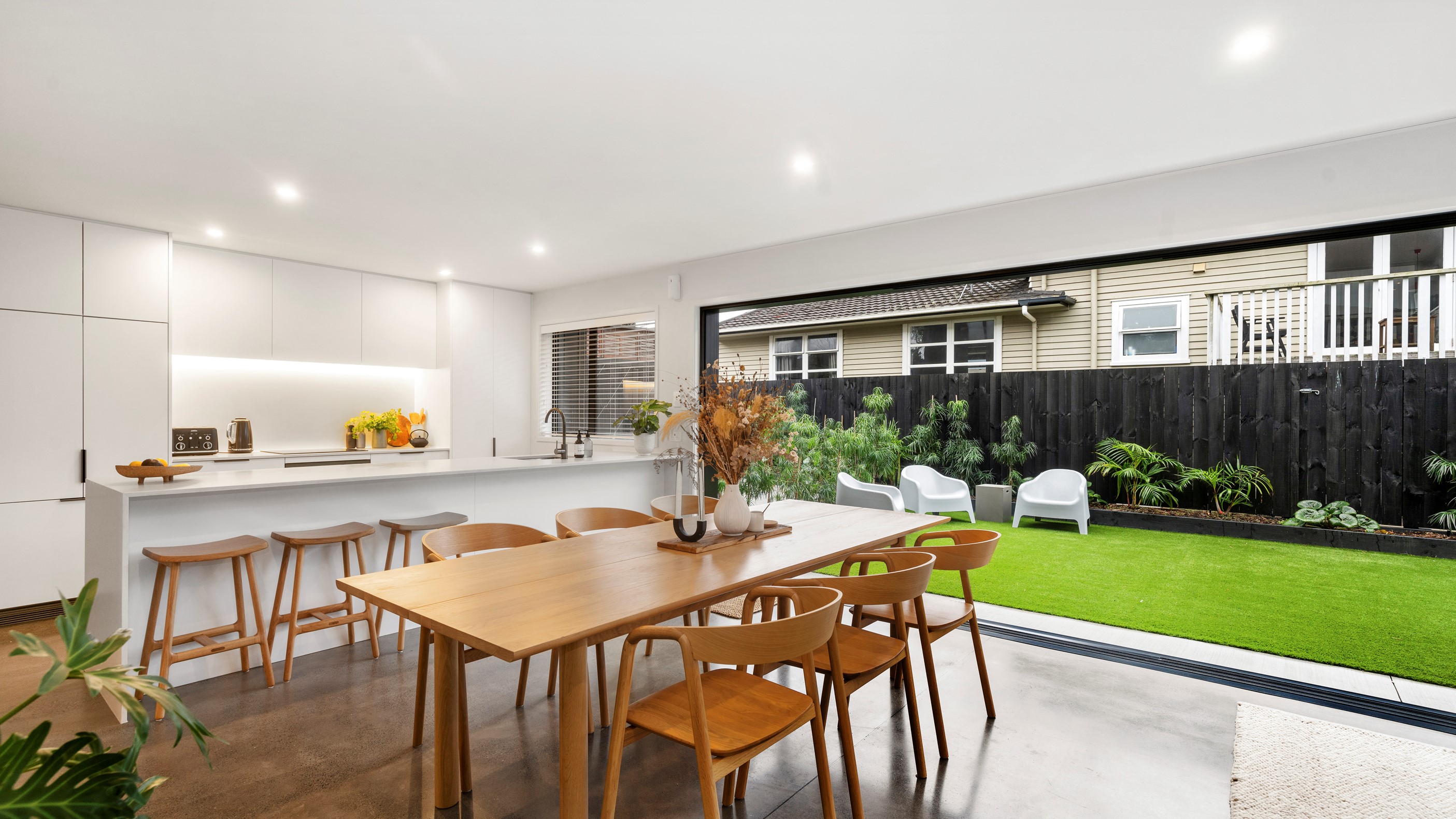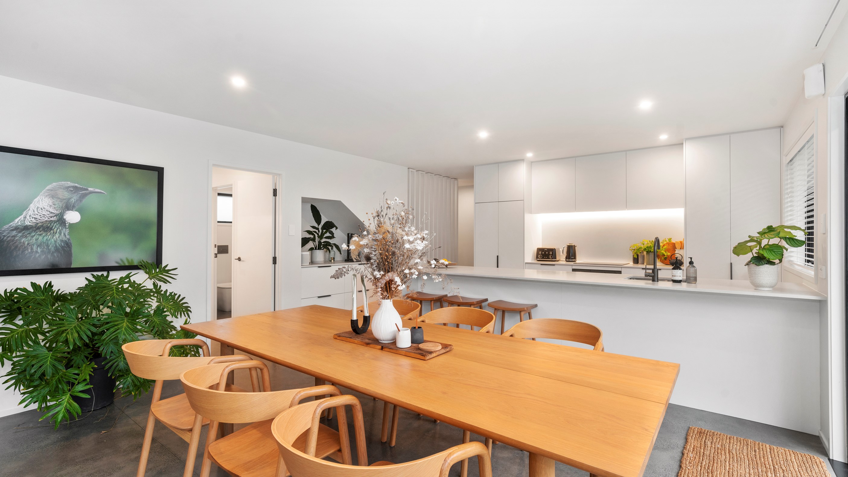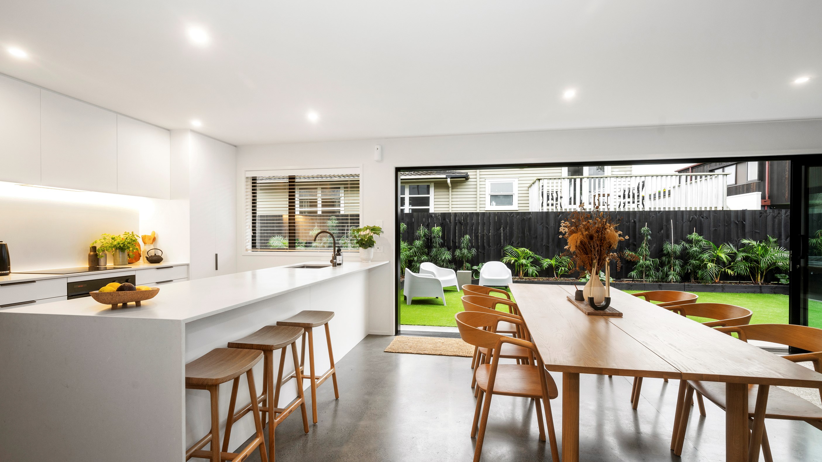 In this instance, the term ‘builder’s own home’ means more than just the fact he constructed his 211sqm house. He also completed the subdivision of the section and drew on seven years as a draughts person to design his family home. He also designed the kitchen and wardrobe systems. He shared the interior design tasks with his partner. And the landscaping? Yes, he did that, too. This four-bedroom, three bathroom residence has strong lines and is designed to be low maintenance. It was also created for easy living, and one look inside the tasteful interior tells you that has been achieved. Open the doors from the dining and living space and suddenly the area becomes a whole lot bigger. Sliders blur the line between inside and out, especially when you can step directly out to a concrete patio. The double garage has plenty of room for the cars, but was designed to double as a hangout for the family’s teens. With polished concrete floors, acoustic insulation, a TV and sofas, it’s a smart idea that has been smartly executed. This home is a showcase for the builder’s many skills.