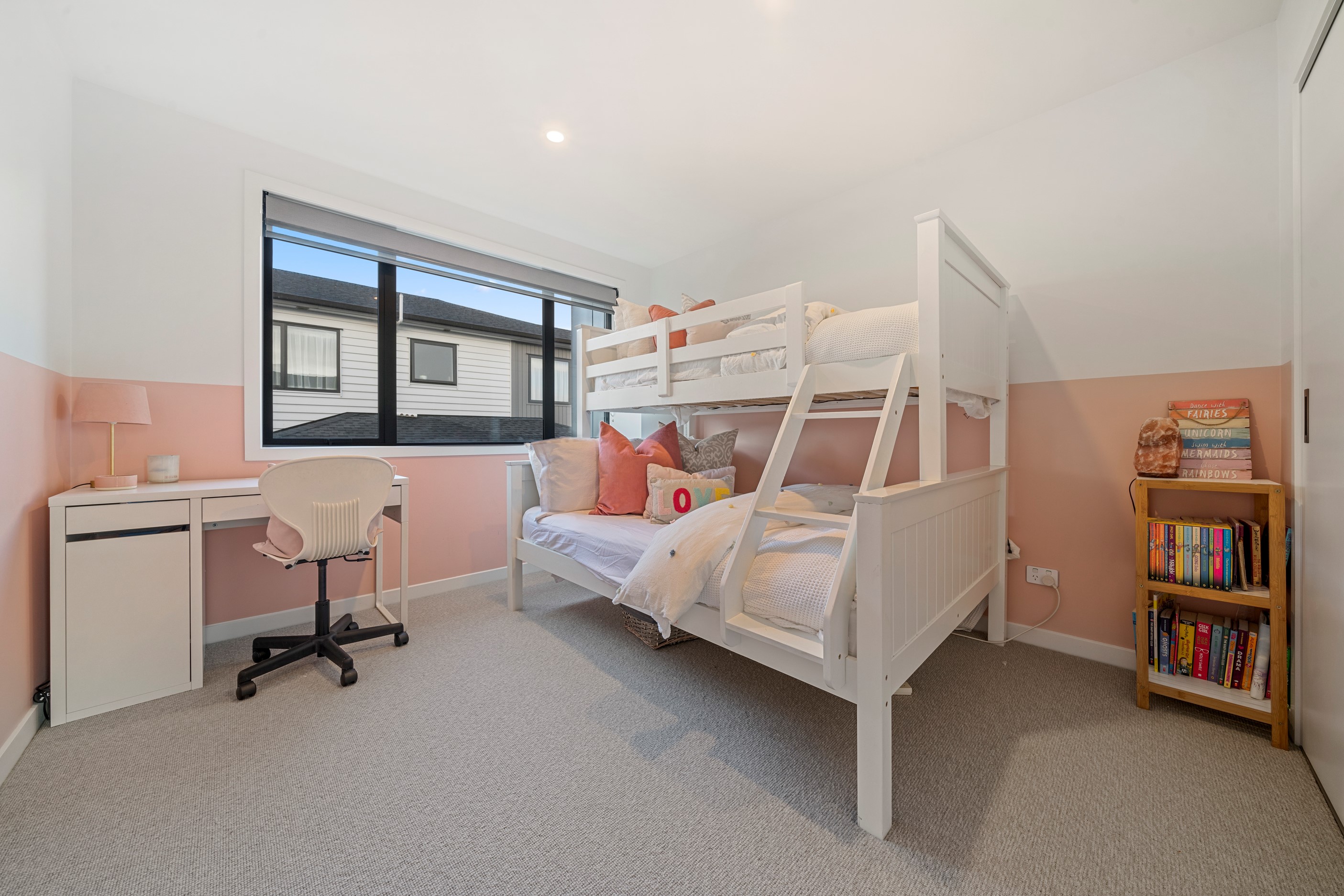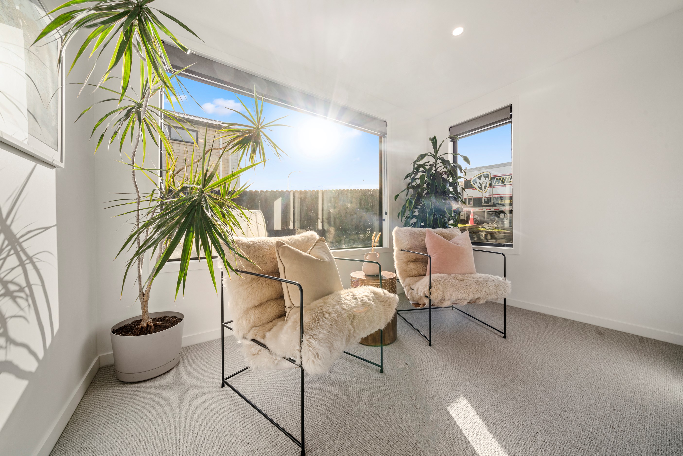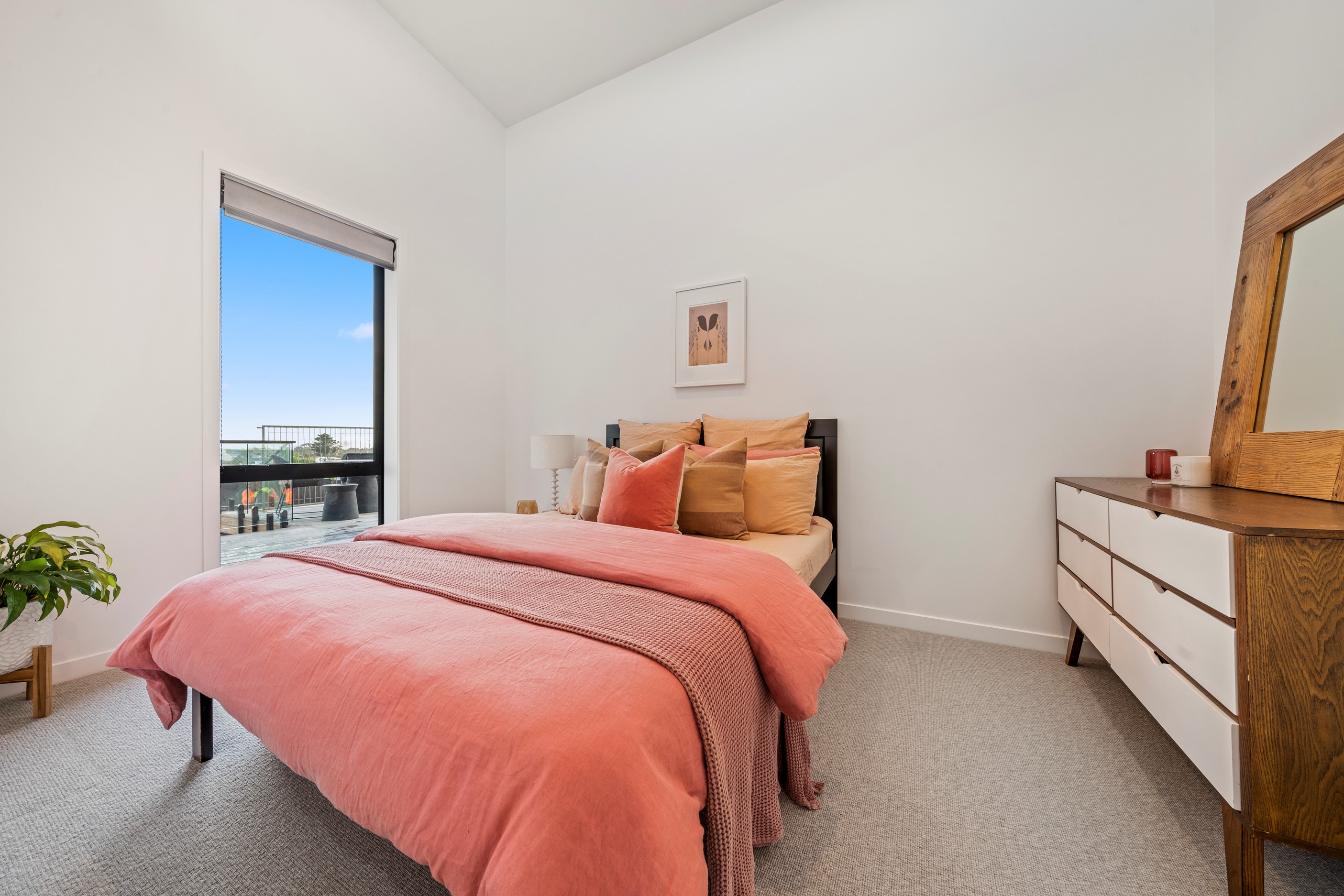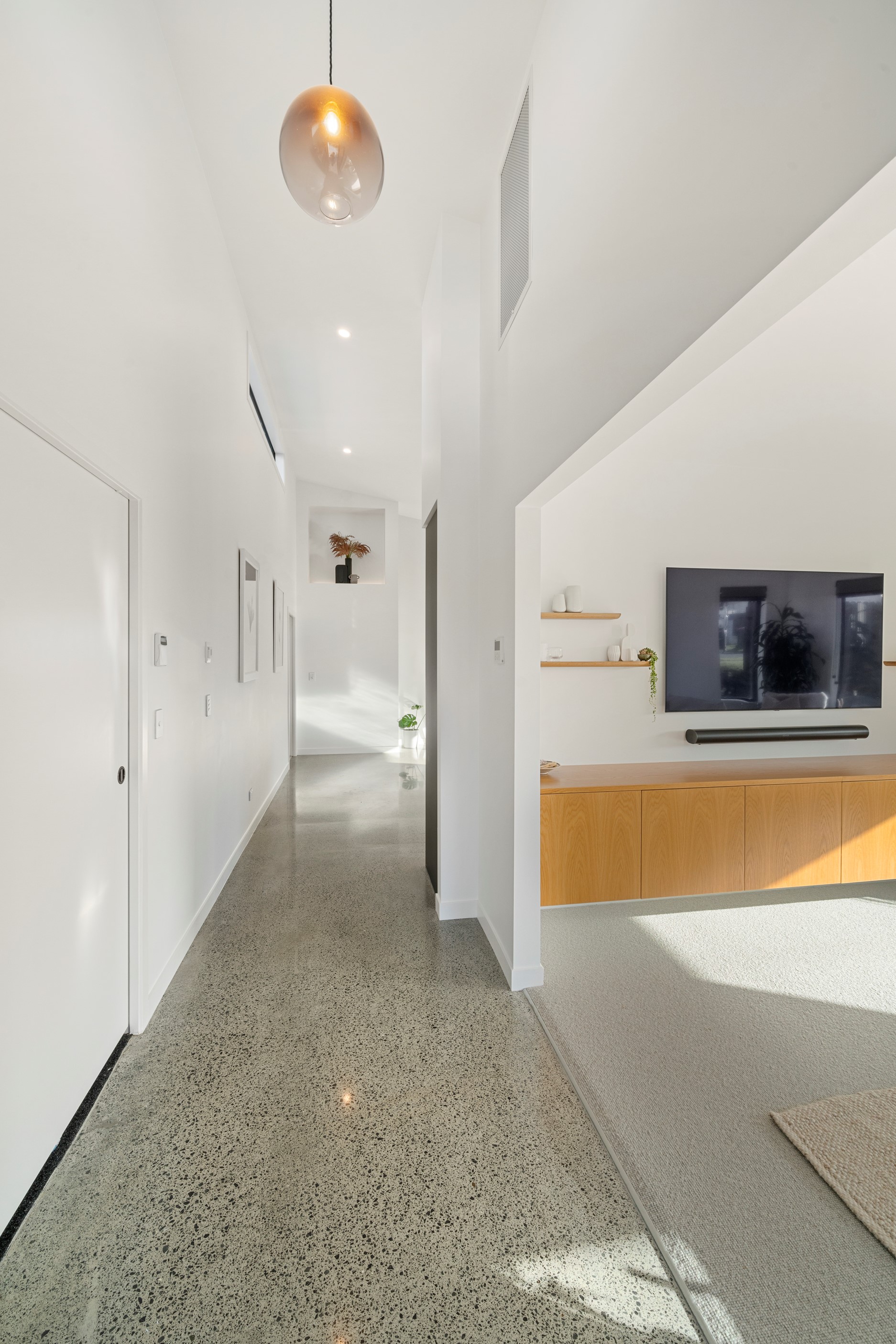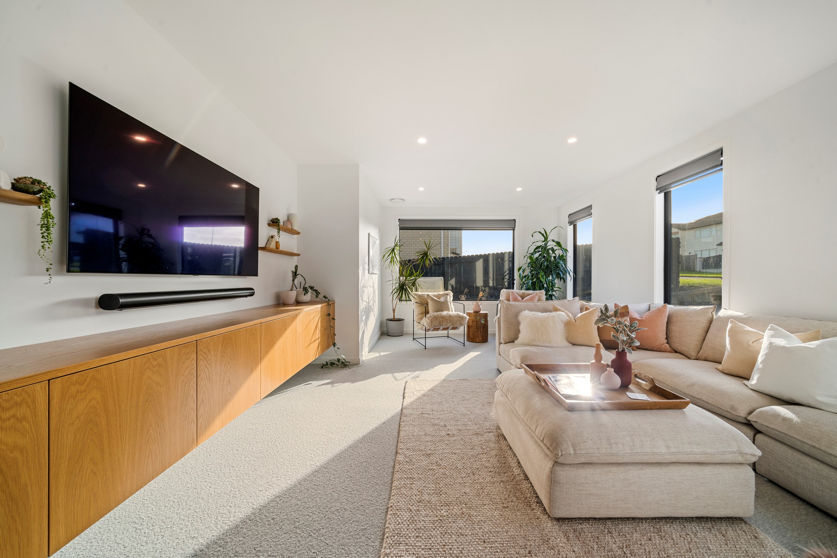 When builders pay attention to every tiny detail, the result is a high-end home that doesn’t cost the earth. Although in this 236sqm house, which nails the point spectacularly, the earth is front and centre. The owners designed it with sustainability in mind, strategically placing windows to maximise sun and warmth, future-proofing with wiring for solar panels, and opting for natural products wherever possible. The four-bedroom north-facing entertainer is built for modern family living, and is a showpiece for craftsmanship, inside and out. Street appeal is achieved with black grooved panelling and timber cladding, the latter being skilfully applied to the garage door. Inside, the open-plan living is in tasteful tones that echo the exterior, and has custom-built timber cabinetry and raked ceilings. Ranch sliders with flush joinery open to decking with glass balustrades for unobstructed sea views. A high-spec kitchen carries on the natural theme with a Dekton benchtop and American oak features. In the main bedroom, you’ll find a built-in headboard, and windows that take in those views, and both bathrooms have fully tiled showers. Central air conditioning and heated polished concrete floors keep things comfy.