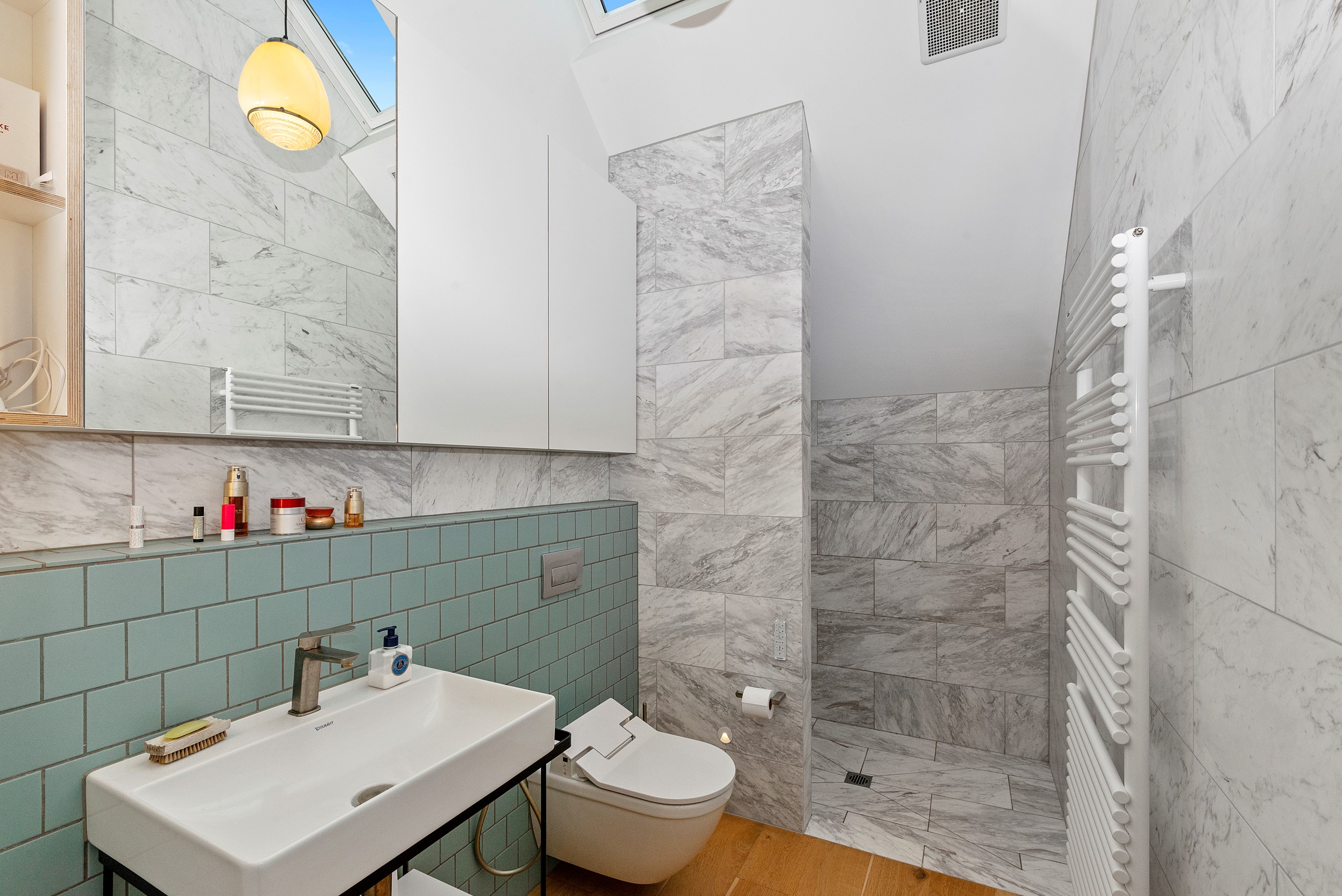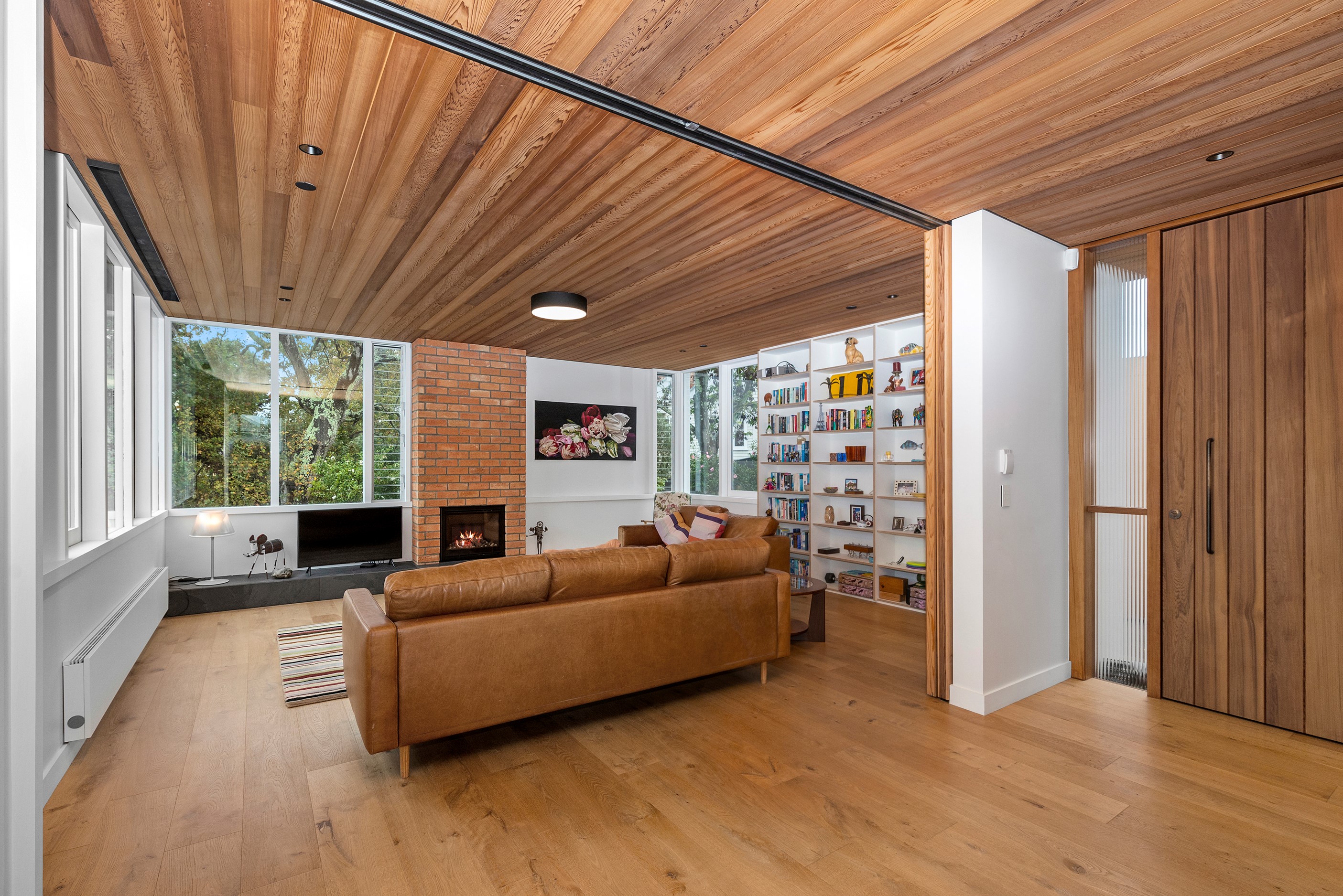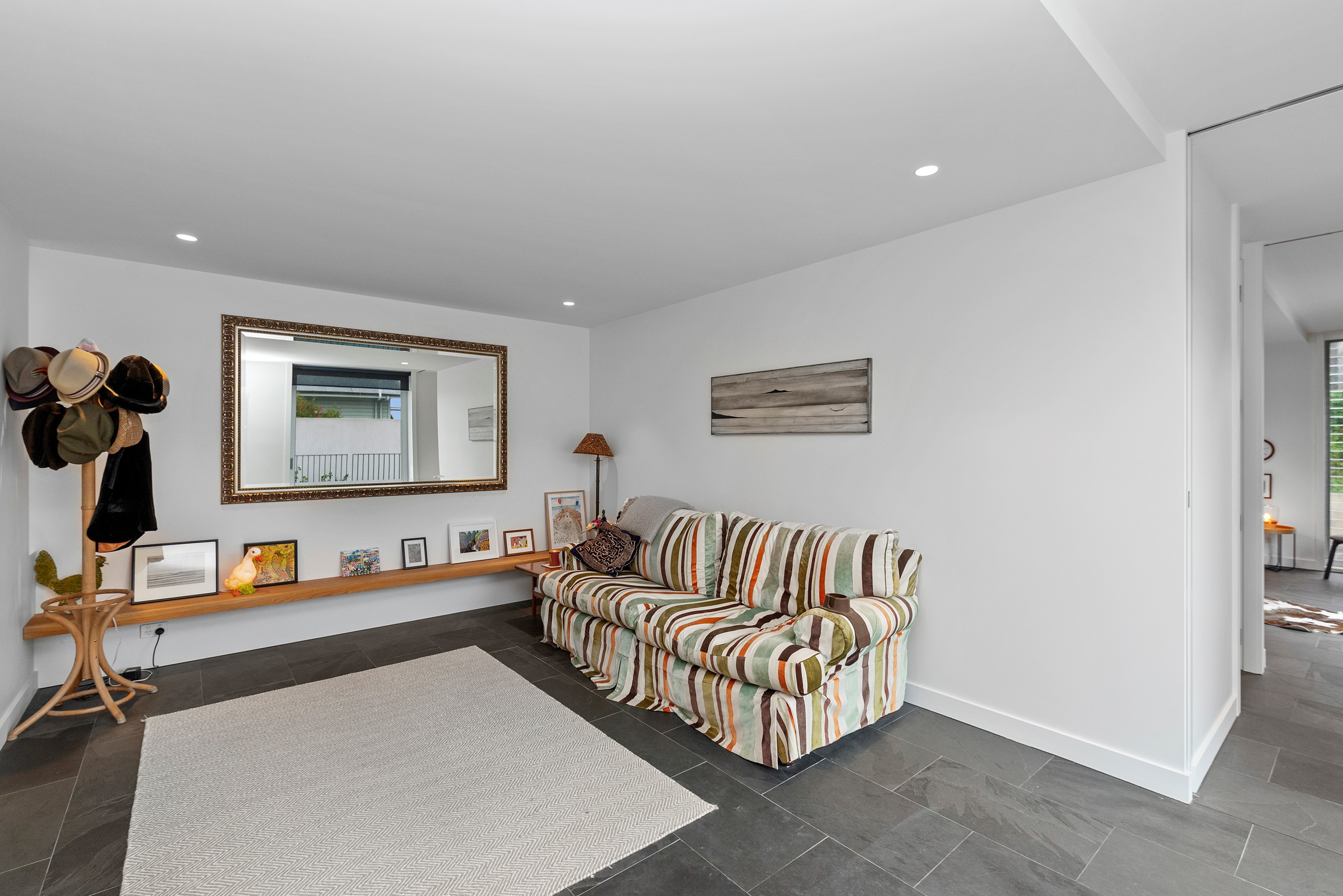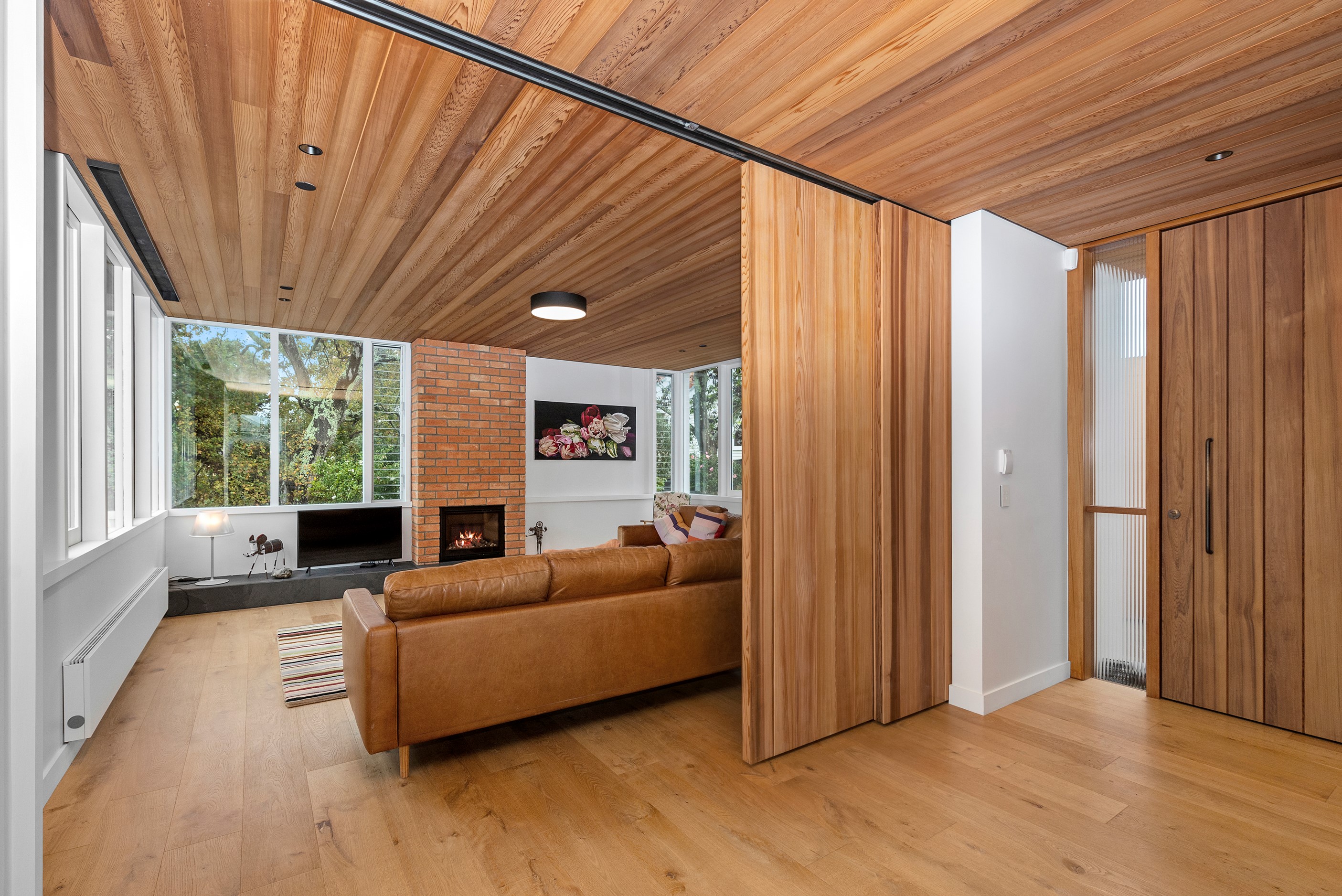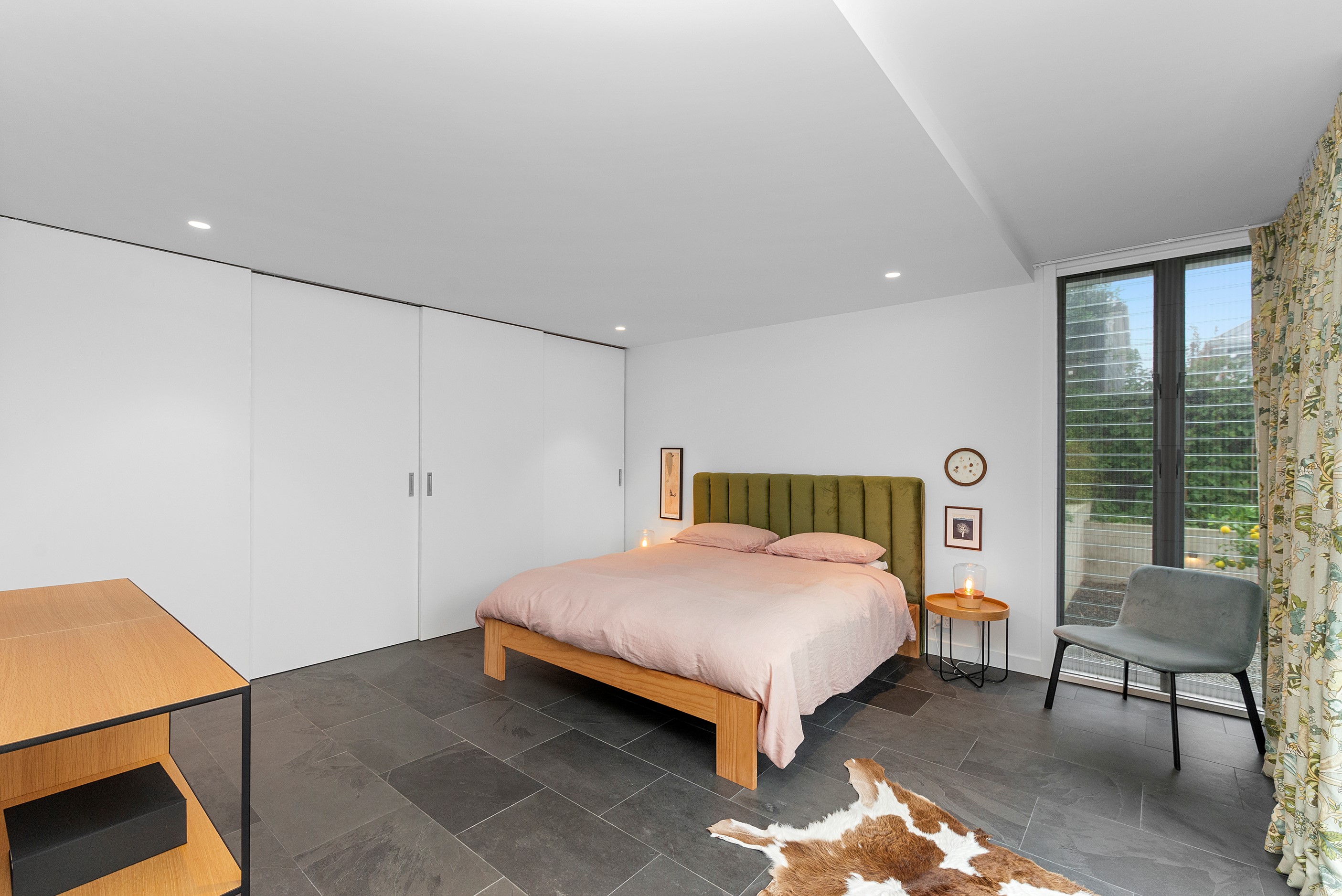Every available square metre of challenging terrain has been used in crafting this high-end architect-designed home in one of the city’s central suburbs. The tricky narrow site was just one of the challenges that needed overcoming to bring the owners’ vision to life. The results speak volumes. In this 260sqm home, two intersecting geometric forms culminate in three levels, copious light, a series of contained outdoor spaces and views to the Waitākere Ranges. The outlook over the concrete swimming pool, landscaping and park is pretty impressive too. Quality, locally sourced materials have been used here – horizontal and vertical weatherboard – and the result is a first-class finish. The interior palette is restrained: timber floors, ceilings, stairs and feature walls against a white backdrop. Brick adds a layer of warmth and a sense of connection to the heritage suburb the three-bedroom, two-bathroom home inhabits. You’ll also see bespoke extras, including a wine cellar and wrought-iron balustrade, as well as deviations from the neutral script, such as teal subway tiles in a bathroom. Custom-made flashings and gutters press home the point that these builders are at the top of their game.
