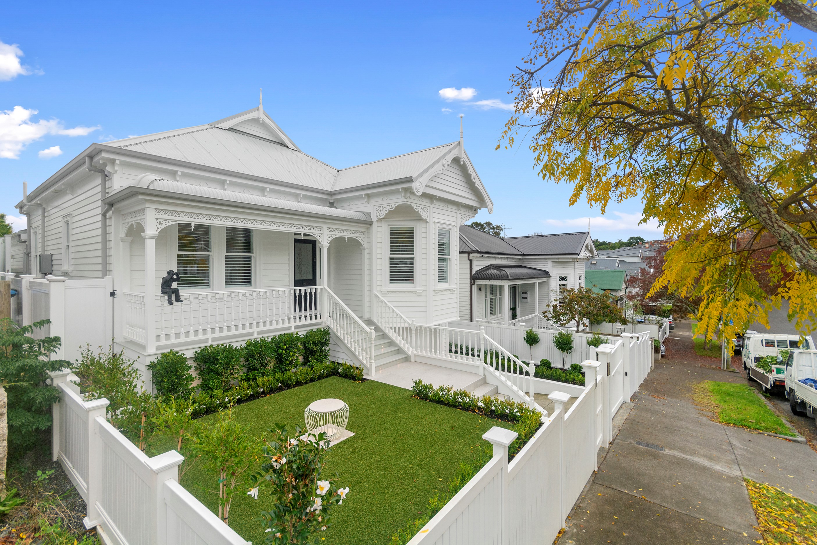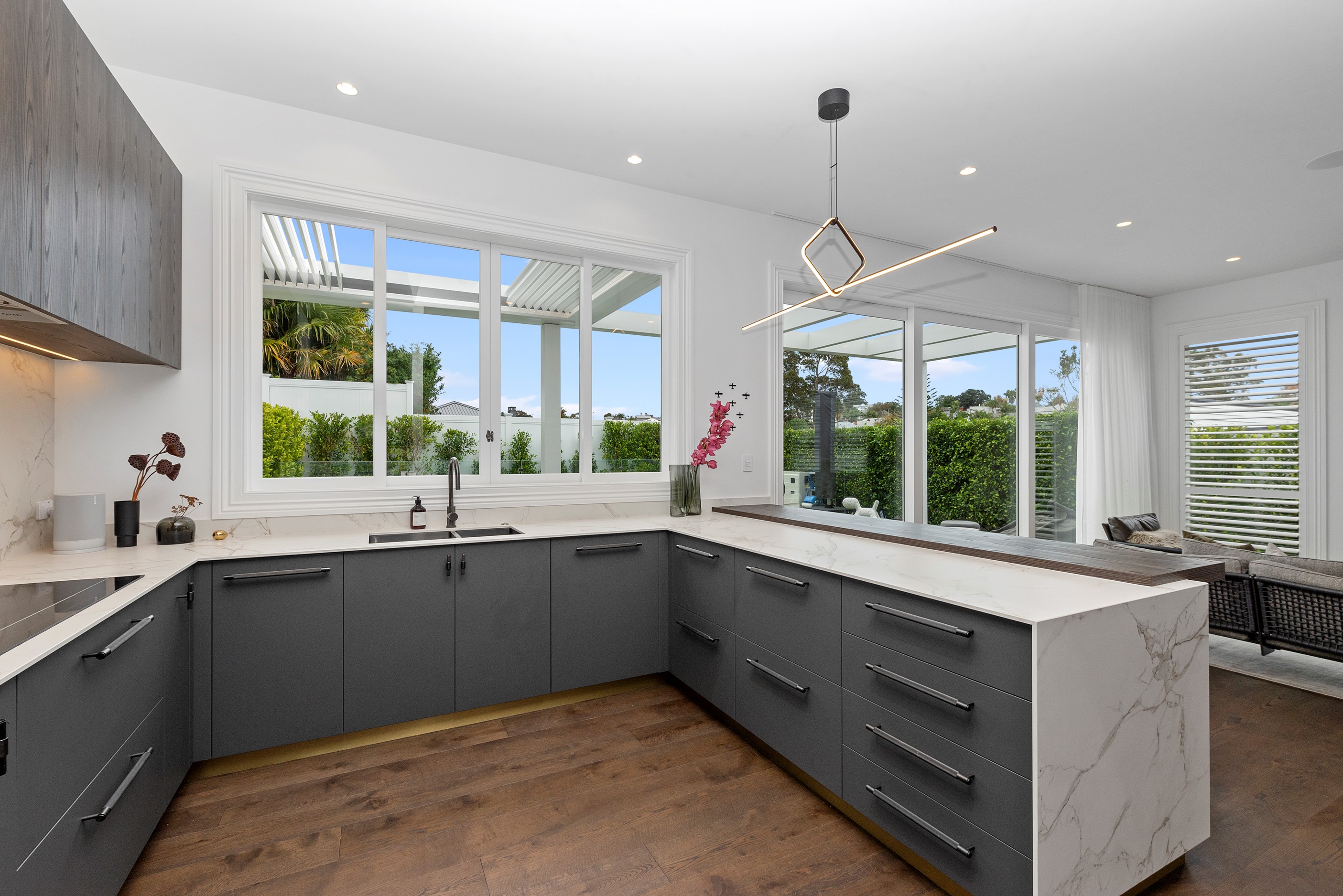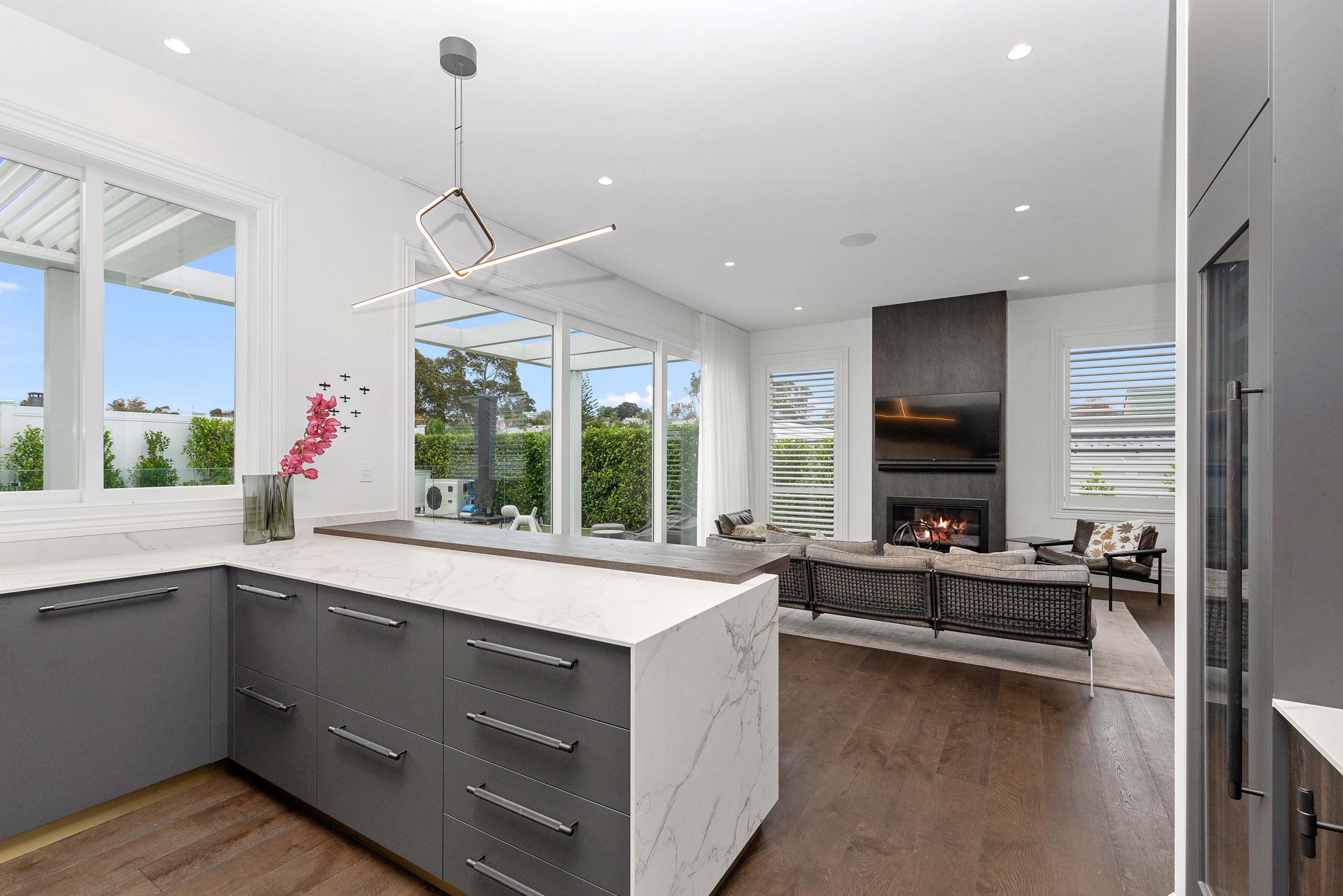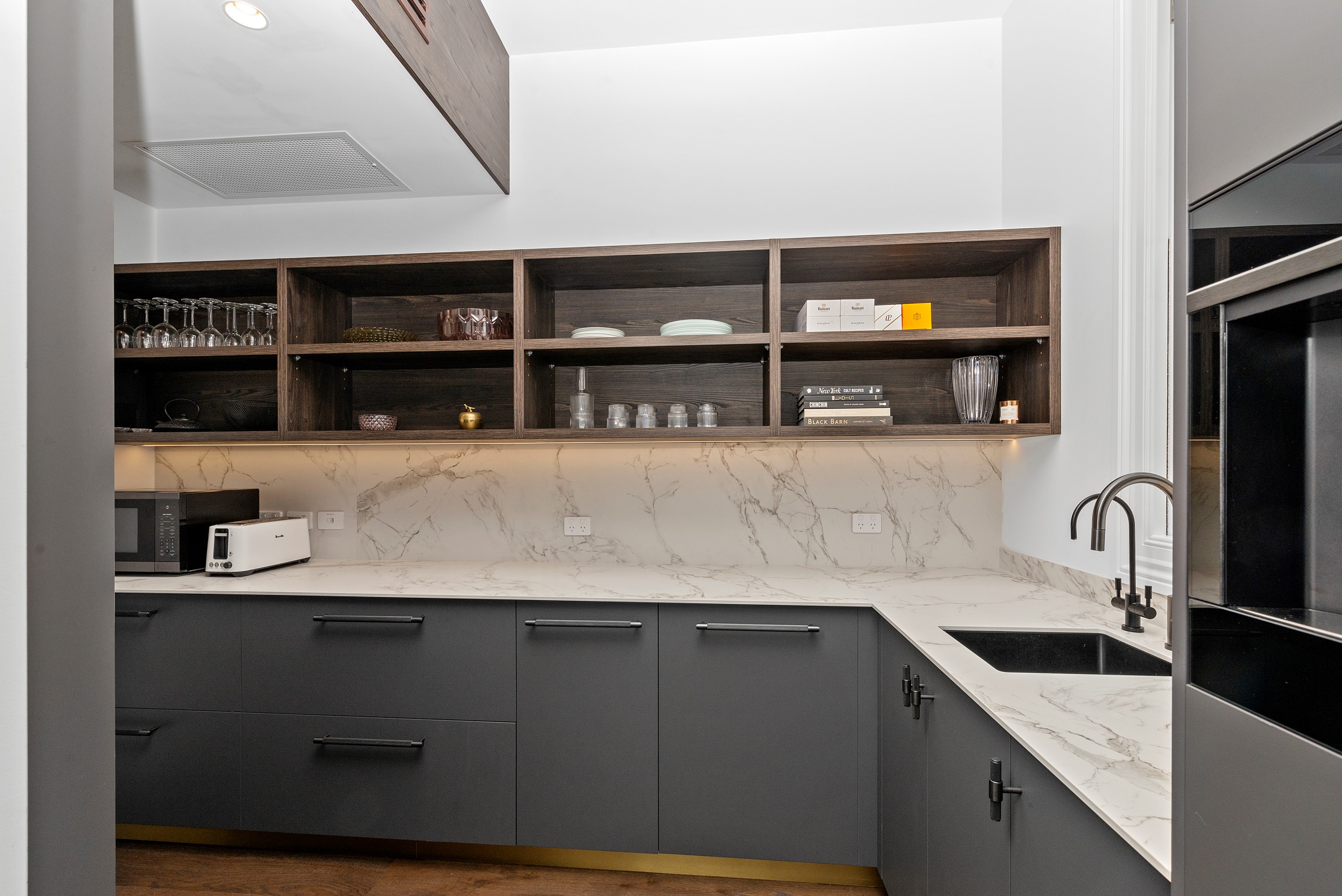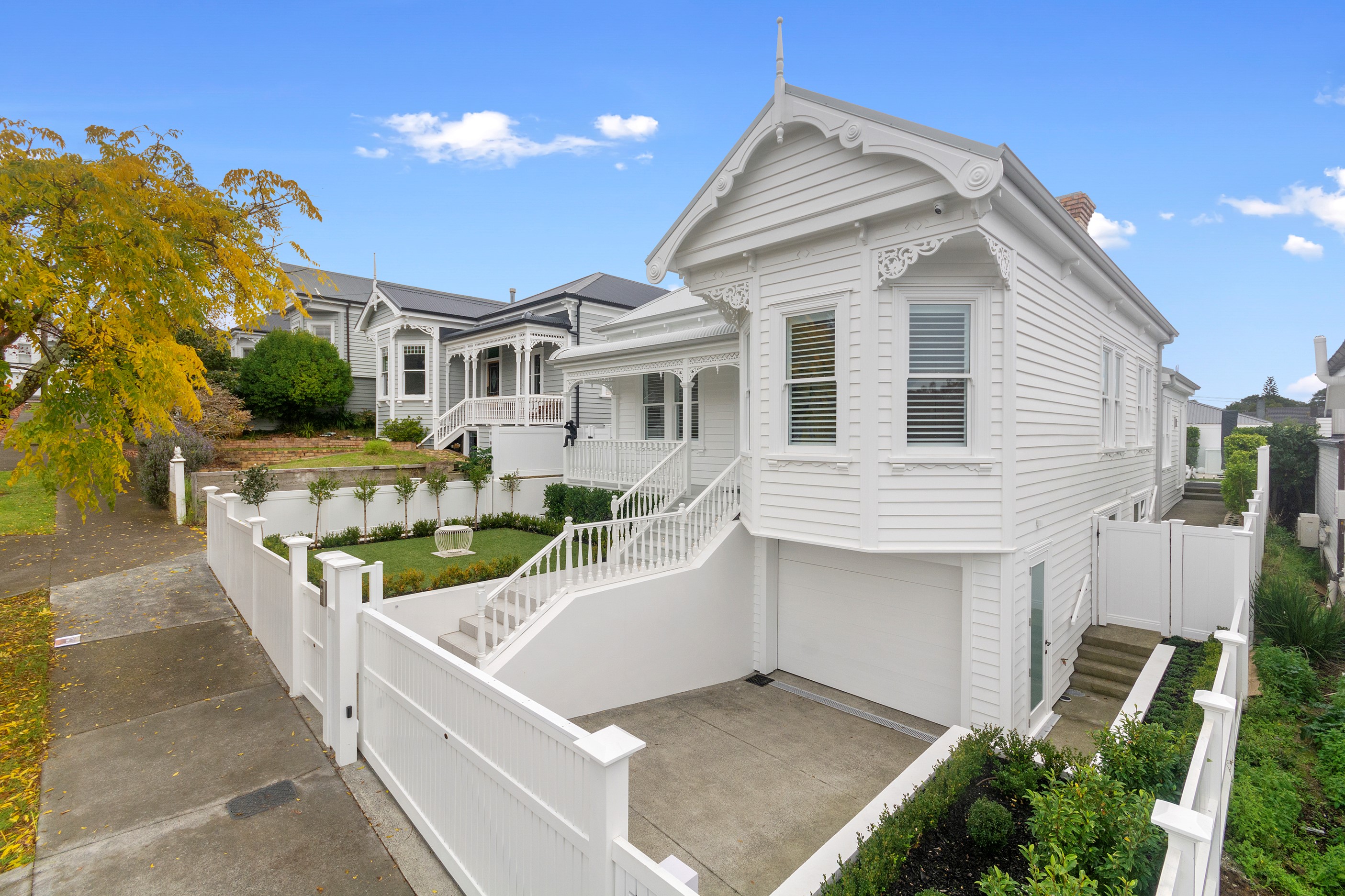 This white swan was once the ugliest duckling on the block. Peeling paint, rusty roofing, smashed windows and rooms coated in spray paint and graffiti – the builder had never seen a property in such a state. So began the metamorphosis, from dilapidated to drop-dead gorgeous. The once-sad villa has undergone a “head-to-toe” renovation and also includes an extension – the results are nothing short of remarkable. The now high-end, three-level 336sqm home has four bedrooms, three bathrooms, a swimming pool and bags of style. In order to create the new basement garage, laundry and storage space, the team took away 55 truckloads of earth and put the house on cribs. The middle floor is home to three reconfigured bedrooms, plus the extension out back with dove-grey kitchen and living-dining space flowing to an outdoor area and the pool. In the new upper level – you’ll find a private retreat with the main bedroom, ensuite and walk-in wardrobe. New life has been breathed into every room and space, and the additions have been handled seamlessly and sympathetically. It’s almost impossible to imagine where the old stops and new begins, such is the craftsmanship on this project. It’s perfect.