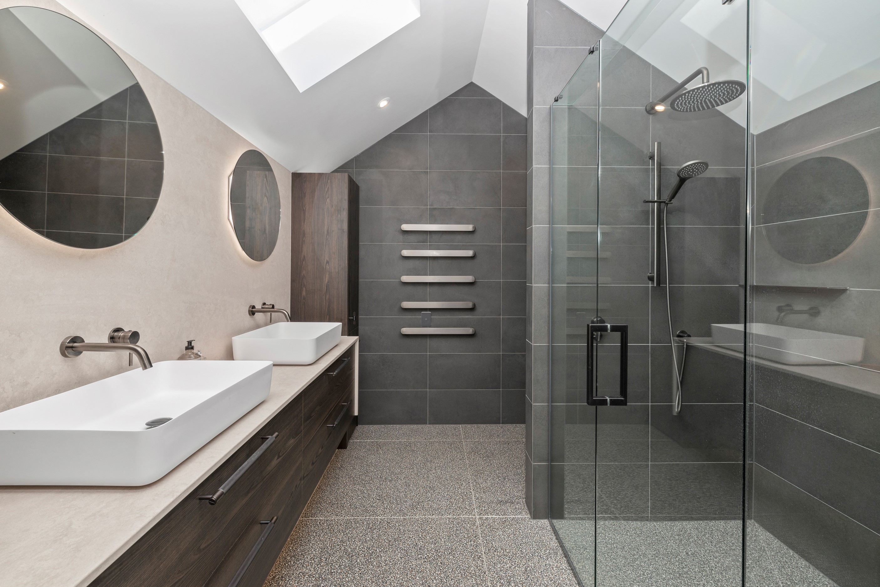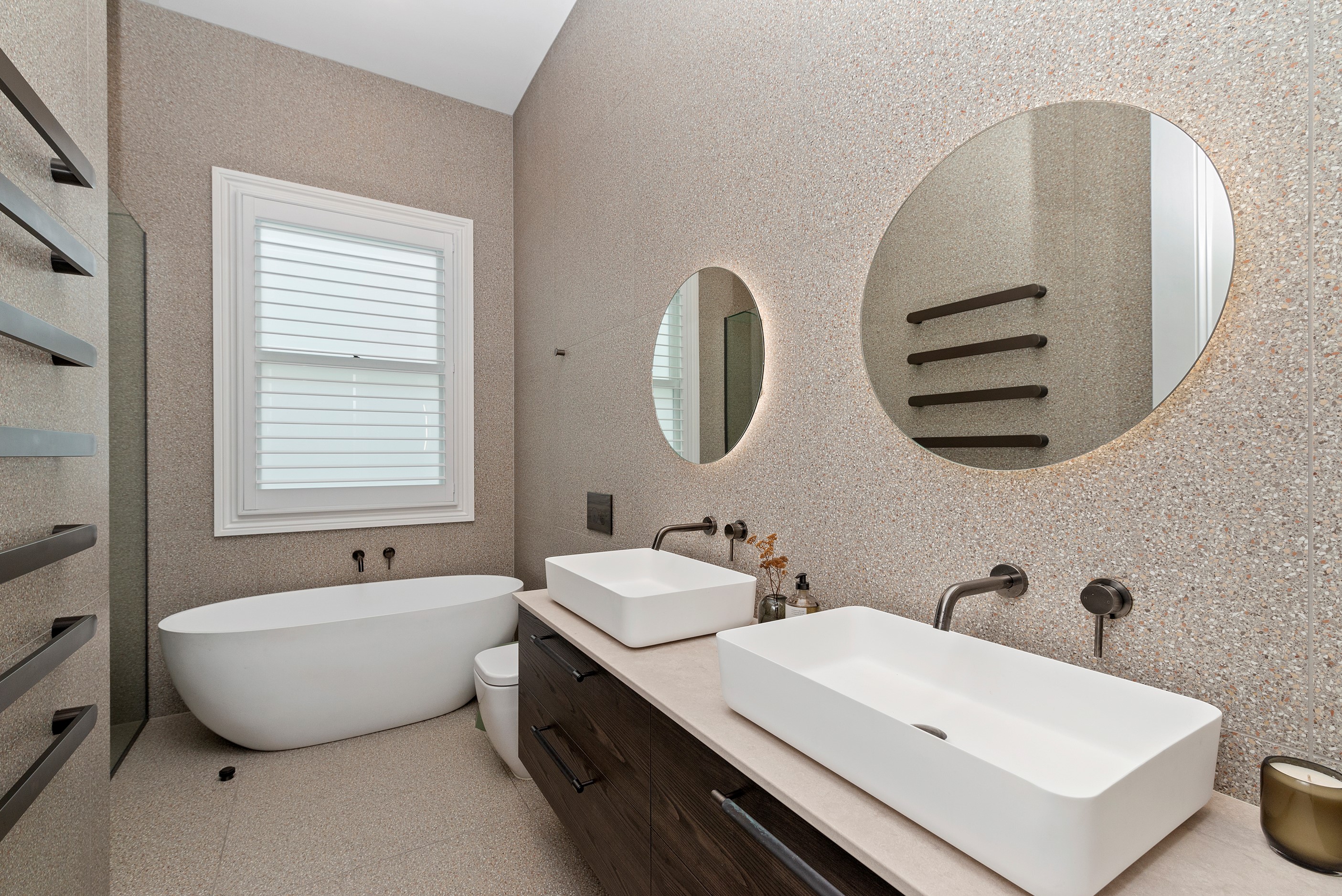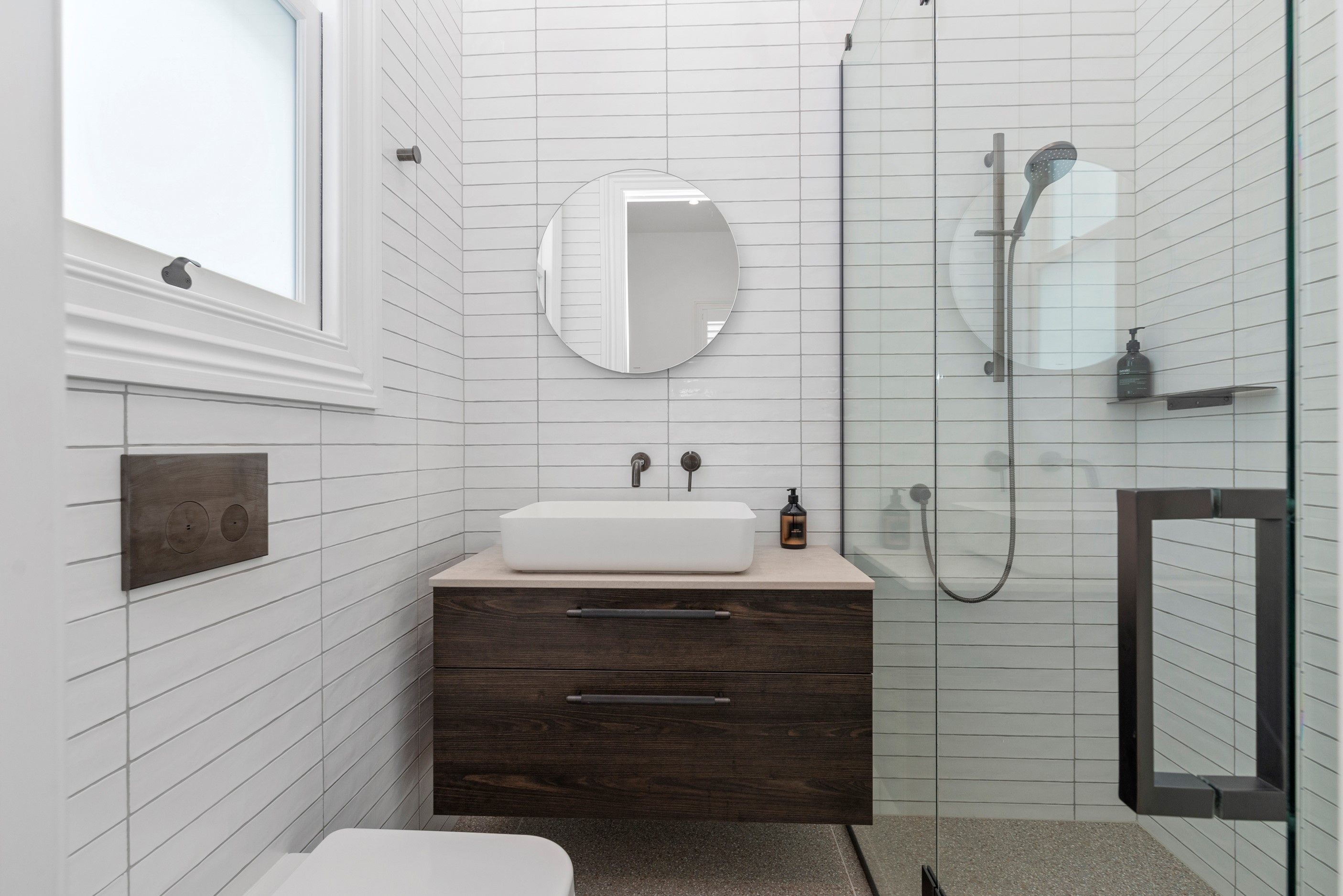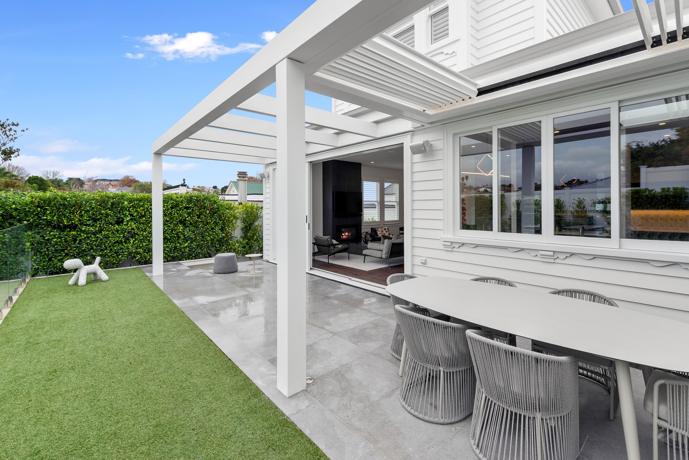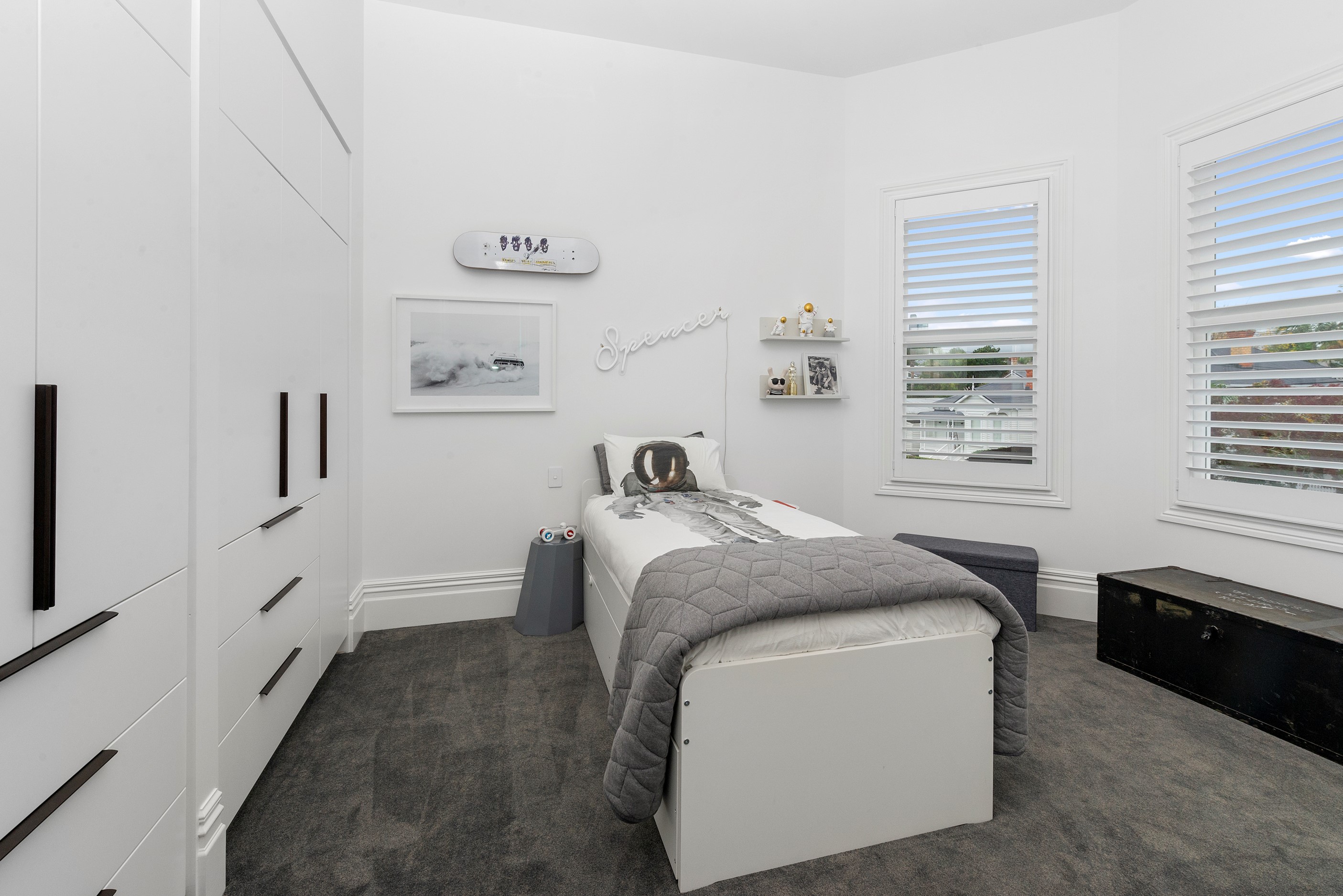 This white swan was once the ugliest duckling on the block. Peeling paint, rusty roofing, smashed windows and rooms coated in spray paint and graffiti – the builder had never seen a property in such a state. So began the metamorphosis, from dilapidated to drop-dead gorgeous. The once-sad villa has undergone a “head-to-toe” renovation and also includes an extension – the results are nothing short of remarkable. The now high-end, three-level 336sqm home has four bedrooms, three bathrooms, a swimming pool and bags of style. In order to create the new basement garage, laundry and storage space, the team took away 55 truckloads of earth and put the house on cribs. The middle floor is home to three reconfigured bedrooms, plus the extension out back with dove-grey kitchen and living-dining space flowing to an outdoor area and the pool. In the new upper level – you’ll find a private retreat with the main bedroom, ensuite and walk-in wardrobe. New life has been breathed into every room and space, and the additions have been handled seamlessly and sympathetically. It’s almost impossible to imagine where the old stops and new begins, such is the craftsmanship on this project. It’s perfect.
