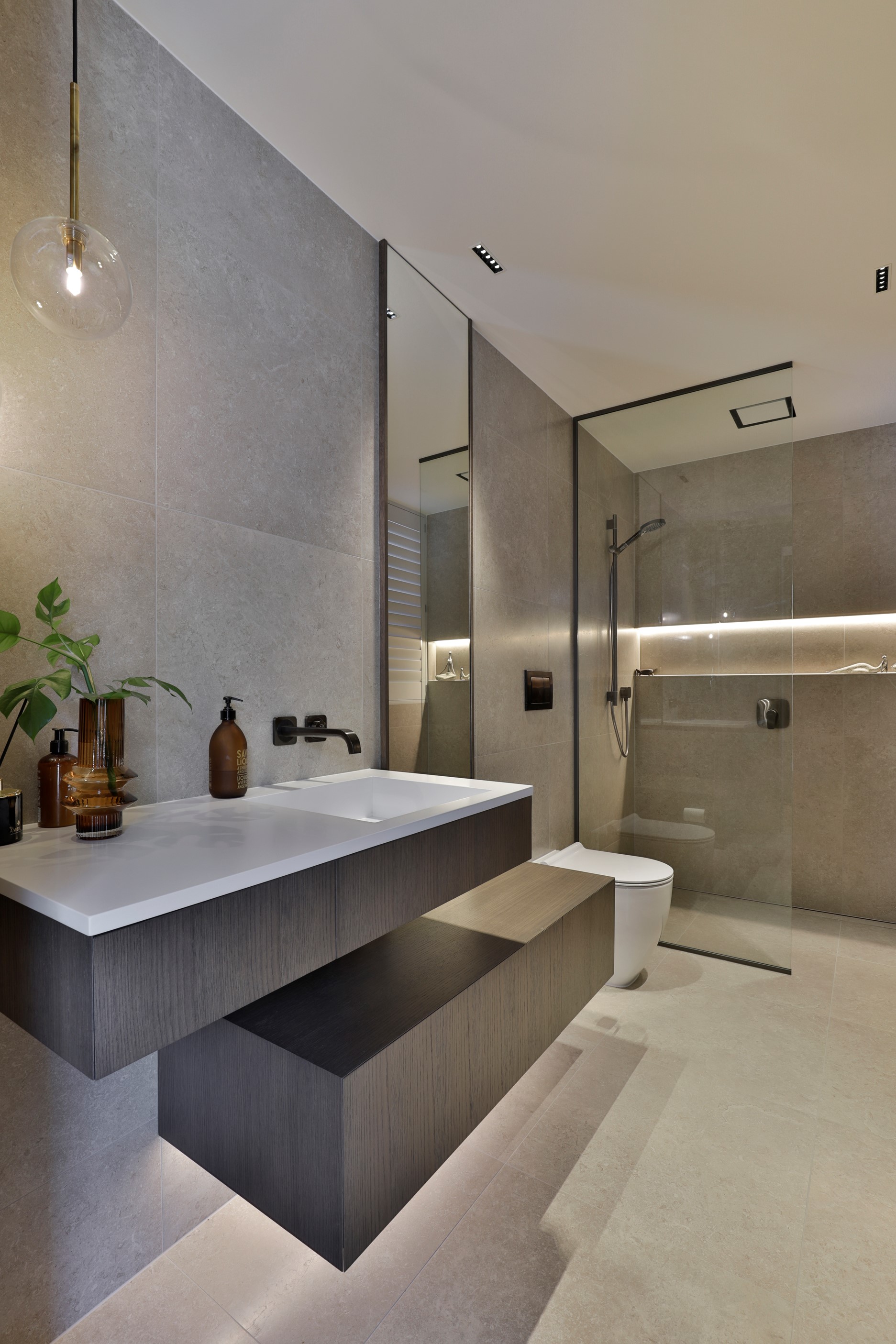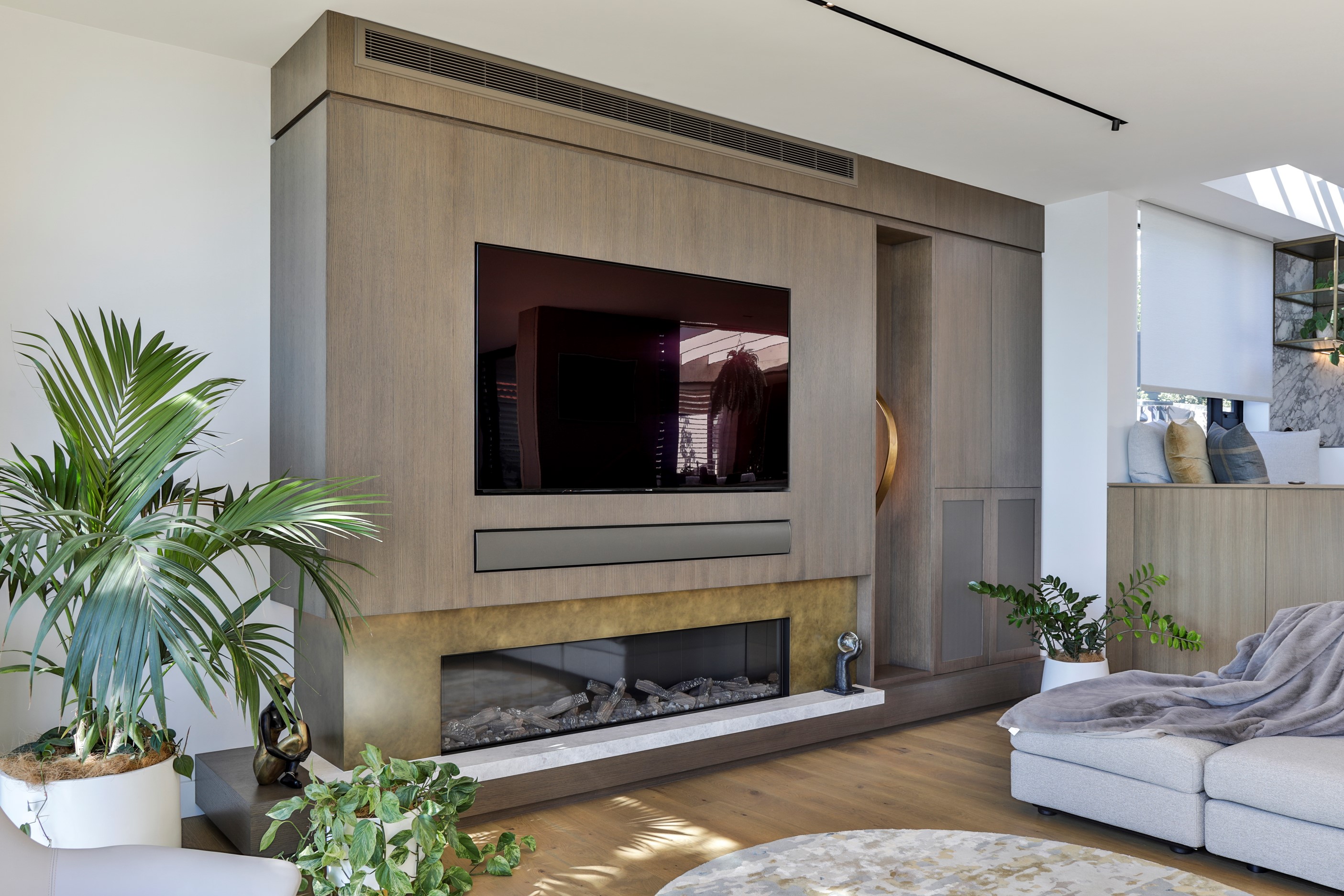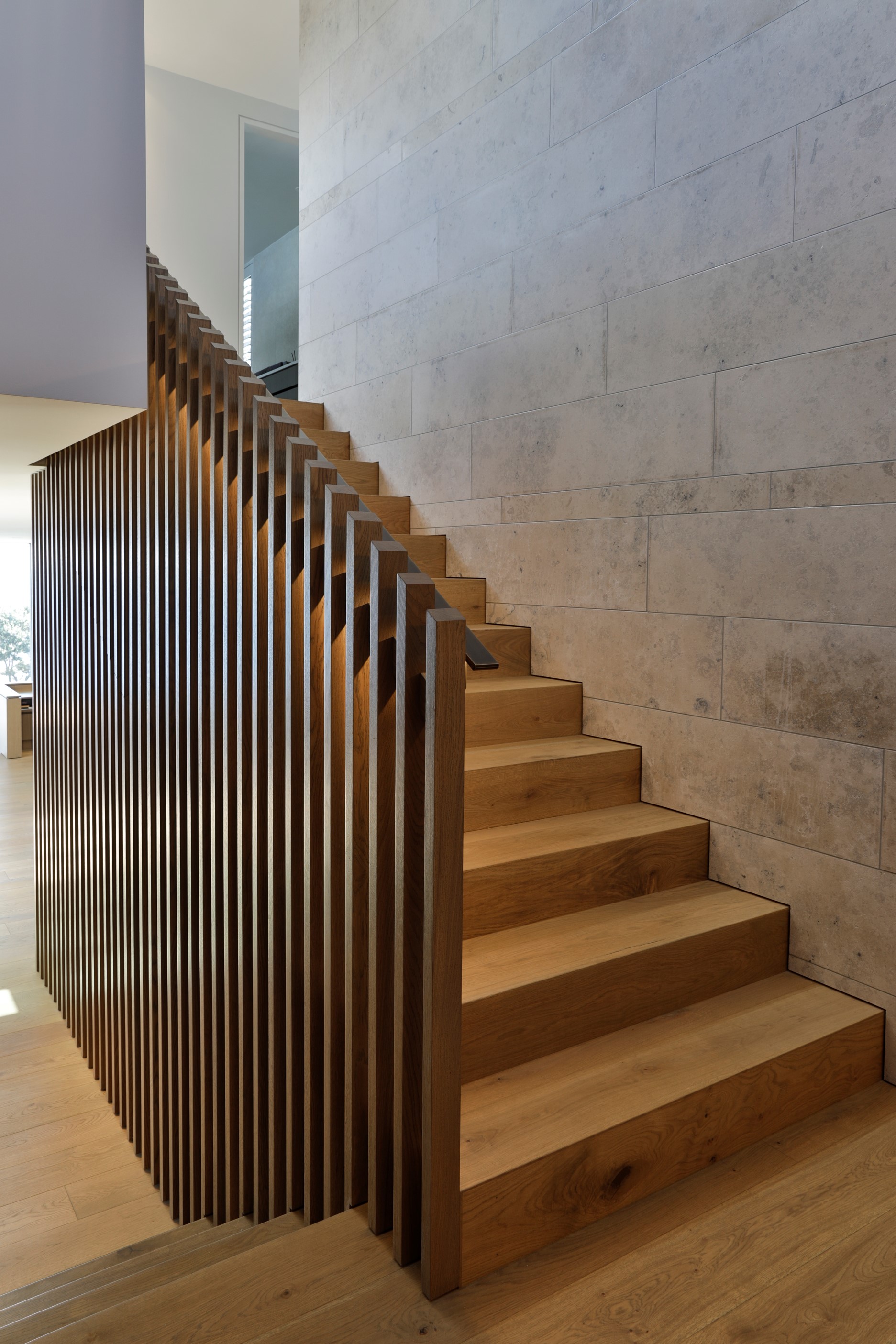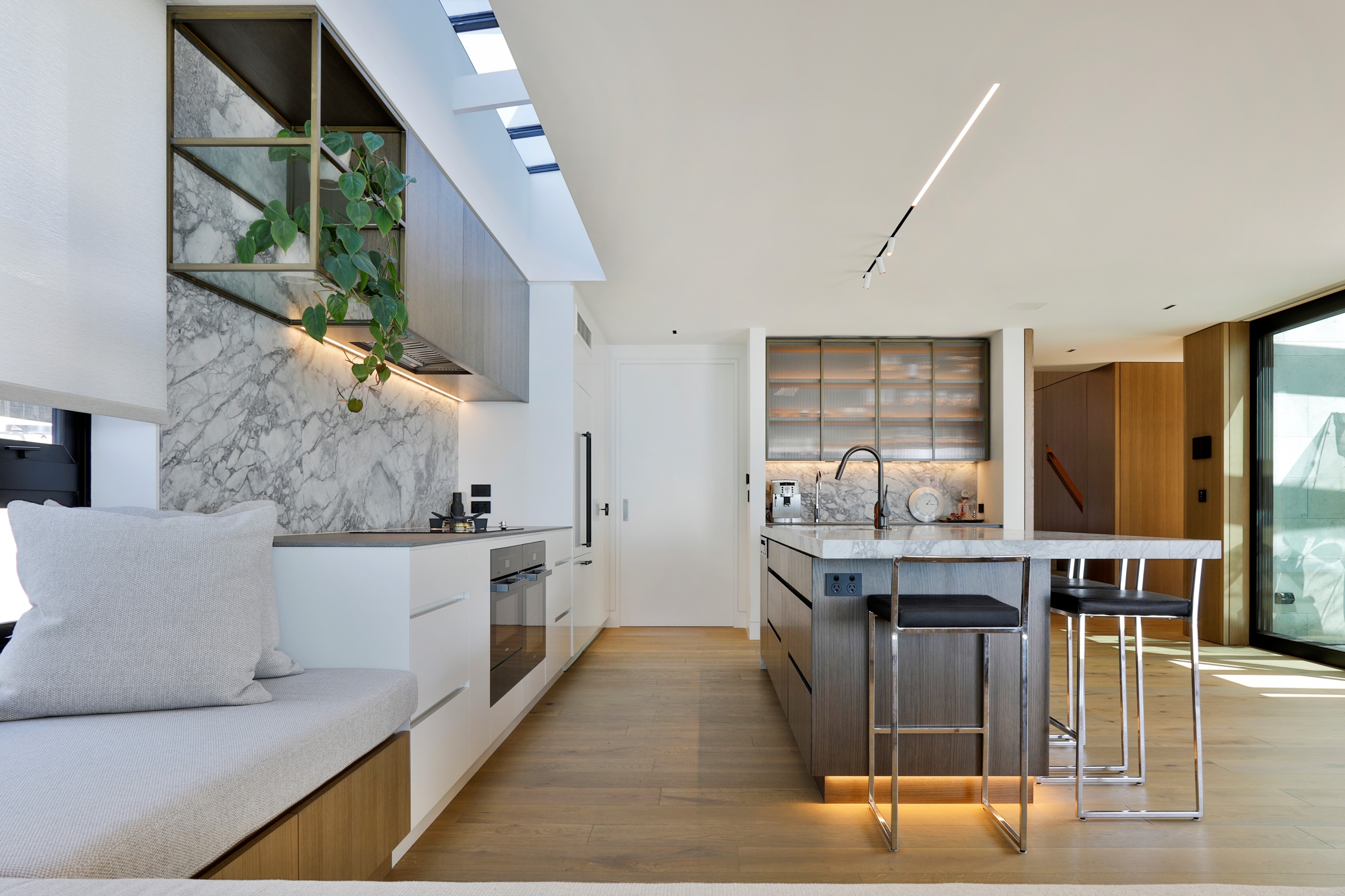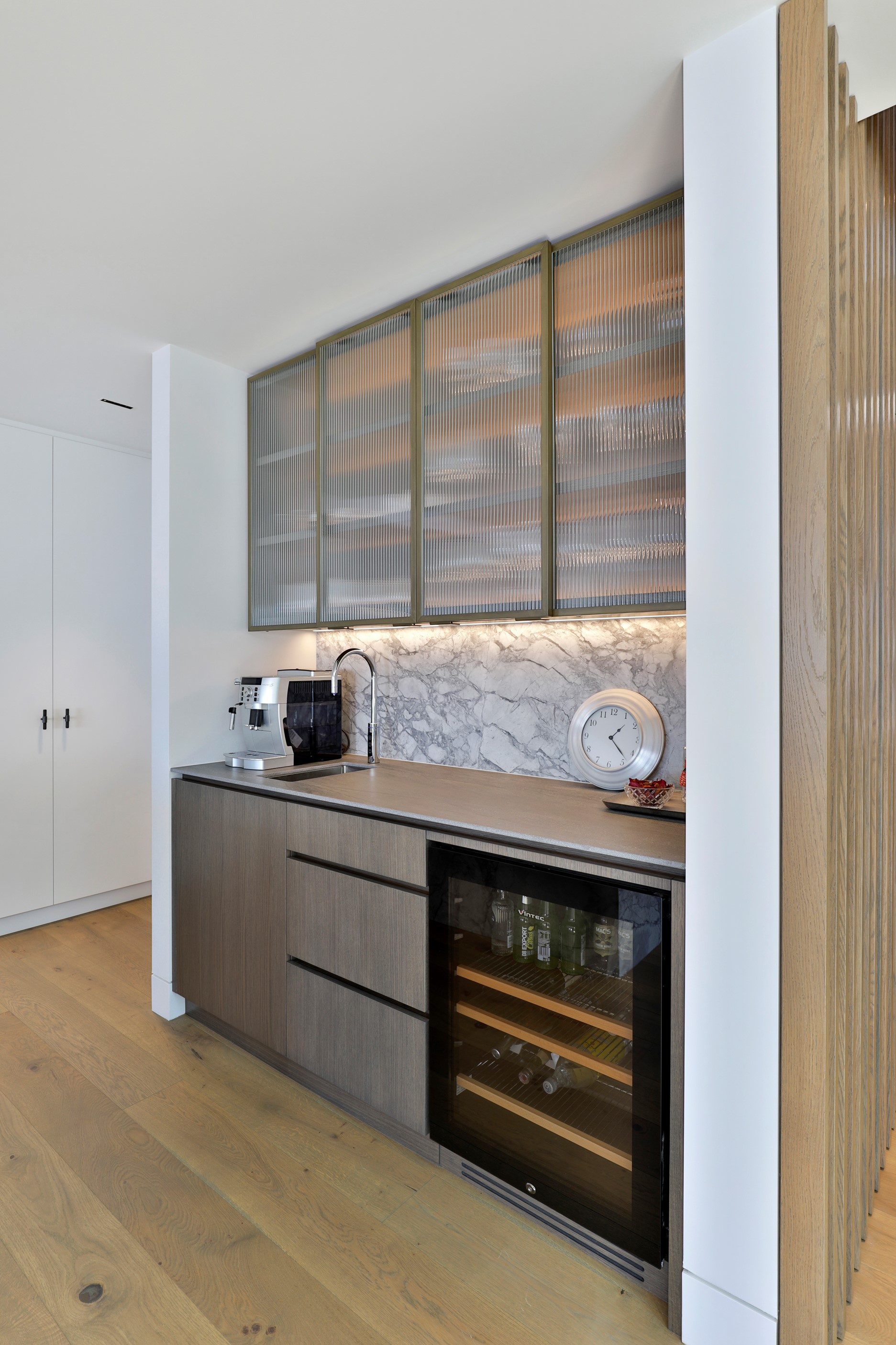 When you own a piece of coastal paradise like this, what you build on it needs to be exceptional. That was certainly the case for the clients who wanted to replace the rundown house on the site with their dream home. Enter the teams from QPC Build Group and award-winning Scarlet Architects who delivered the clients’ vision of a bespoke, luxury cliff-top home. Collaboration was always part of the service – enthusiasm, commitment and assurance, without the stress – even with the tumult of Covid lockdowns and resulting complications. The dream home was completed with minimal delay and maximum expertise. Like many homes of this calibre, it is spacious – four bedrooms, three bathrooms and three living areas in its 369sqm footprint – but that’s not where the magic resides. It’s crafted into the details, thanks to the builders’ care and attention. You’ll find finesse in the way the home drinks in views of the Hauraki Gulf; in the sheltered loggia; in the many timber interior features, including a wall with a secret door; and the sunken living room, which is a study in understated luxury. This two-level, beachfront house clad in Jura Limestone and Vulcan Abodo, and nestled between the pōhutukawa, is a dream home by any measure.