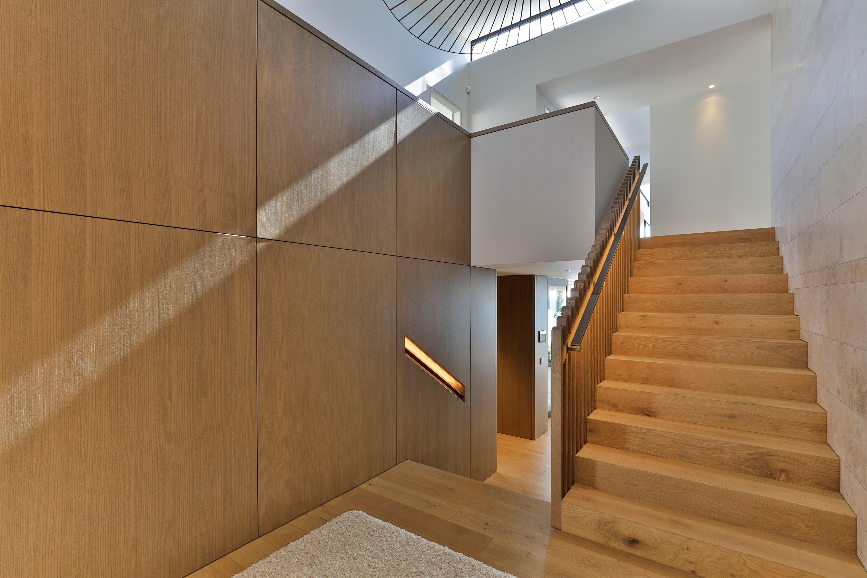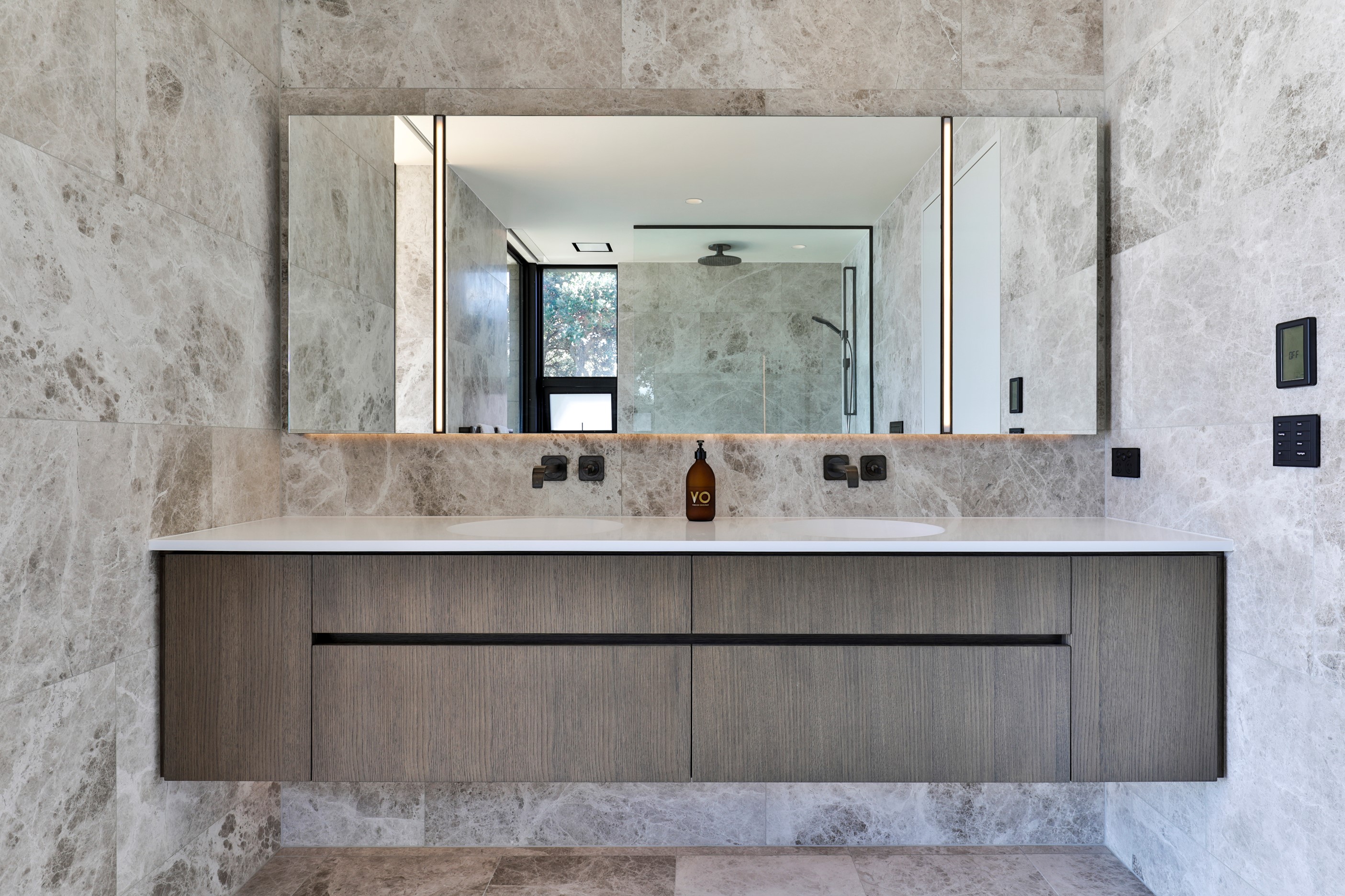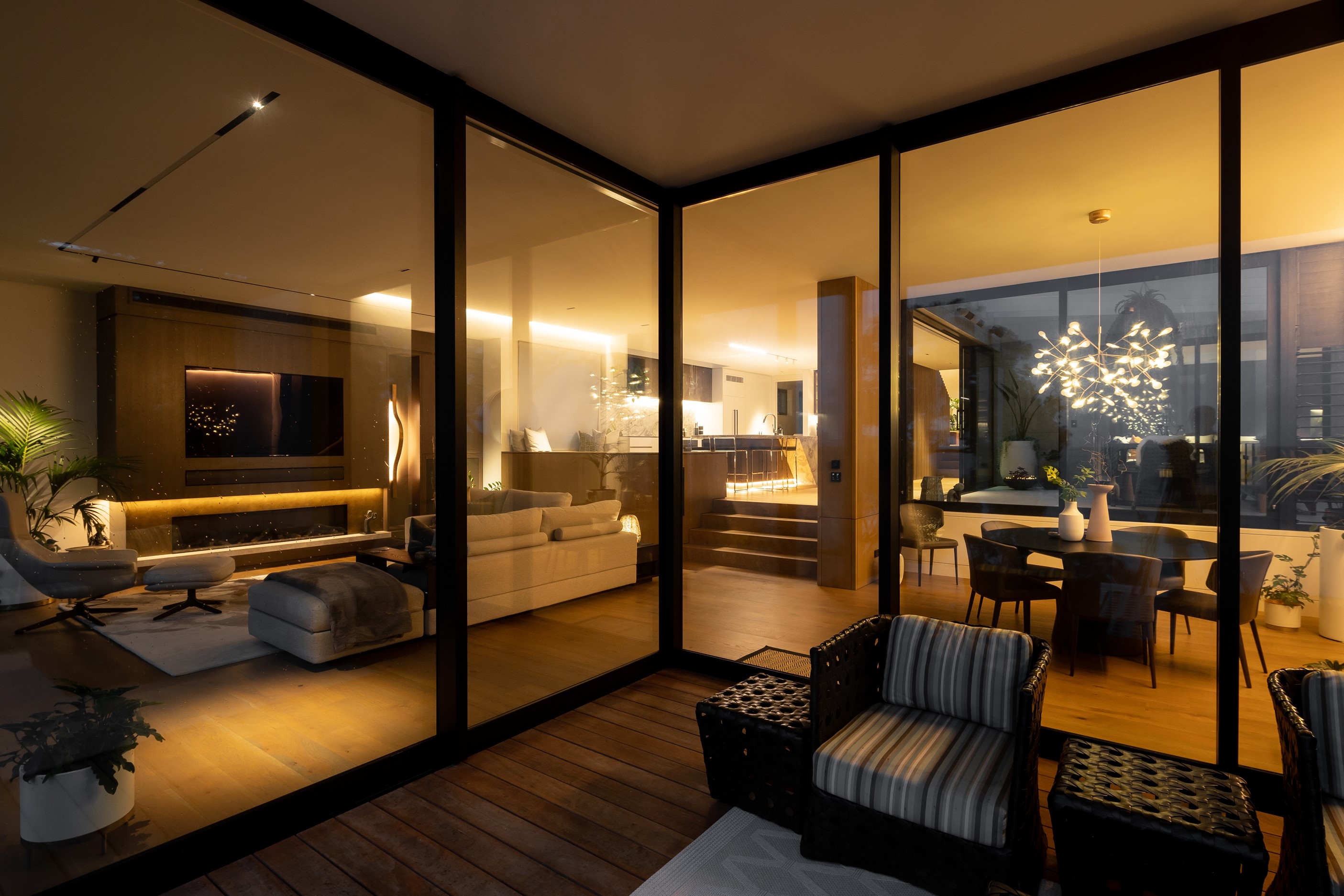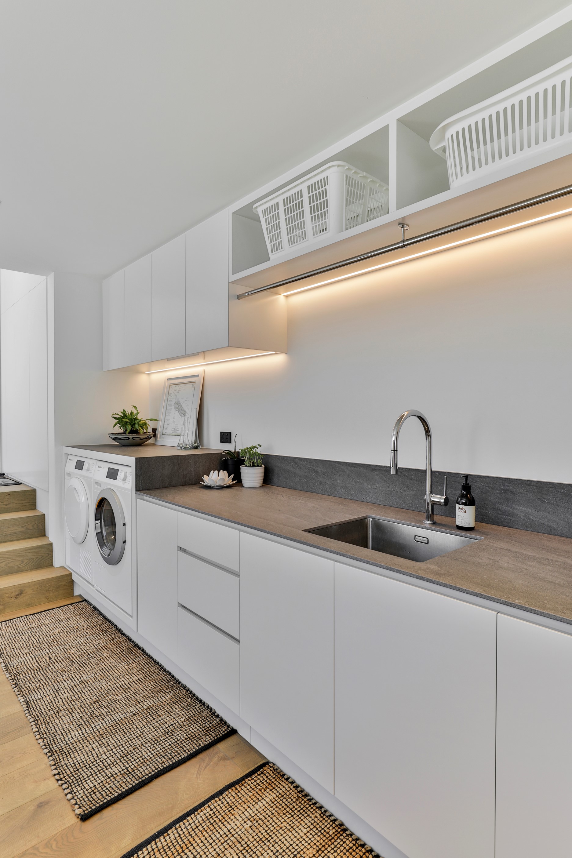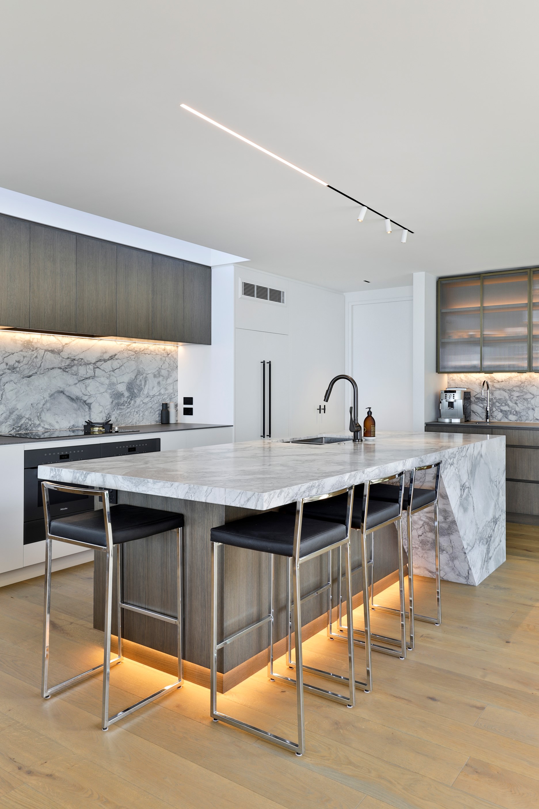 When you own a piece of coastal paradise like this, what you build on it needs to be exceptional. That was certainly the case for the clients who wanted to replace the rundown house on the site with their dream home. Enter the teams from QPC Build Group and award-winning Scarlet Architects who delivered the clients’ vision of a bespoke, luxury cliff-top home. Collaboration was always part of the service – enthusiasm, commitment and assurance, without the stress – even with the tumult of Covid lockdowns and resulting complications. The dream home was completed with minimal delay and maximum expertise. Like many homes of this calibre, it is spacious – four bedrooms, three bathrooms and three living areas in its 369sqm footprint – but that’s not where the magic resides. It’s crafted into the details, thanks to the builders’ care and attention. You’ll find finesse in the way the home drinks in views of the Hauraki Gulf; in the sheltered loggia; in the many timber interior features, including a wall with a secret door; and the sunken living room, which is a study in understated luxury. This two-level, beachfront house clad in Jura Limestone and Vulcan Abodo, and nestled between the pōhutukawa, is a dream home by any measure.