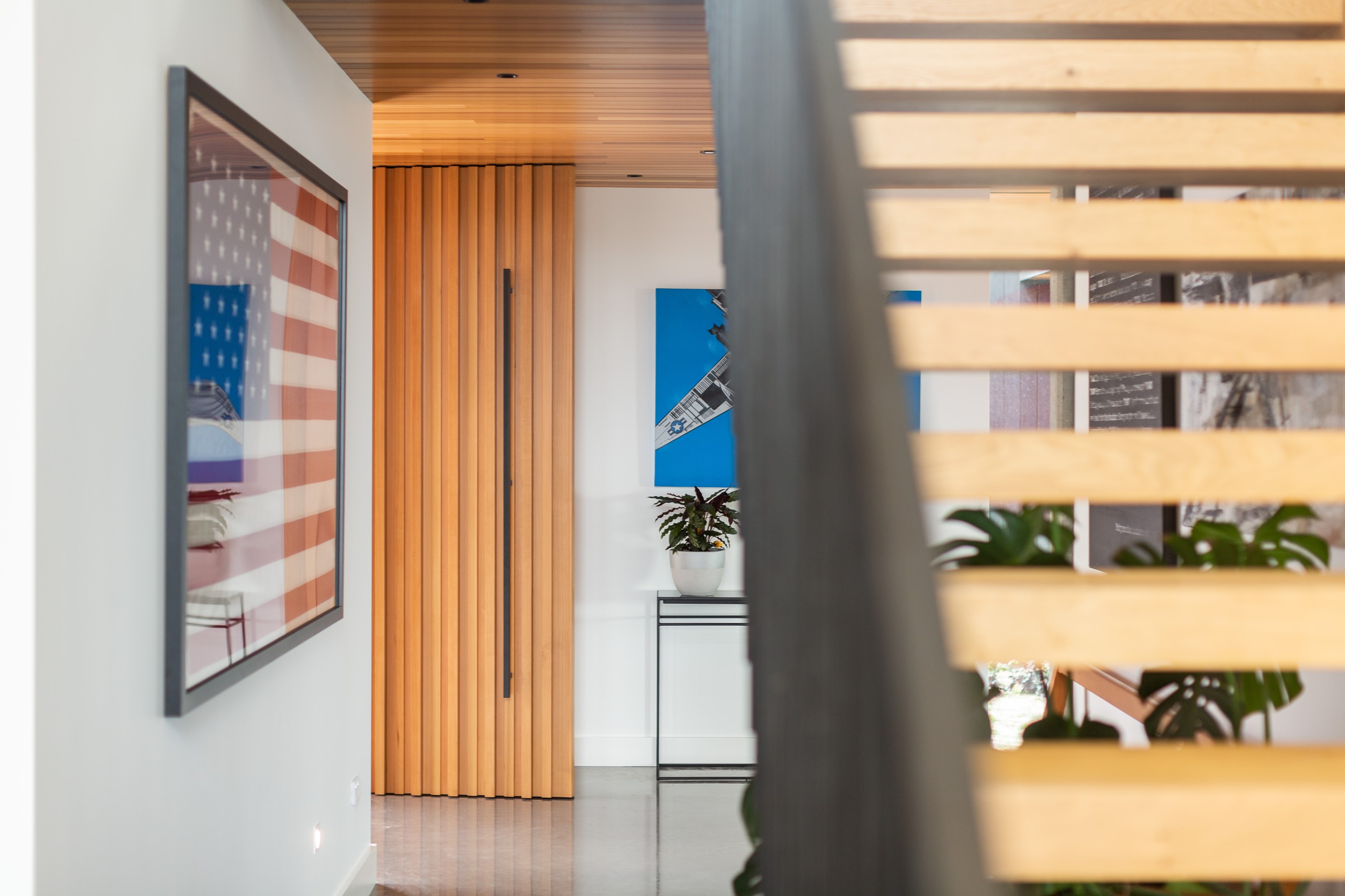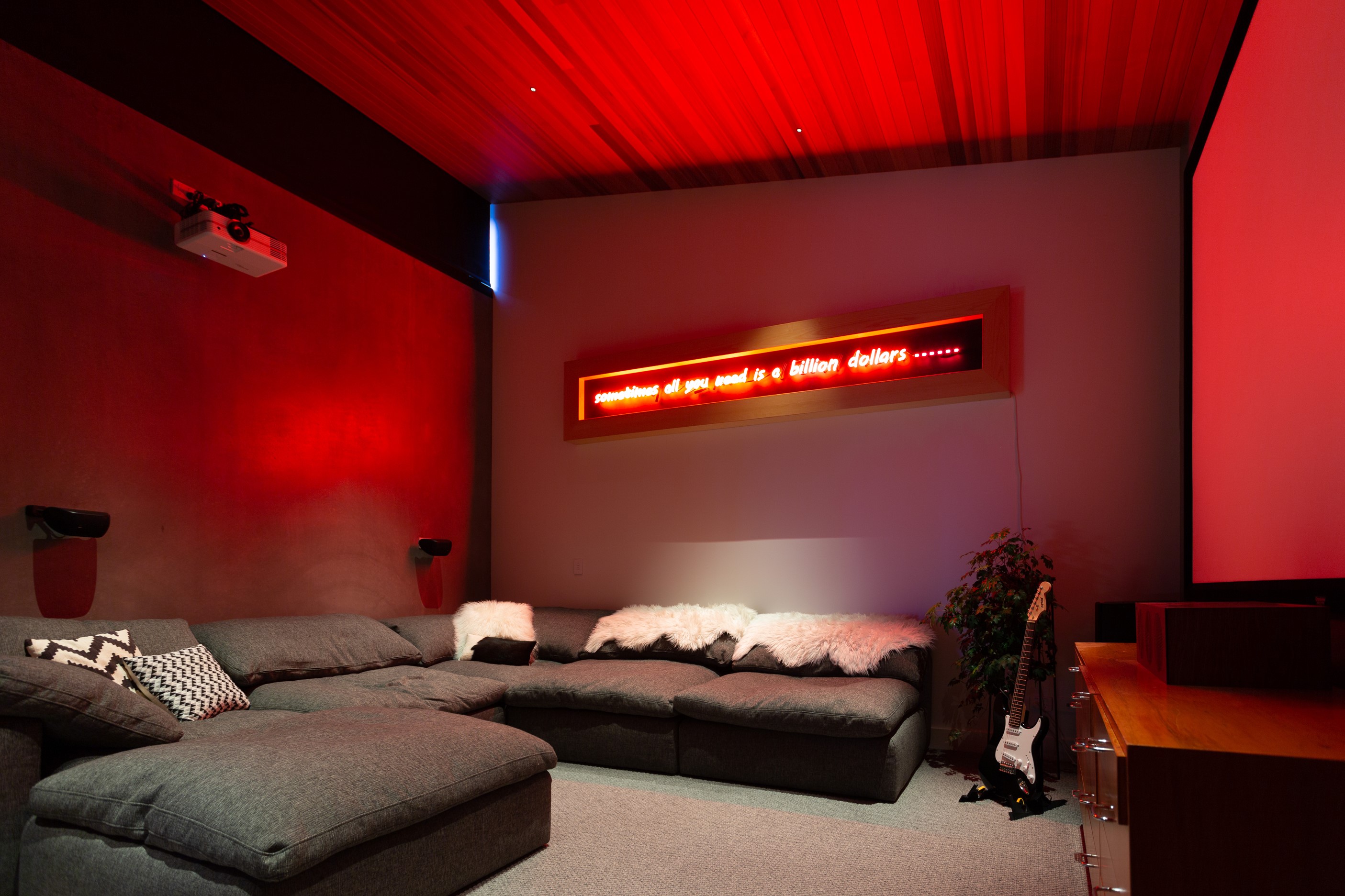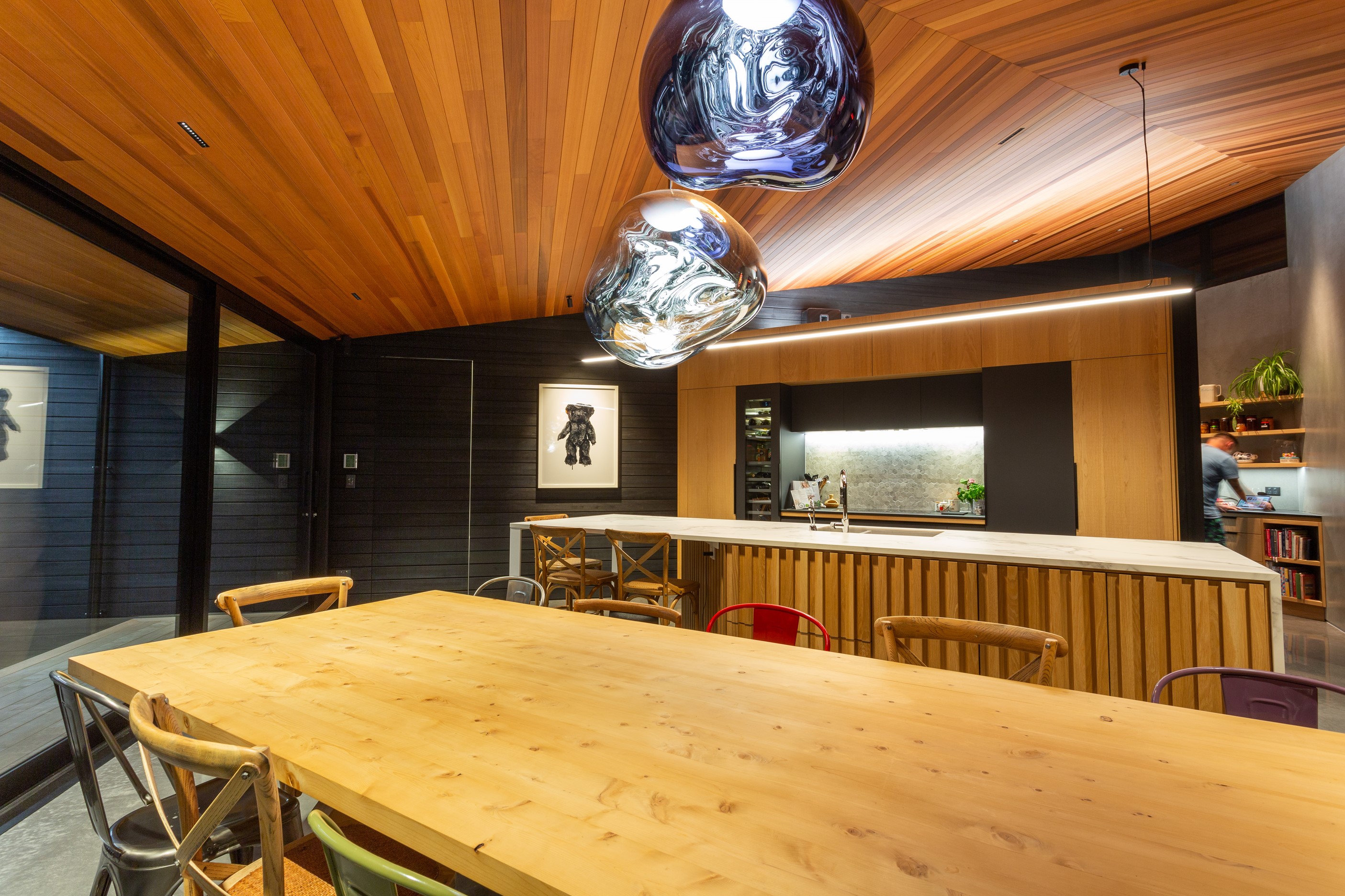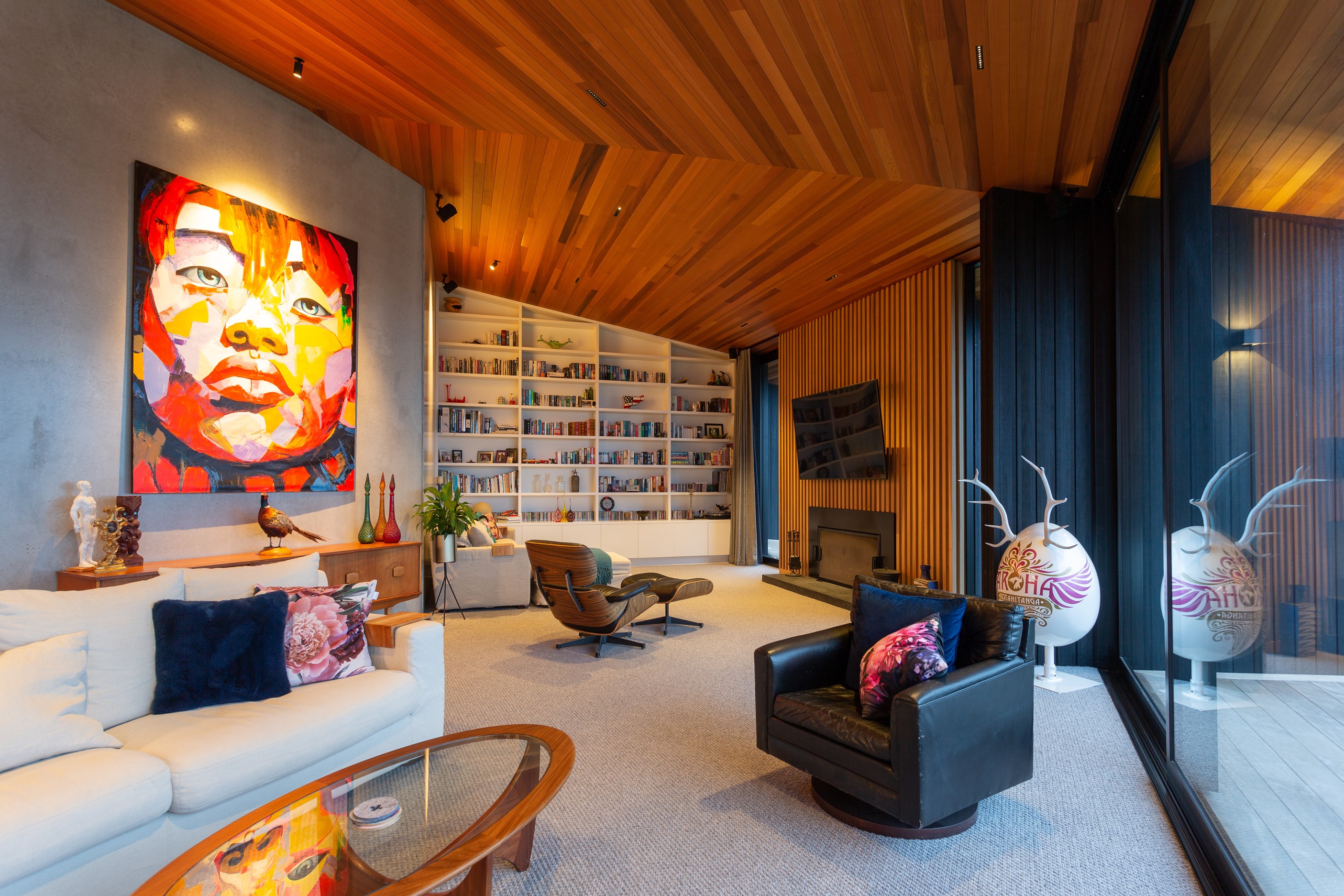 To the north you can see Mount Maunganui, to the east Papamoa. Out west the Kaimai Range looms large and to the south, rolling green hills fill the horizon. The views alone from this site make it special. The house that perches on it, however, is just as impressive. It boasts 475 sqm of scrupulously crafted details, and has a raft of sustainability and energy conservation features.Precast concrete panels anchor the four-bedroom house to its ridge line site, but they also provide architectural definition and texture to the interior. In the open-plan living spaces, angled ceilings are lined in cedar, a task that required weeks of meticulous placement. In the living wing, the sunken lounge makes the most of spectacular views on offer. In contrast, the cinema room is cocooned by the concrete panels, making it a cosy retreat.The connection to the outdoors is also strong with 100 sqm of decking that wraps the living spaces and invites the residents to dine and relax in the fresh air.Sustainability? Passive solar design, a solar hot-water system and thermal and acoustic insulation make the house comfortable all year round. Also, material choices such as Abodo cladding were chosen for their longevity.
