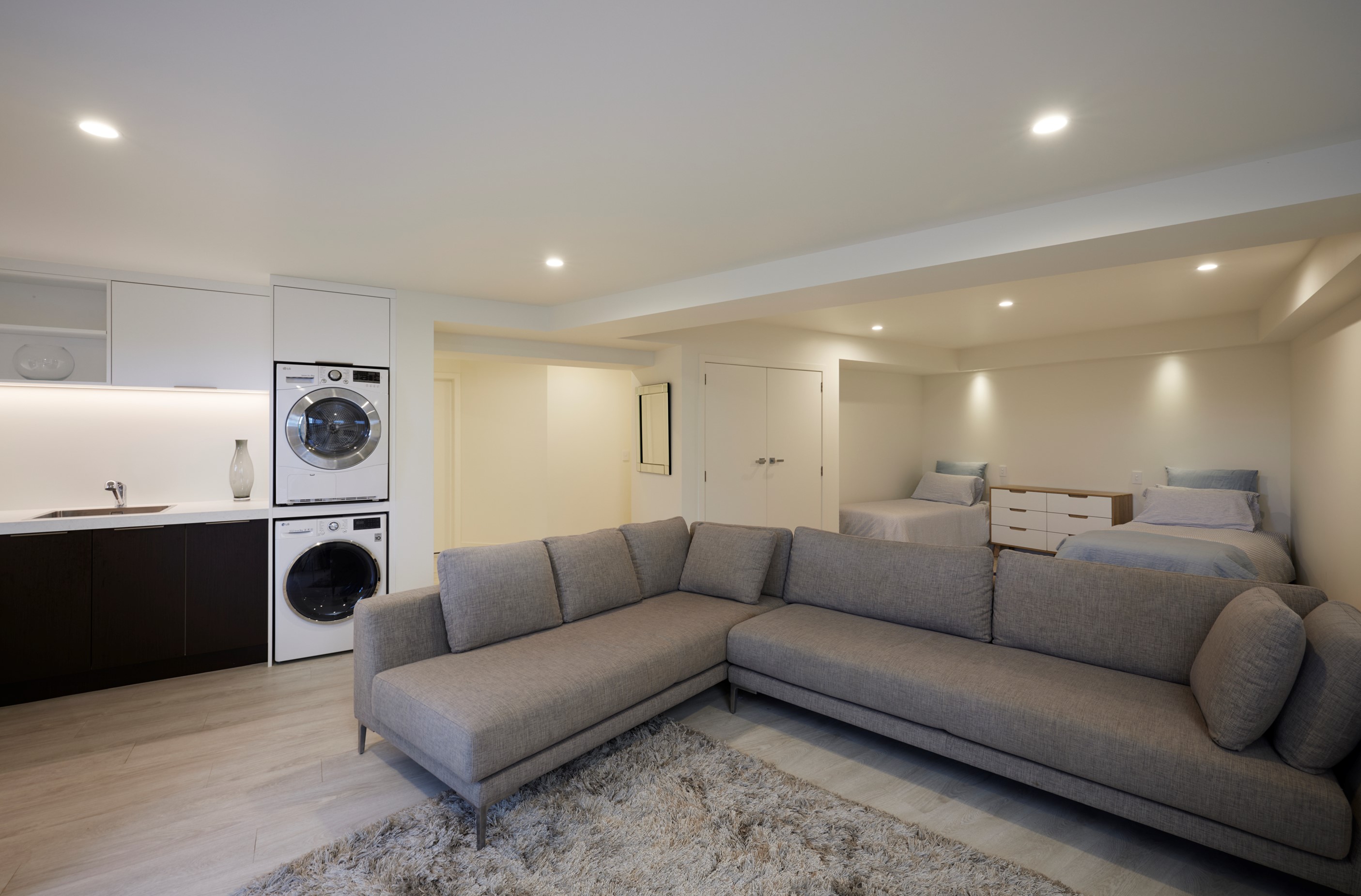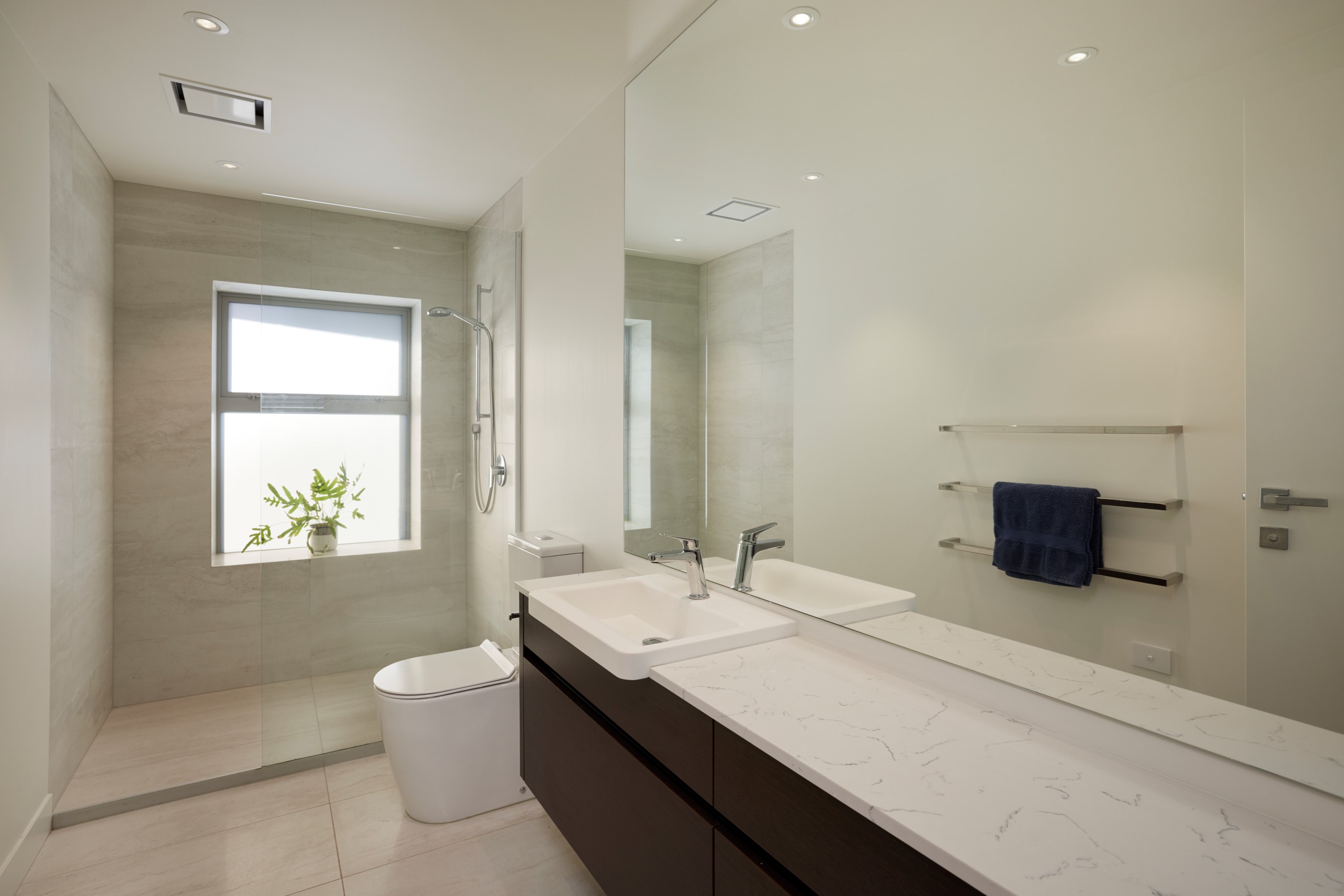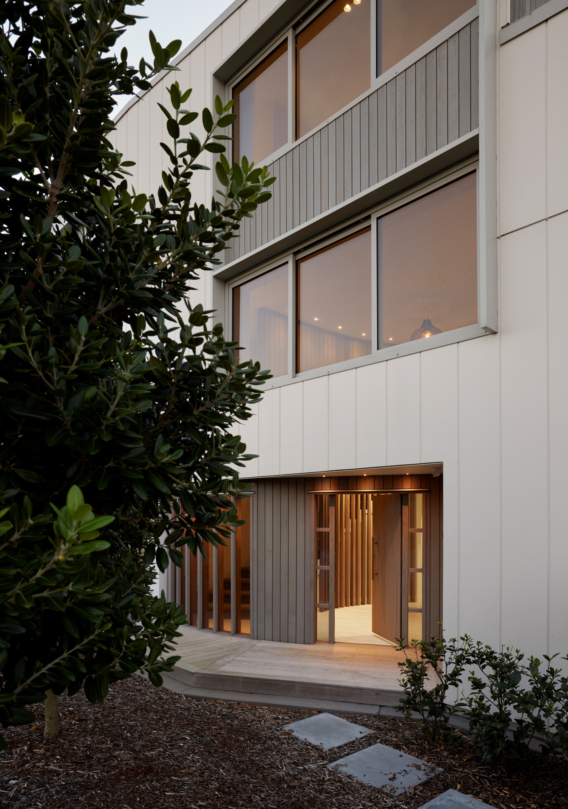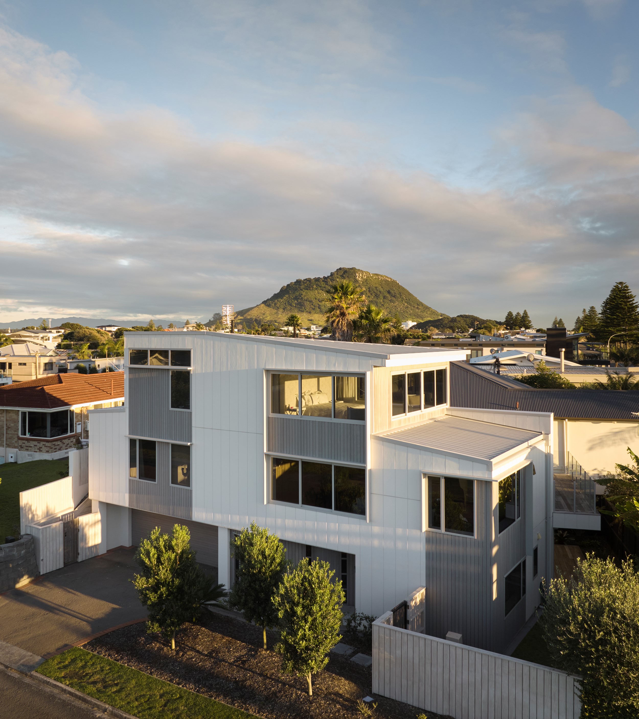 In this substantial renovation, the delight is in the detail. The interior has been given a fresh new beachy feel that perfectly mirrors the three-storey home’s coastal setting. Natural tones, materials and forms can be found throughout, including vertical timber walls, and balusters that curve around the stairwell. These meticulously crafted features are beautiful in their own right, but never distract from ocean views that can be enjoyed from upper floors. It’s clear the interior has undergone a major refurbishment, but what’s not obvious is the expert structural work hidden from view. Existing unispan mid-floor and framing had to be replaced, due to new structural regulations. A new steel PFC ring beam was installed to the perimeter and bolted to existing block walls. This enabled a new timber mid-floor and internal framing to be constructed. Once all the work was finished, the owners were able to enjoy the improvements and upgrades in their five-bedroom seaside retreat, including a sleek new kitchen with waterfall edge at one end of the island and breakfast bar at the other. From there, they can open expansive glass sliders and step out onto decks, one of which enjoys views of the Pacific.