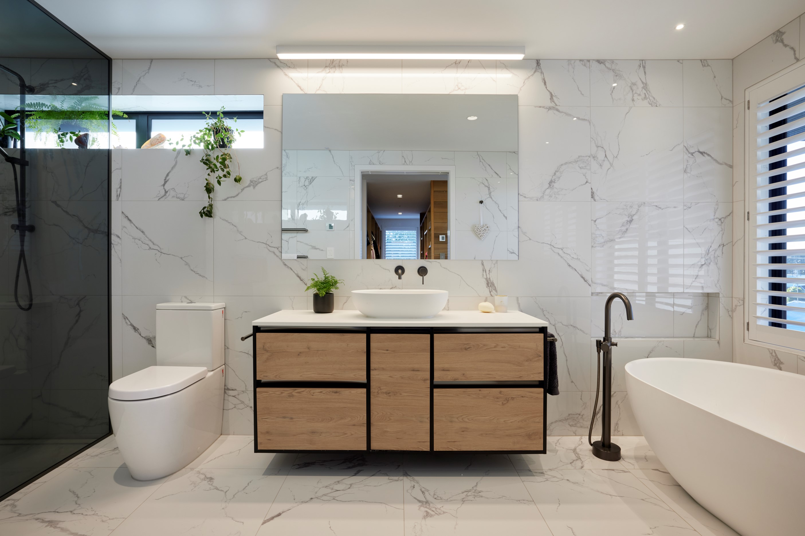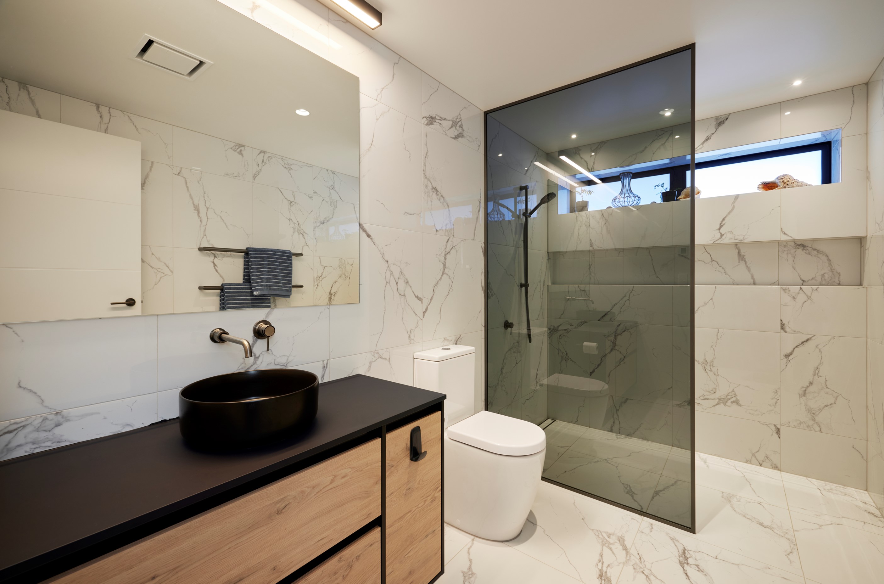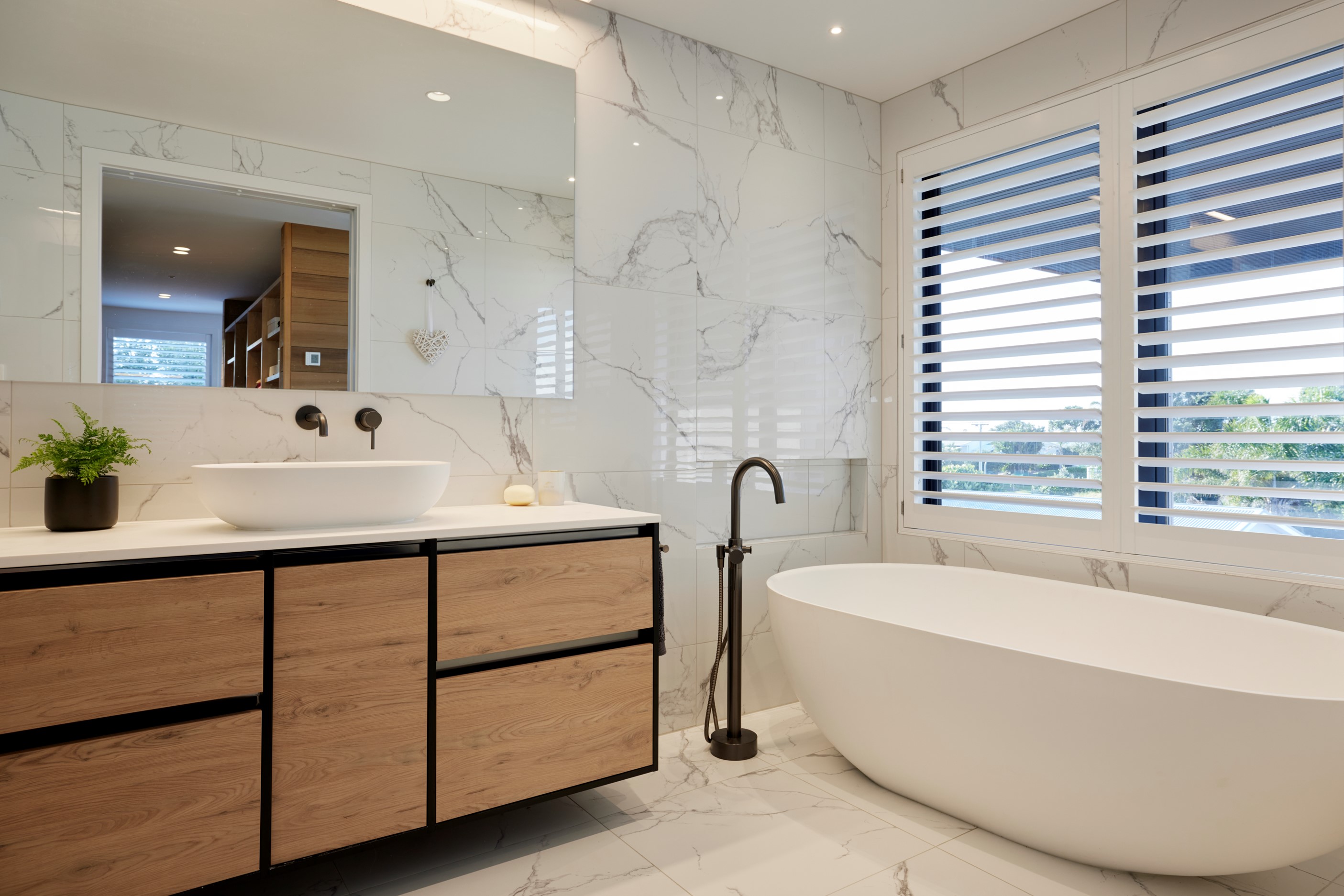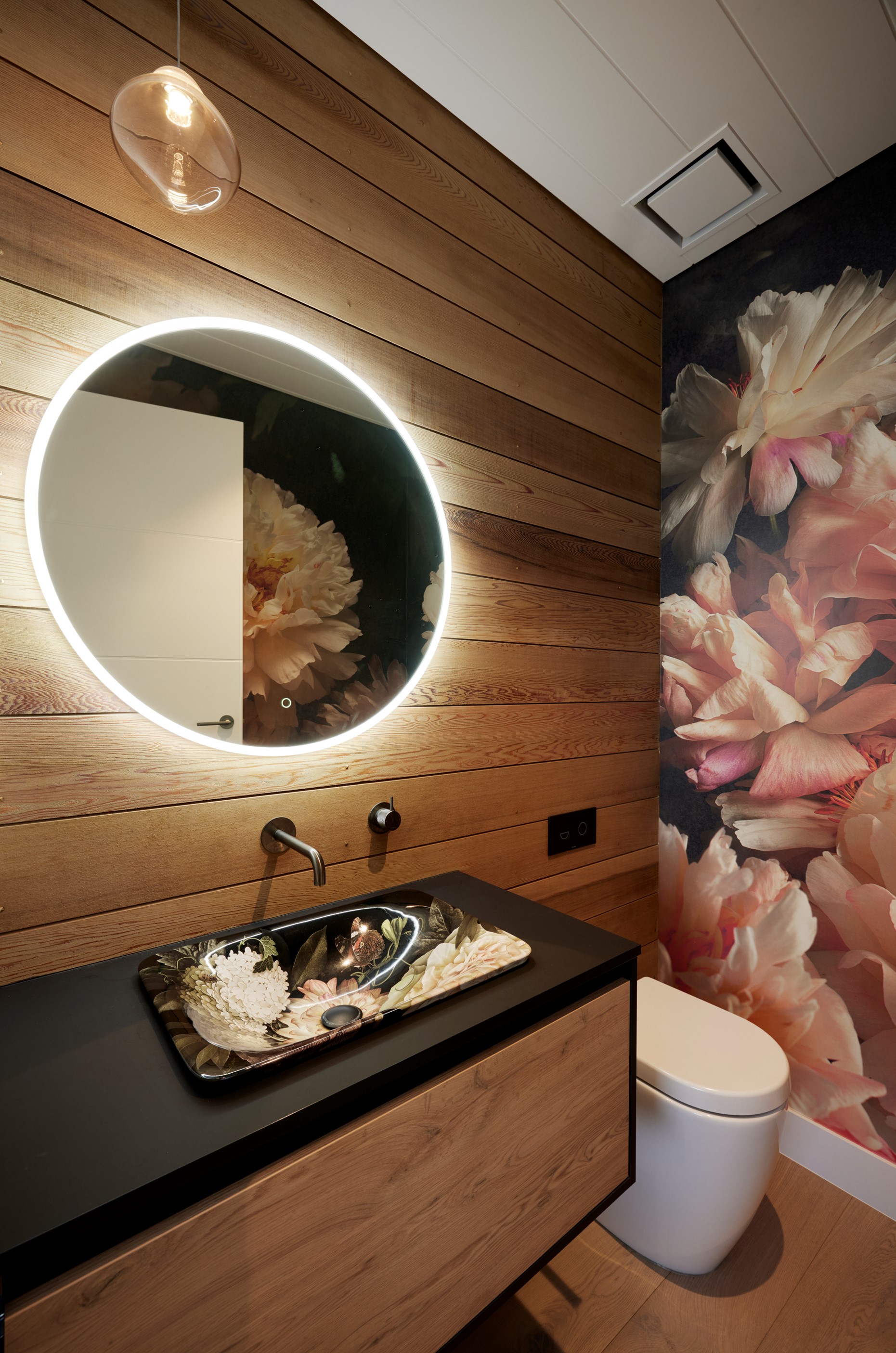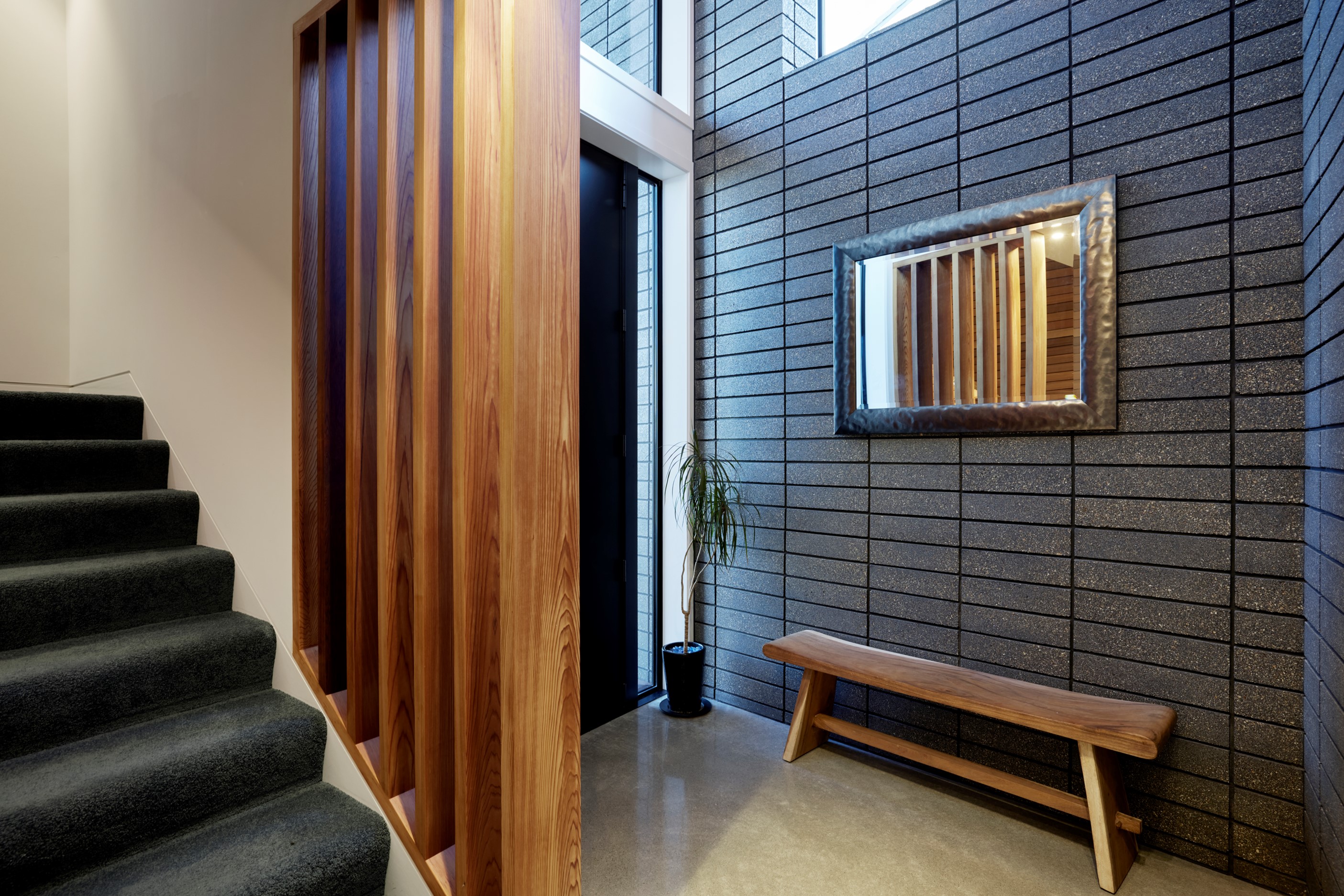 This three-level home at the beach stands out for all the right reasons. Cedar cocoons the entire 383sqm house, making a strong statement at the street side.The intricate screen work is beautiful – and so is the play of shadows it creates inside.The warmth of natural timber is also a strong feature indoors. You’ll find exquisite examples in the kitchen stairwell, entrance and in some of the four bedrooms and bathrooms. Hardwood decking extends the home’s footprint on the top and bottom floors, providing expansive spaces for dining and entertaining, and taking in the coastal views. The basement has a double garage and its own kitchen, a great spot for teenagers, or for staying guests to make themselves at home. The next level is where you’ll find bedrooms and bathrooms, and the top floor is reserved for the main kitchen and living areas. Every detail here has been thought through and executed meticulously, from the striking facade to the pared-back beauty of cement blocks in the entrance feature wall and fireplace surround. Decades of experience in the building industry are on show here. In this instance, standing out translates to outstanding.