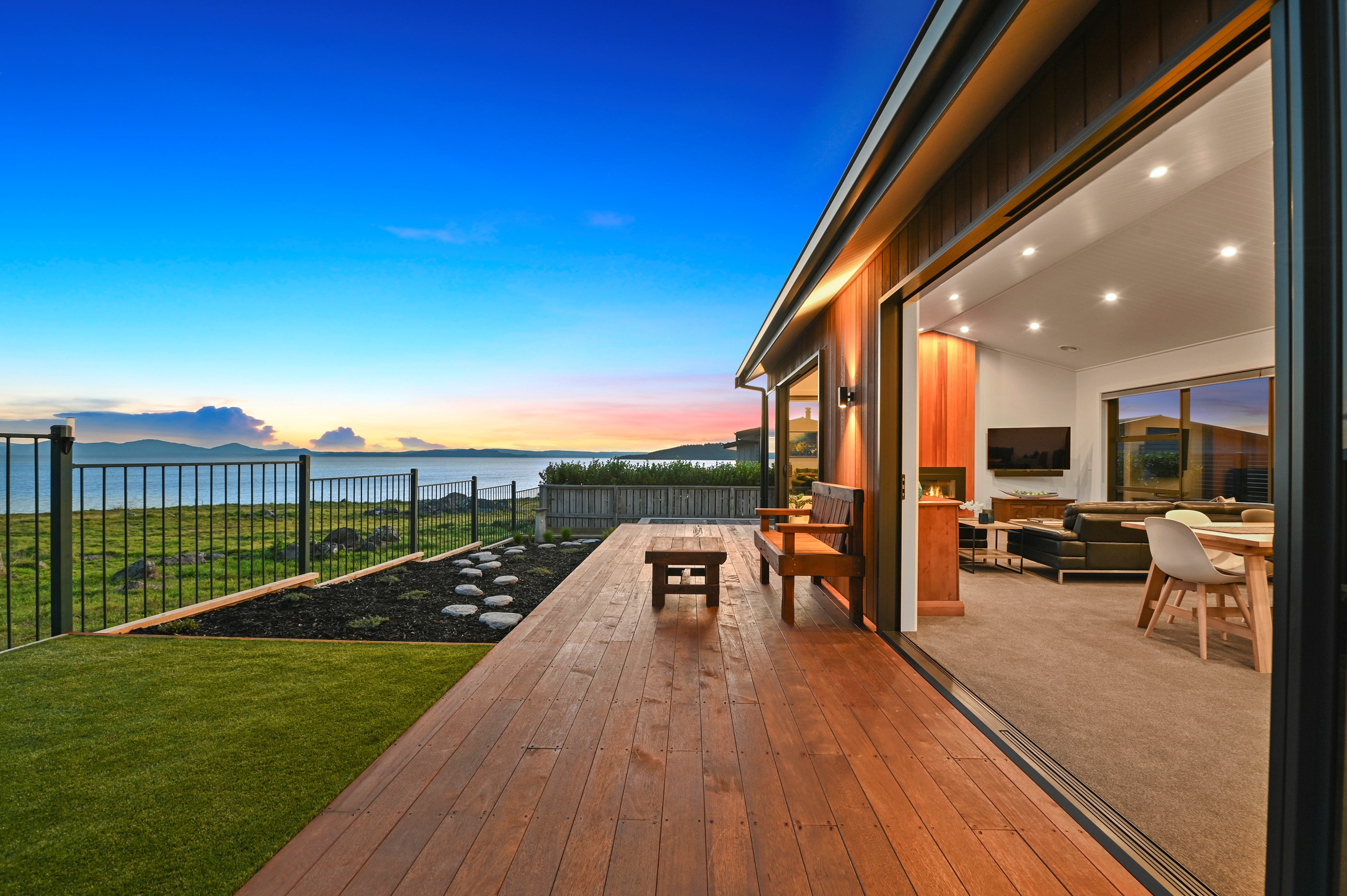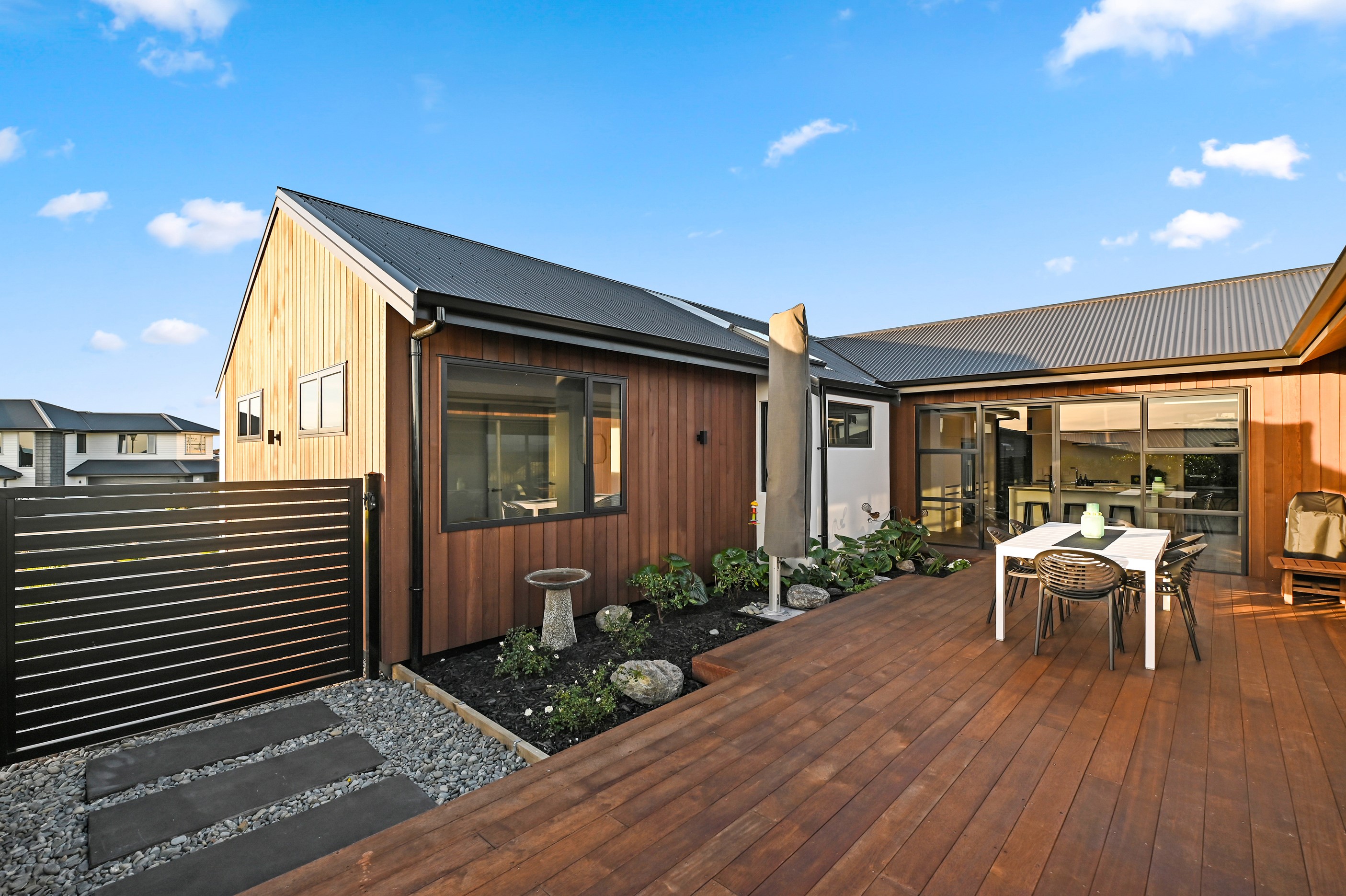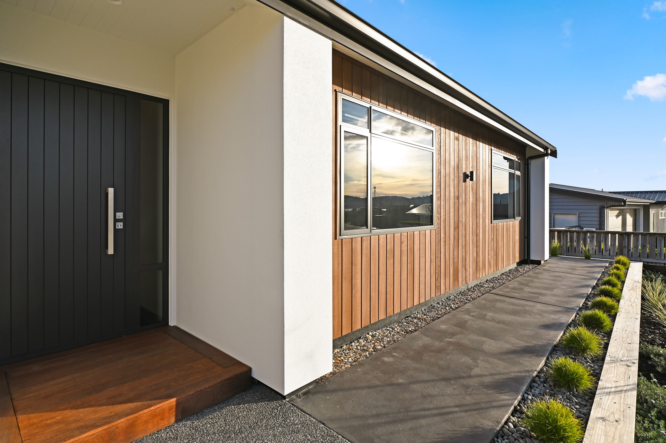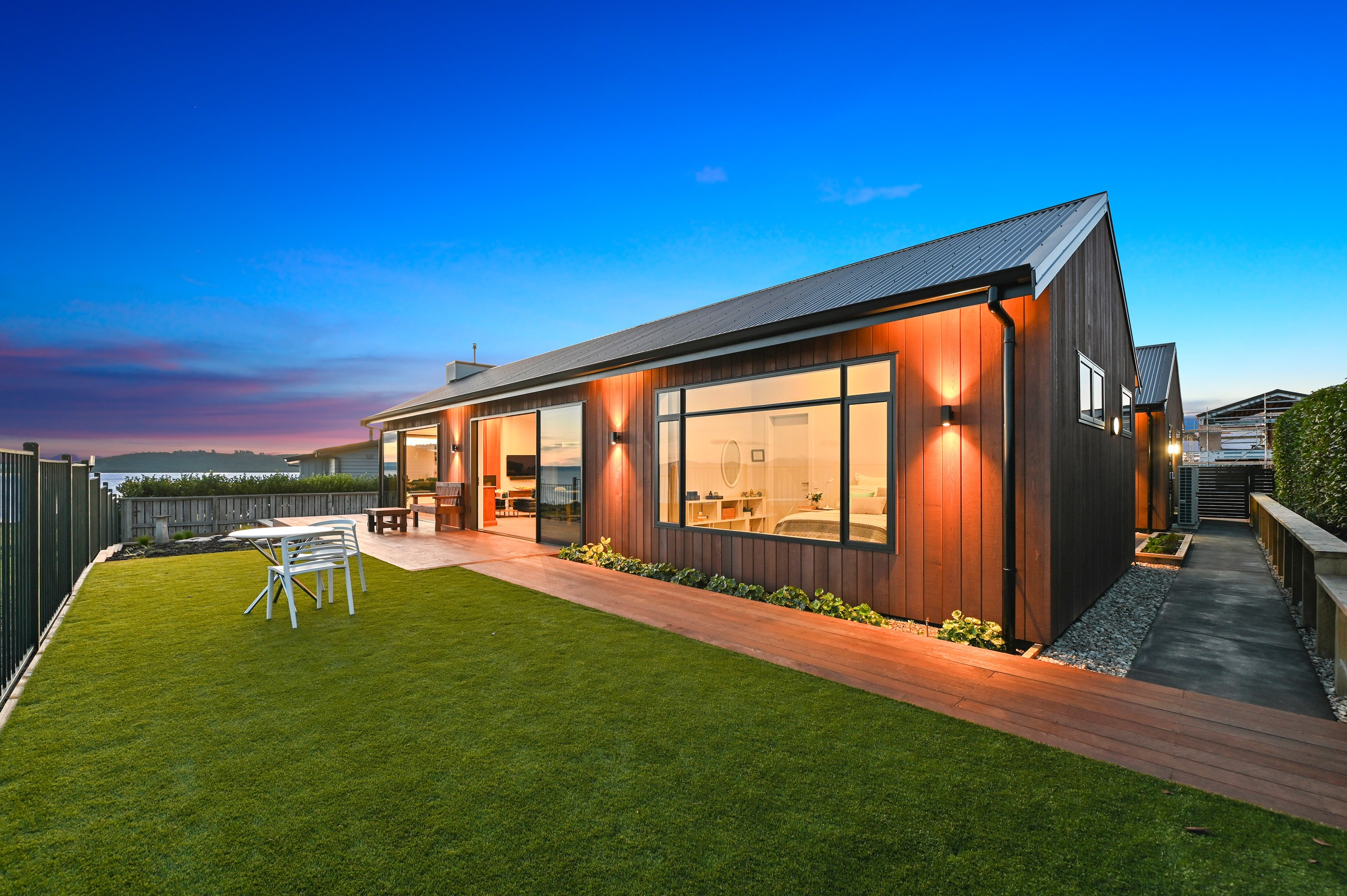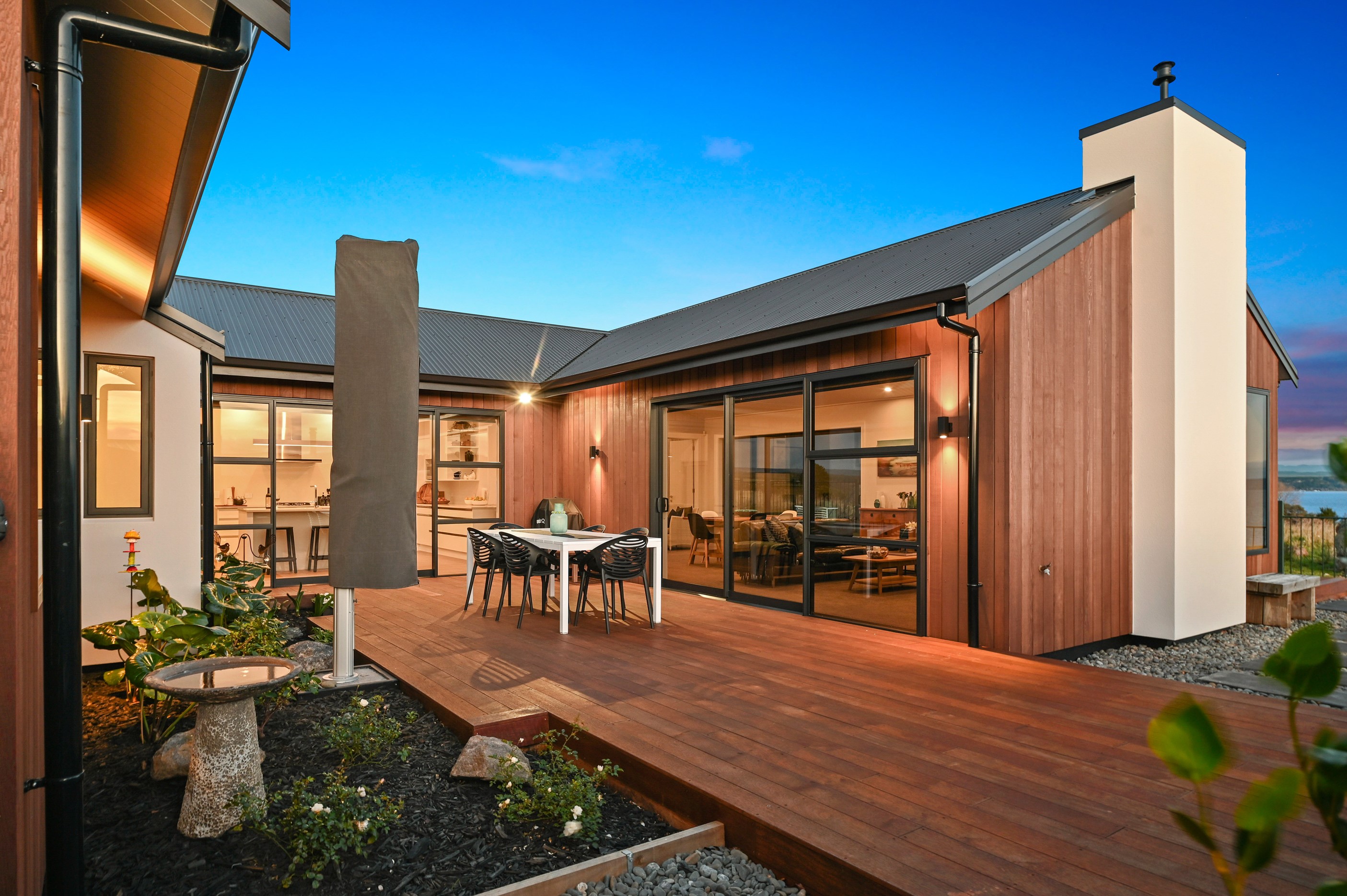 With the shore of Lake Taupō virtually at its doorstep, this project was all about easing the house into its very special environment. Mission accomplished. The single-level house makes a stylish statement in cedar and plaster, yet never detracts from its remarkable setting. With linked twin pavilions, the design ensures the site’s natural assets are enjoyed throughout the home. From morning coffee on the patio to cocktails on the central sheltered deck, the options to engage in the setting are sublime. The interior has a lot to live up to and doesn’t disappoint. Cedar feature walls in the entrance, living room and kitchen provide continuity with the exterior aesthetic. Raking ceilings in the living area add volume and twin sliders open onto the lake-facing deck, offering spectacular views and letting light flood in. The remainder of the 218sqm home also feels light and spacious. Two bathrooms feature tiles that echo the natural tones used elsewhere, and the main bedroom, which has a walk-in robe and ensuite, has raking ceilings. Twin ducted heat pumps and a gas fire make the four-bedroom residence a delight to inhabit, even during those crisp winter Taupō evenings.