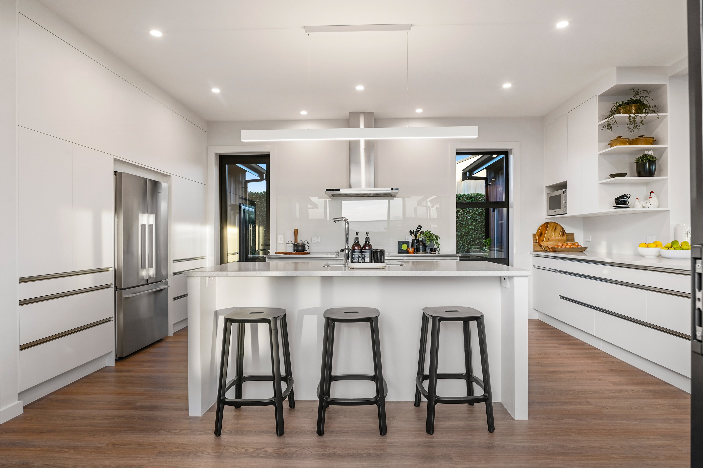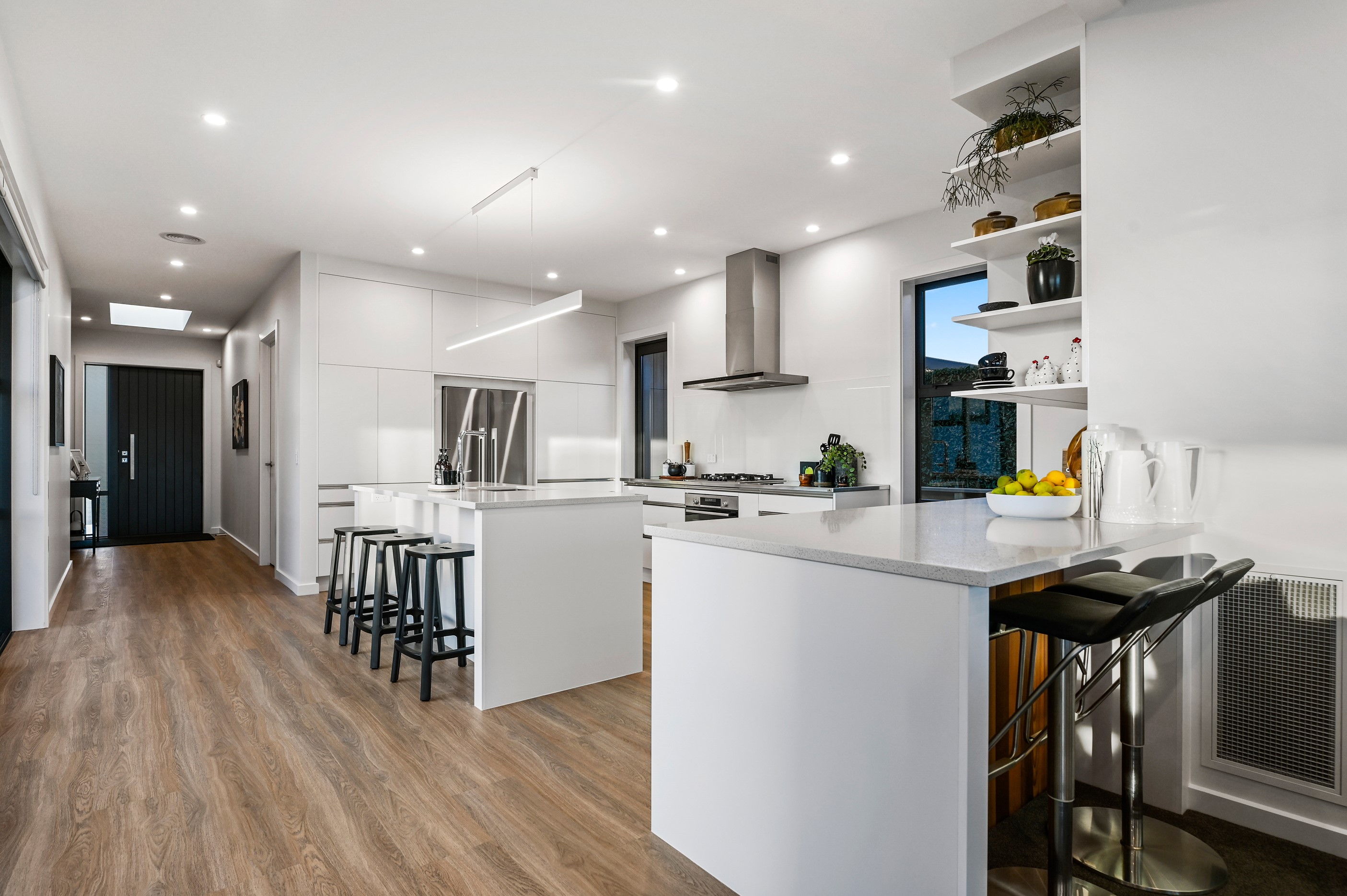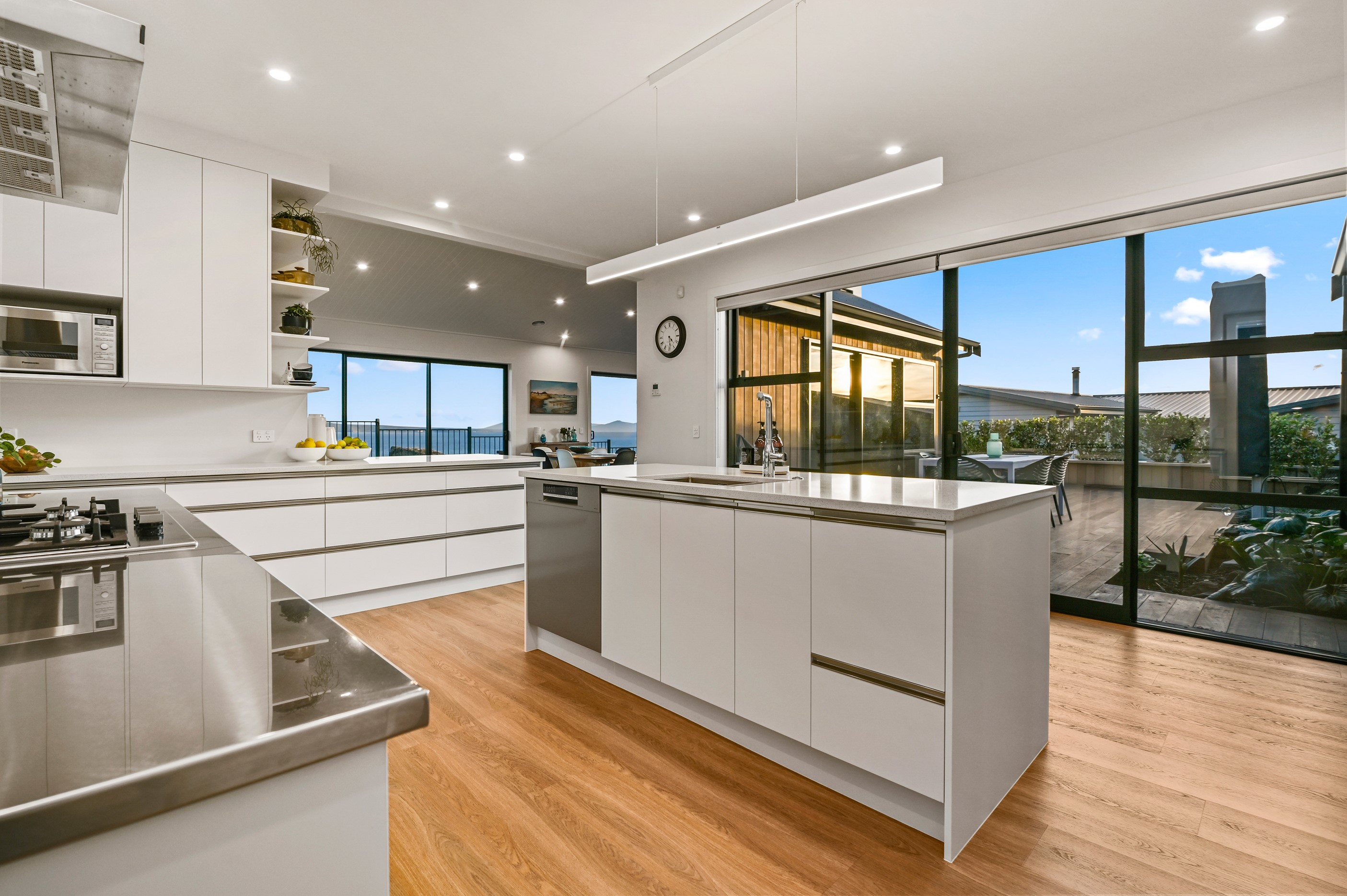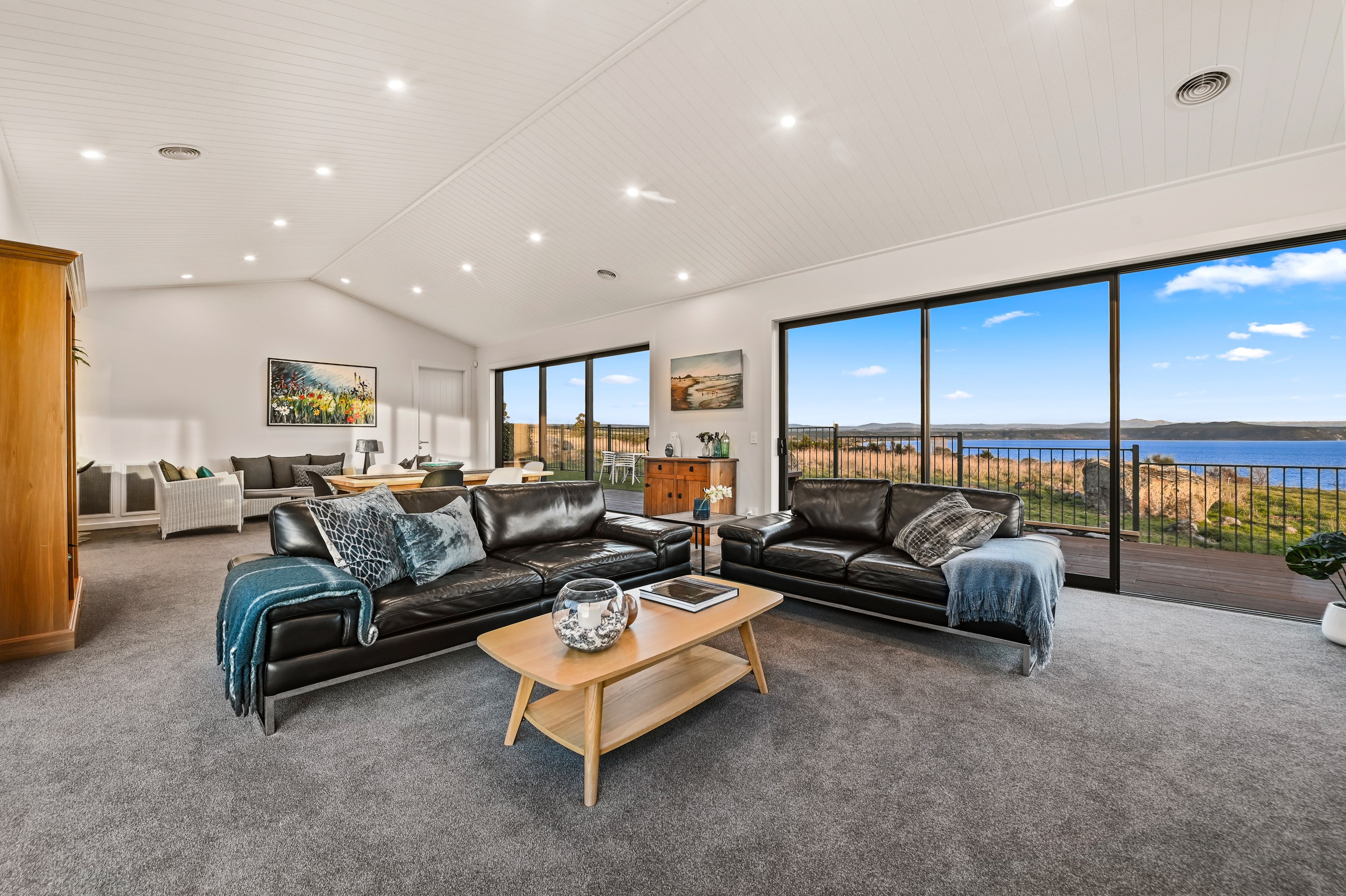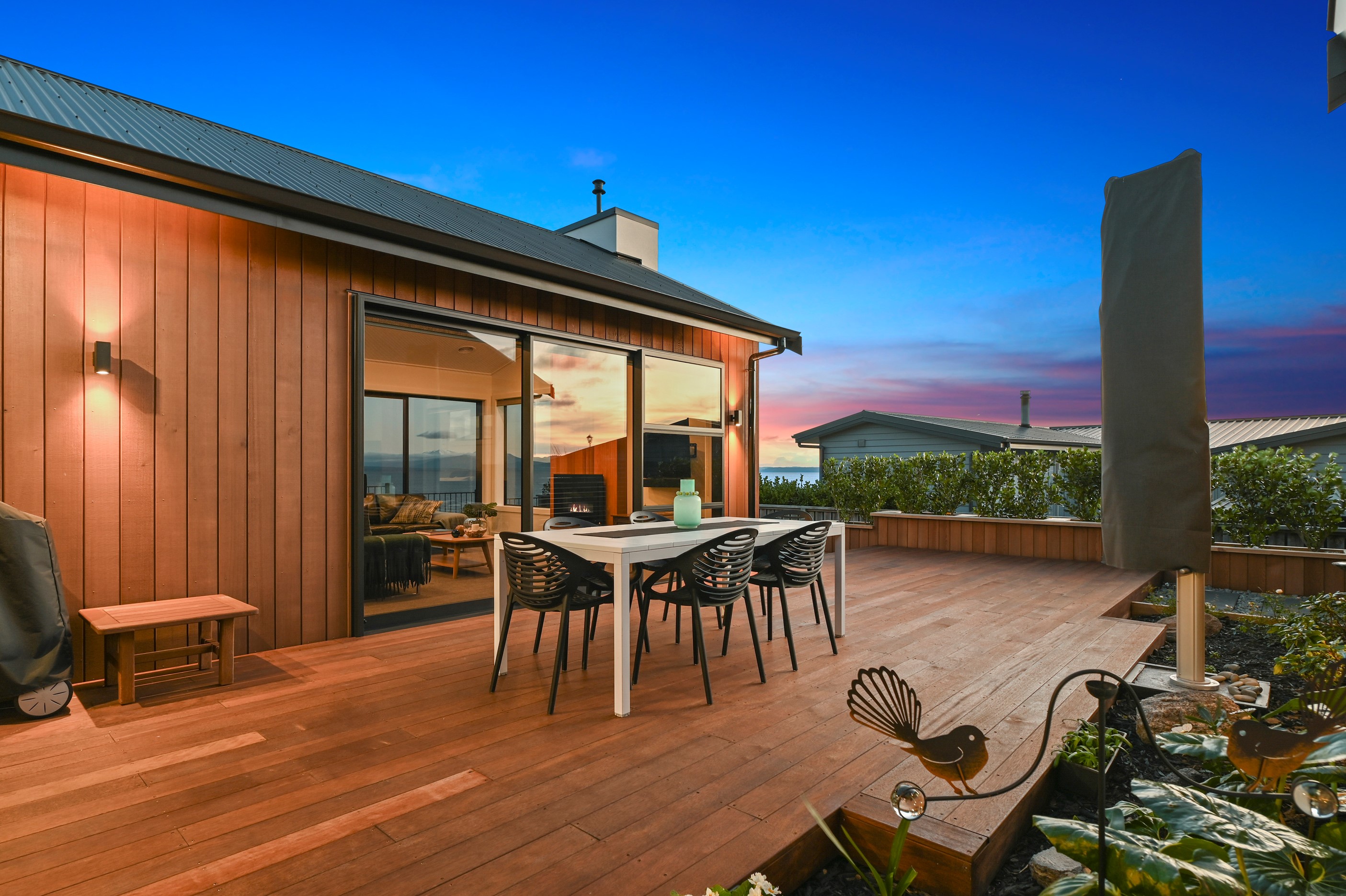 With the shore of Lake Taupō virtually at its doorstep, this project was all about easing the house into its very special environment. Mission accomplished. The single-level house makes a stylish statement in cedar and plaster, yet never detracts from its remarkable setting. With linked twin pavilions, the design ensures the site’s natural assets are enjoyed throughout the home. From morning coffee on the patio to cocktails on the central sheltered deck, the options to engage in the setting are sublime. The interior has a lot to live up to and doesn’t disappoint. Cedar feature walls in the entrance, living room and kitchen provide continuity with the exterior aesthetic. Raking ceilings in the living area add volume and twin sliders open onto the lake-facing deck, offering spectacular views and letting light flood in. The remainder of the 218sqm home also feels light and spacious. Two bathrooms feature tiles that echo the natural tones used elsewhere, and the main bedroom, which has a walk-in robe and ensuite, has raking ceilings. Twin ducted heat pumps and a gas fire make the four-bedroom residence a delight to inhabit, even during those crisp winter Taupō evenings.