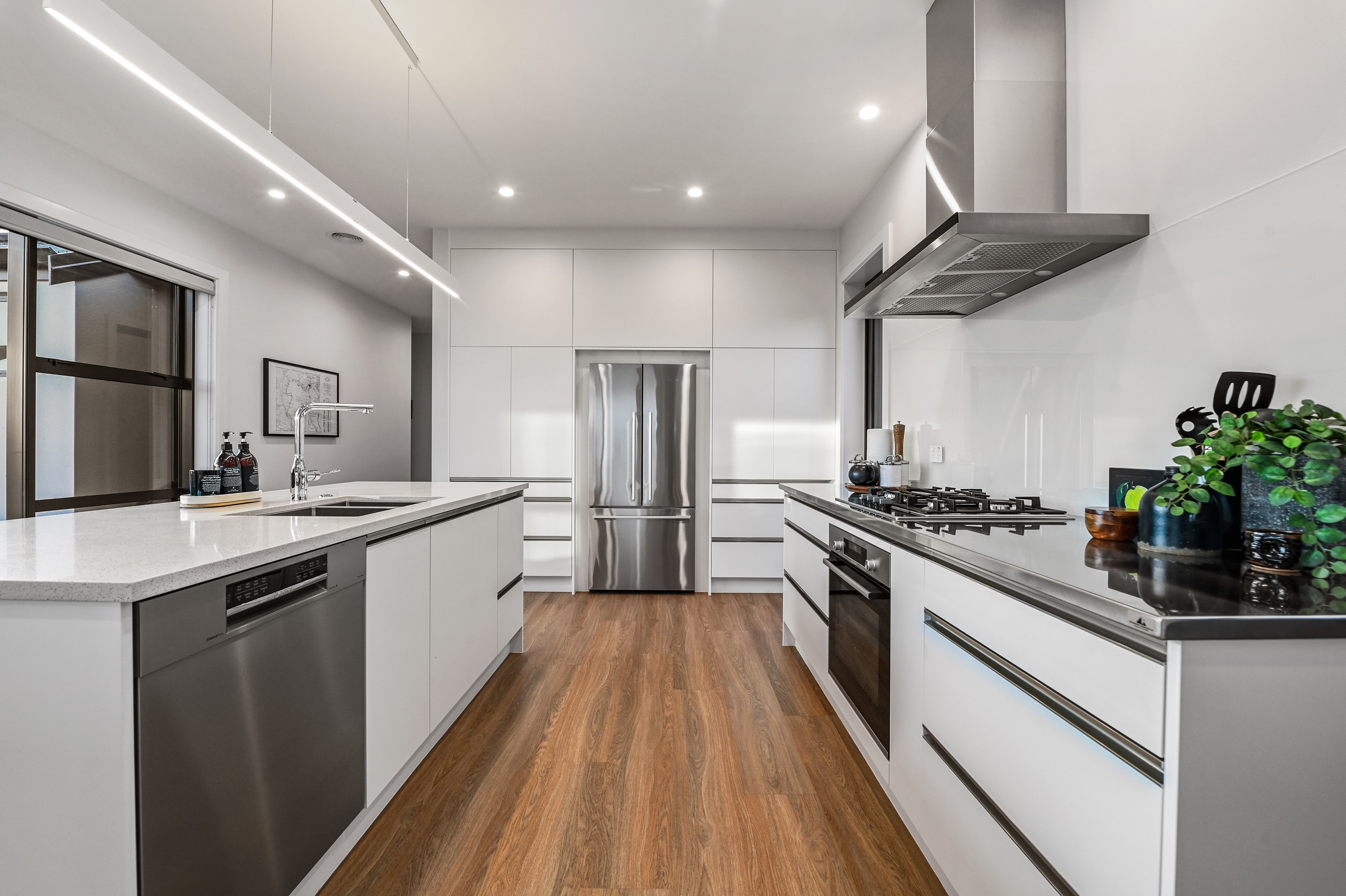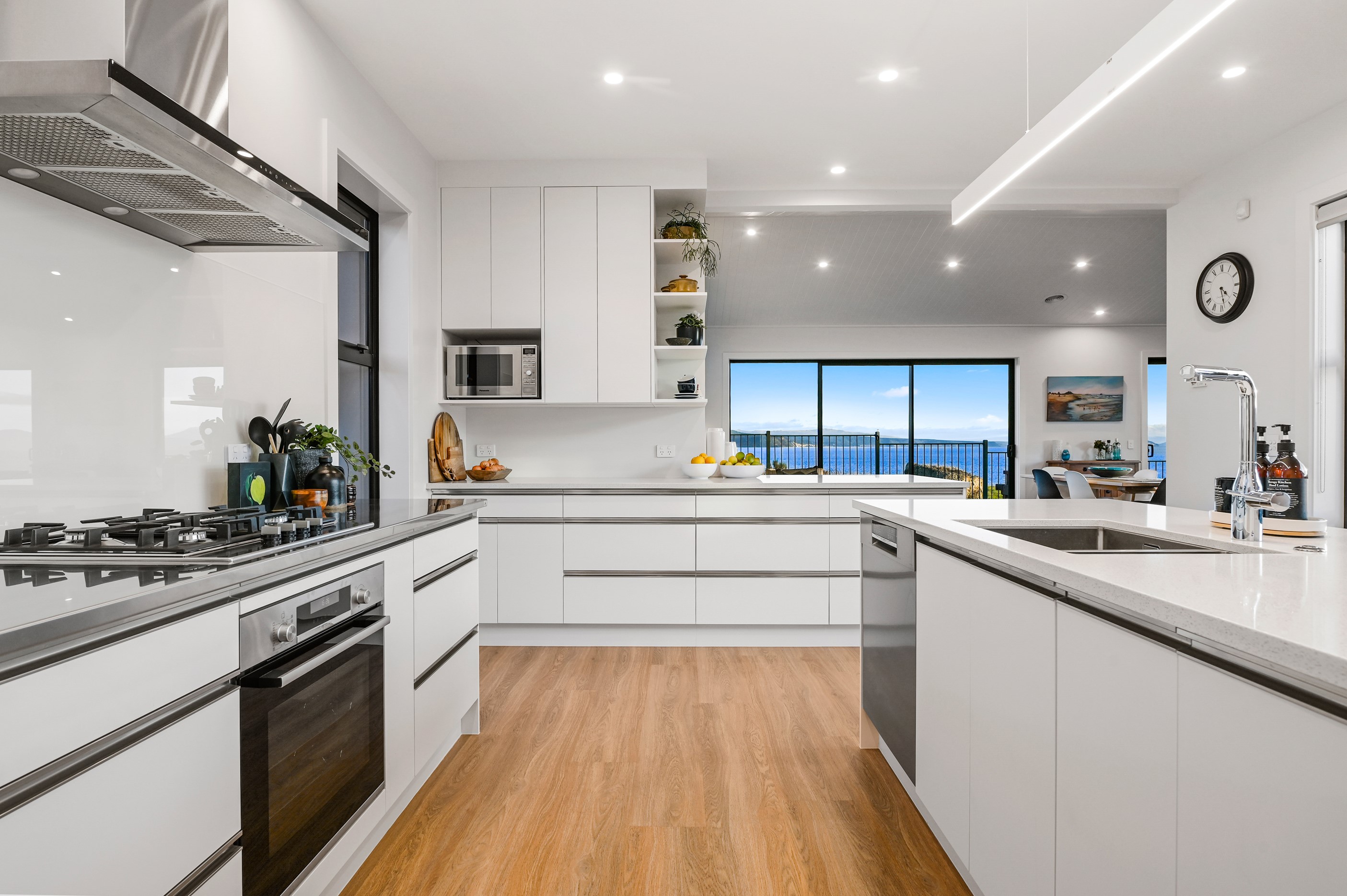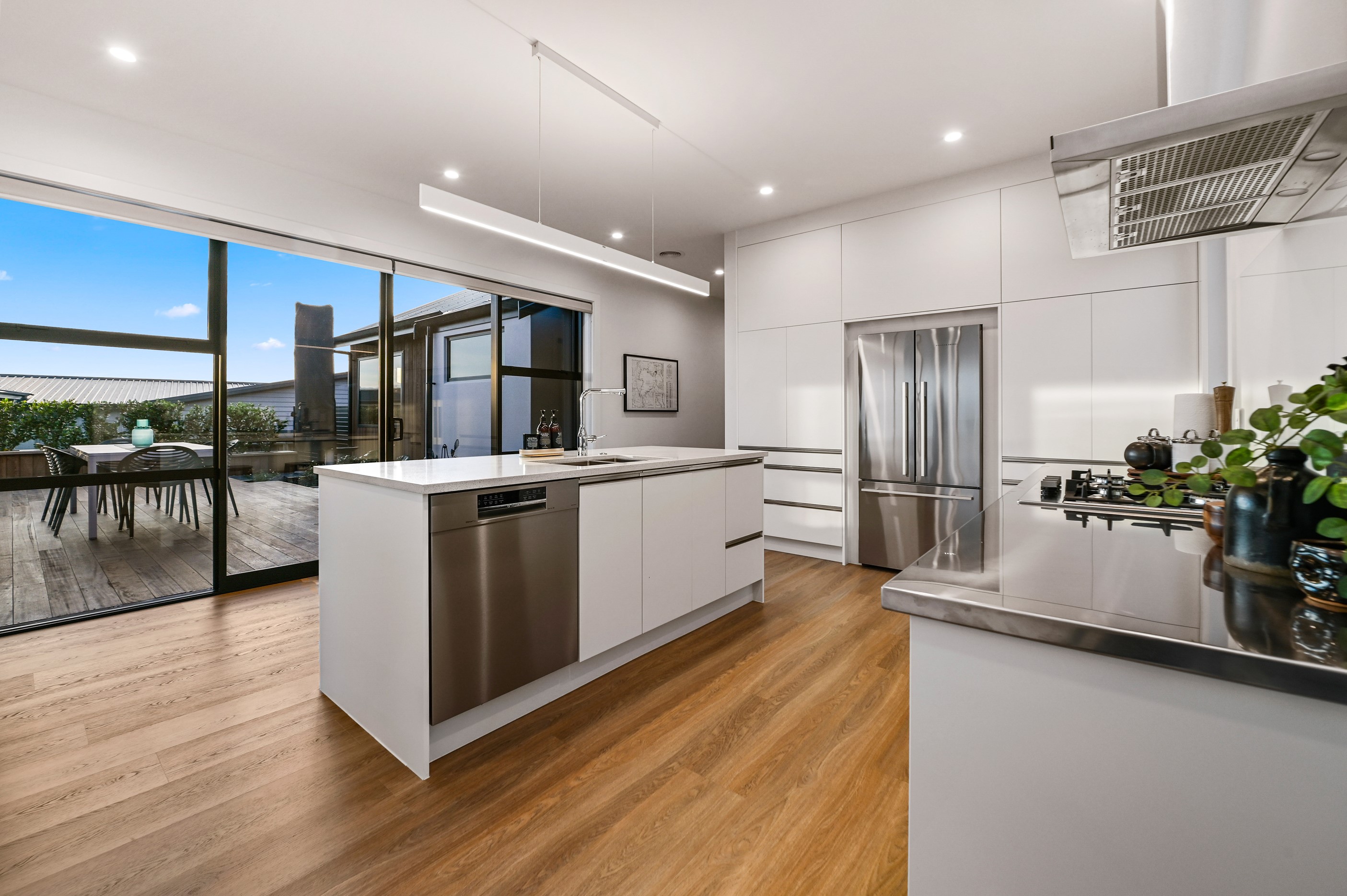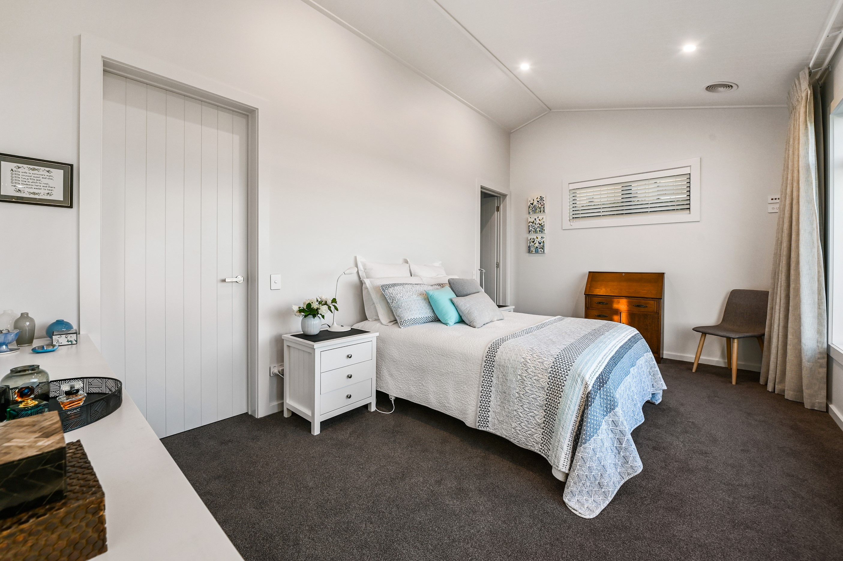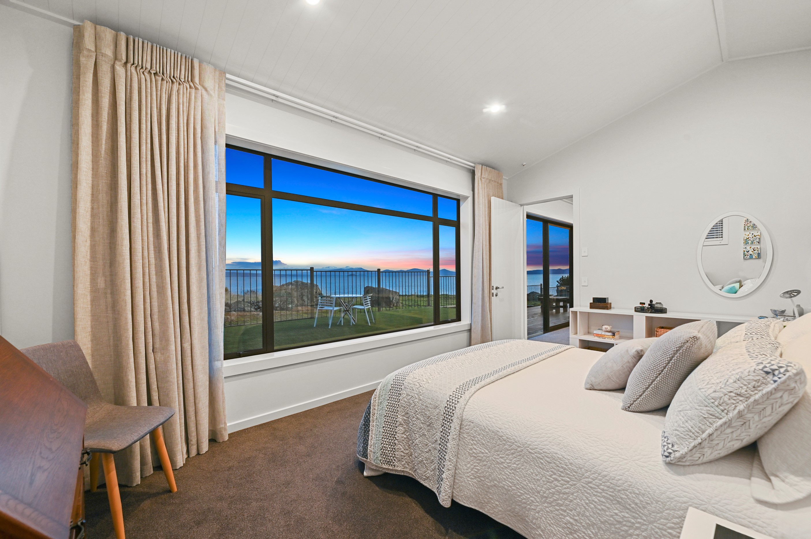 With the shore of Lake Taupō virtually at its doorstep, this project was all about easing the house into its very special environment. Mission accomplished. The single-level house makes a stylish statement in cedar and plaster, yet never detracts from its remarkable setting. With linked twin pavilions, the design ensures the site’s natural assets are enjoyed throughout the home. From morning coffee on the patio to cocktails on the central sheltered deck, the options to engage in the setting are sublime. The interior has a lot to live up to and doesn’t disappoint. Cedar feature walls in the entrance, living room and kitchen provide continuity with the exterior aesthetic. Raking ceilings in the living area add volume and twin sliders open onto the lake-facing deck, offering spectacular views and letting light flood in. The remainder of the 218sqm home also feels light and spacious. Two bathrooms feature tiles that echo the natural tones used elsewhere, and the main bedroom, which has a walk-in robe and ensuite, has raking ceilings. Twin ducted heat pumps and a gas fire make the four-bedroom residence a delight to inhabit, even during those crisp winter Taupō evenings.