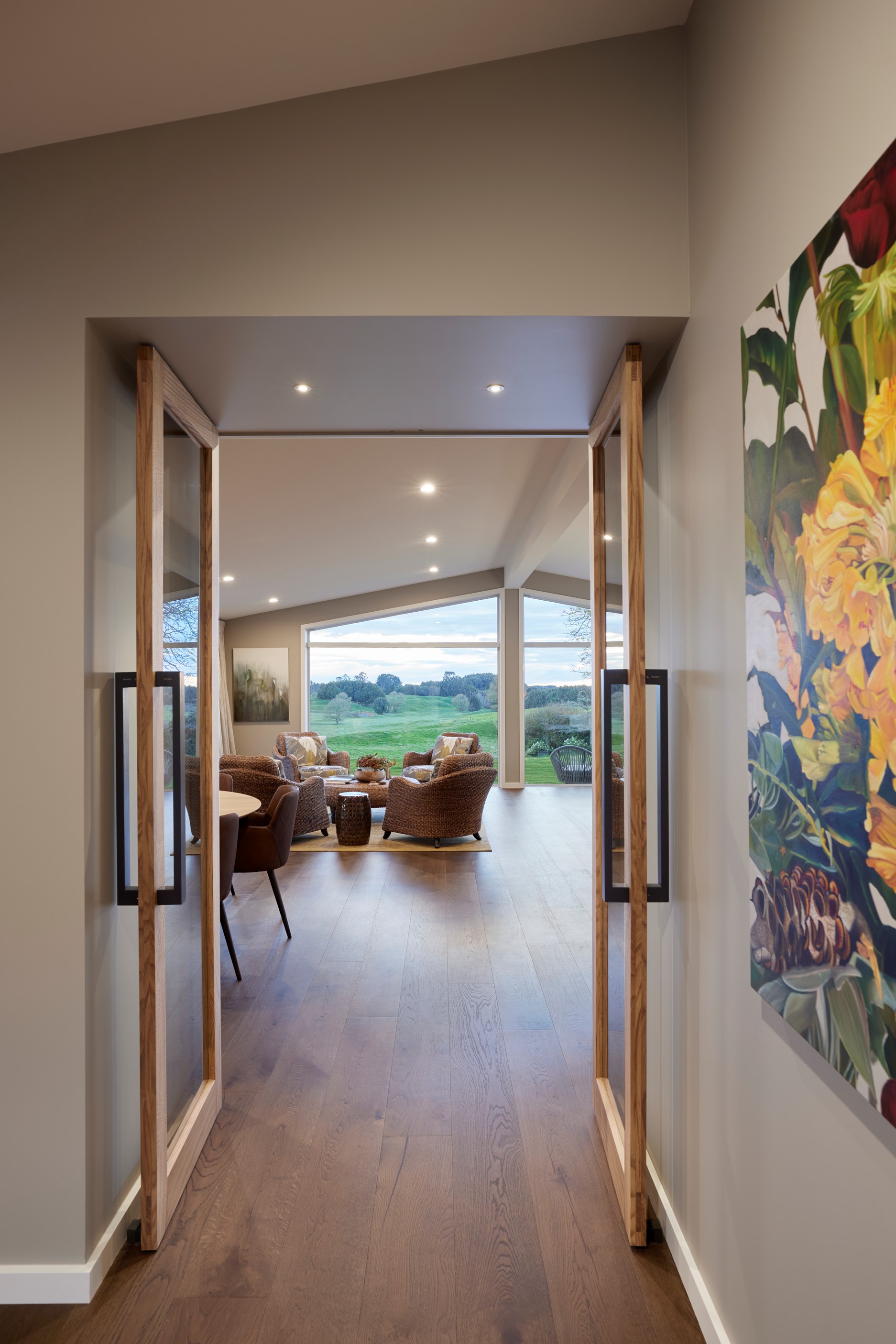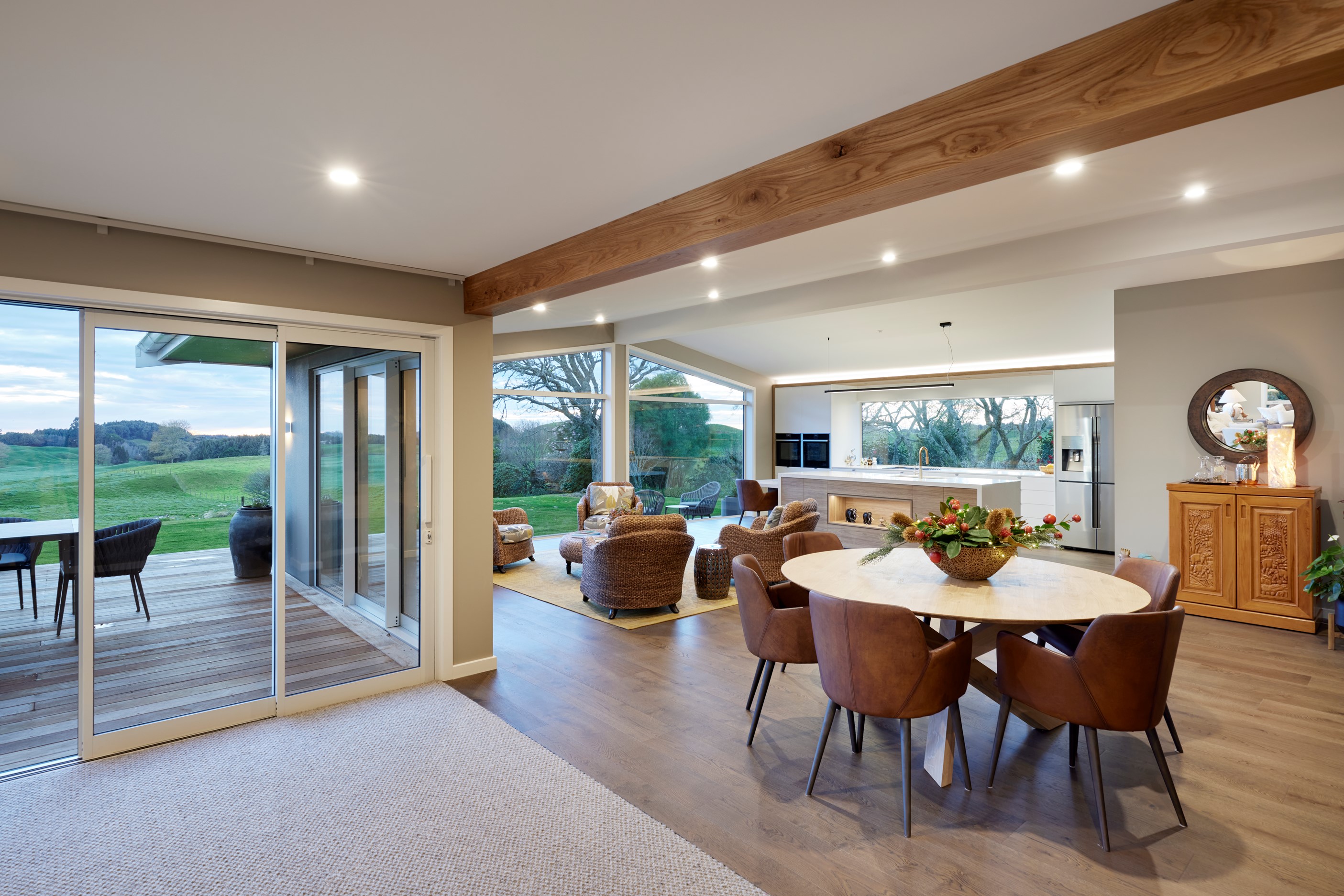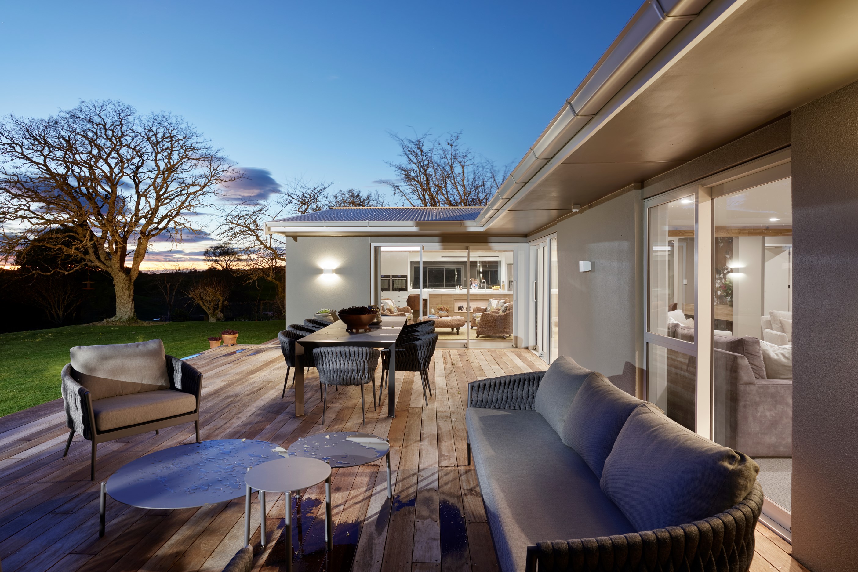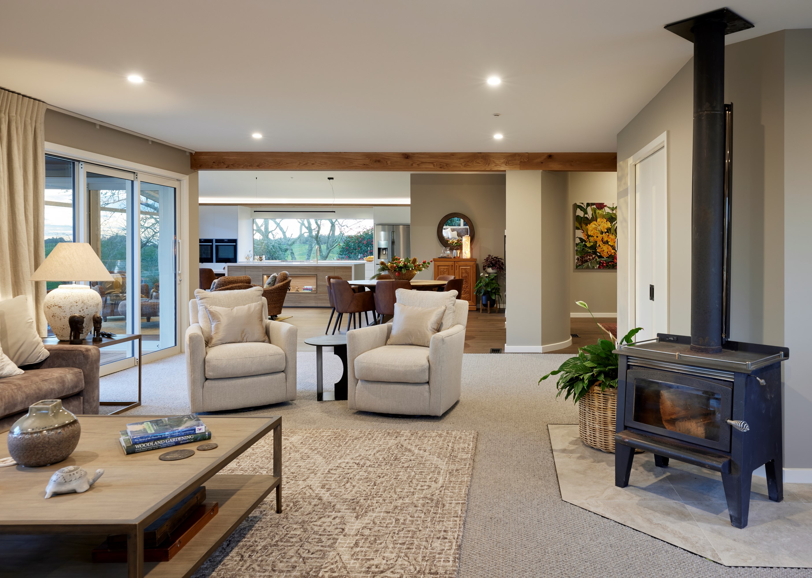 In need of a whole lot of love and attention, this fabulous farmhouse has been transformed from its cold and leaky state into a luxurious and masterfully crafted four-bedroom country estate. Set in rolling rural farmland and surrounded by a well-established garden, the focus of the extension and renovation of this sprawling 497sqm home was to capture the picturesque vistas from all angles. Despite its generous size, the house has a homely atmosphere enhanced by natural tones and materials that work in harmony with the rural landscape. The fully tiled main bathroom offers five-star relaxation with a luxuriously large freestanding slipper bath positioned to look out through the picture window to soothing views. In the main living area, floor-to-ceiling glazing frames the countryside scene, and a pitched ceiling adds volume to this warm and welcoming space. Sliding doors open out to sun-drenched decking that steps down to a large, lush lawn. The homeowners are delighted with their ugly duckling turned beautiful swan, a home that will no doubt provide a welcoming family environment for years to come.