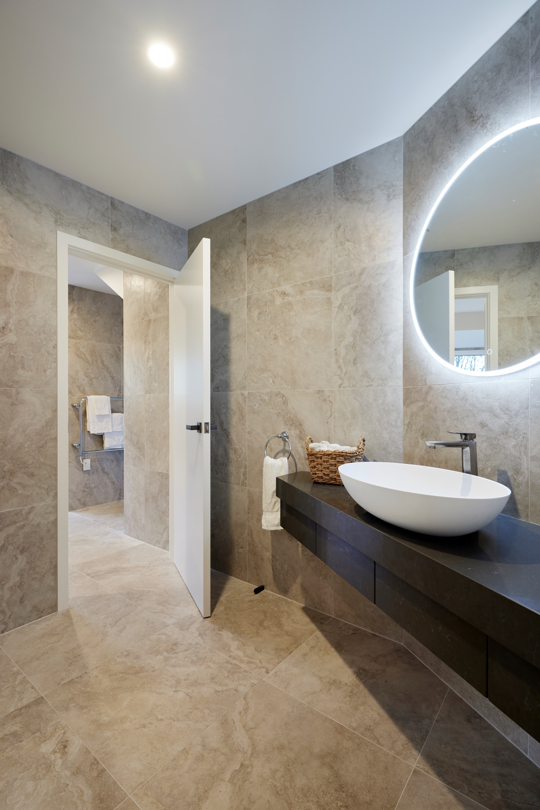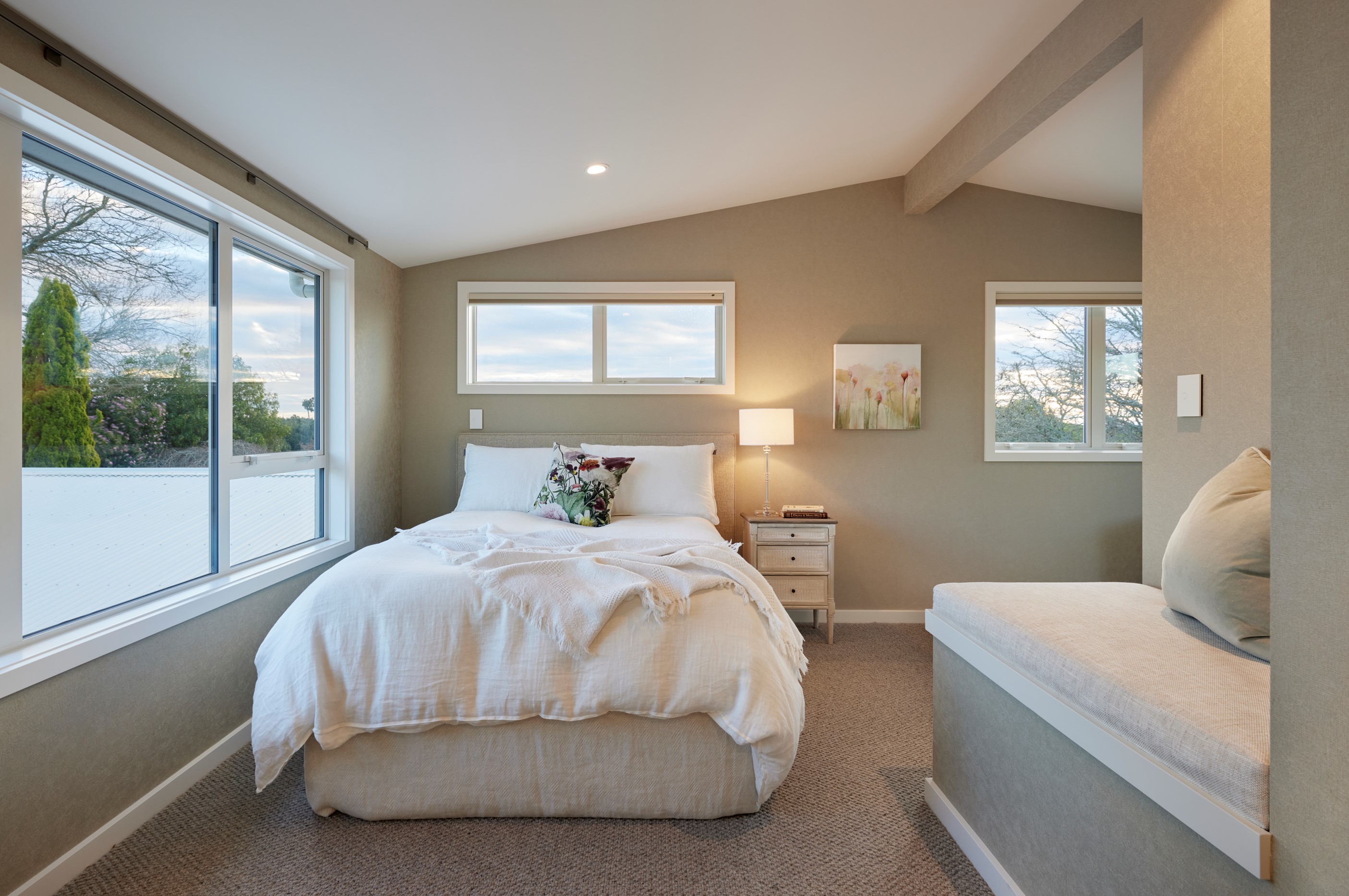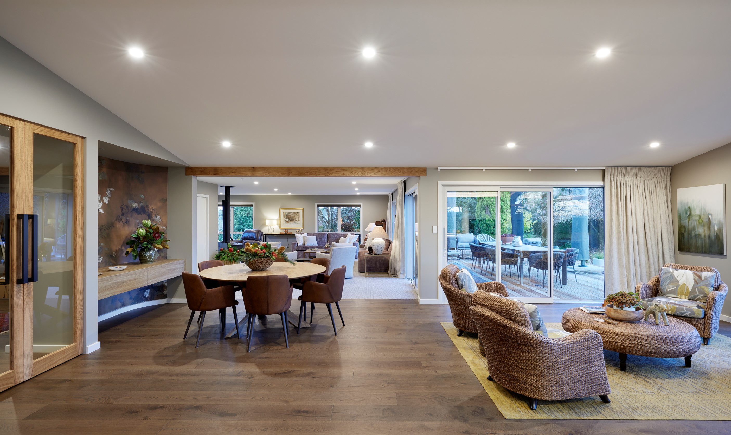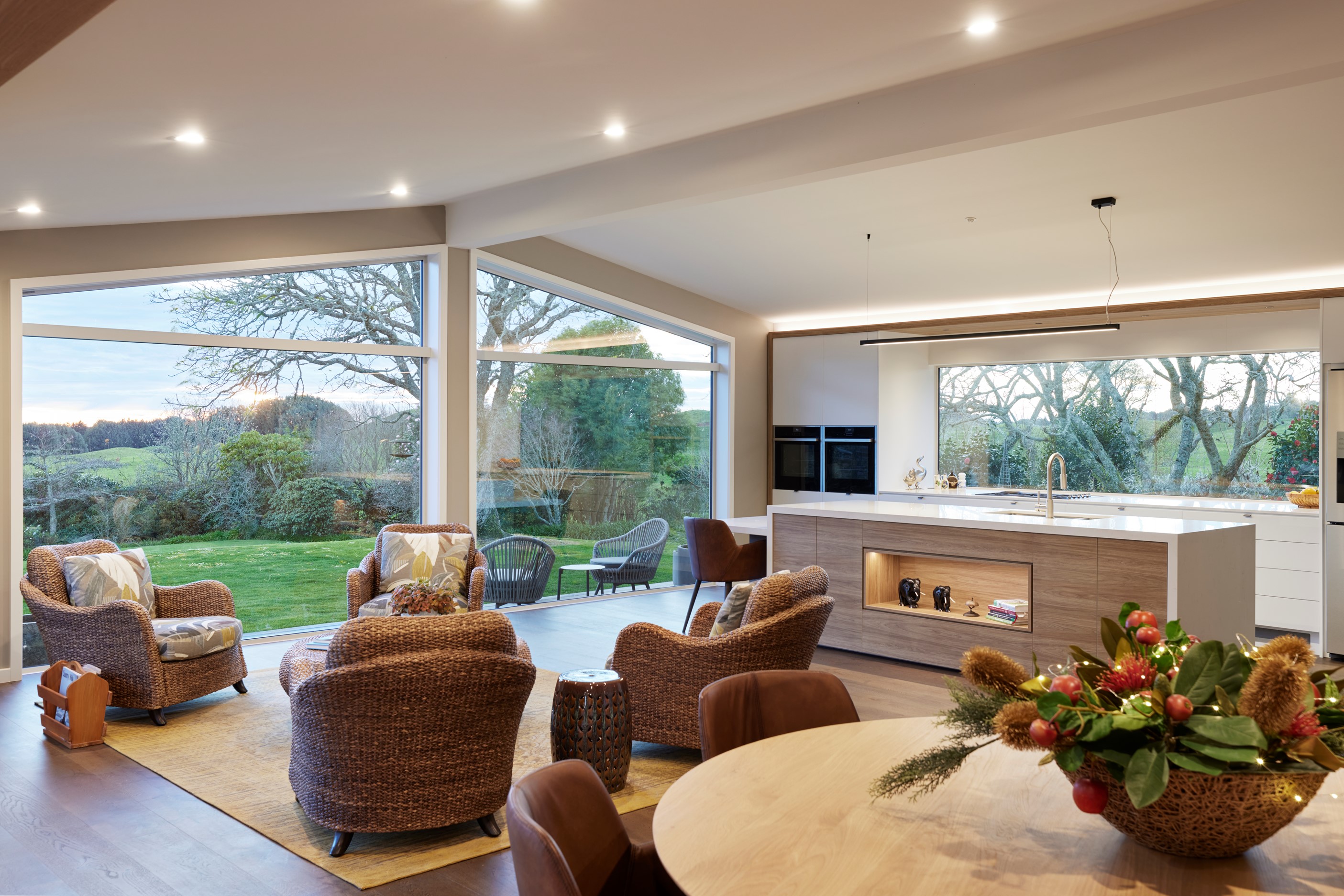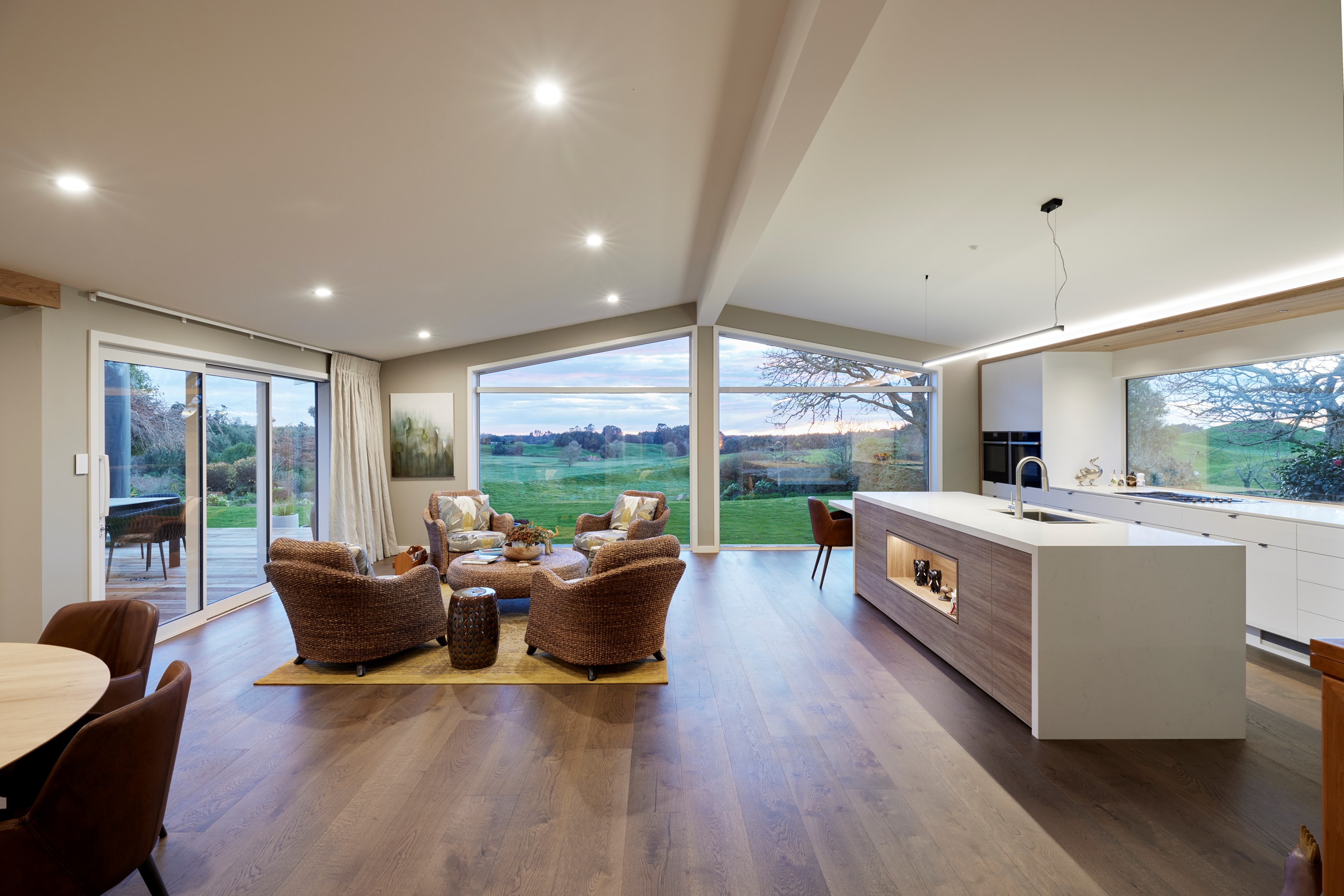 In need of a whole lot of love and attention, this fabulous farmhouse has been transformed from its cold and leaky state into a luxurious and masterfully crafted four-bedroom country estate. Set in rolling rural farmland and surrounded by a well-established garden, the focus of the extension and renovation of this sprawling 497sqm home was to capture the picturesque vistas from all angles. Despite its generous size, the house has a homely atmosphere enhanced by natural tones and materials that work in harmony with the rural landscape. The fully tiled main bathroom offers five-star relaxation with a luxuriously large freestanding slipper bath positioned to look out through the picture window to soothing views. In the main living area, floor-to-ceiling glazing frames the countryside scene, and a pitched ceiling adds volume to this warm and welcoming space. Sliding doors open out to sun-drenched decking that steps down to a large, lush lawn. The homeowners are delighted with their ugly duckling turned beautiful swan, a home that will no doubt provide a welcoming family environment for years to come.