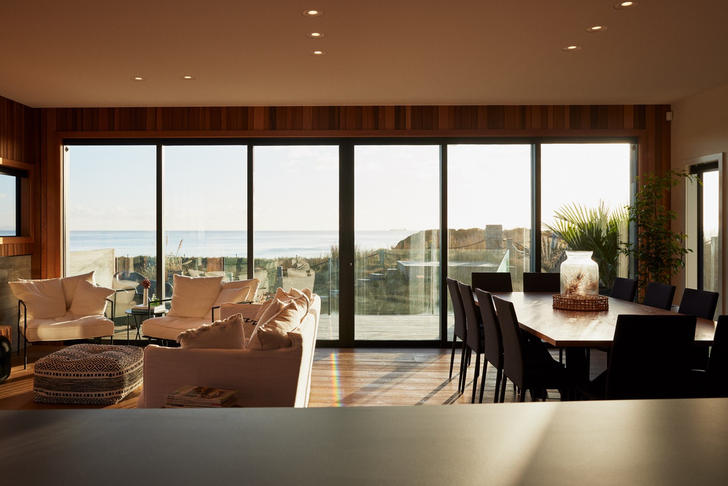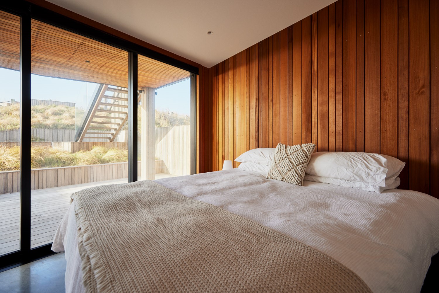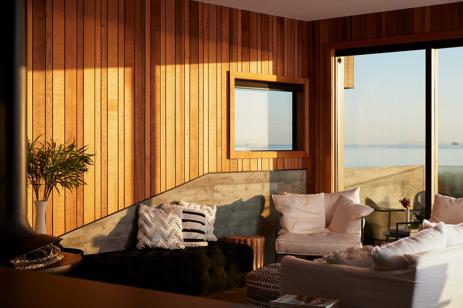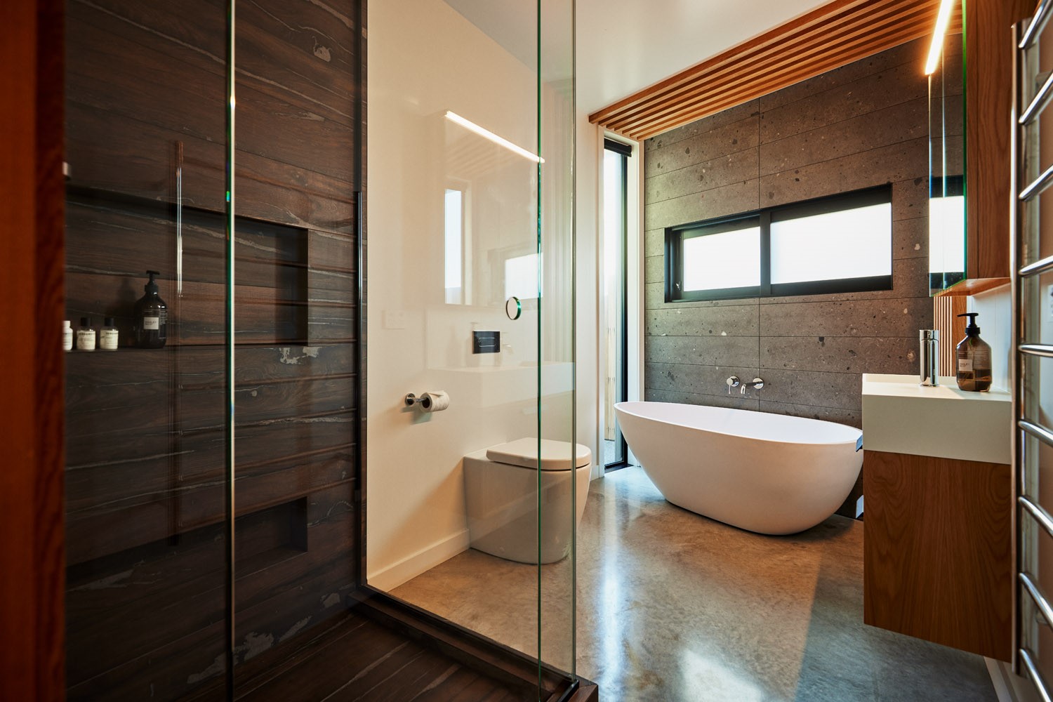This project was the “game-changer” the builders had always dreamed of. When an out-of-town architect contacted the team wanting them to build a special home on a beachfront section, they jumped at the chance. The results bear testimony to the enthusiasm, skills and craftsmanship shown by Framed Builders, who have constructed a remarkable, bespoke four-bedroom home with views over the dunes to the Pacific Ocean. “Colossal amounts” of cedar clad all three levels of the home. Placed at varying angles, they create a striking exterior aesthetic. Each of the three levels is designed to capture natural light and the expansive outlook. As the 312sqm project developed, so did the budget– a result of owner-requested extras, such as a swimming pool. The pool was a challenging last-minute addition for the team, who took it all in their stride. Fitted out with natural materials and organic hues, the interior is in harmony with its environment. Dovetailed timber features, swathes of glass, accents of concrete and black, and framed views of sea and surf leave you in no doubt that this is luxury beachside living. Low-e glass and solar roof panels ensure this impressive home is economical to run.
