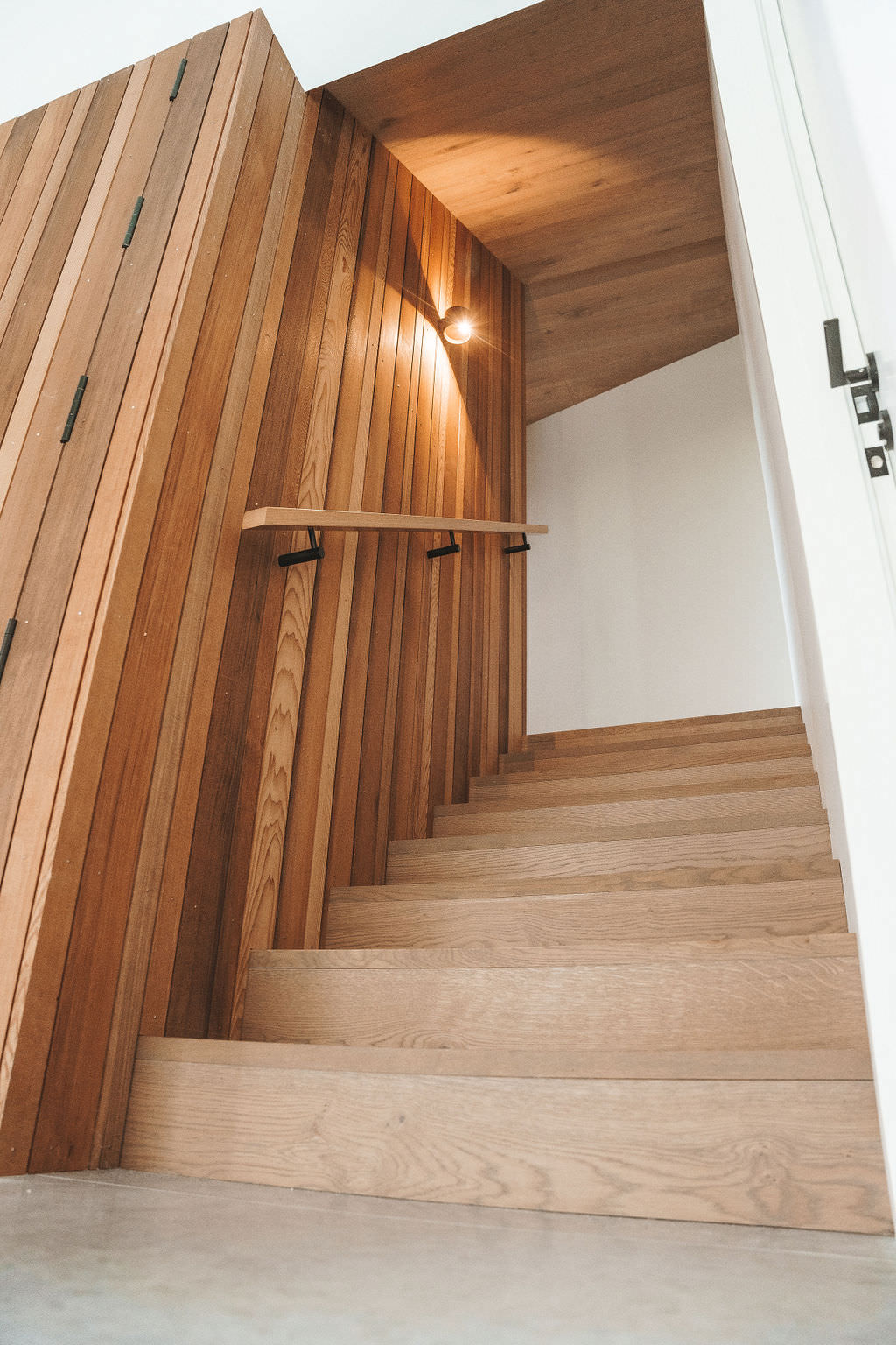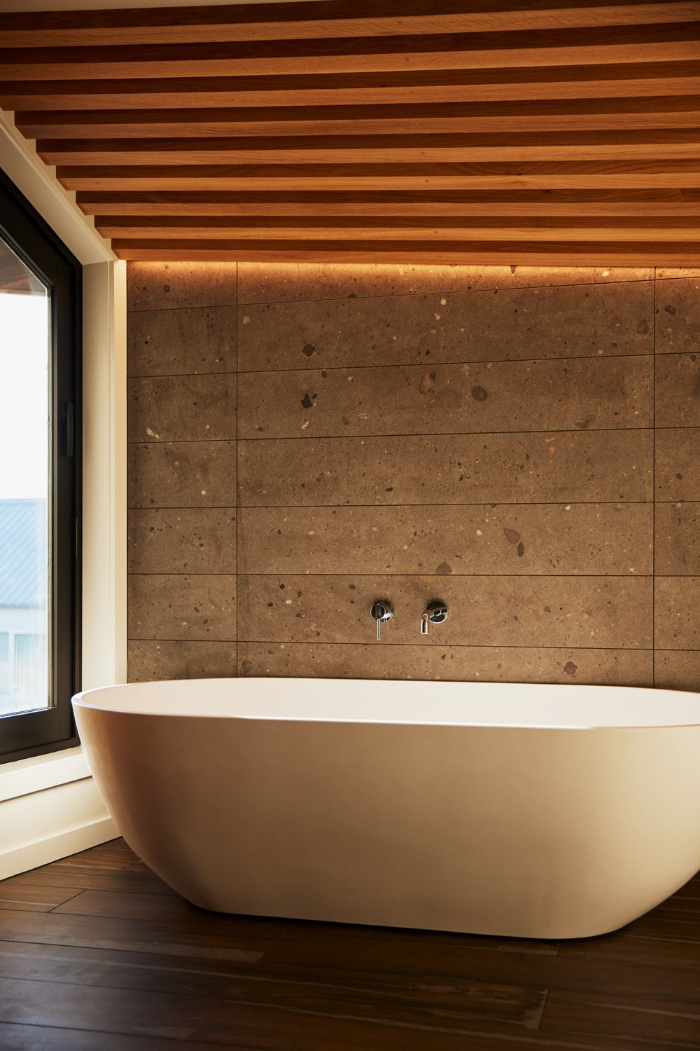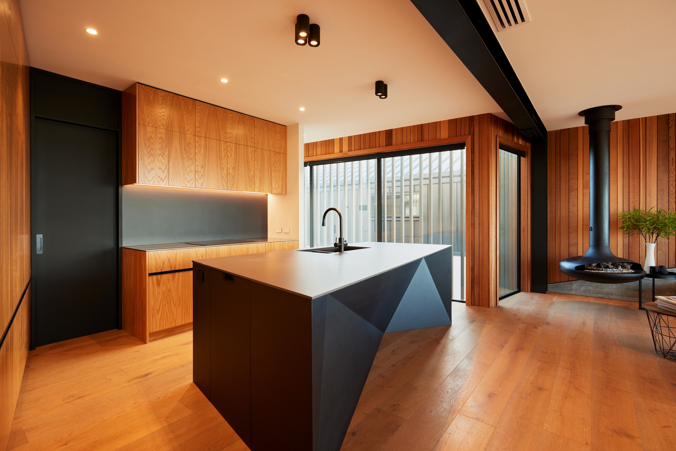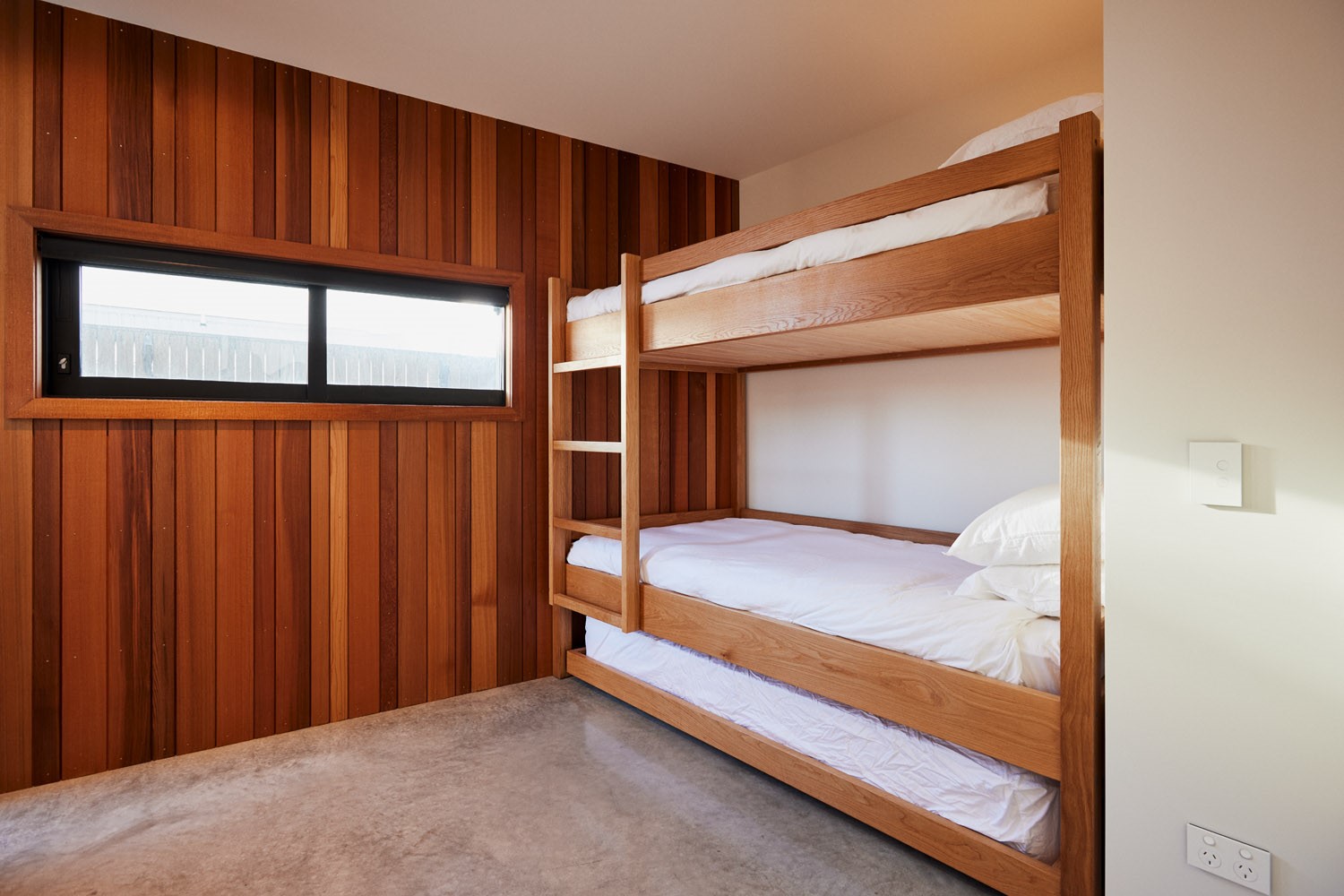 This project was the “game-changer” the builders had always dreamed of. When an out-of-town architect contacted the team wanting them to build a special home on a beachfront section, they jumped at the chance. The results bear testimony to the enthusiasm, skills and craftsmanship shown by Framed Builders, who have constructed a remarkable, bespoke four-bedroom home with views over the dunes to the Pacific Ocean. “Colossal amounts” of cedar clad all three levels of the home. Placed at varying angles, they create a striking exterior aesthetic. Each of the three levels is designed to capture natural light and the expansive outlook. As the 312sqm project developed, so did the budget– a result of owner-requested extras, such as a swimming pool. The pool was a challenging last-minute addition for the team, who took it all in their stride. Fitted out with natural materials and organic hues, the interior is in harmony with its environment. Dovetailed timber features, swathes of glass, accents of concrete and black, and framed views of sea and surf leave you in no doubt that this is luxury beachside living. Low-e glass and solar roof panels ensure this impressive home is economical to run.