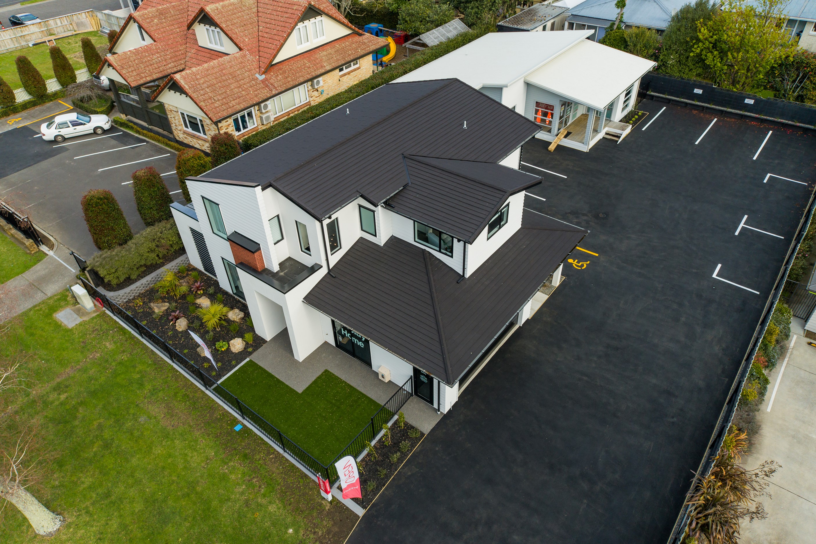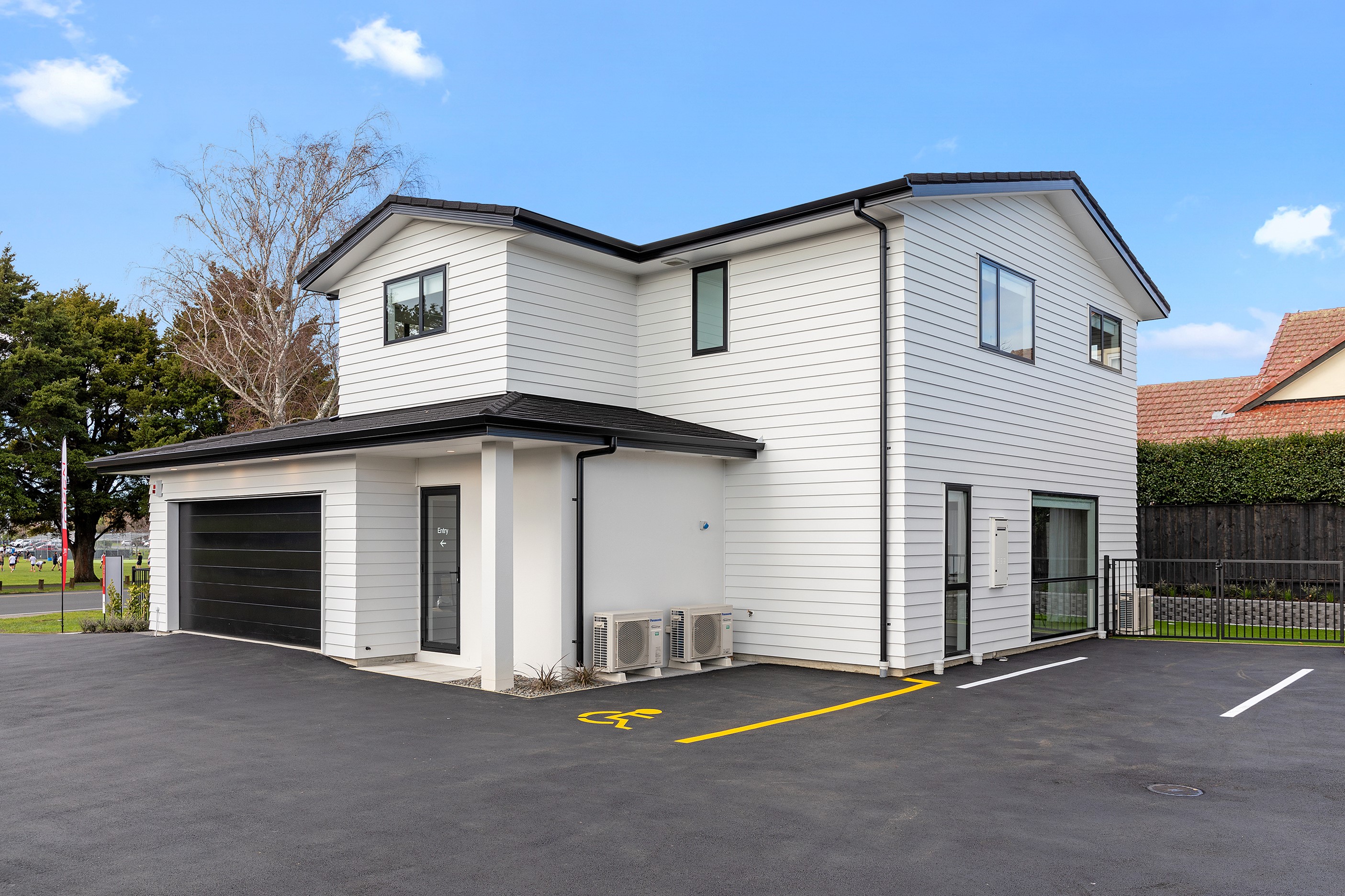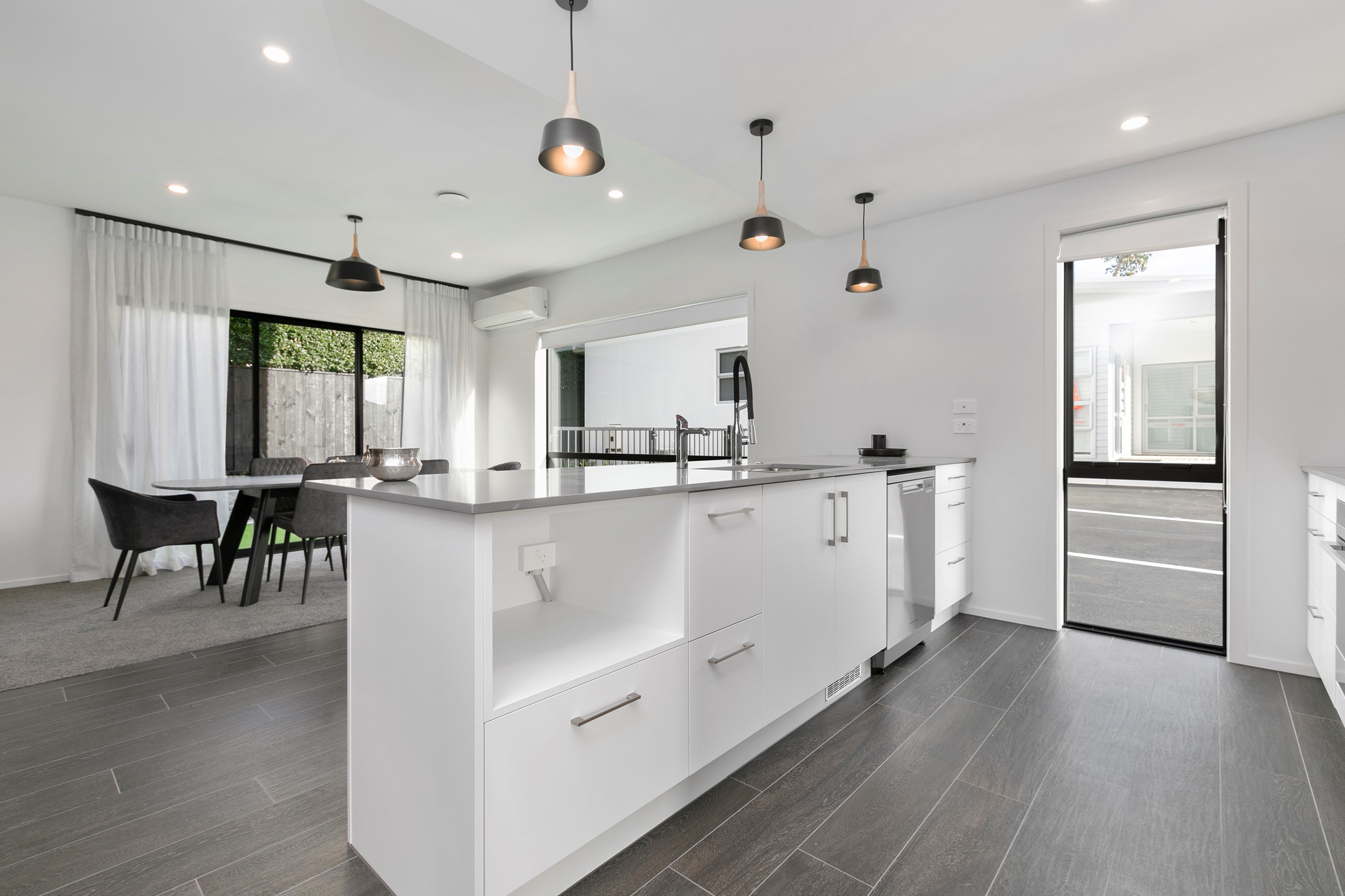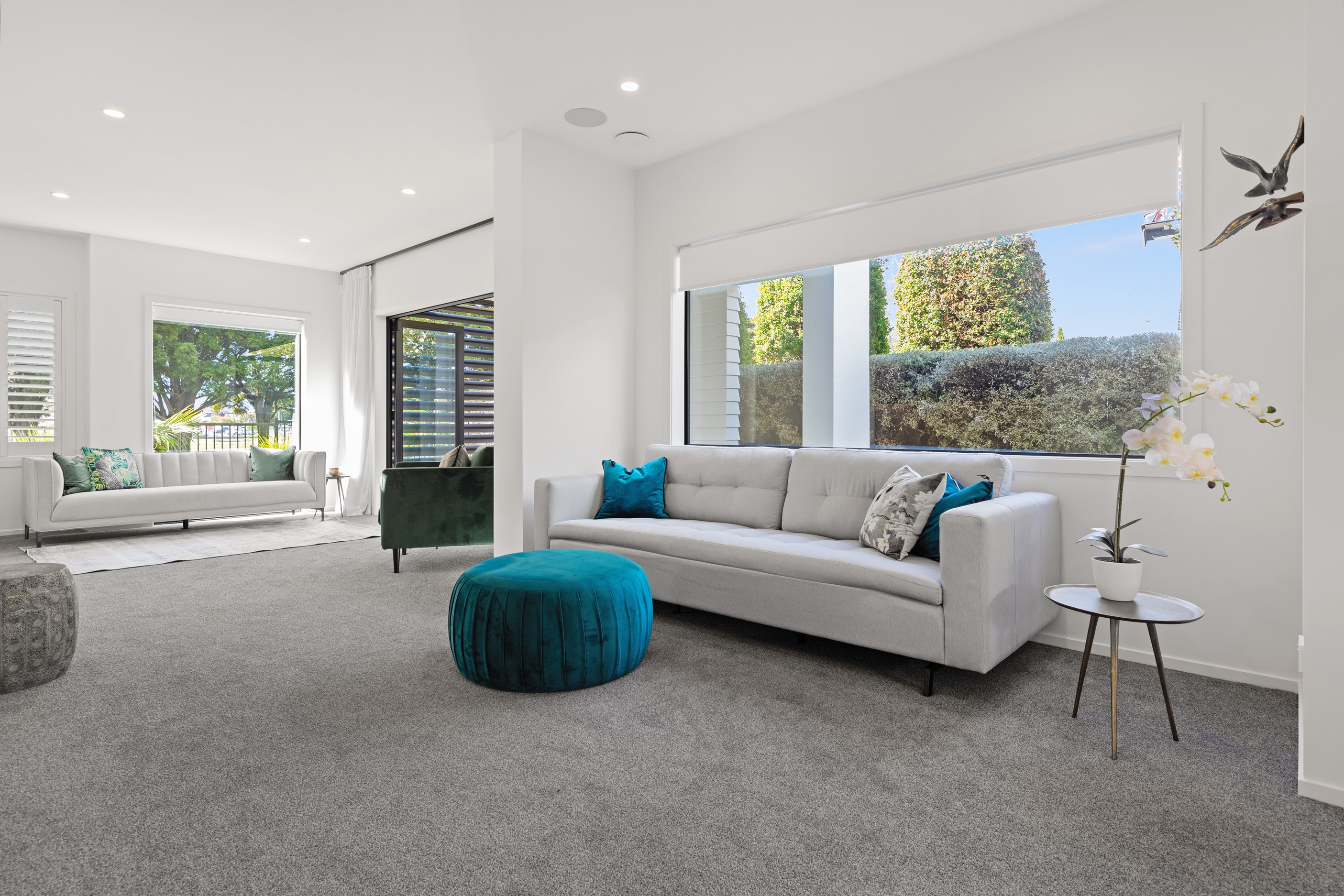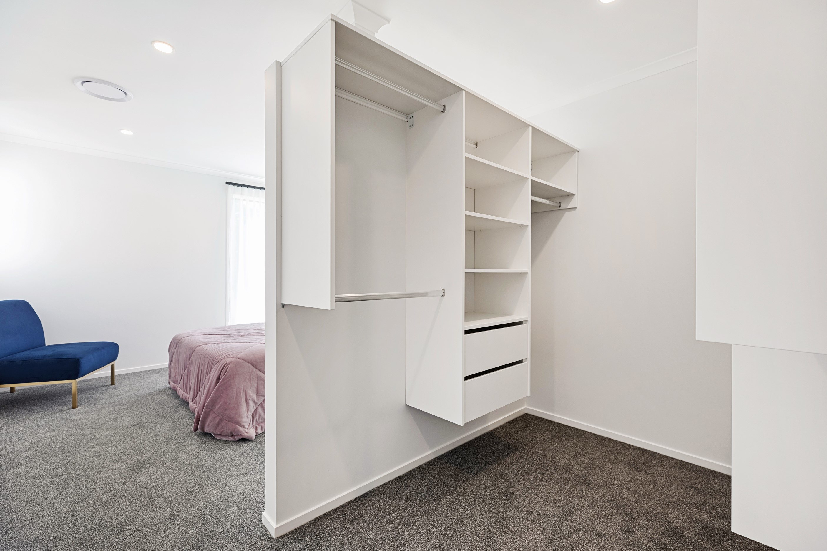 A house with presence was required as Jennian’s shopfront and show home. Located on busy Fifteenth Ave, it needed to appeal to past, current and prospective clients, as well as provide office space and parking for the franchise. Rising up from the land is this bold 218sqm home clad in Linea weatherboard and topped with tiles. Immediately striking from the street are the varied rooflines and postbox-red front door. Inside, home buyers can inspect Jennian’s standard fittings, as well as upgrade options. To illustrate the point: the main bathroom is straight from the plans, while the ensuite has been given special treatment. Whether standard or upgraded, design features abound– the timber staircase has a floor-to-ceiling timber screen, a covered patio is accessed through stacking doors and a feature pendant light illuminates the stairwell. Downstairs is all about relaxed living in the L-shaped open-plan dining, lounge and kitchen zone. The latter has a scullery, which connects directly to the double garage – ideal for unpacking groceries. You’ll find four roomy bedrooms upstairs, plus a family bathroom, main bedroom ensuite and toilets. There’s presence aplenty here, and also serious panache.