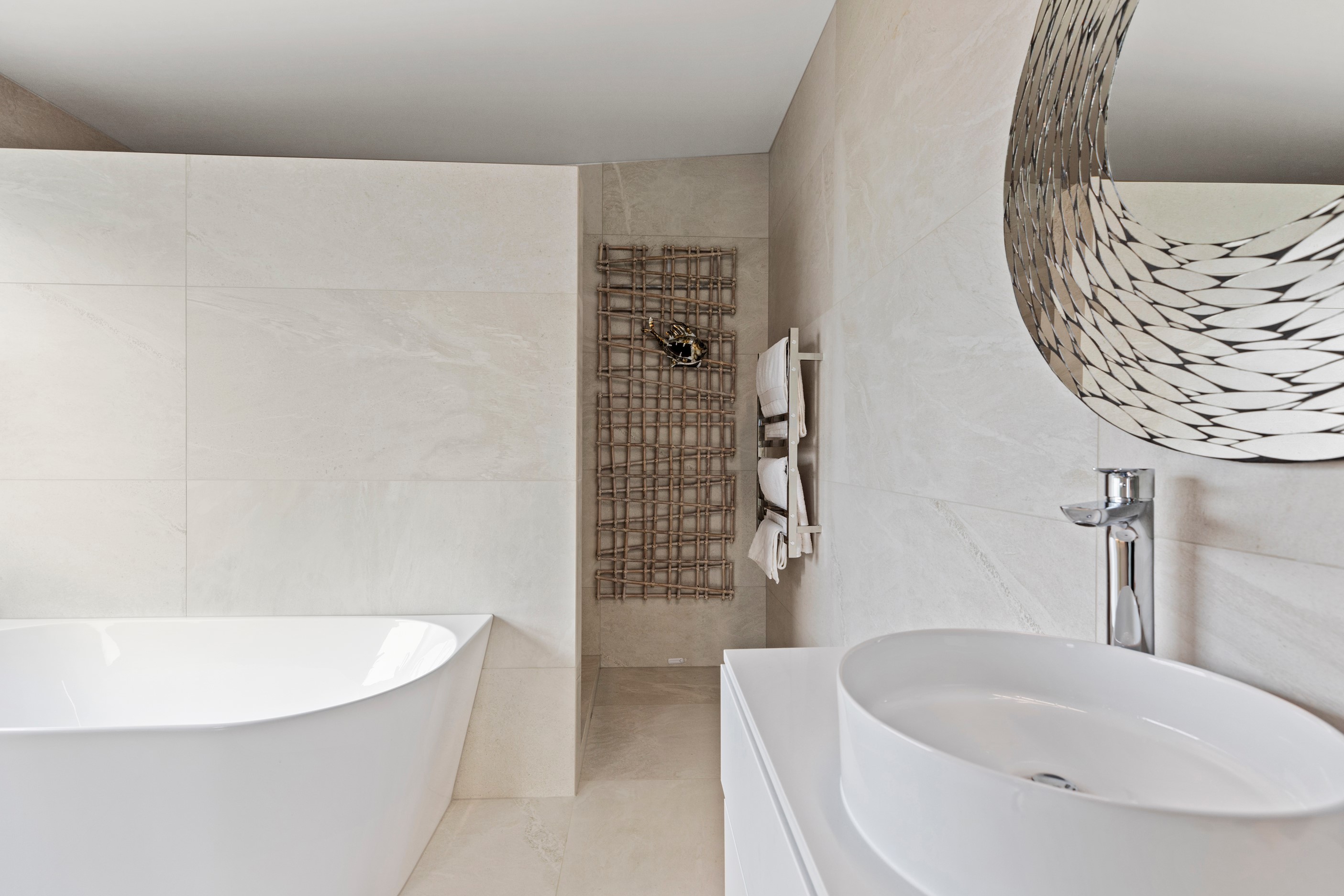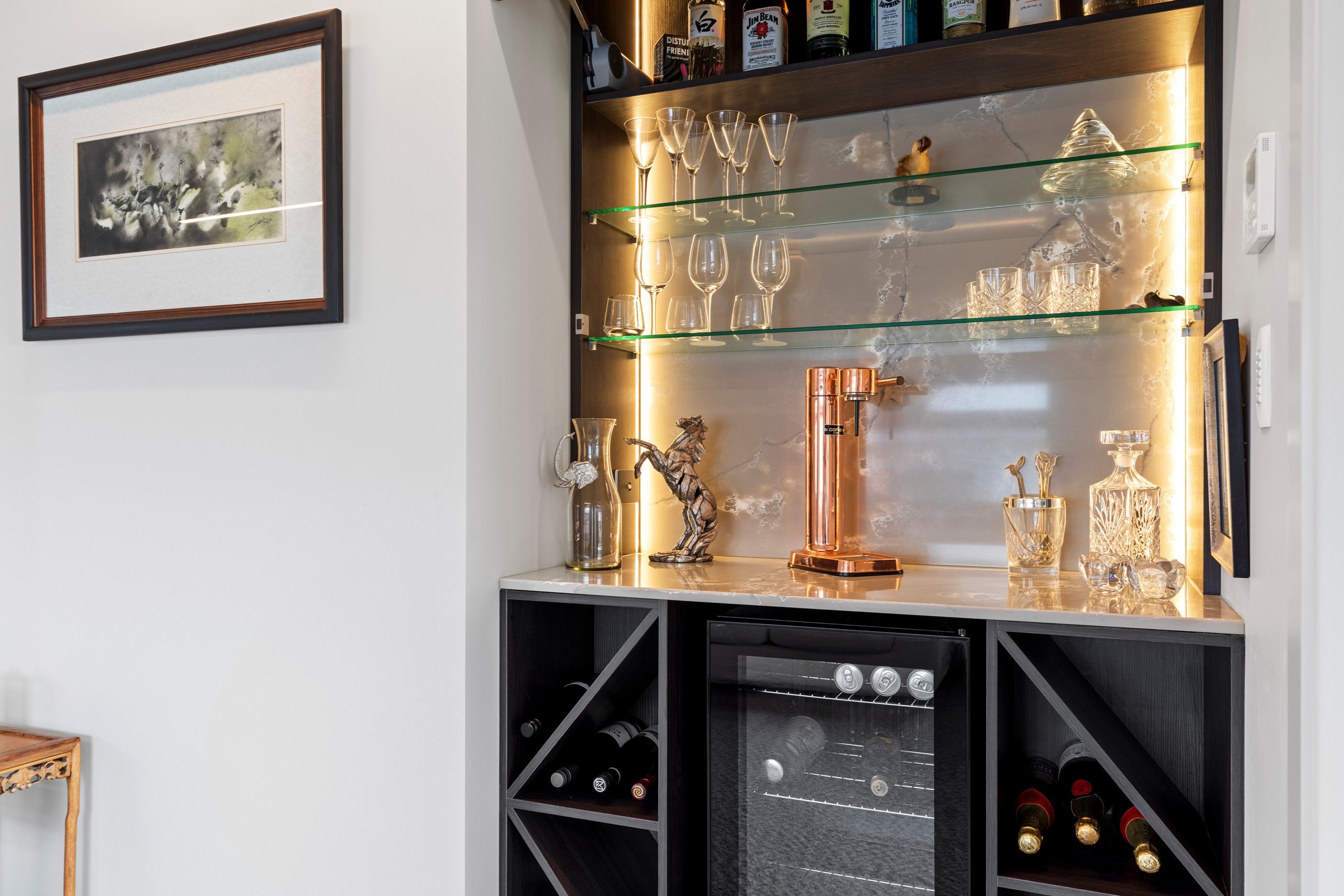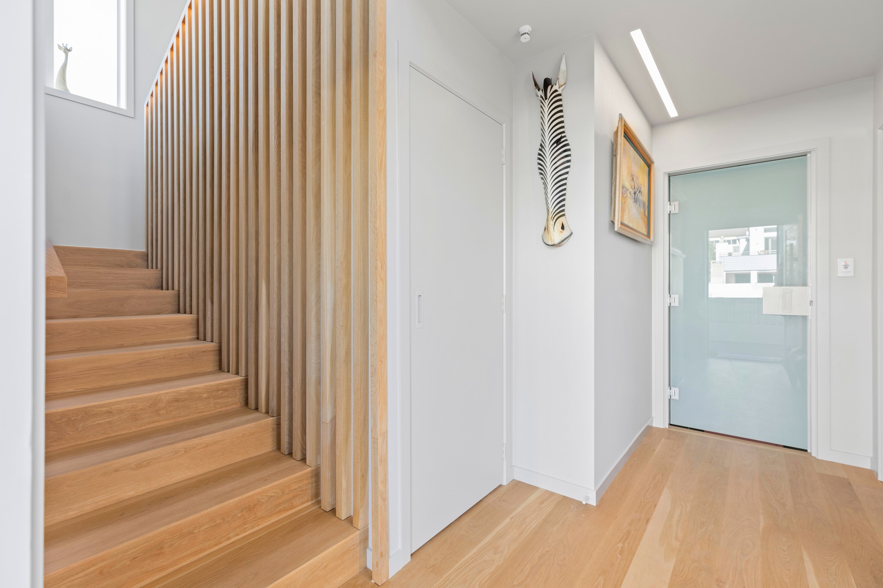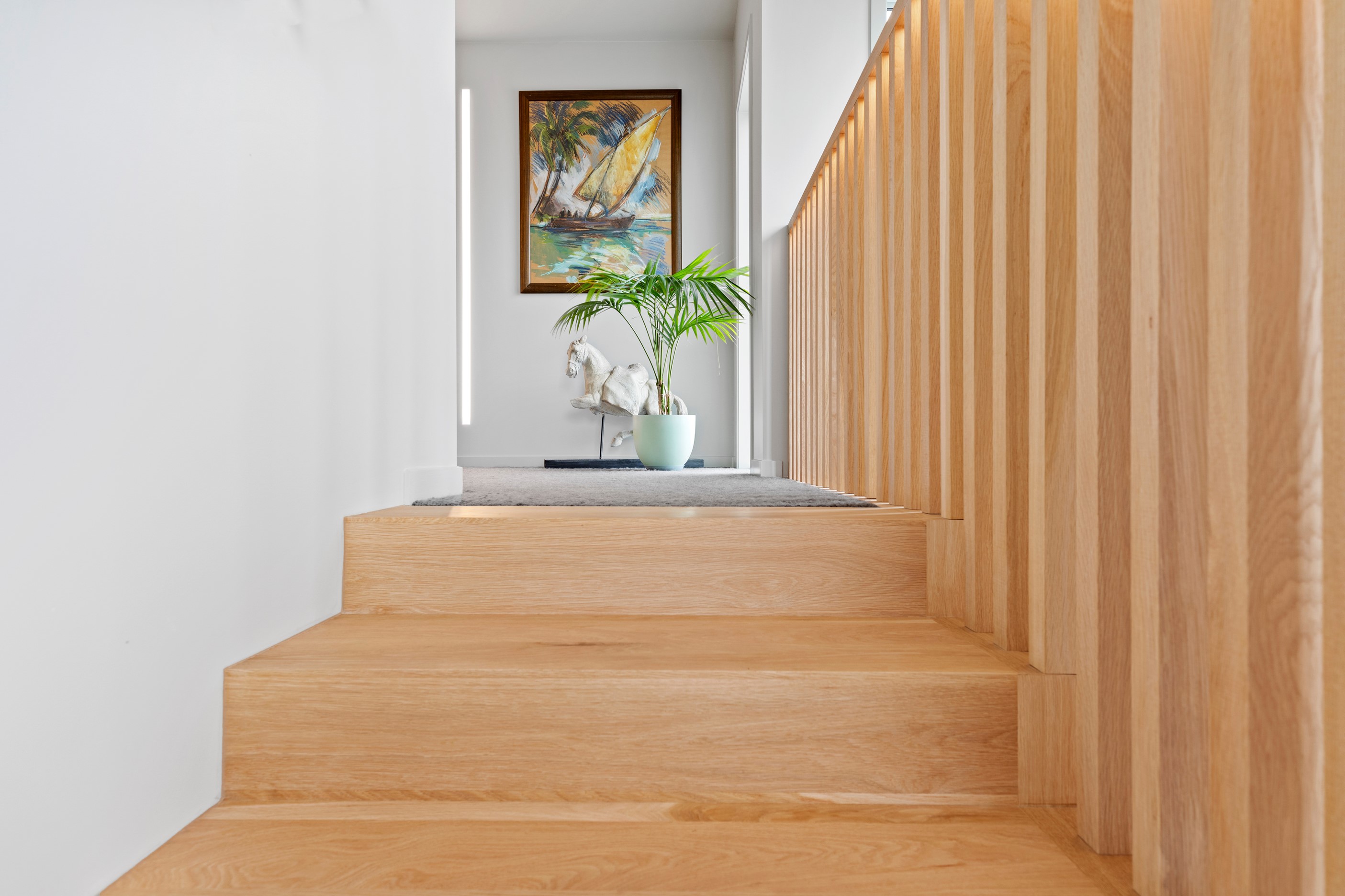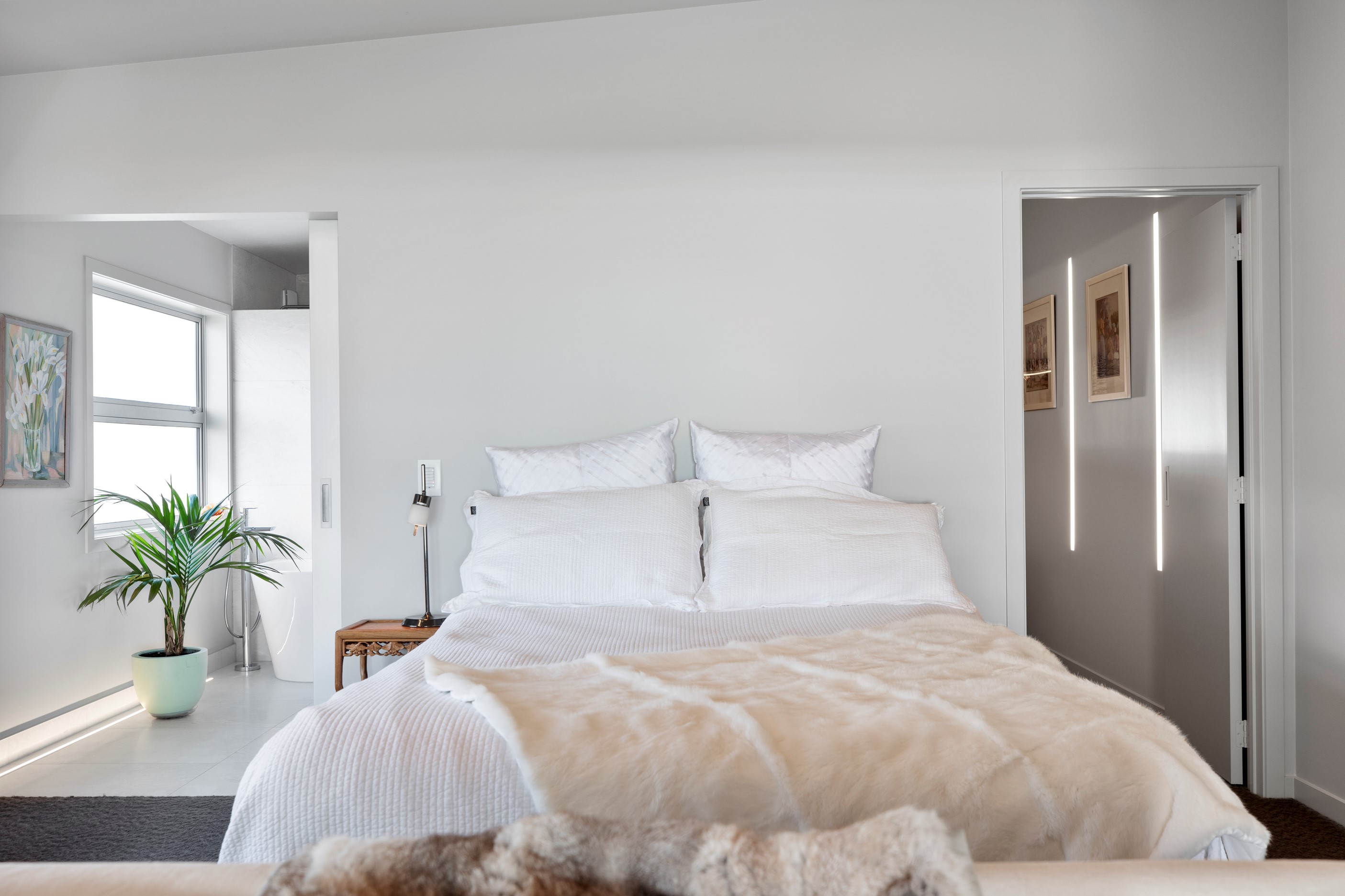 Beachfront entertaining has never been so easy – or so easily infused with relaxed coastal cool. This elegant 240sqm home places the living areas on the first floor to make the most of the Pacific Ocean views. The interiors open onto a north-facing deck and portico for sheltered dining and sea-gazing. With glass balustrades, this well-considered design provides uninterrupted access to those dreamy views. Separated from the living area by stacker doors is the main bedroom suite, which has a studio-style set-up with a sitting room, bar, walk-in wardrobe and an ensuite that wouldn’t look out of place in a resort. The rest of the first floor consists of a guest bedroom, bathroom and laundry, while downstairs you’ll find a double garage and basement. The entry and stairwell on the two-storey side of the property are crafted in American oak. This home puts timber craftsmanship in the spotlight, and is also a stellar example of smart technology at work. LED lighting, security, heating and even the oven can be controlled by a smartphone or tablet using theControl4 automation system. Clever furniture choices add to the appeal. An adjustable dining table can be configured several ways, including as a breakfast bar.