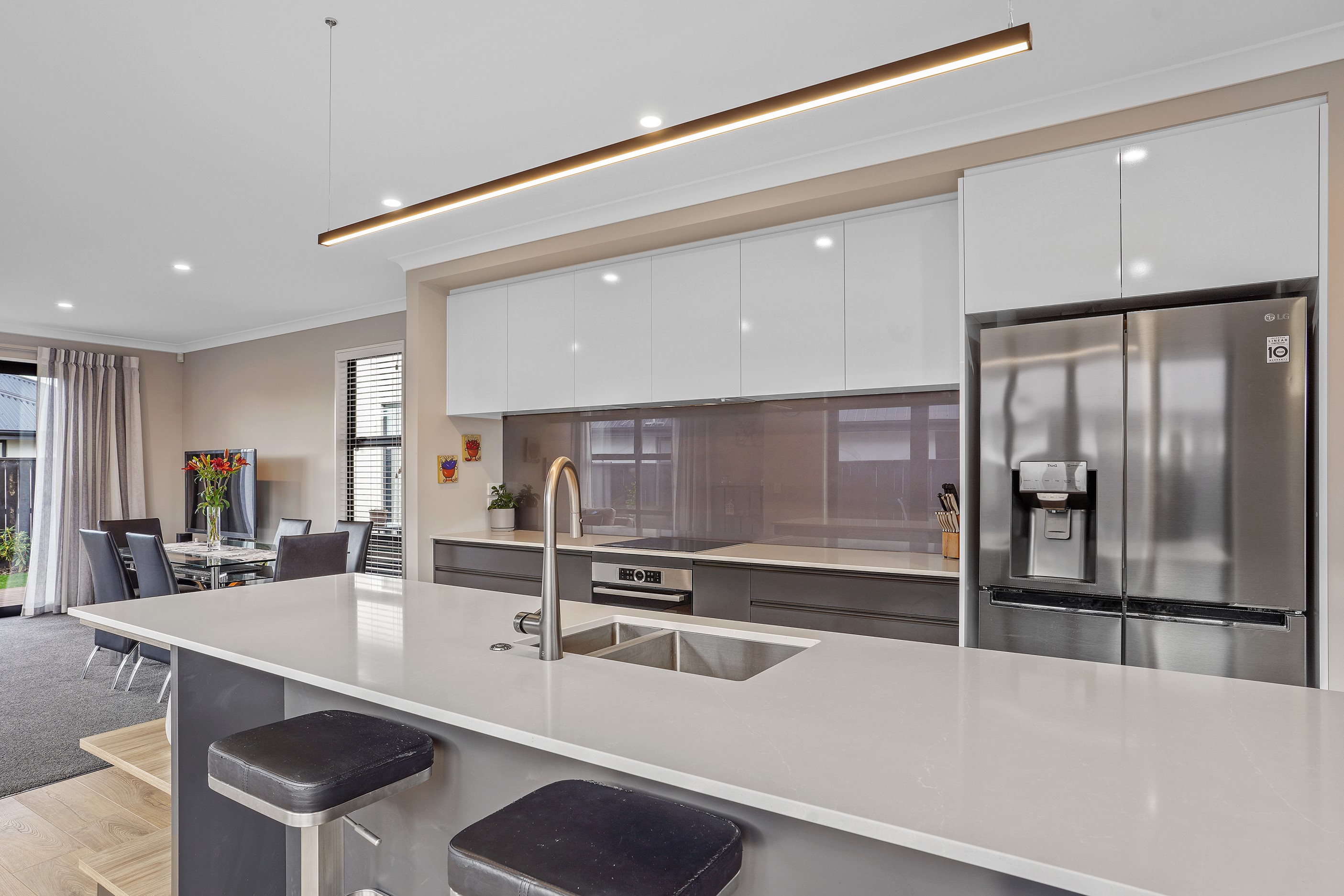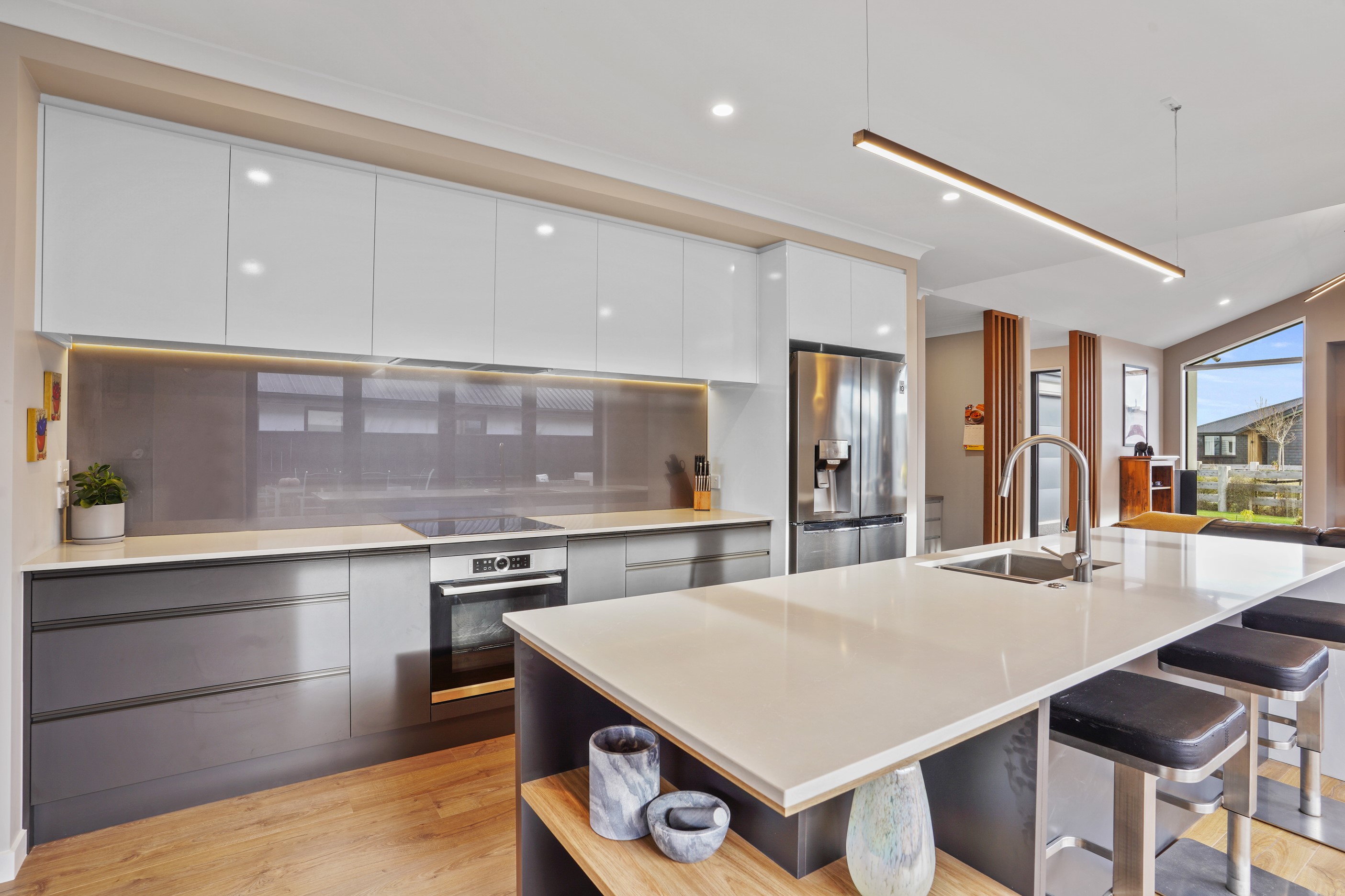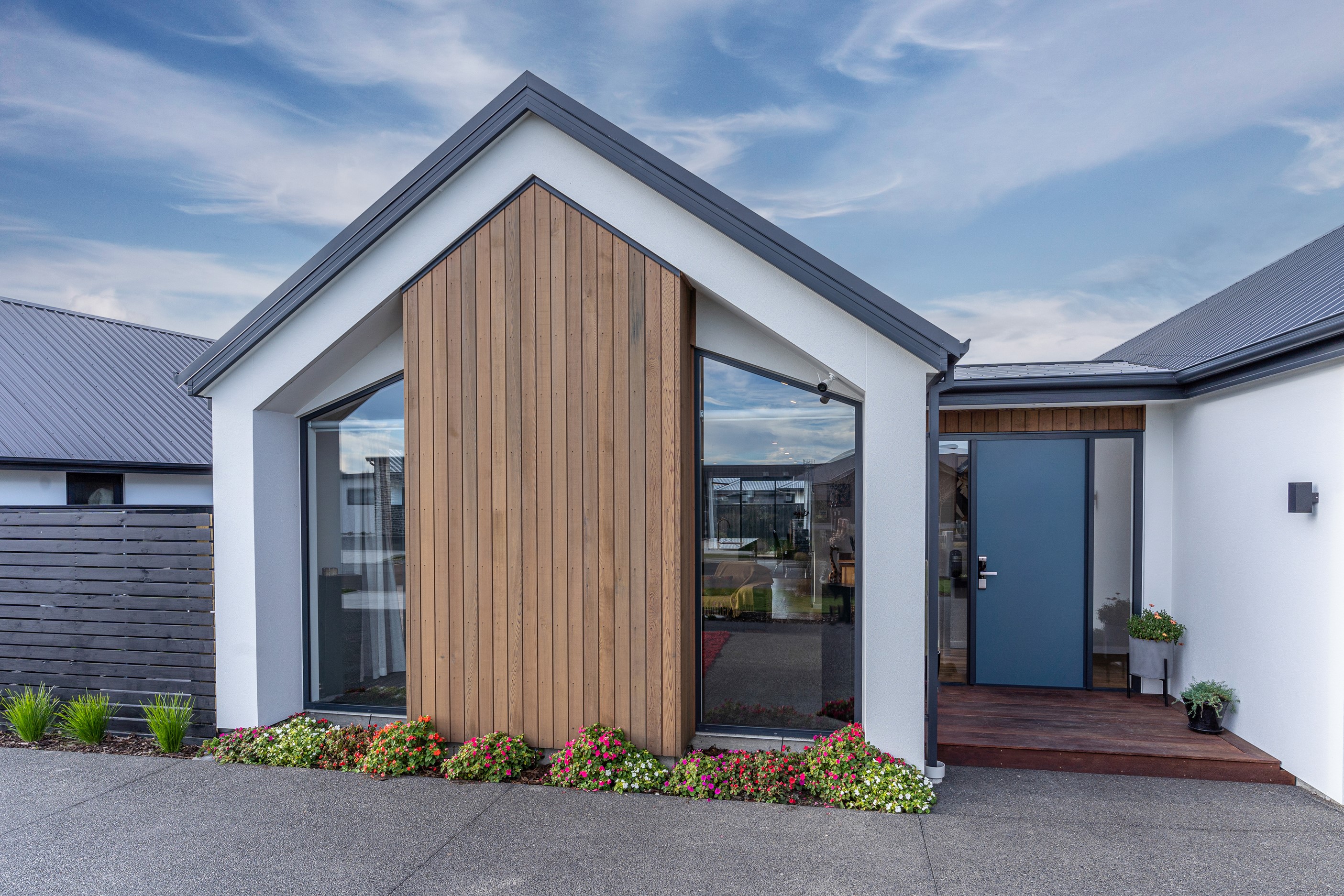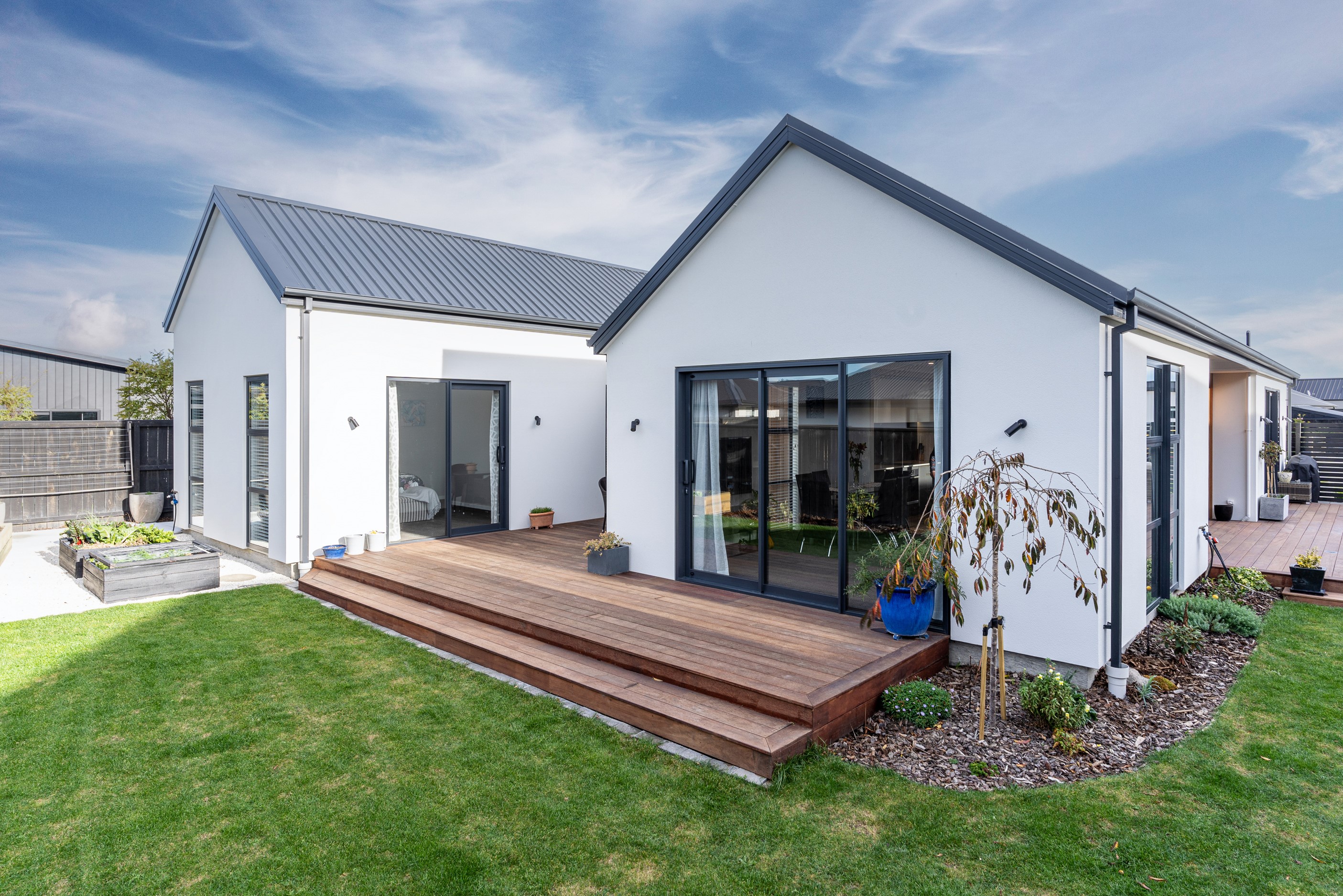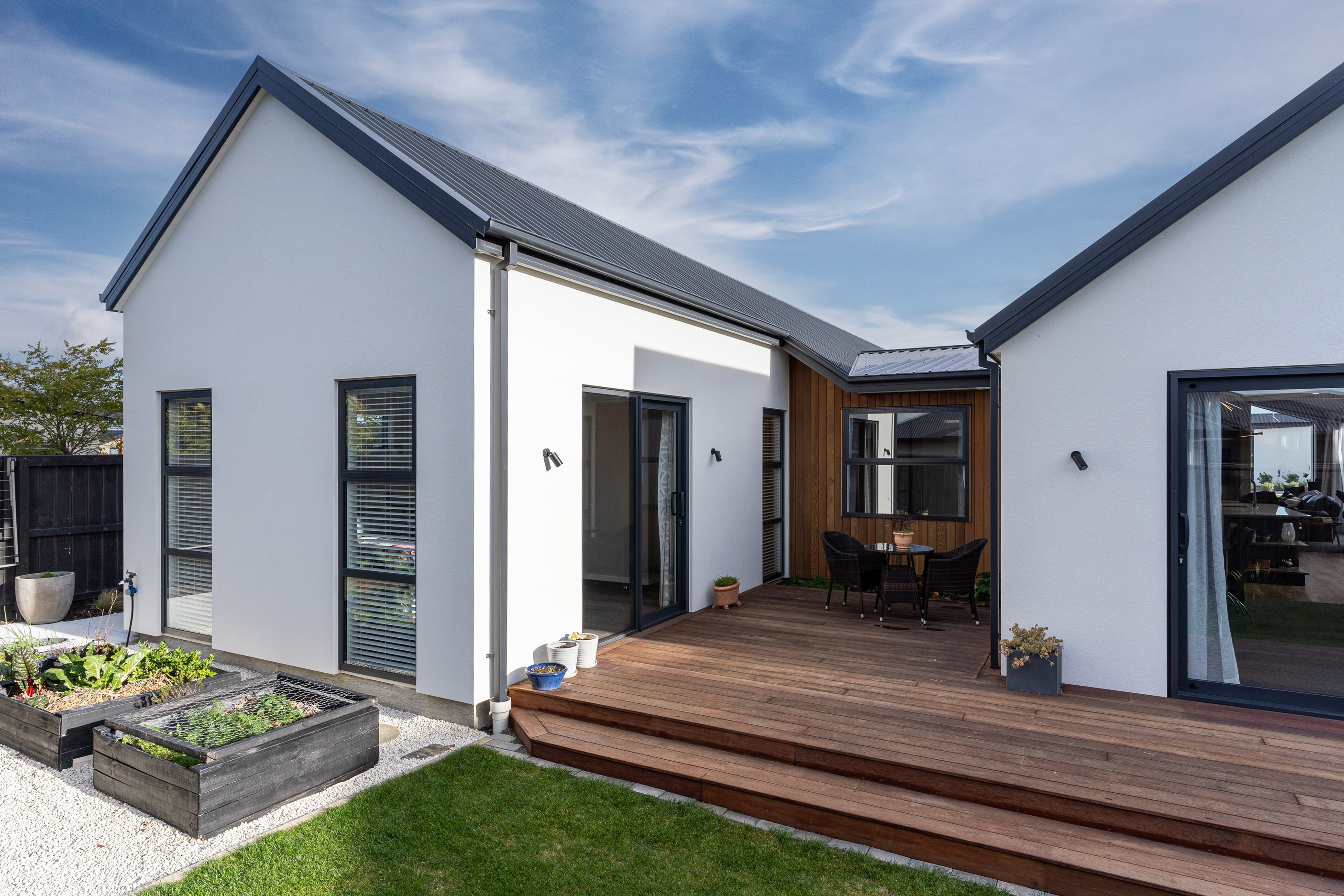 This suburban home steps outside the square with an H-shaped design that significantly increases usable space and access to natural light. It also affords a welcoming entrance and a place for visitors to pause before moving into the main living area. The 221sqm footprint has been maximised for family life, with three bedrooms, two bathrooms and spacious open-plan living. A separate laundry and double garage accommodate all those extra sundries a family accrues. The stylish and functional kitchen has a scullery for ample storage and an island providing extra bench space and a convivial place to gather. The streamlined benchtops are crisp in neutral stone. Outdoor living flows naturally, with decks and patios an easy segue from the kitchen and living areas. Hosting friends and family for outdoor festivities is certain to be a feature during the long, hot Canterbury summers. Timber flooring adds natural warmth to the stylish monochrome palette. Vertical cedar louvred panels distinguish spaces, creating a study nook just off the main living area. More than simply smart and well-designed, this house exhibits style with a homely touch that will endure.