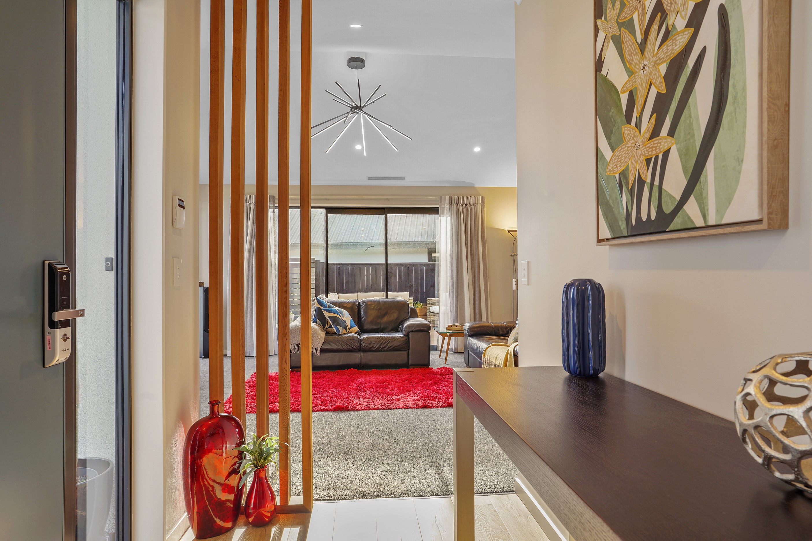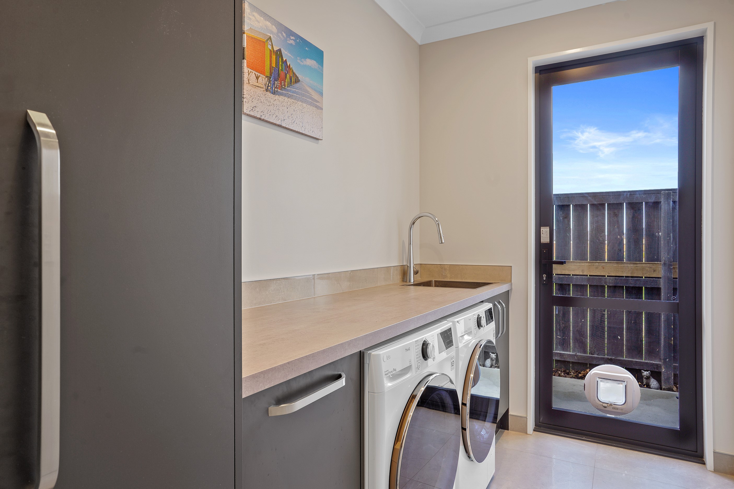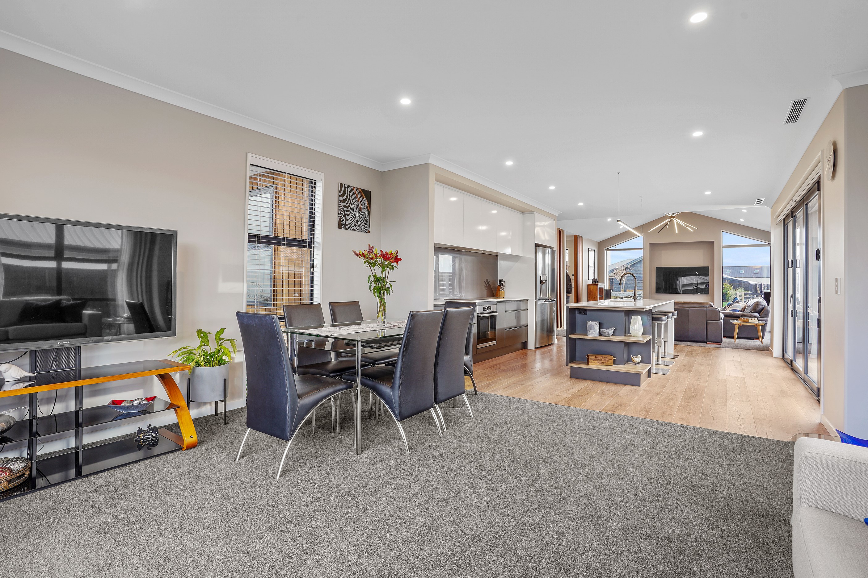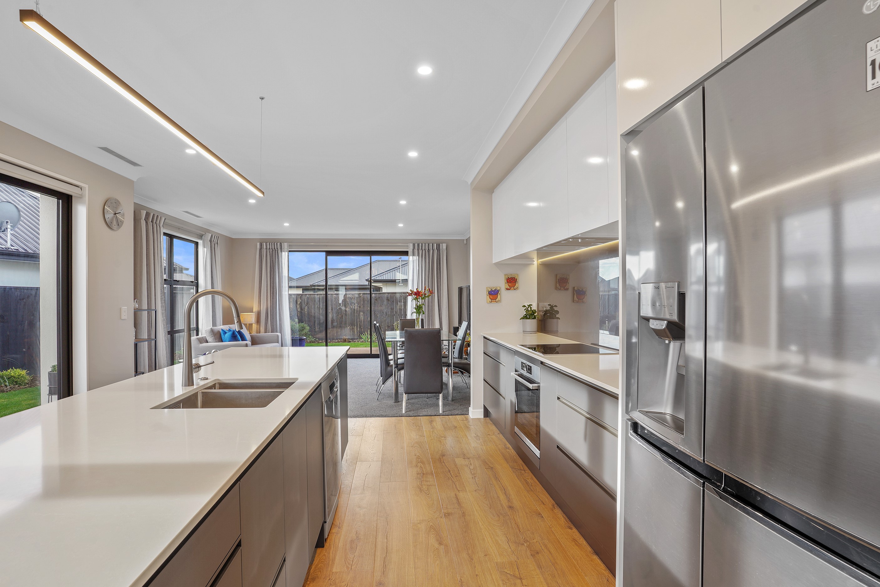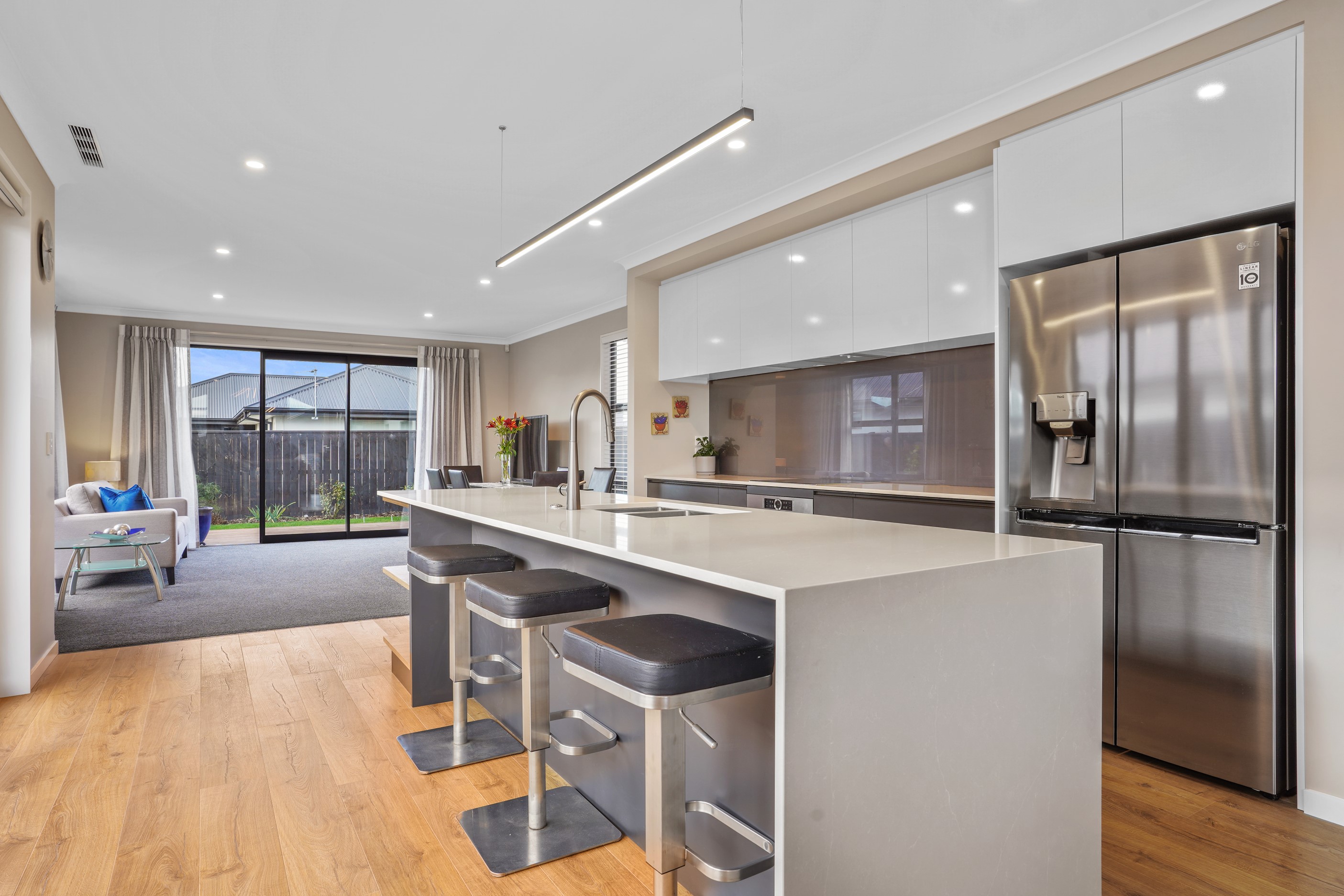 This suburban home steps outside the square with an H-shaped design that significantly increases usable space and access to natural light. It also affords a welcoming entrance and a place for visitors to pause before moving into the main living area. The 221sqm footprint has been maximised for family life, with three bedrooms, two bathrooms and spacious open-plan living. A separate laundry and double garage accommodate all those extra sundries a family accrues. The stylish and functional kitchen has a scullery for ample storage and an island providing extra bench space and a convivial place to gather. The streamlined benchtops are crisp in neutral stone. Outdoor living flows naturally, with decks and patios an easy segue from the kitchen and living areas. Hosting friends and family for outdoor festivities is certain to be a feature during the long, hot Canterbury summers. Timber flooring adds natural warmth to the stylish monochrome palette. Vertical cedar louvred panels distinguish spaces, creating a study nook just off the main living area. More than simply smart and well-designed, this house exhibits style with a homely touch that will endure.