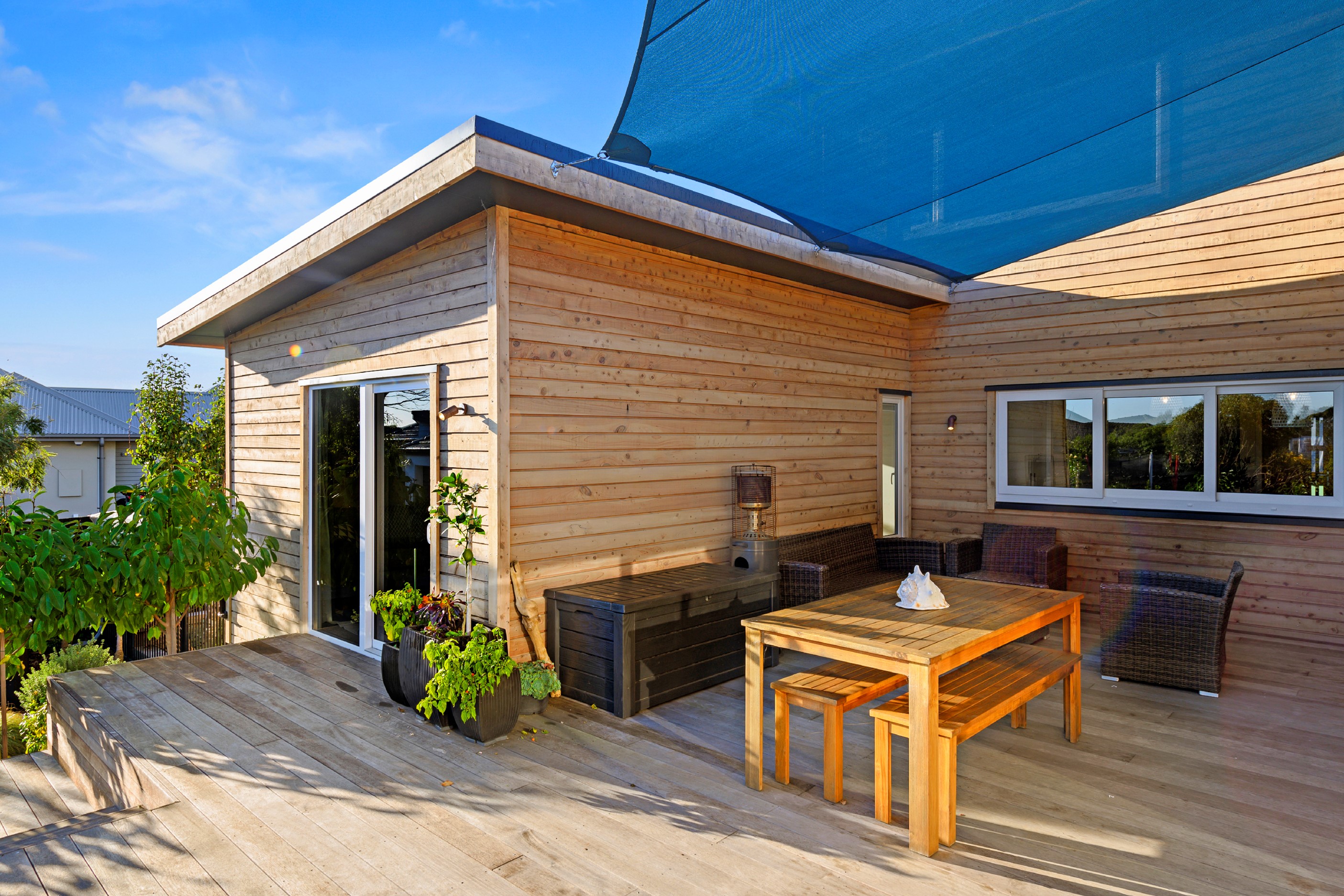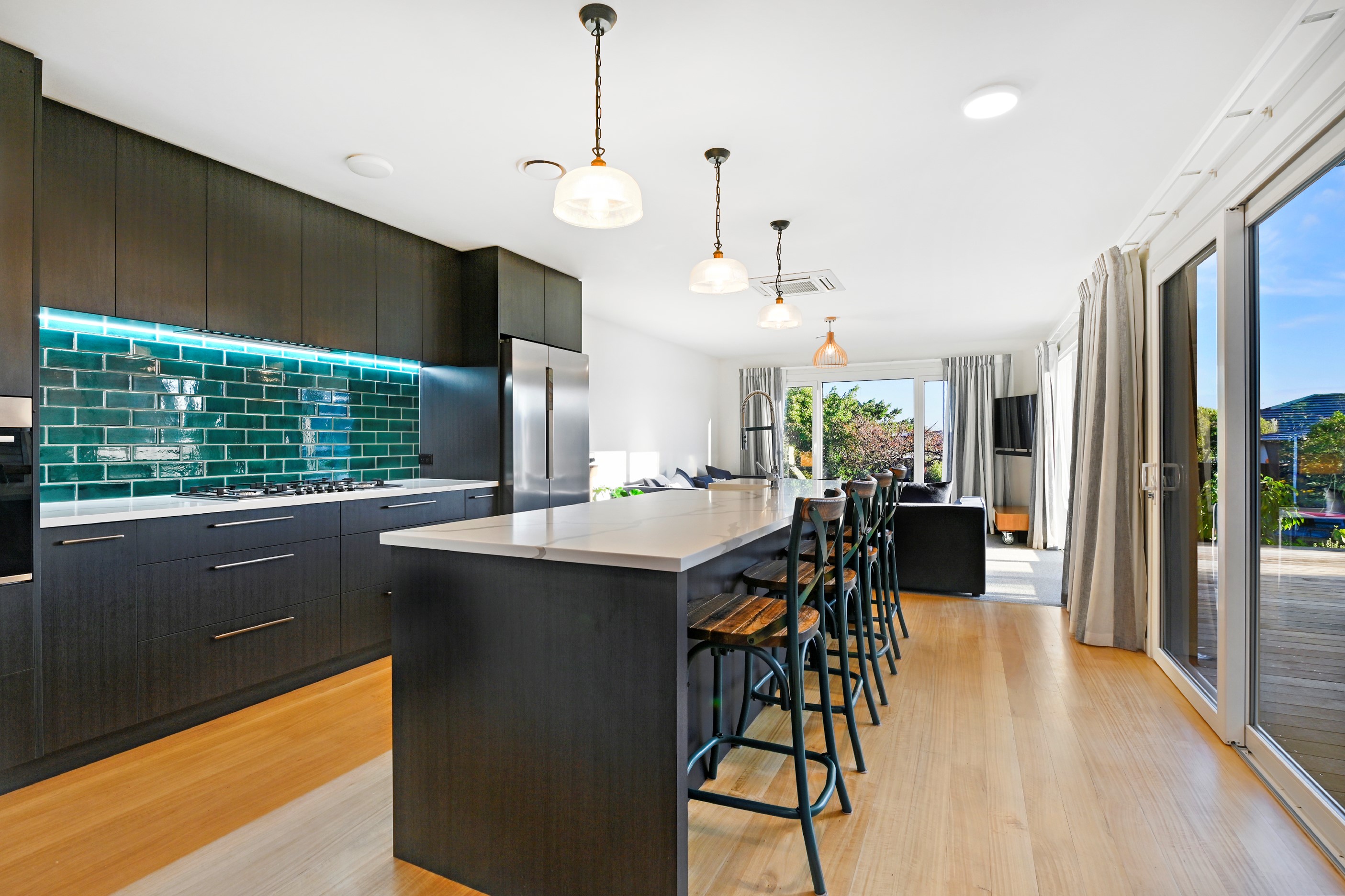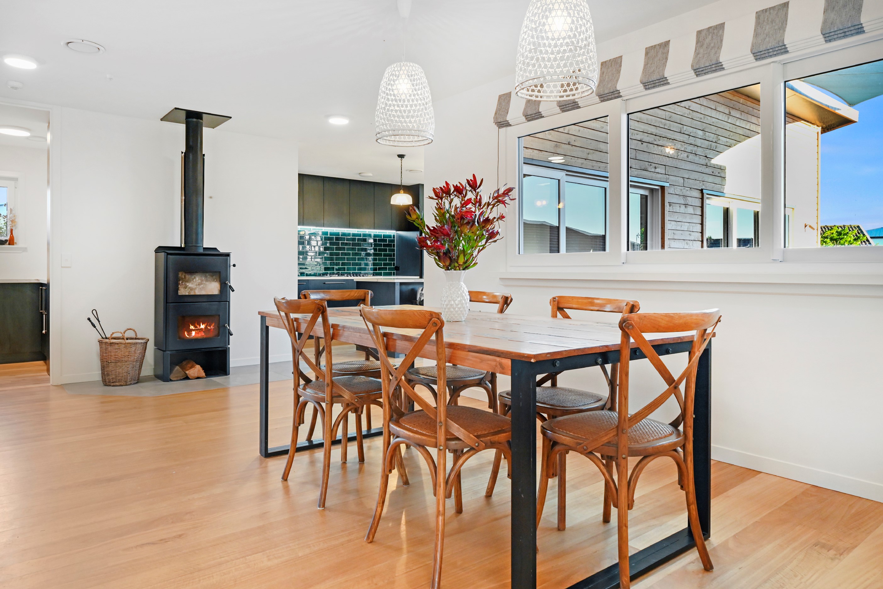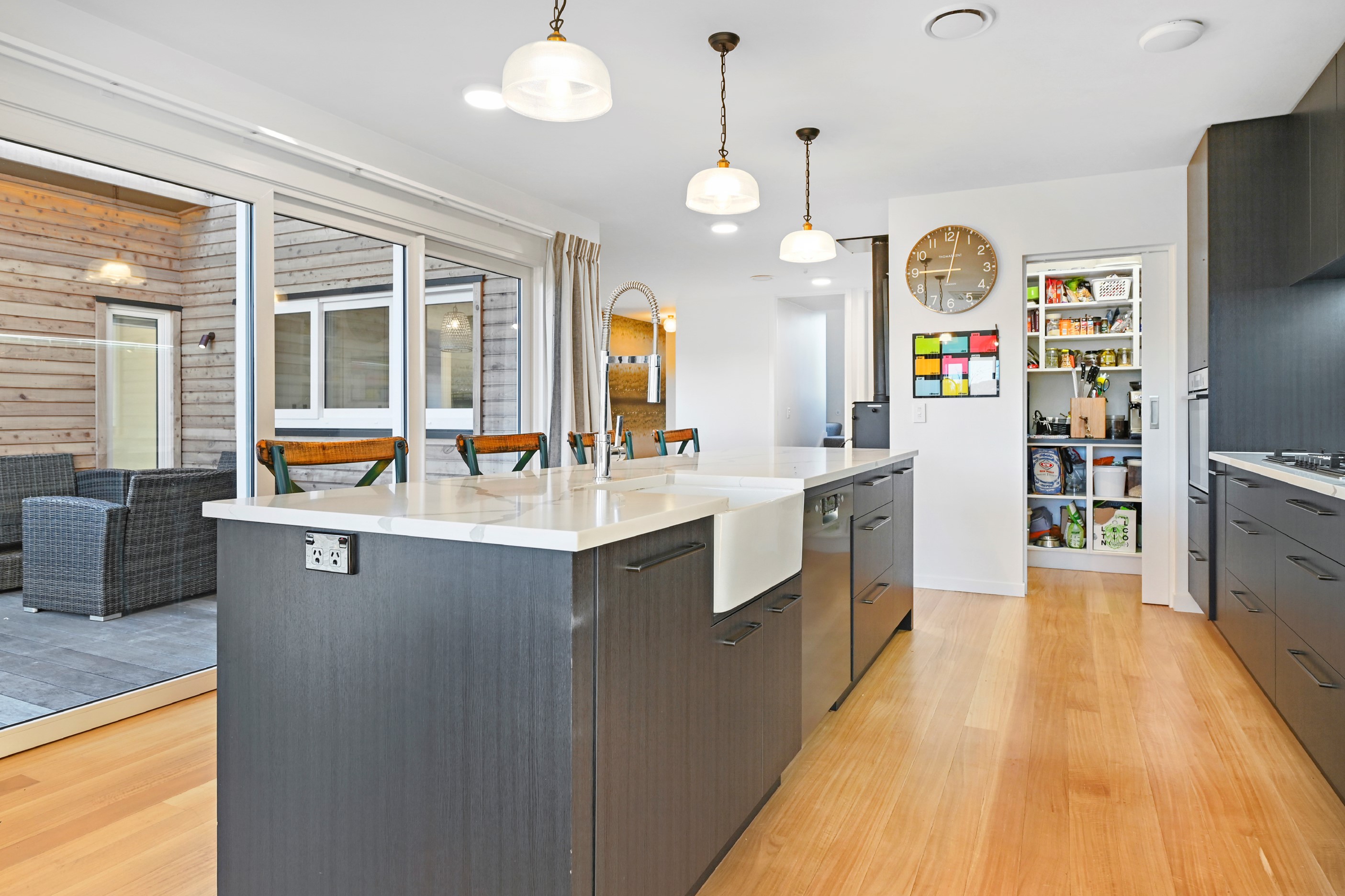 If you’re searching for style, comfort and sustainability in your new home, this 180sqm residence has it all. Designed by Scratch Architecture, it has four bedrooms including a main-bedroom suite with a panoramic view of the mountains; open-plan living; and a fenced, landscaped back garden. It’s also a looker. Rusticated weatherboards ease the home into its coastal environs and the U-shaped design accommodates a sheltered deck. Out here, there’s space to wine, dine, relax and connect with the garden. Environmental sustainability was top of mind when the home was being designed and built. Windows from the old house on the site were reused, and timber for the cladding, fascias and tongue-and-groove flooring was sourced from the owners’ family farm. Inside, personal touches such as the striking coloured tiles in the kitchen splashback and pendant lights elevate this house into a home. To keep things cosy in chilly Canterbury winters, the house is cocooned in spray-foam insulation and clad with high-performance exterior walls. A heat-recovery system and a fire ensure the snug factor.
