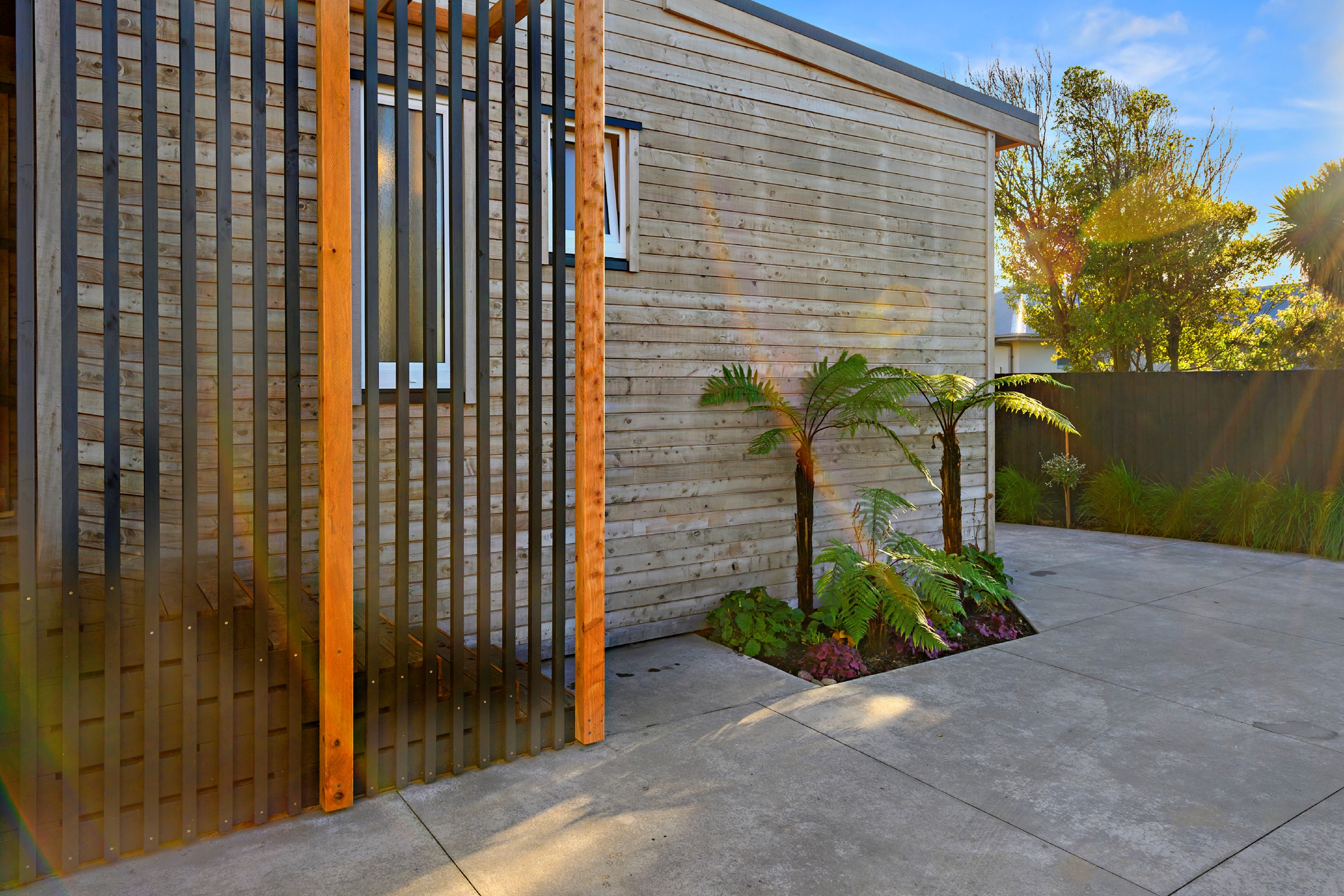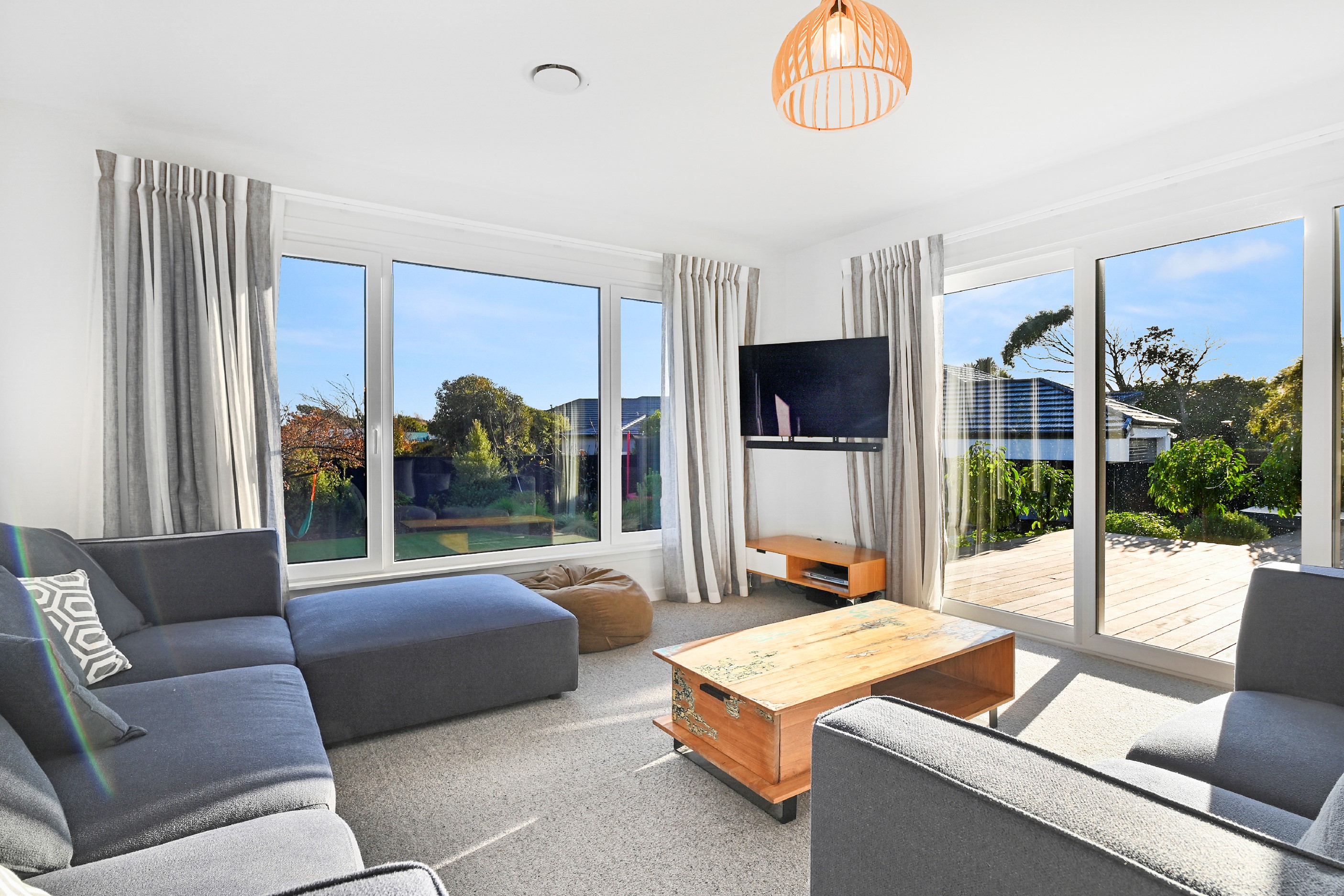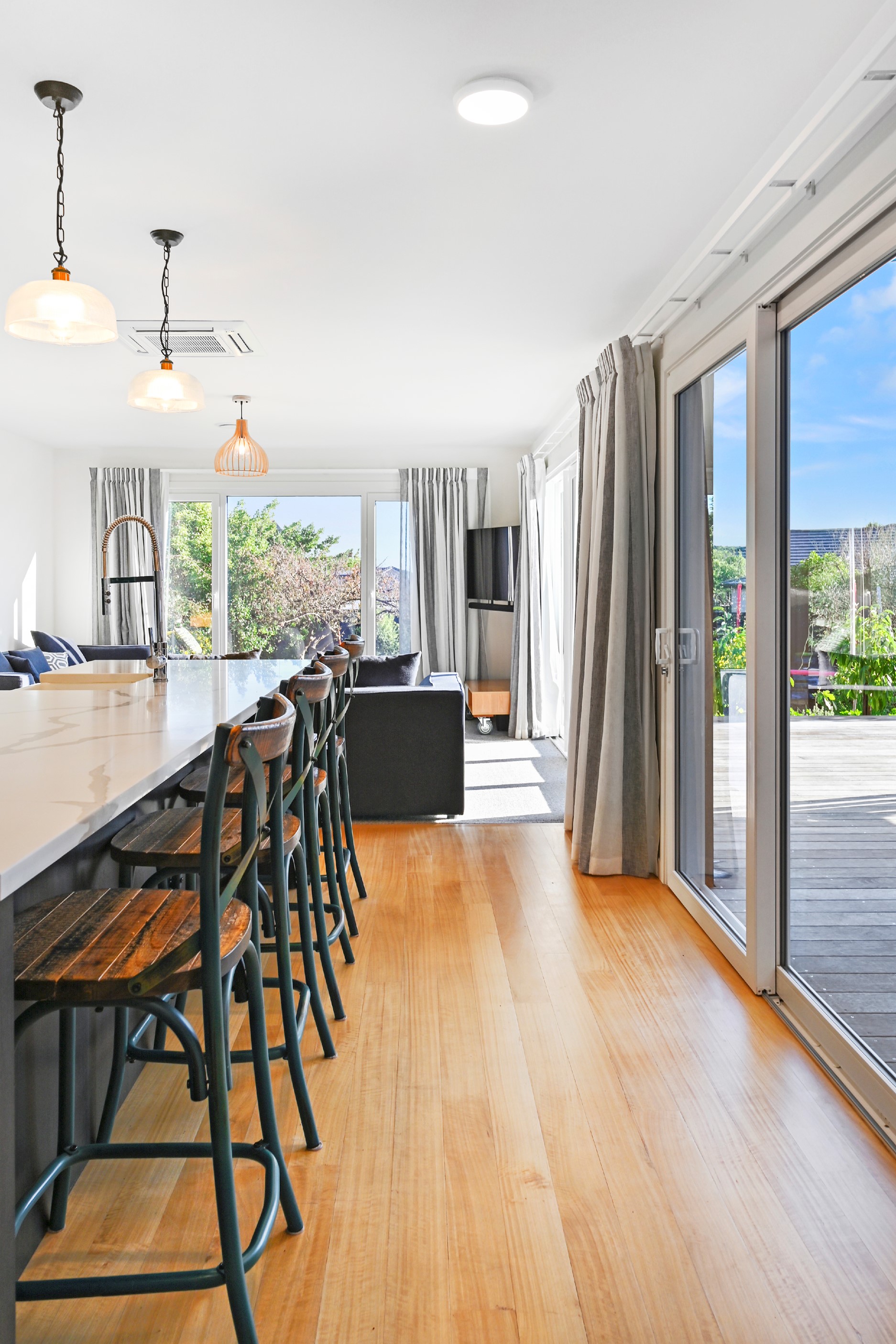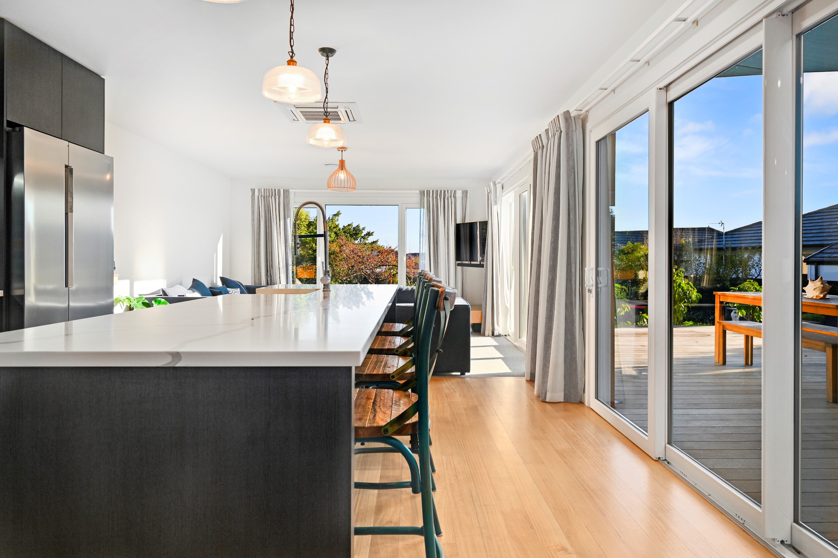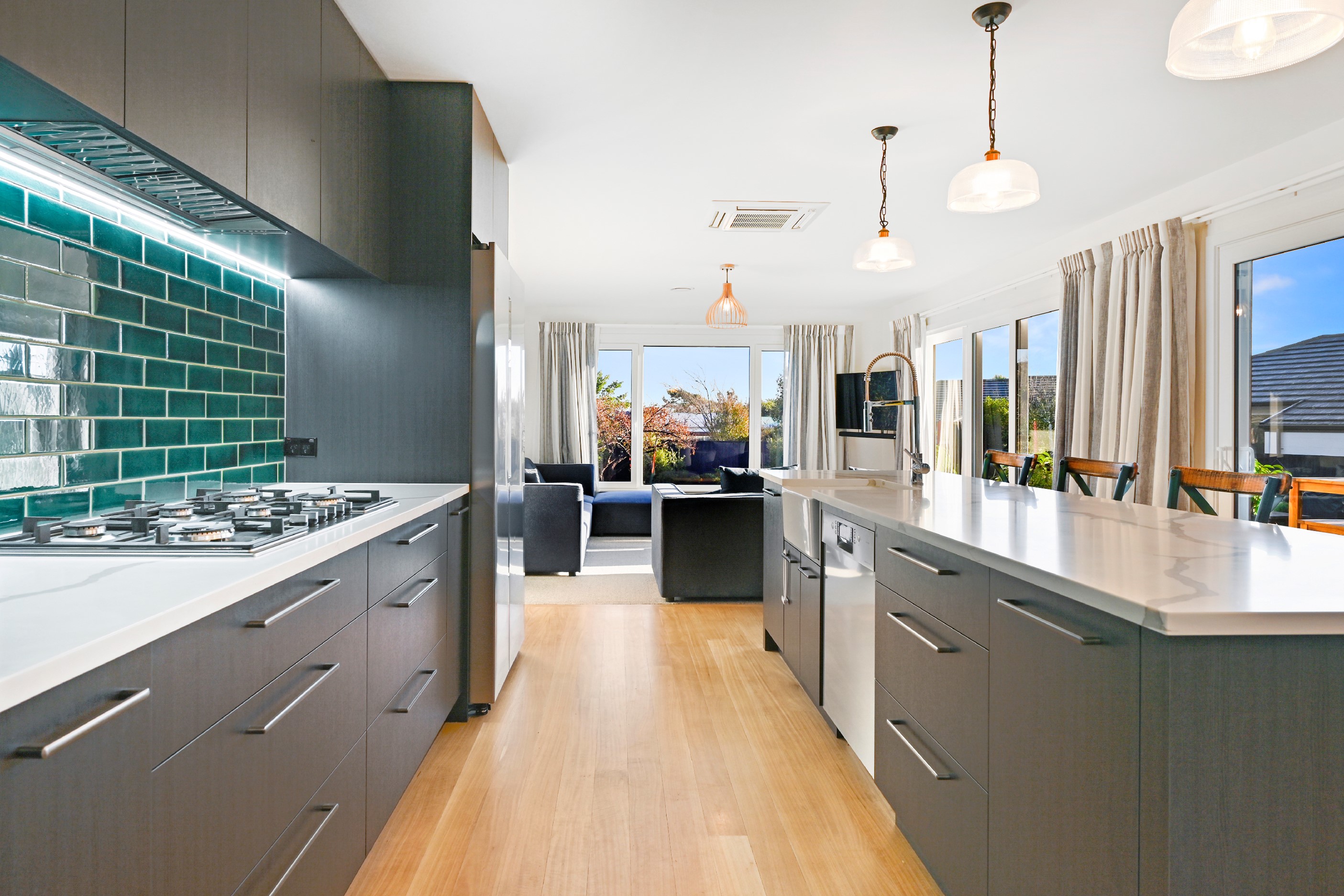 If you’re searching for style, comfort and sustainability in your new home, this 180sqm residence has it all. Designed by Scratch Architecture, it has four bedrooms including a main-bedroom suite with a panoramic view of the mountains; open-plan living; and a fenced, landscaped back garden. It’s also a looker. Rusticated weatherboards ease the home into its coastal environs and the U-shaped design accommodates a sheltered deck. Out here, there’s space to wine, dine, relax and connect with the garden. Environmental sustainability was top of mind when the home was being designed and built. Windows from the old house on the site were reused, and timber for the cladding, fascias and tongue-and-groove flooring was sourced from the owners’ family farm. Inside, personal touches such as the striking coloured tiles in the kitchen splashback and pendant lights elevate this house into a home. To keep things cosy in chilly Canterbury winters, the house is cocooned in spray-foam insulation and clad with high-performance exterior walls. A heat-recovery system and a fire ensure the snug factor.