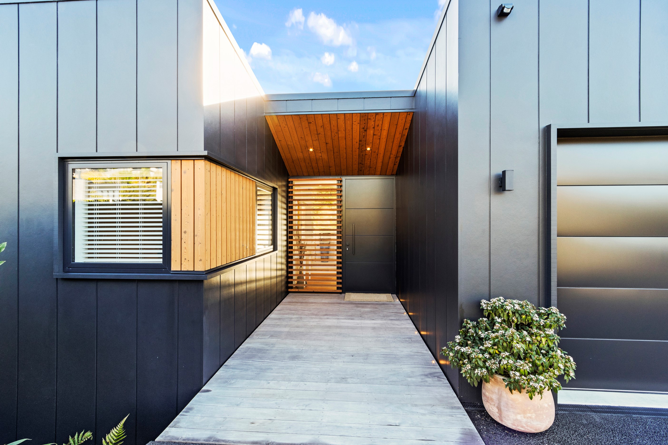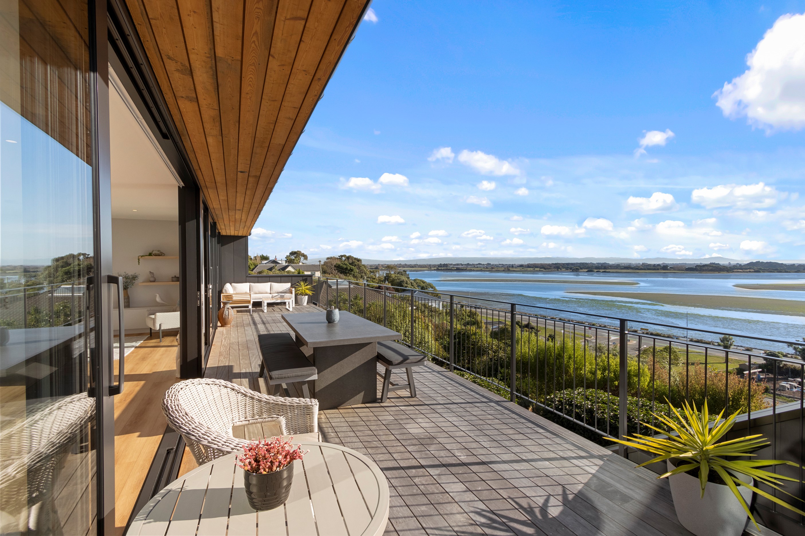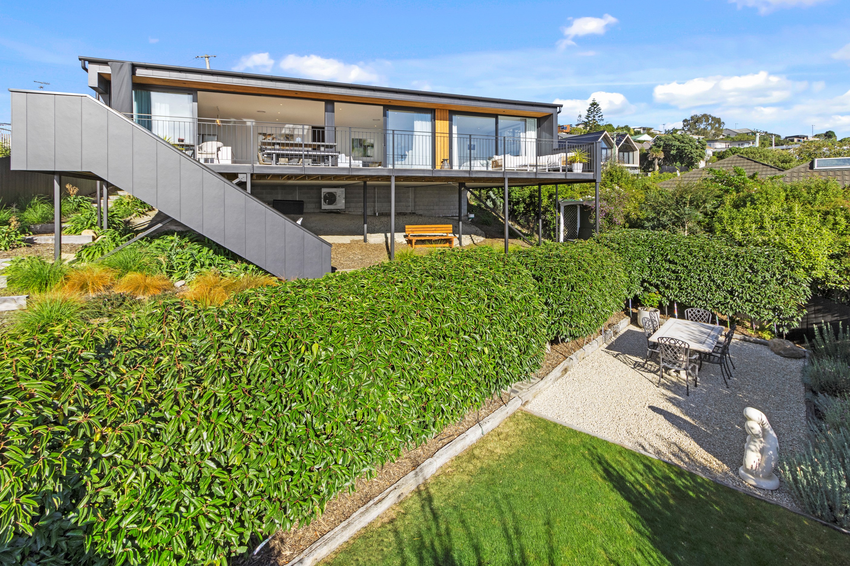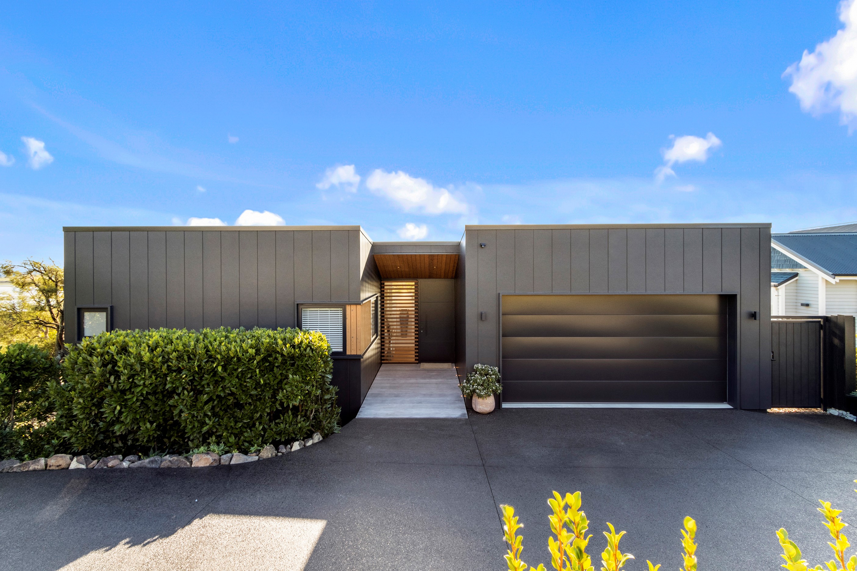 A couple ready to downsize went hunting for a house, but couldn’t find anything they liked enough. Then they were shown a terraced building site on the lower slopes of Mt Pleasant and instantly fell in love with it. As first-time builders, they were extremely excited. Before their plans were even drawn up they were on the section, pruning overgrown trees and taking in their new view across McCormacks Bay. The building team connected them with CoLab Architecture, which designed a two-bedroom house that would suit the owners as they approached their retirement years. The 128sqm floor plan is elegantly simple. There is no wasted space, yet there’s a feeling of volume in the key areas. You’ll find two bedrooms, two bathrooms and a deck that runs across the entire front of the house, with steps down to landscaped terraces. Every decision from the soothing colour palette to the crafted finishes has been thoughtfully carried out – and it shows. The owners also had treasures they’d kept over the years and these were incorporated into their new home. The exterior is stylish and unobtrusive. It is a beautifully crafted home and one that does justice to the special site.