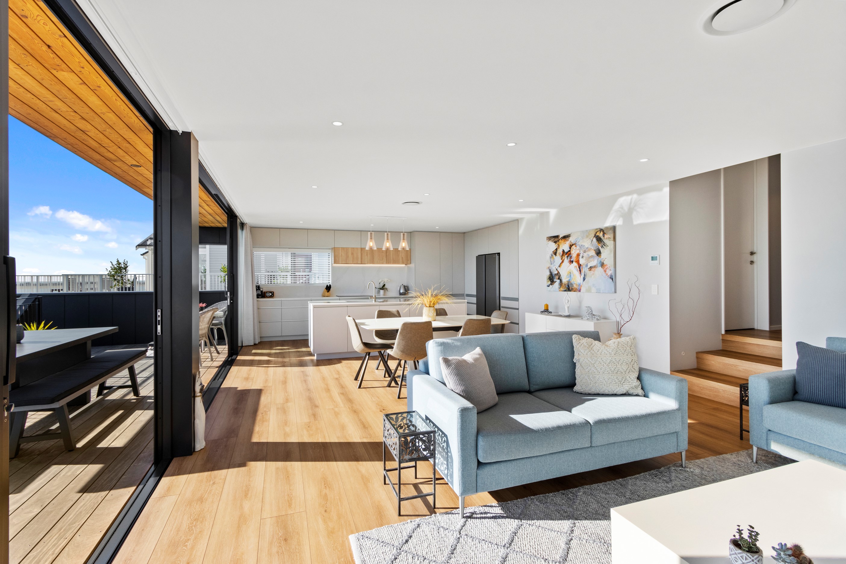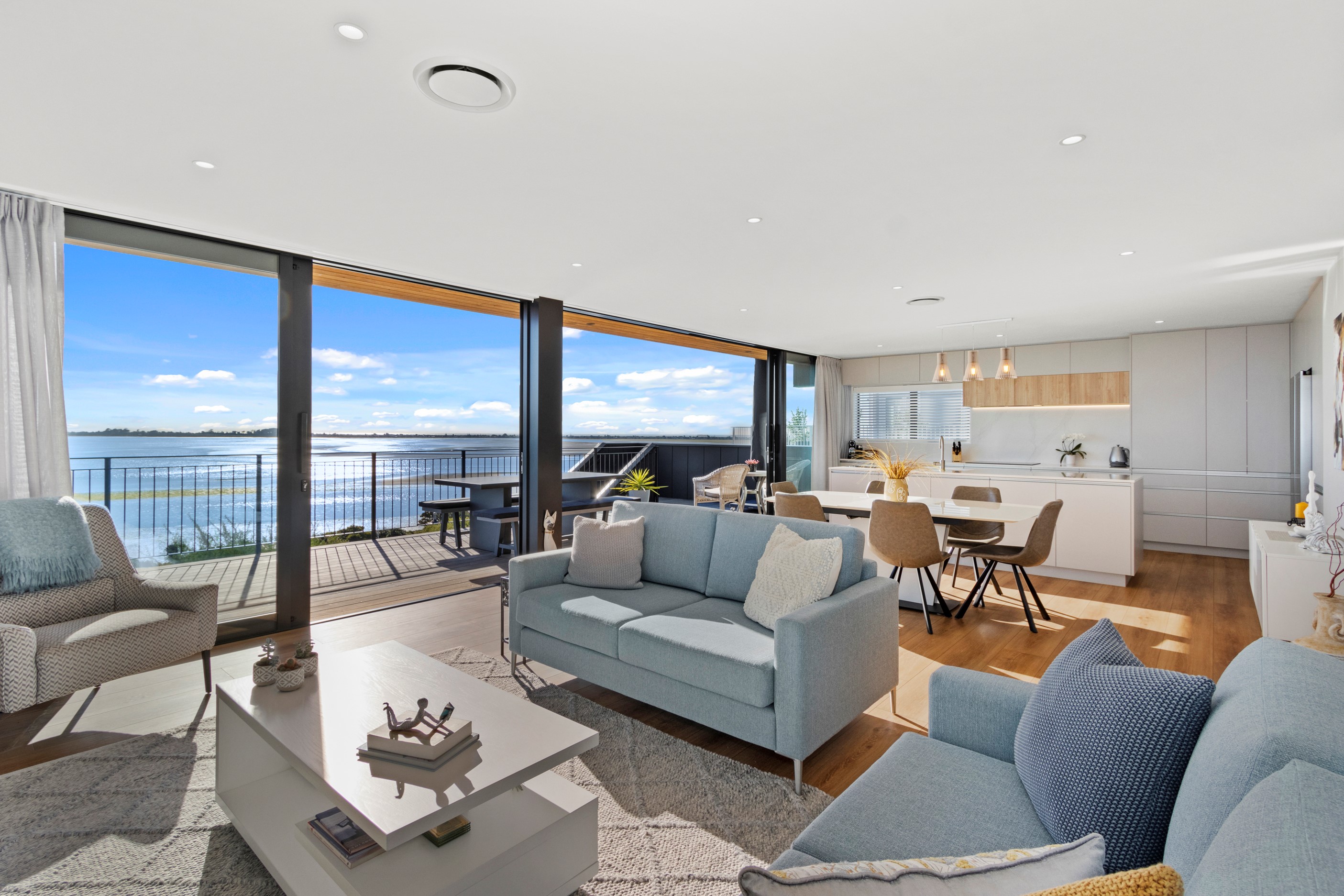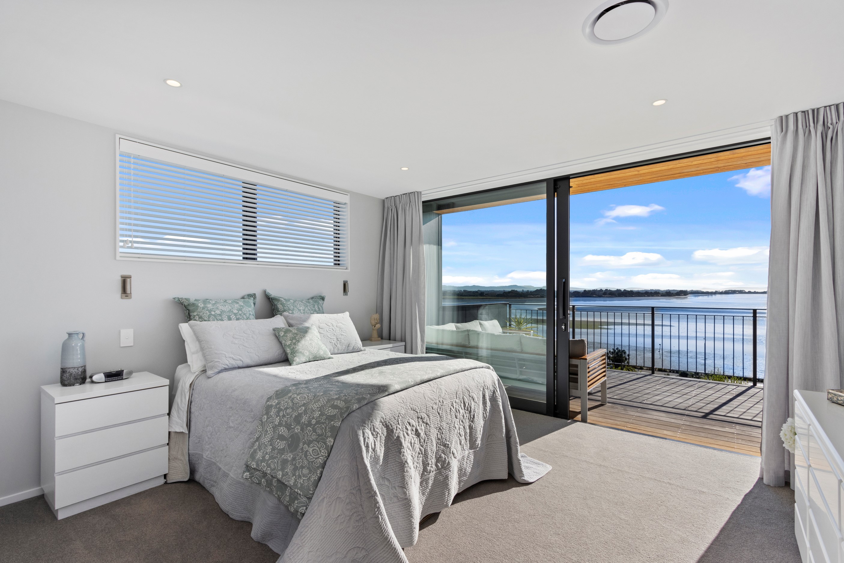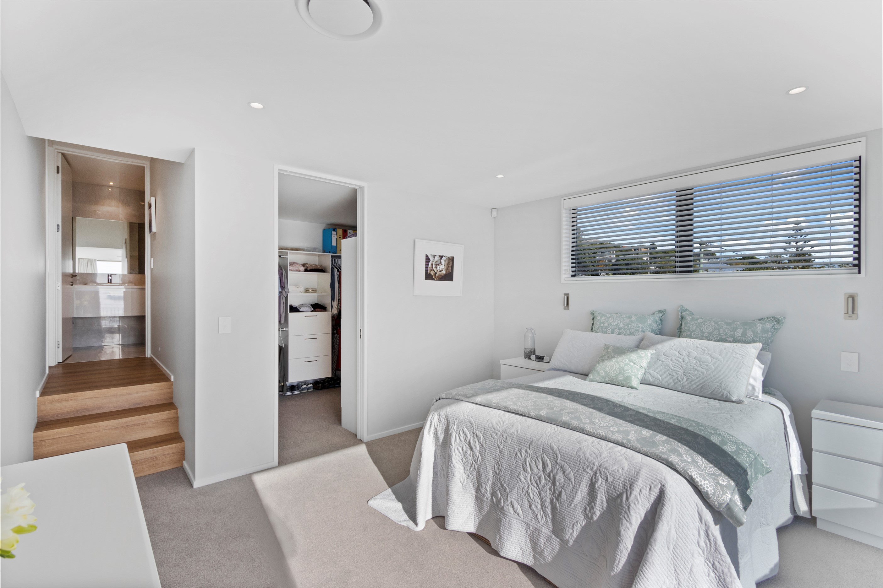 A couple ready to downsize went hunting for a house, but couldn’t find anything they liked enough. Then they were shown a terraced building site on the lower slopes of Mt Pleasant and instantly fell in love with it. As first-time builders, they were extremely excited. Before their plans were even drawn up they were on the section, pruning overgrown trees and taking in their new view across McCormacks Bay. The building team connected them with CoLab Architecture, which designed a two-bedroom house that would suit the owners as they approached their retirement years. The 128sqm floor plan is elegantly simple. There is no wasted space, yet there’s a feeling of volume in the key areas. You’ll find two bedrooms, two bathrooms and a deck that runs across the entire front of the house, with steps down to landscaped terraces. Every decision from the soothing colour palette to the crafted finishes has been thoughtfully carried out – and it shows. The owners also had treasures they’d kept over the years and these were incorporated into their new home. The exterior is stylish and unobtrusive. It is a beautifully crafted home and one that does justice to the special site.