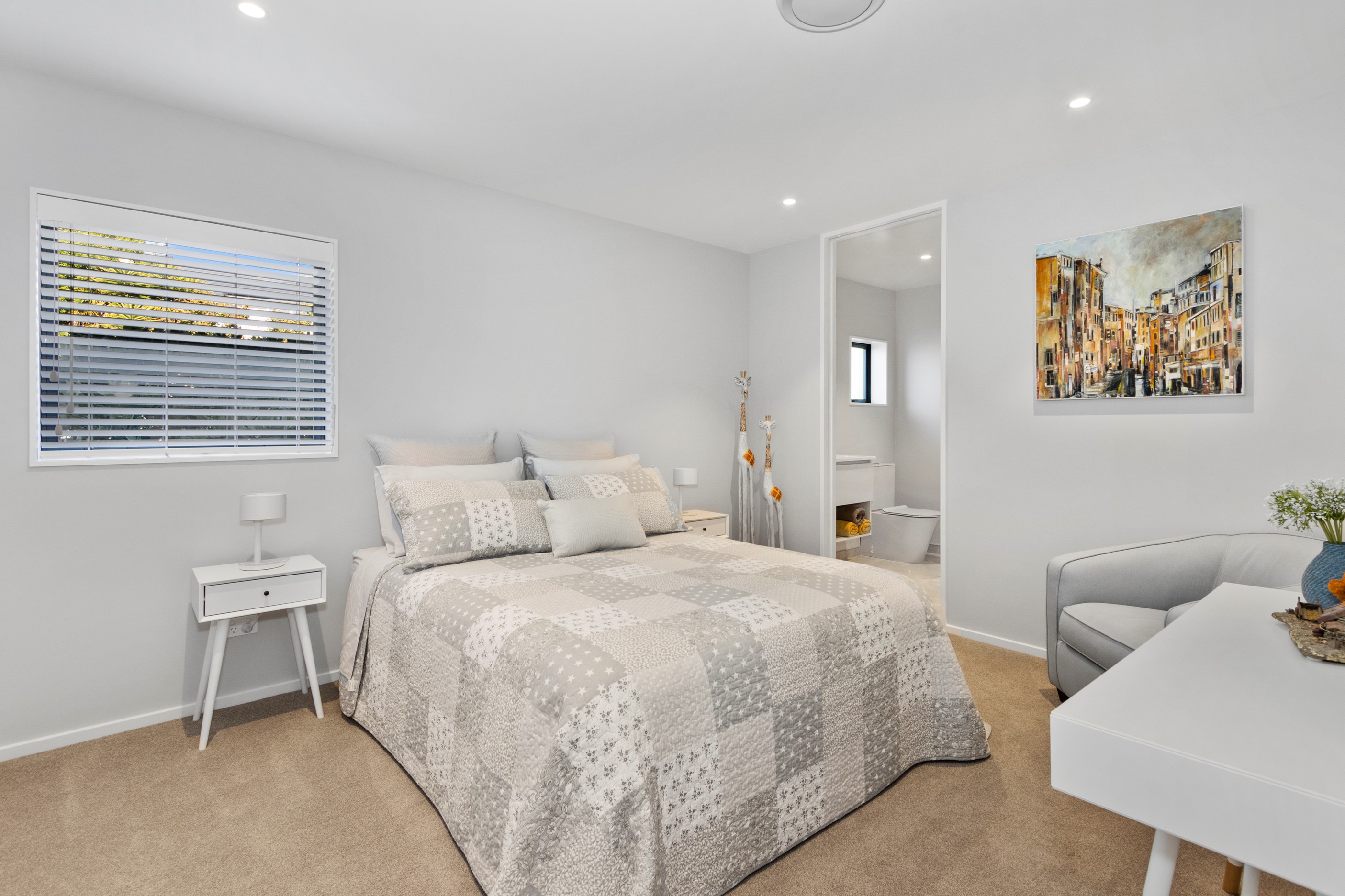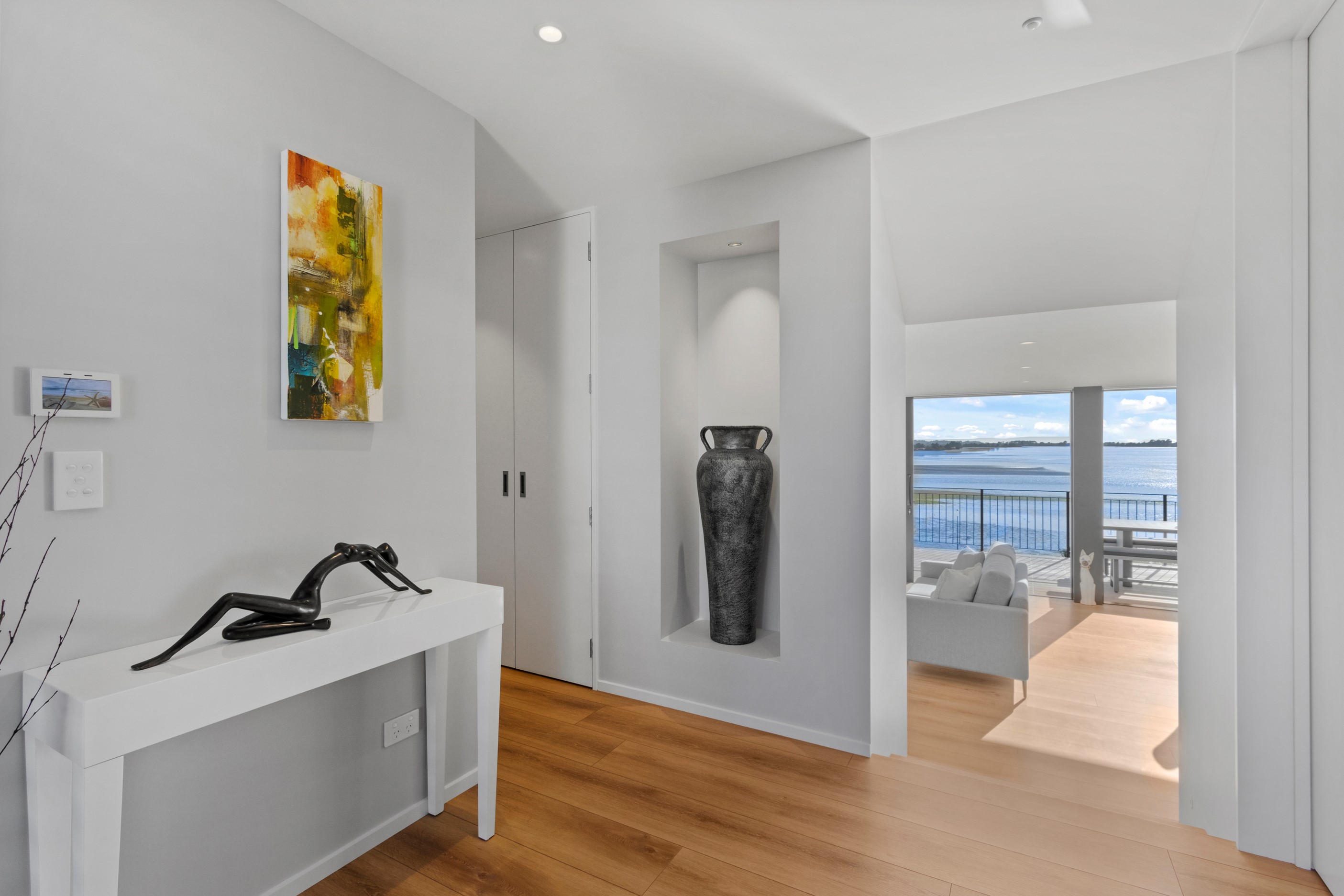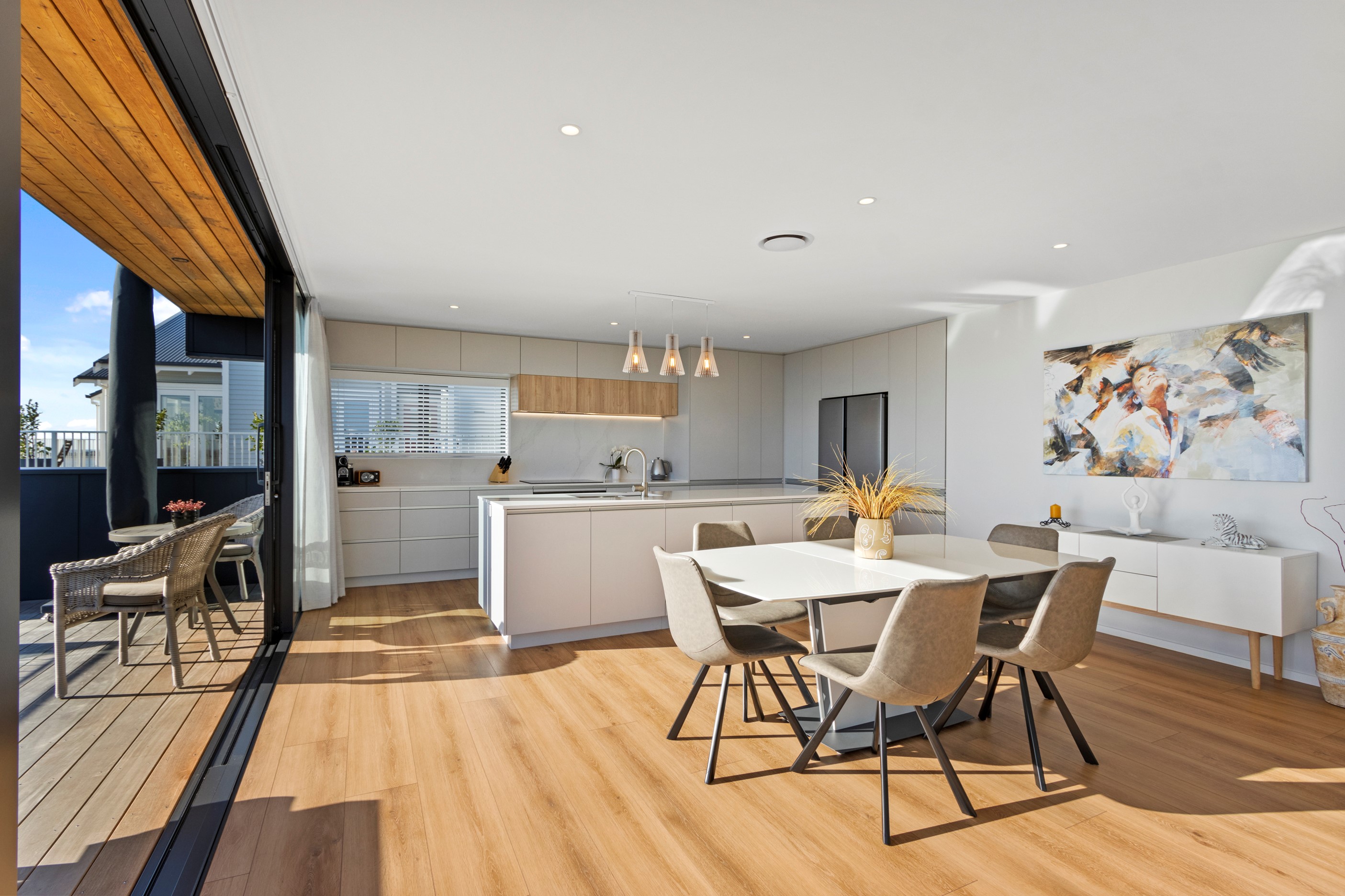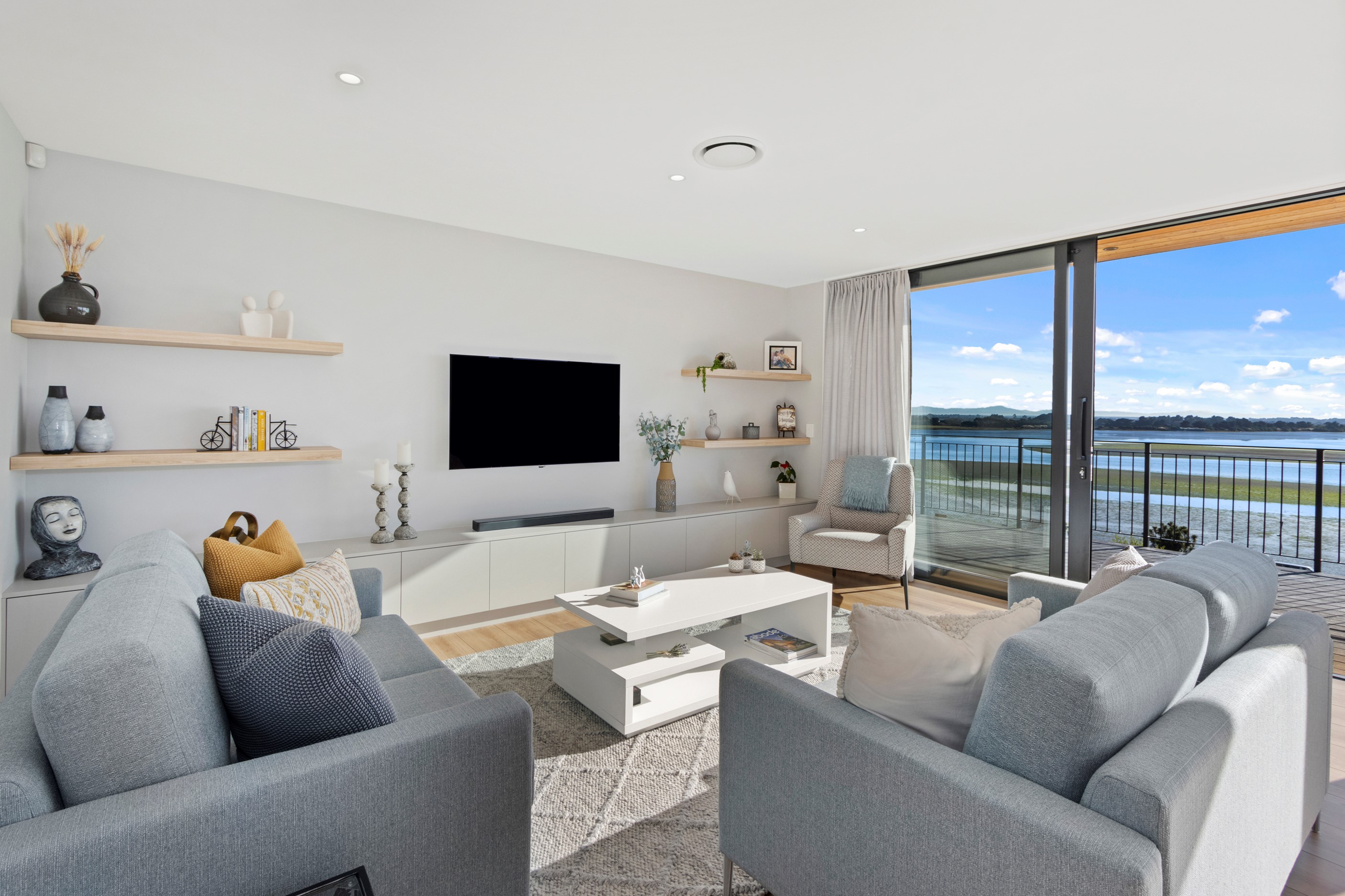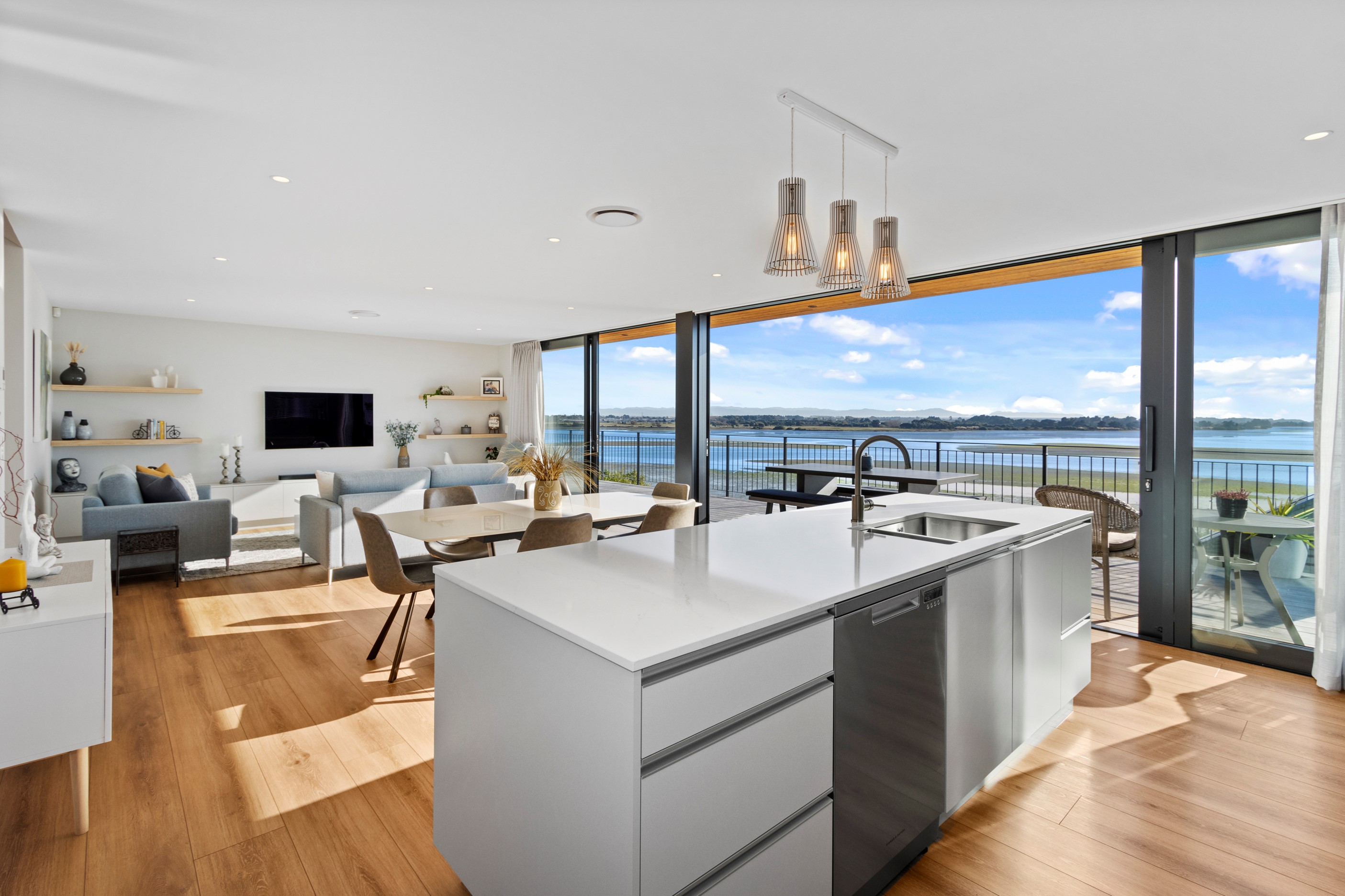 A couple ready to downsize went hunting for a house, but couldn’t find anything they liked enough. Then they were shown a terraced building site on the lower slopes of Mt Pleasant and instantly fell in love with it. As first-time builders, they were extremely excited. Before their plans were even drawn up they were on the section, pruning overgrown trees and taking in their new view across McCormacks Bay. The building team connected them with CoLab Architecture, which designed a two-bedroom house that would suit the owners as they approached their retirement years. The 128sqm floor plan is elegantly simple. There is no wasted space, yet there’s a feeling of volume in the key areas. You’ll find two bedrooms, two bathrooms and a deck that runs across the entire front of the house, with steps down to landscaped terraces. Every decision from the soothing colour palette to the crafted finishes has been thoughtfully carried out – and it shows. The owners also had treasures they’d kept over the years and these were incorporated into their new home. The exterior is stylish and unobtrusive. It is a beautifully crafted home and one that does justice to the special site.