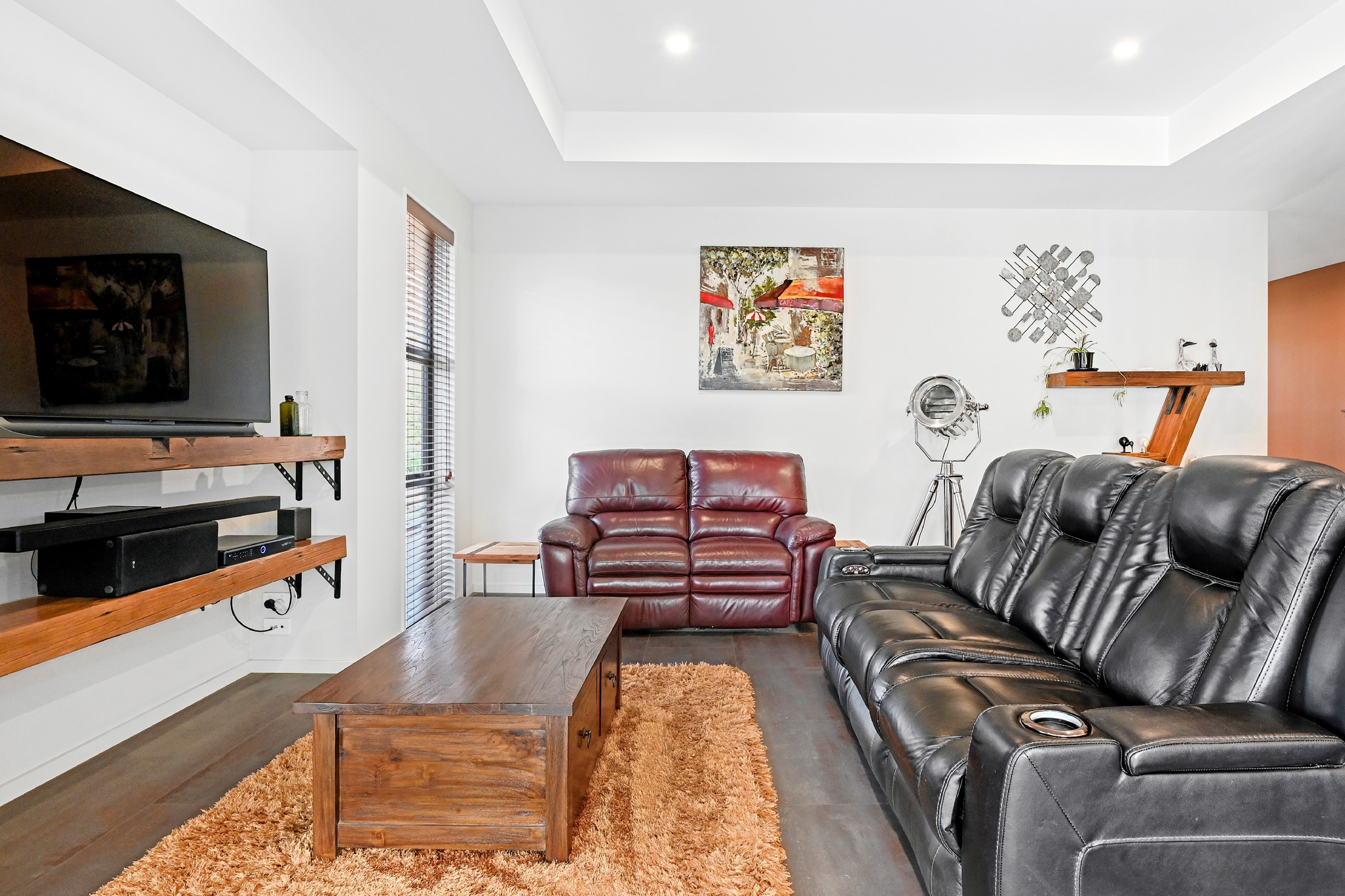 Enticing passers-by with its contrasting cladding of brick and weatherboard, this private three-bedroom family home is equally eye-catching inside. Warm, earth-toned tiles welcome on entry, continuing into the kitchen, dining and living area. The kitchen makes a statement with gloss-black tiles, polished benchtops and retro-cool appliances. A walk-in pantry ticks the final box of family must-haves. Located on an established site with mature trees, the home’s 226sqm footprint has been carefully considered with a layout that ensures excellent indoor-outdoor flow. The expansive outdoor living area extends naturally from inside and offers myriad options for dining, lounging and entertaining. Access to the swimming pool is on the doorstep and the cedar spa pool is nicely nestled into the natural setting. The main bedroom features a walk-in wardrobe and large ensuite, with a double vanity adding that extra convenience. The tiled bath is the standout feature in the main bathroom, just the spot for a languid soak when the weather won’t oblige a dip in the spa. A separate laundry and double garage offer all the storage a modern family needs. This home delivers a lot for its build cost.