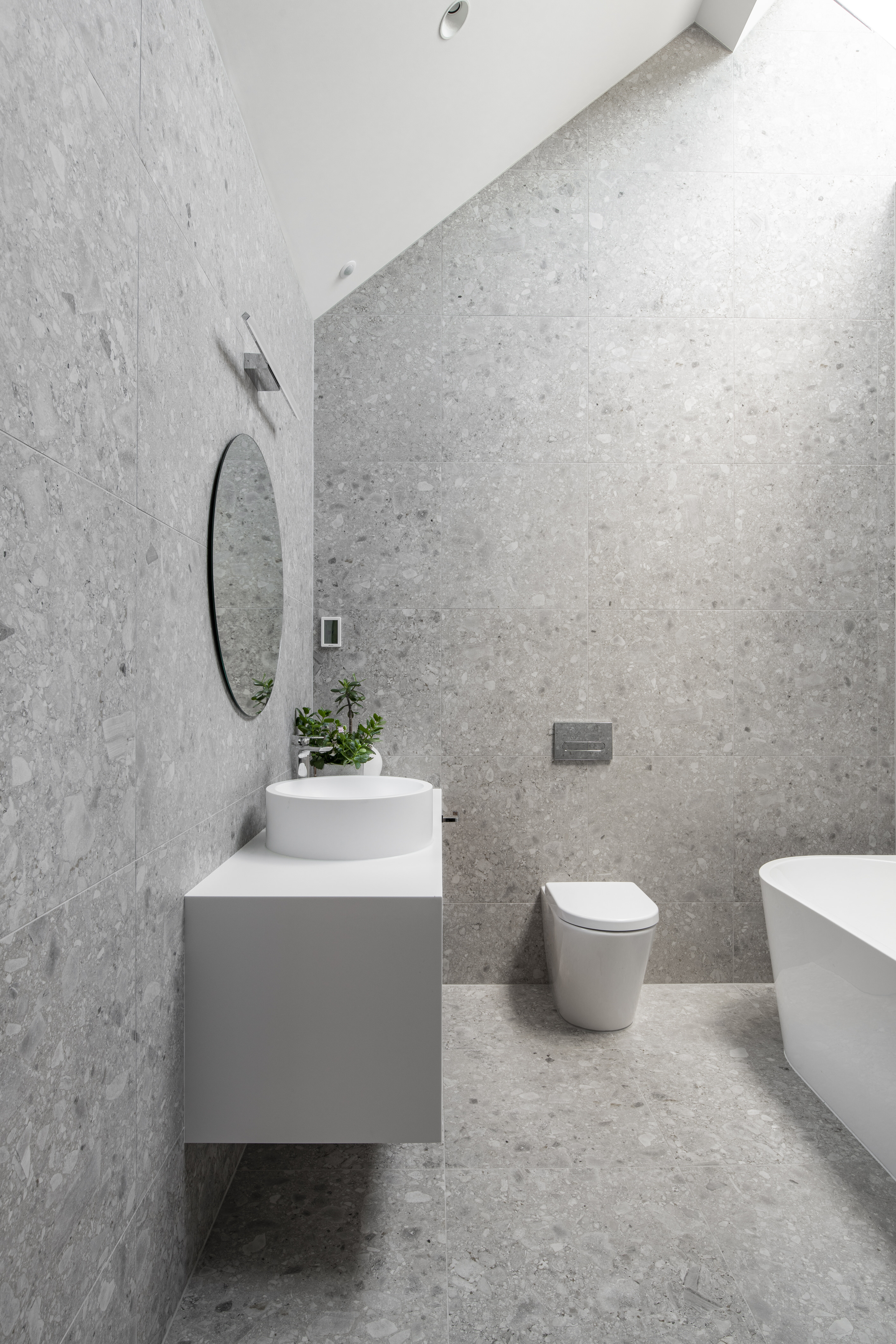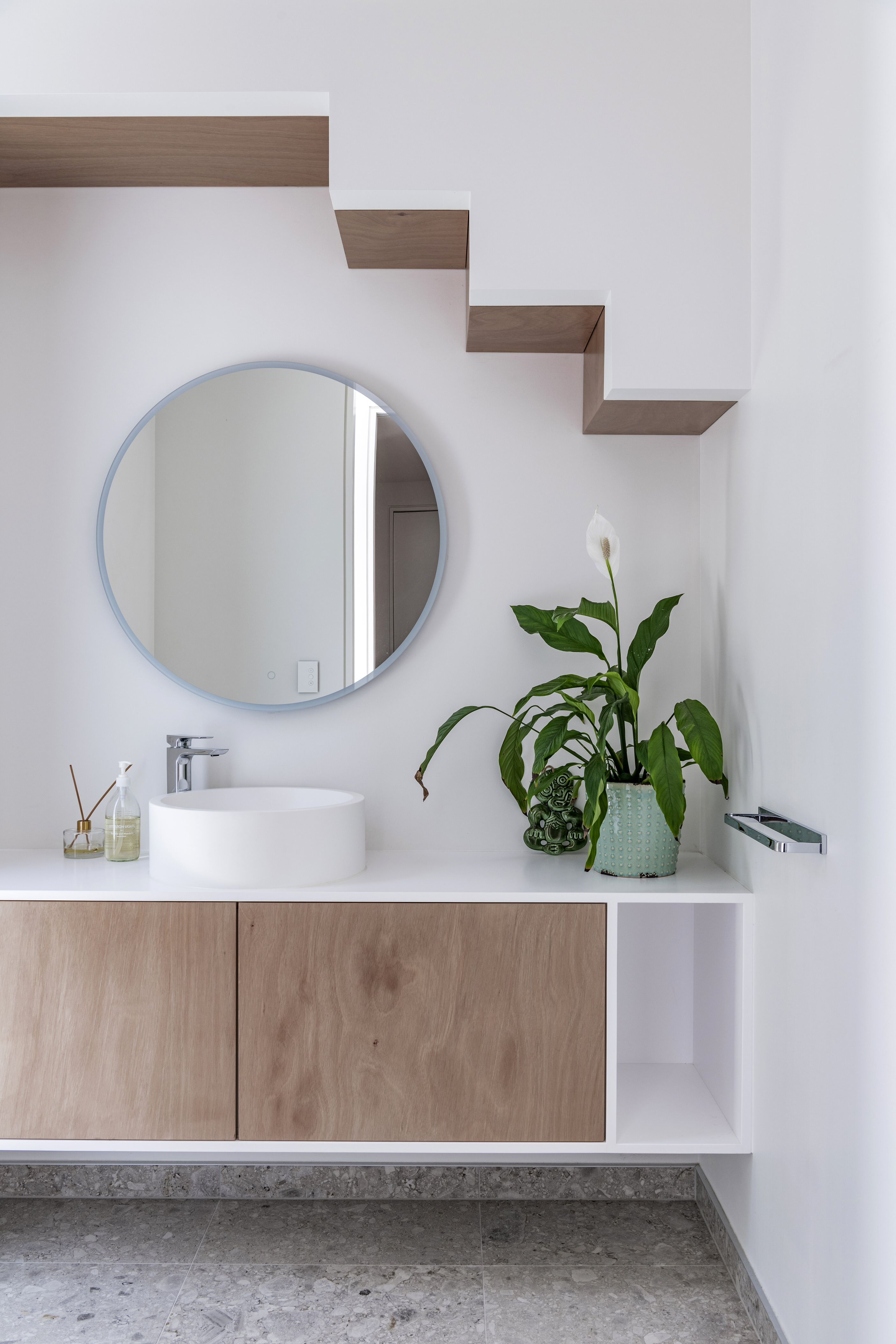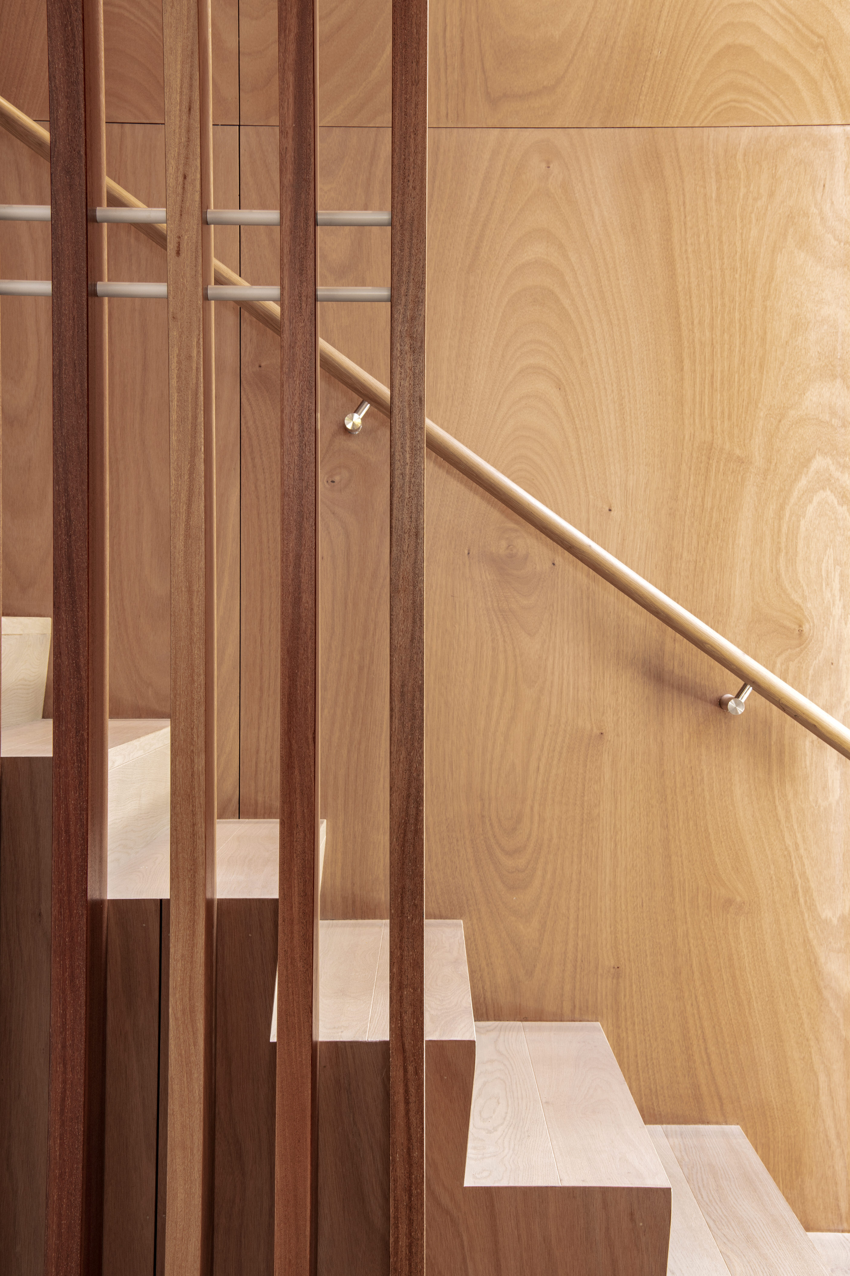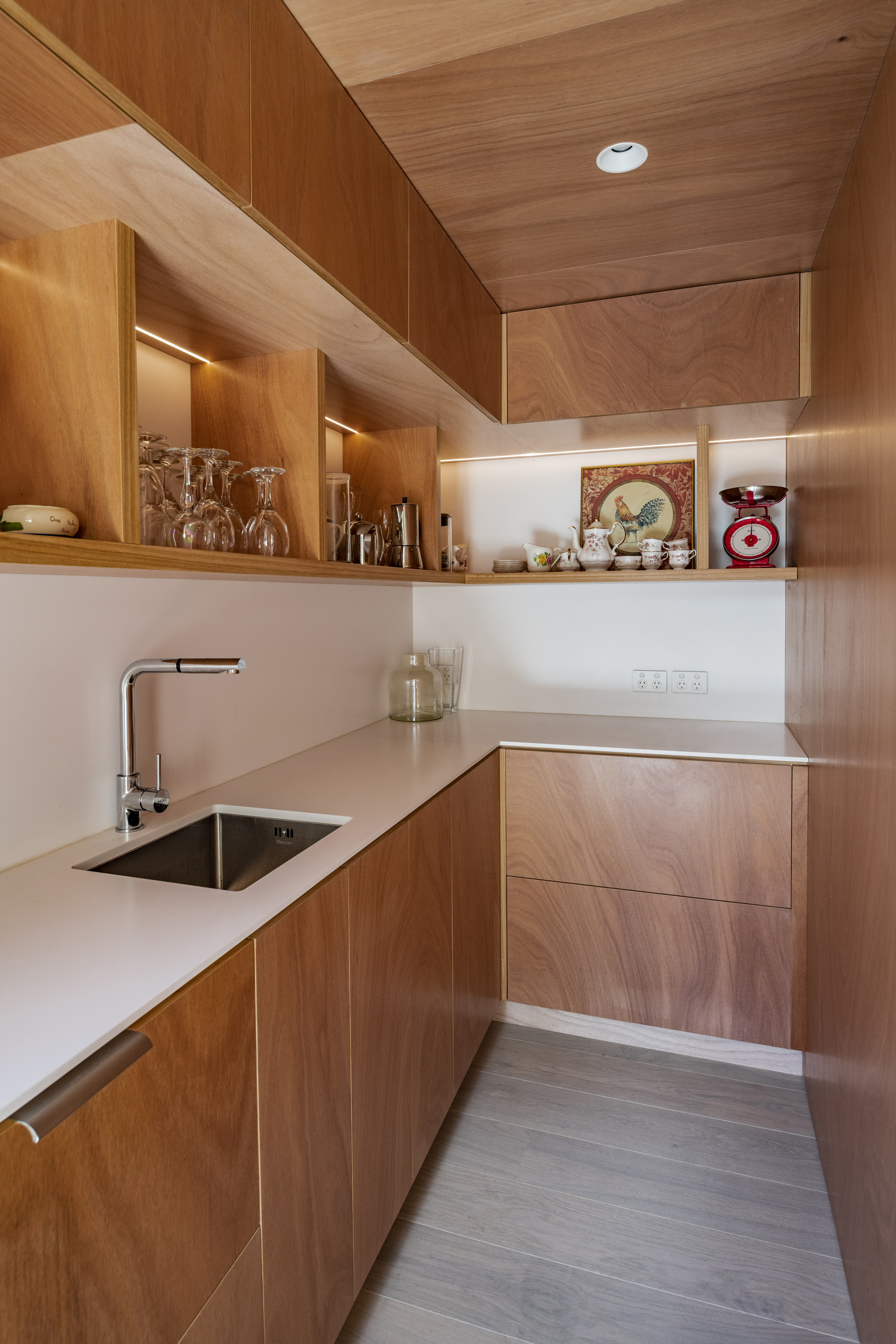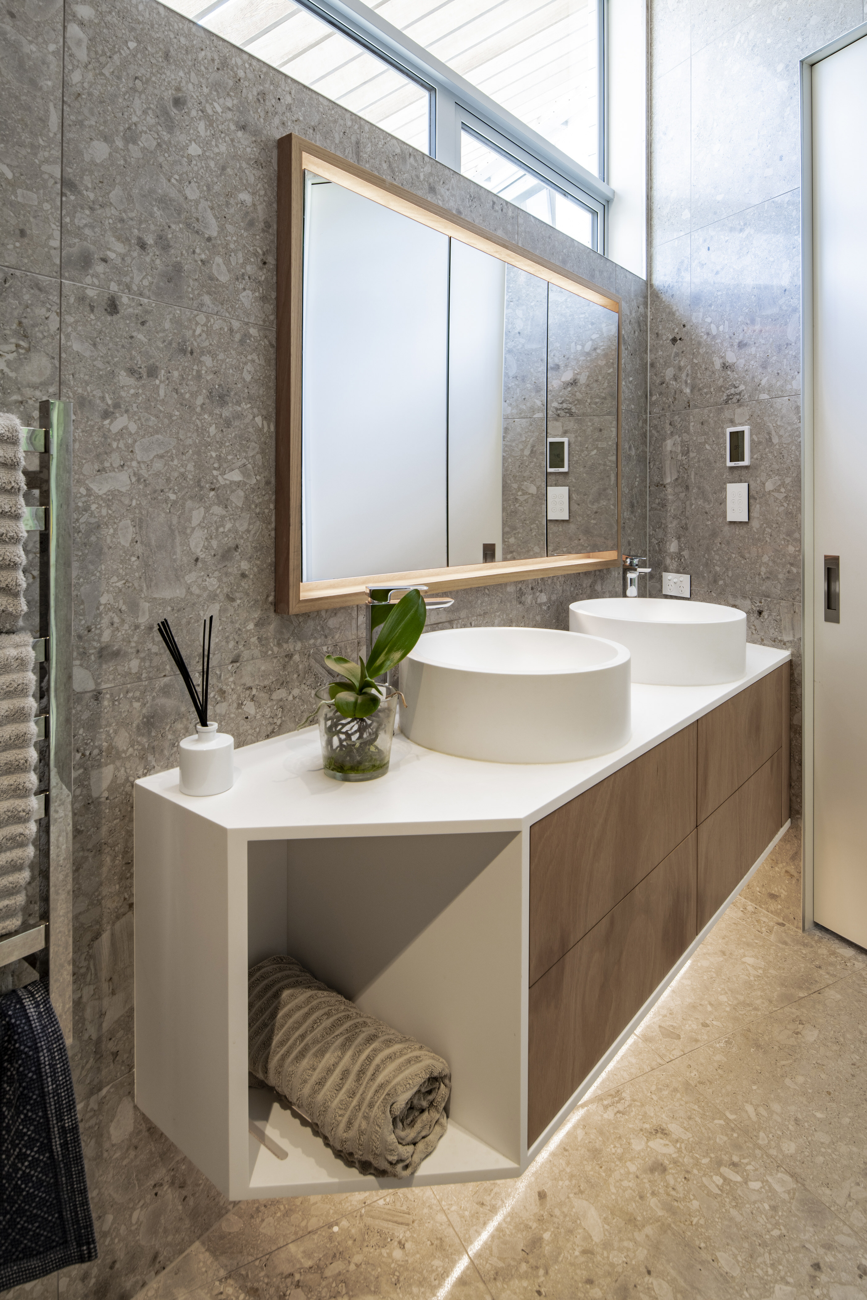 Every so often, builders have the opportunity to work on a home that requires extraordinary expertise, planning and attention to detail. This three-bedroom house that rises from its site like a piece of art, is one such project.The 282sqm house was already a challenge, due to the many technical aspects of the build, but the construction team also had to work with a small, narrow site that entailed craning in many of the high-end materials. Some features had to be made on site, such as the expansive window sections that are now in place under the soaring gable. Each piece of cedar on the gable was attached by hand – this is just one example of the highly crafted response that can be seen throughout the home. There is beauty and bespoke detail wherever you look– the angles of the rooms, the fittings, geometric facets of the kitchen island, gaboon plywood panels and the landscaping. But there is also a lot of unseen detail. The owners were adamant their house, designed by South Architects, be sustainable, efficient and quiet. Above-code insulation, low-e thermally broken windows, mechanical ventilation and solar power have been installed. Double-framed walls reduce street noise. Rightly, the building team is enormously proud.