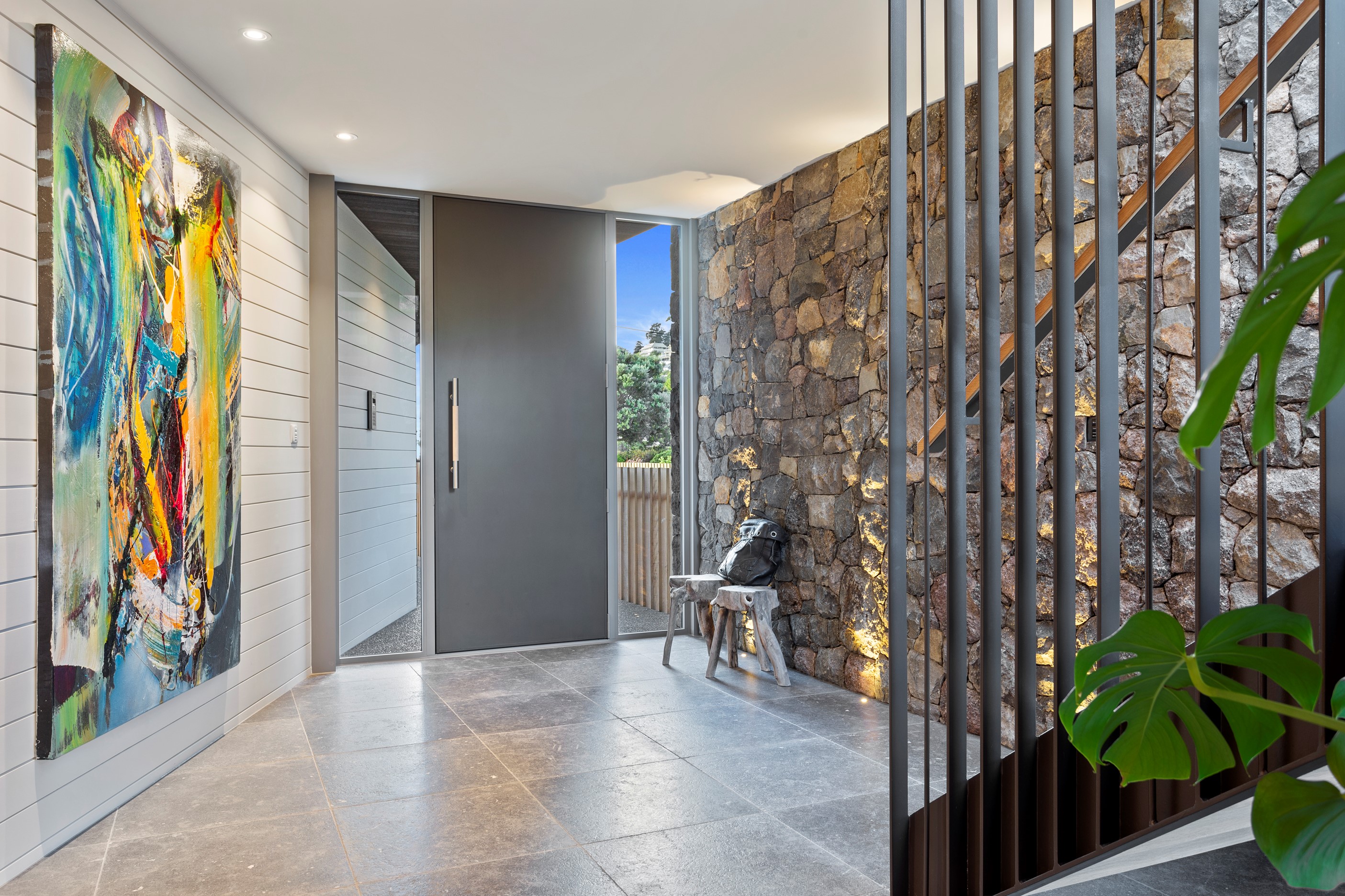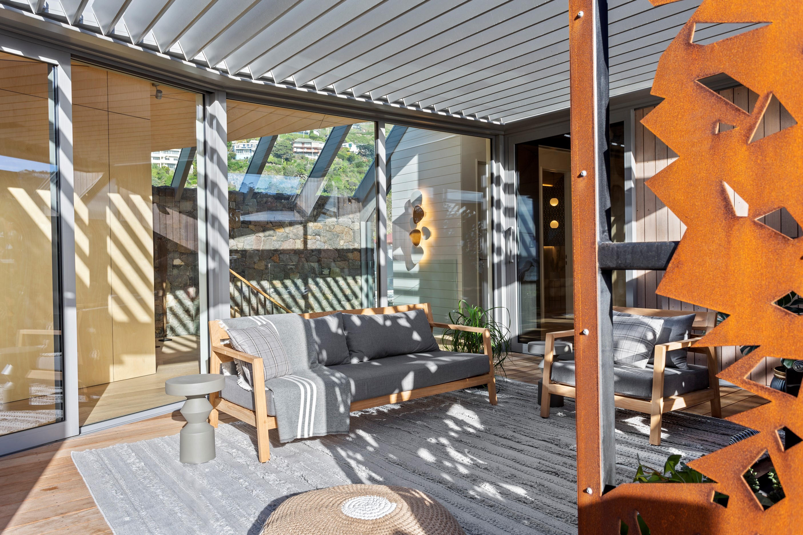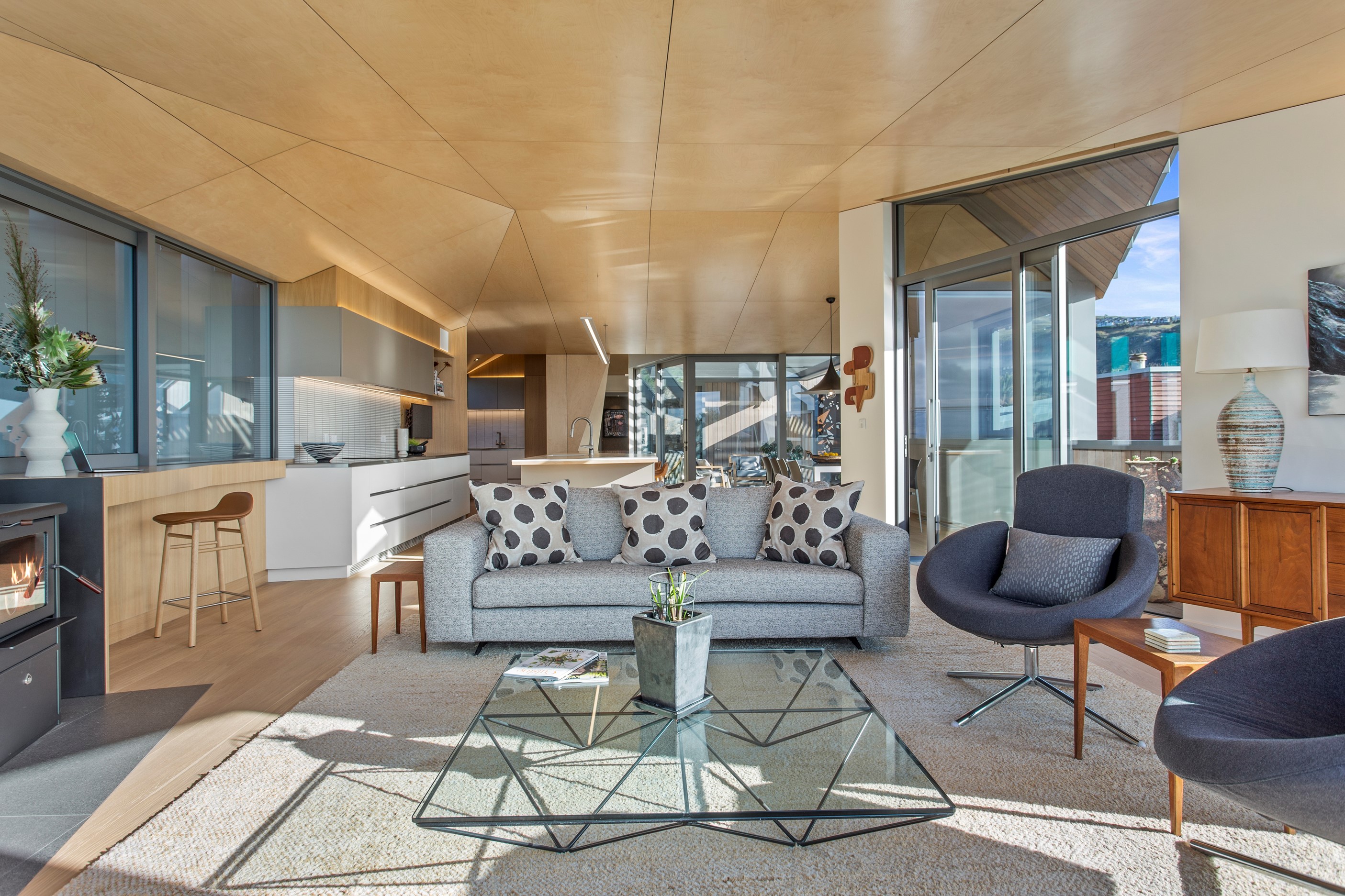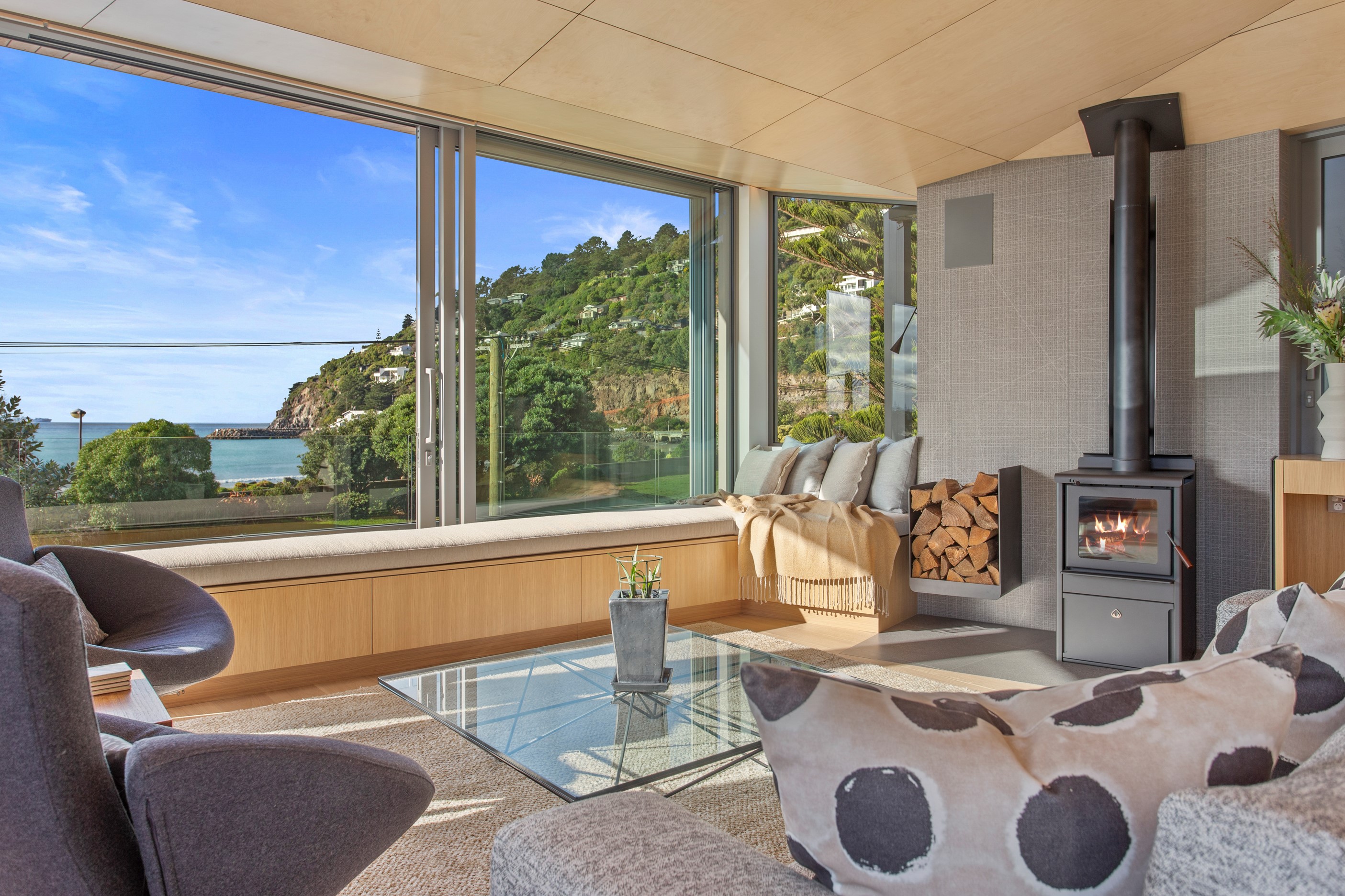 Tricky angles and lines, a cantilevered living space and myriad eye-catching features required something special from the team building this four-bedroom home. The Metzger crew was up to the challenge, demonstrating sublime skills and scrupulous craftsmanship from the footings through to the installation of the final fitting. The leading-edge 350sqm house, designed by South Architects, is built from natural products, including cedar and local stone, which relax the dwelling into its beach setting. And what a setting it is. Step inside and almost every space has views of the Pacific Ocean, from sweeping vistas to cheeky peeps. The upstairs living space is cantilevered to maximise surf views, and even the sheltered outdoor room has a screen through which you can catch glimpses of the sea and sky beyond. What’s inside is pretty impressive, too. A double-height stone feature wall and the complex plywood ceiling are details to admire. However, this house demonstrates more than flair and design nous. Sustainability and longevity measures – solar power hydronic infloor heating, extensive insulation, a lift and more – ensure it works hard for its owners and the environment.