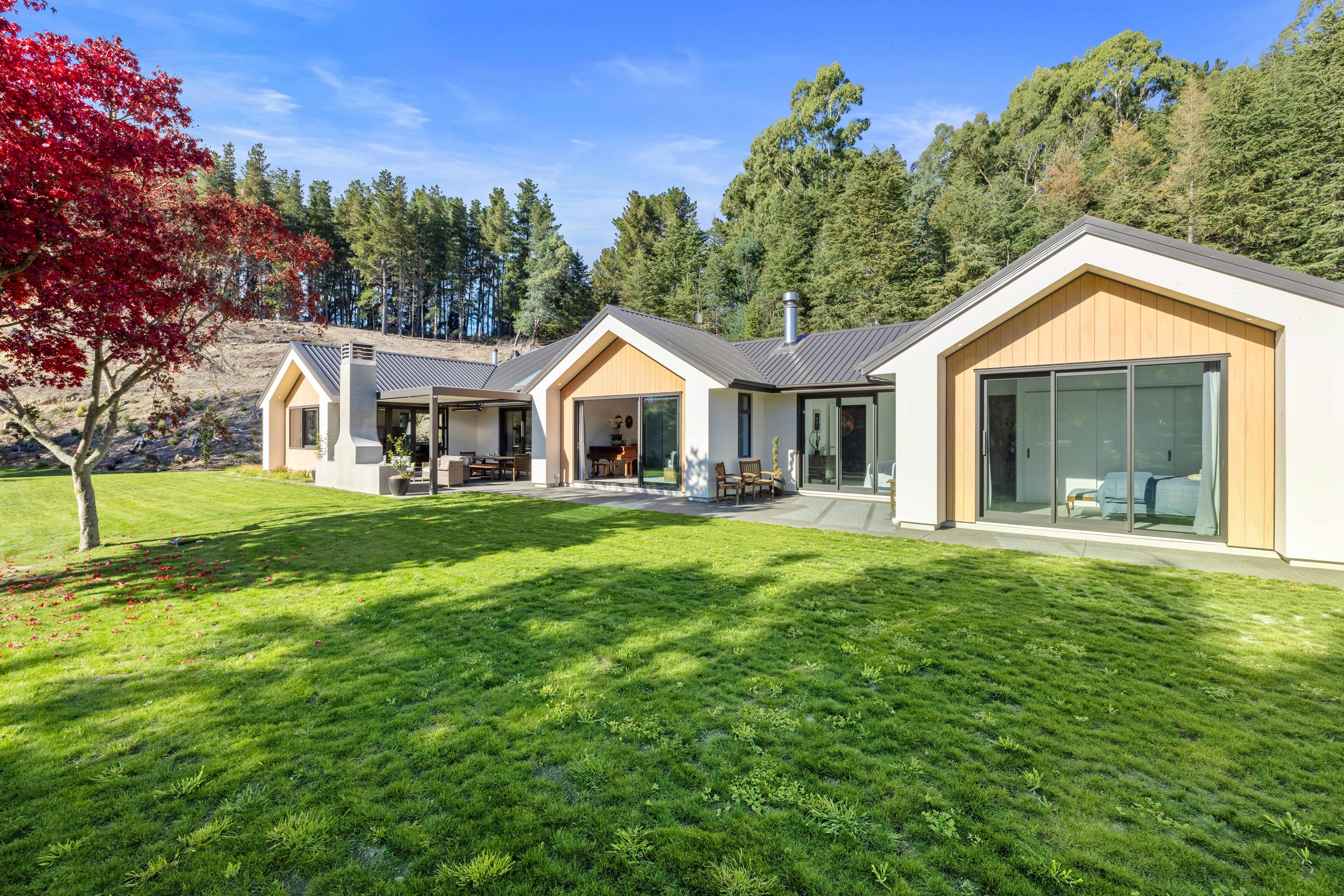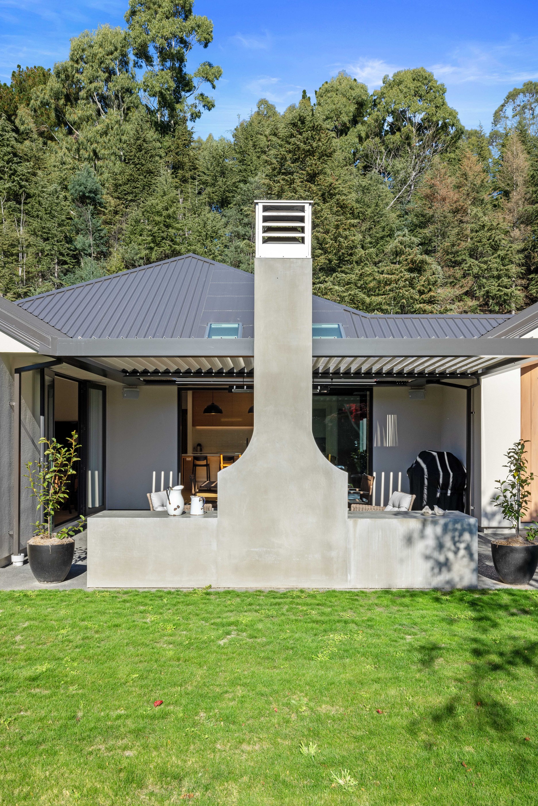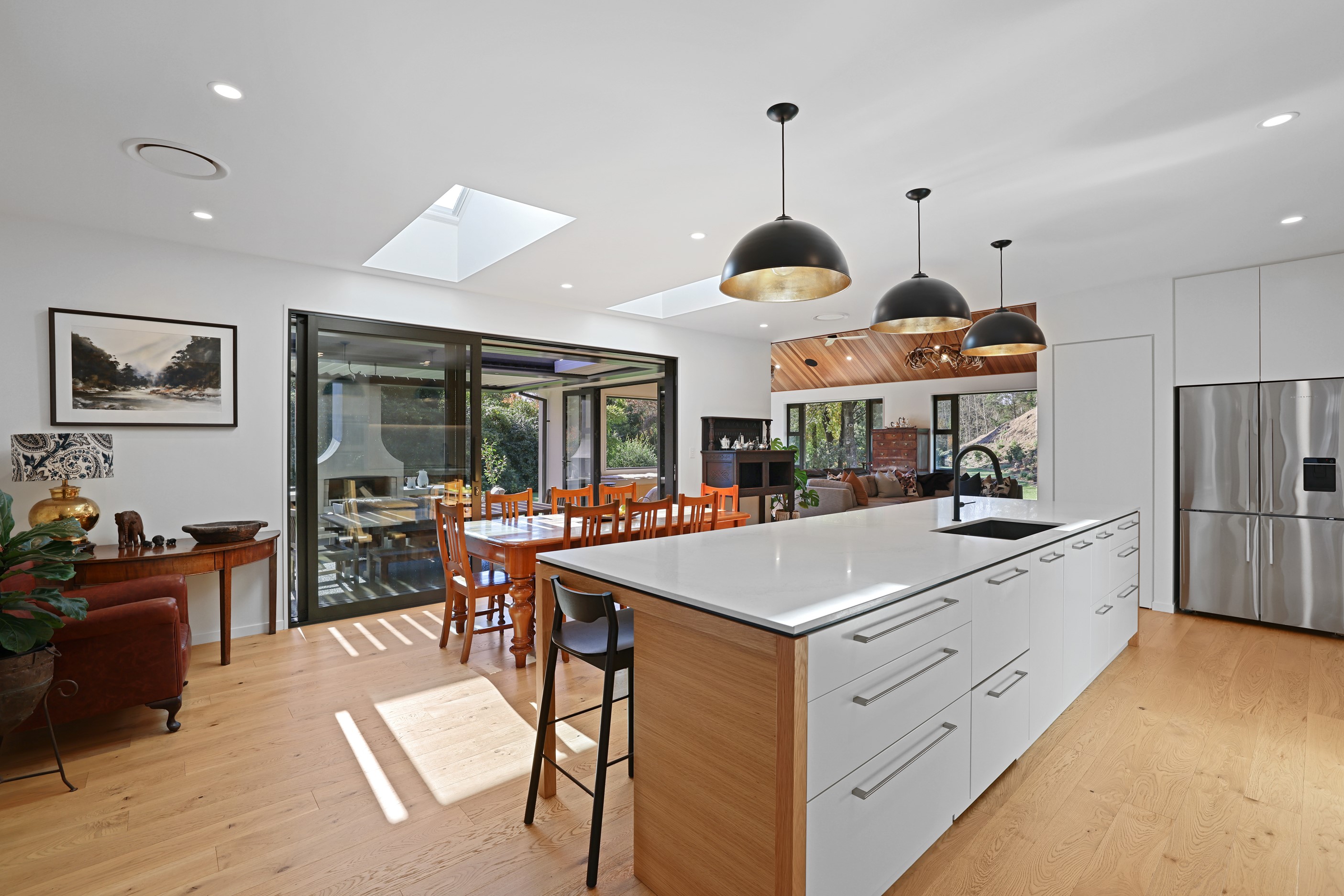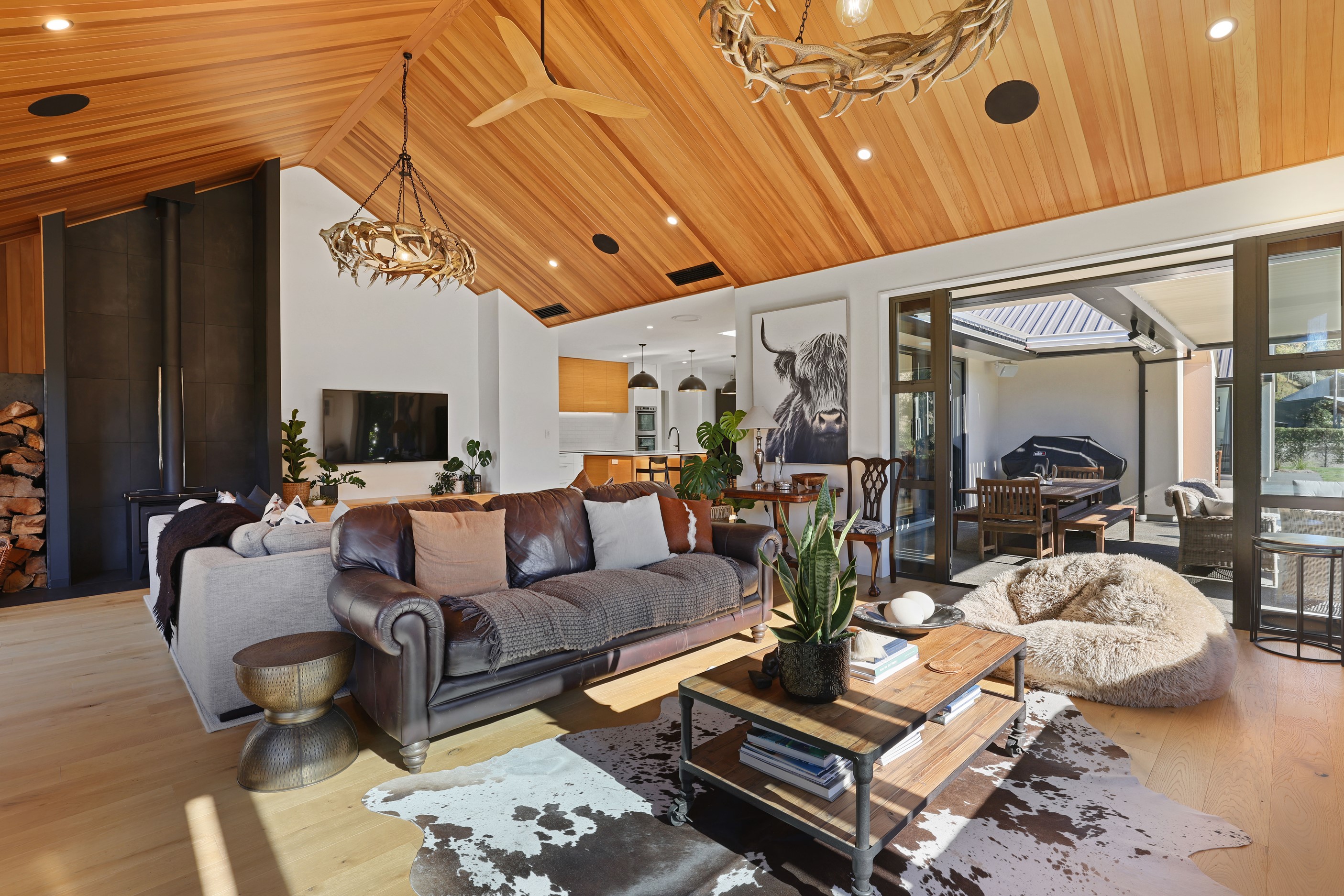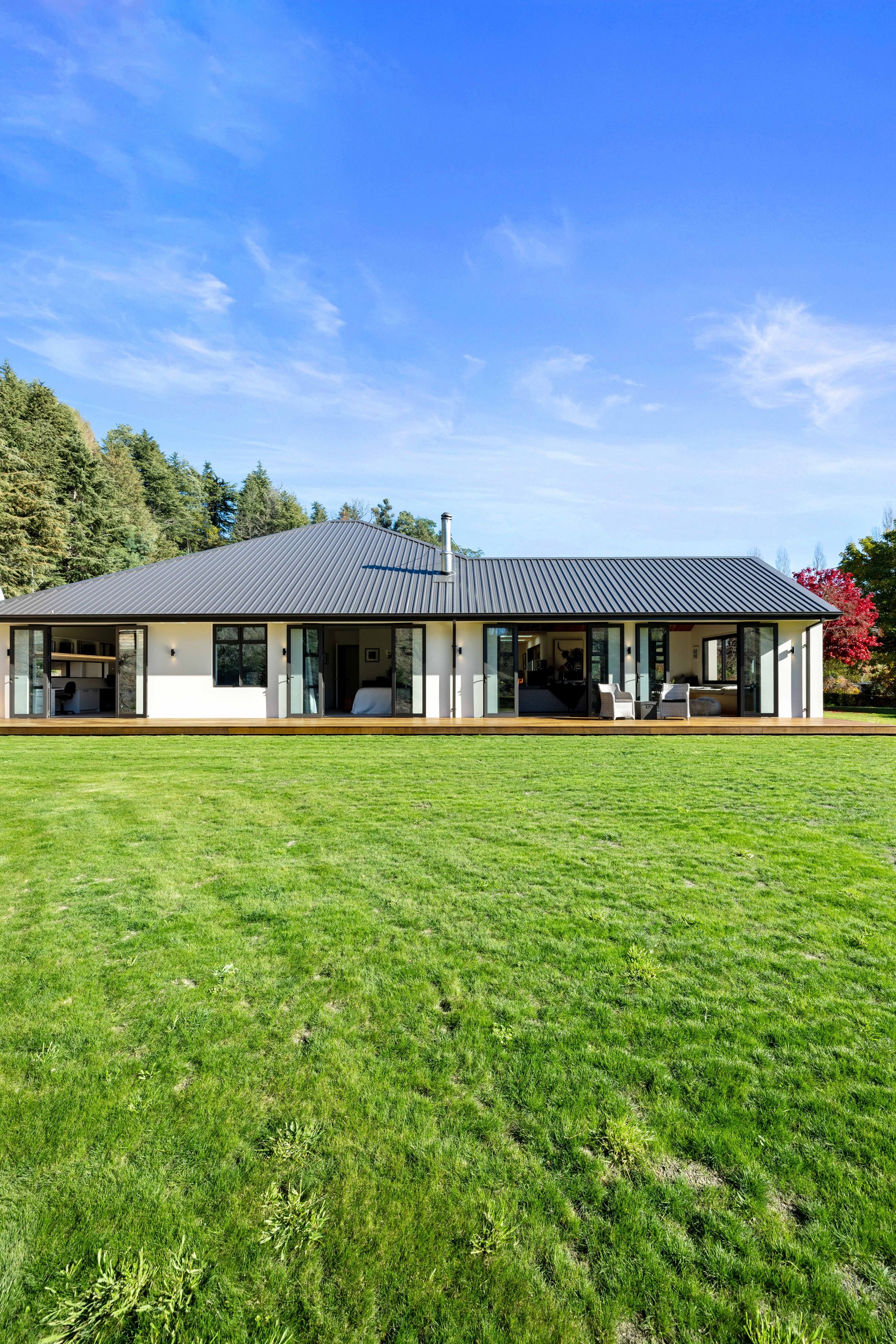When an earthquake caused severe damage to this much-loved family homestead, it also provided an opportunity to give it a new lease of life. The rebuild needed to be sympathetic to the past and incorporate future-proofing features to serve generations to come. At the heart of this 347sqm home is the spacious kitchen and living room, with its soaring cedar-lined ceiling that puts the builders’ skills on show. Located in rural Canterbury, thermal efficiency was a priority. Engineered waffle foundation with slab-edge insulation, low-e glass and thermal spacers combine to create the best possible performance. The garage and garage door have also been thermally insulated to ensure this area can be used as a home gym. Two indoor log fires – repurposed from the original home – provide extra warmth in winter. The main fire includes a wet back to help mitigate the effects of rural power outages. The layout ensures living areas and bedrooms are placed to make the most of the sun. With four large bedrooms, two bathrooms, a mudroom, cloakroom, office and generous outdoor living, this residence is designed and built to provide a welcoming and enjoyable environment for its busy owners.