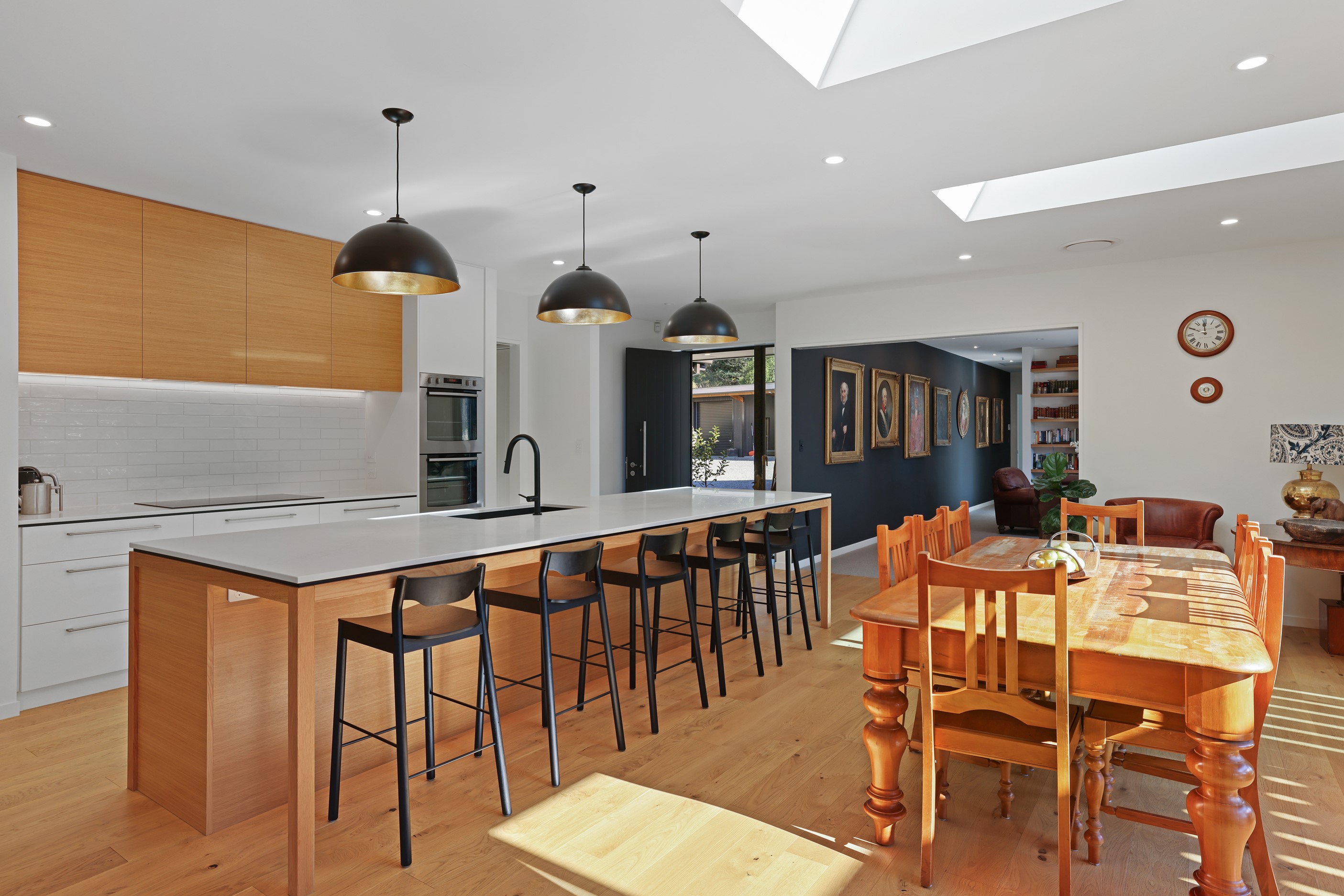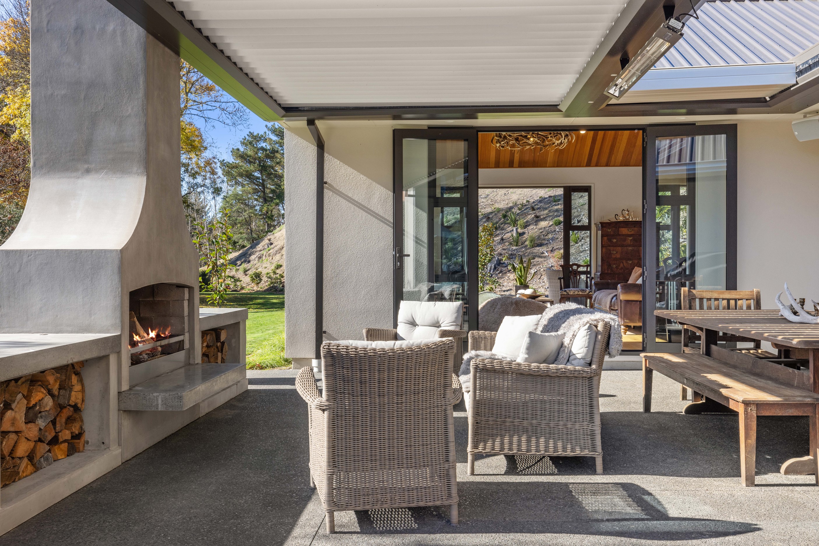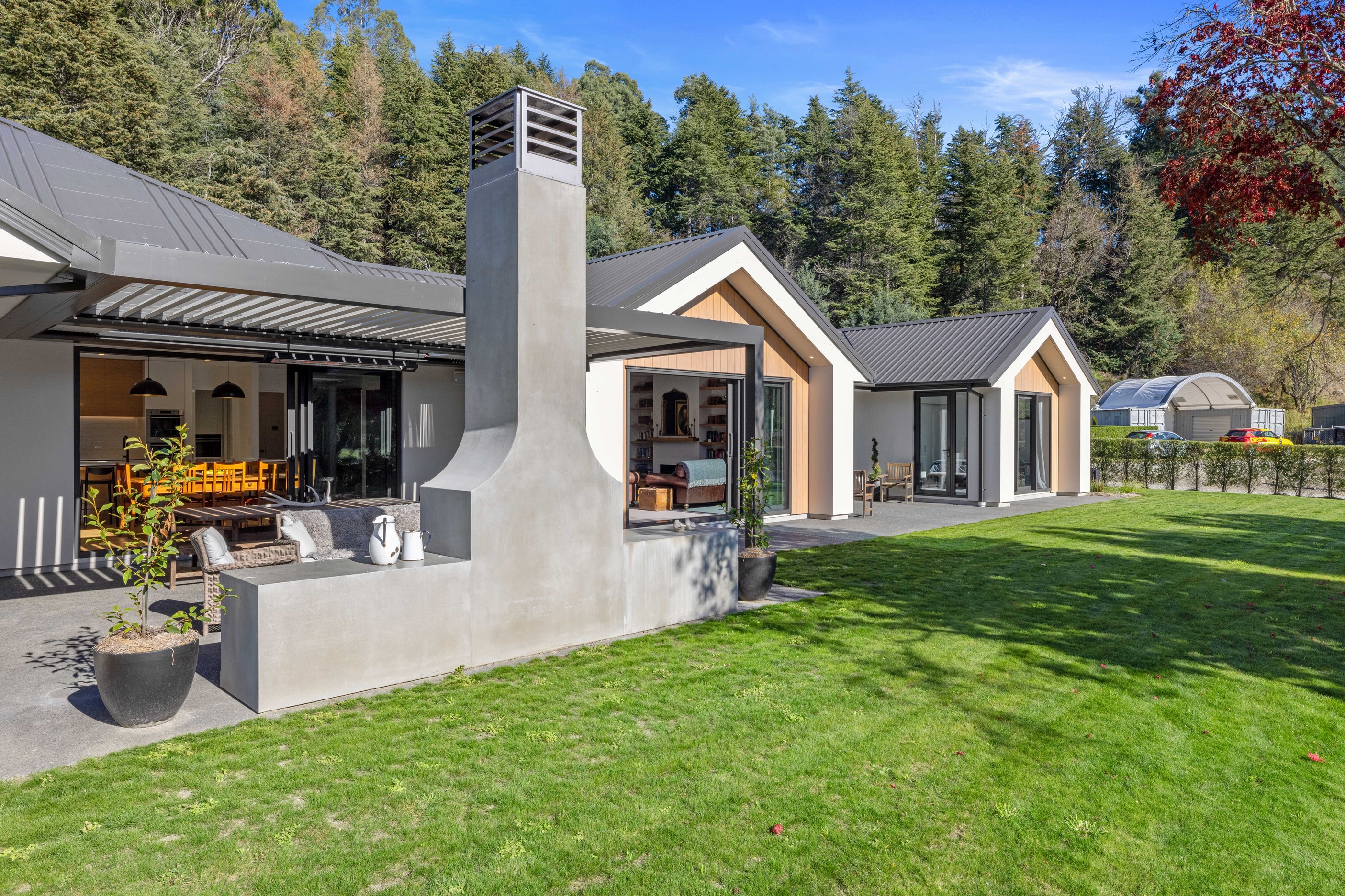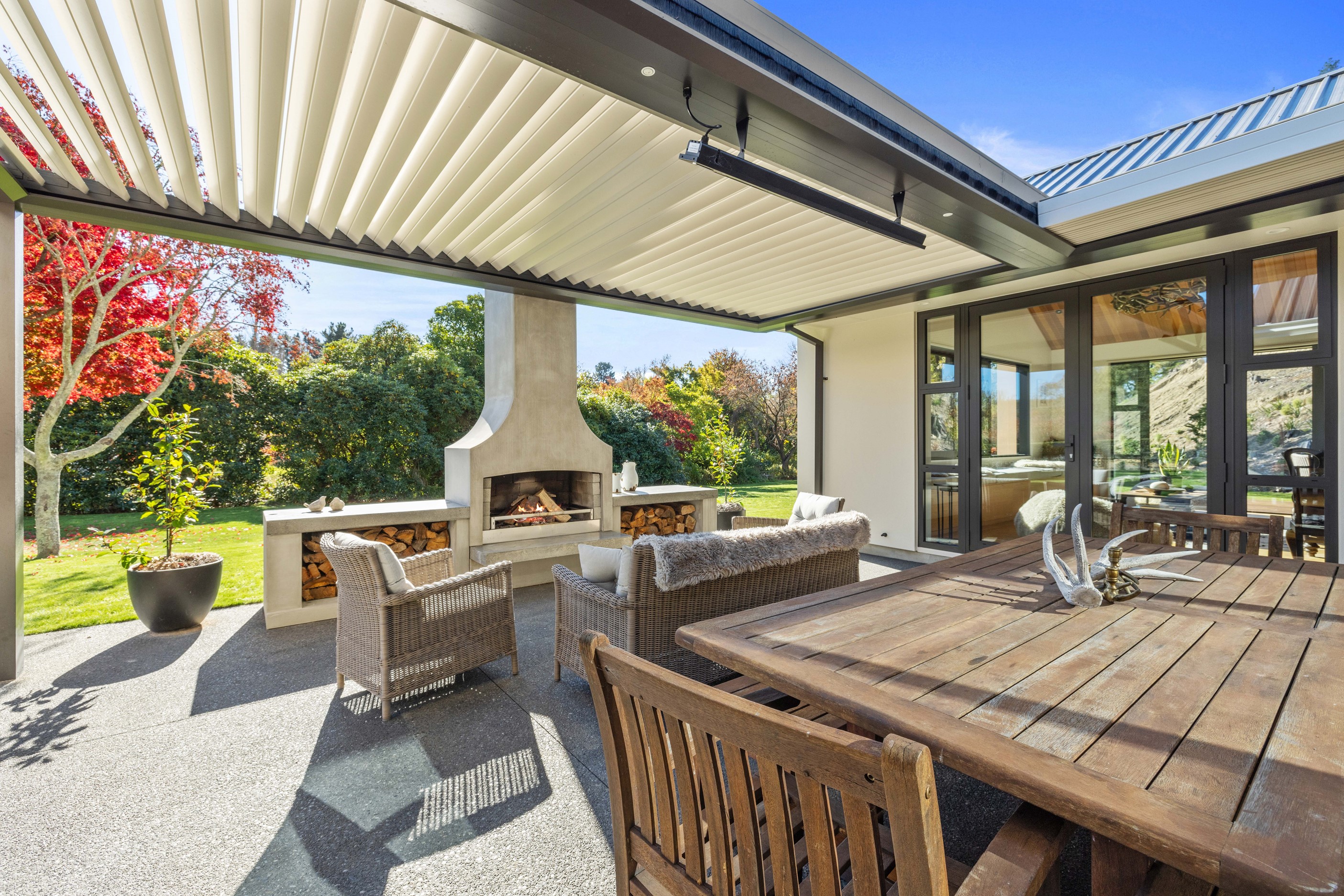 When an earthquake caused severe damage to this much-loved family homestead, it also provided an opportunity to give it a new lease of life. The rebuild needed to be sympathetic to the past and incorporate future-proofing features to serve generations to come. At the heart of this 347sqm home is the spacious kitchen and living room, with its soaring cedar-lined ceiling that puts the builders’ skills on show. Located in rural Canterbury, thermal efficiency was a priority. Engineered waffle foundation with slab-edge insulation, low-e glass and thermal spacers combine to create the best possible performance. The garage and garage door have also been thermally insulated to ensure this area can be used as a home gym. Two indoor log fires – repurposed from the original home – provide extra warmth in winter. The main fire includes a wet back to help mitigate the effects of rural power outages. The layout ensures living areas and bedrooms are placed to make the most of the sun. With four large bedrooms, two bathrooms, a mudroom, cloakroom, office and generous outdoor living, this residence is designed and built to provide a welcoming and enjoyable environment for its busy owners.