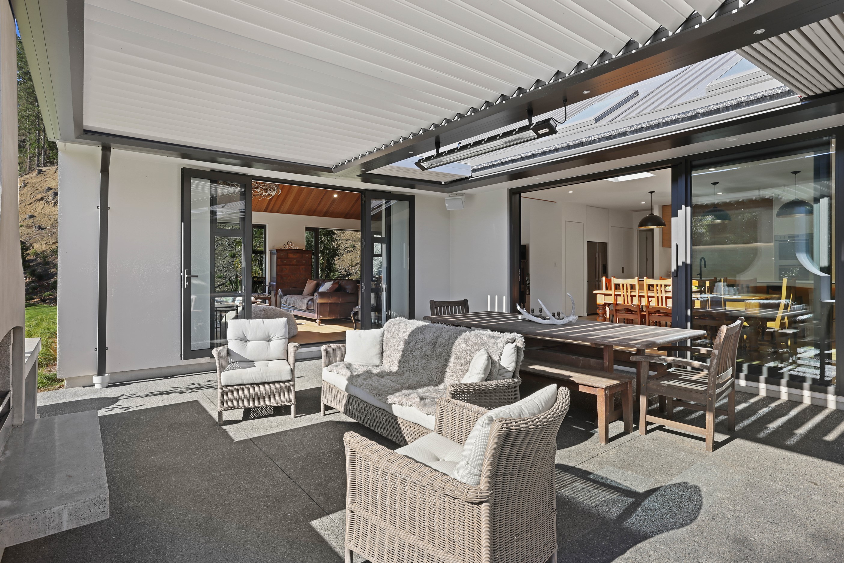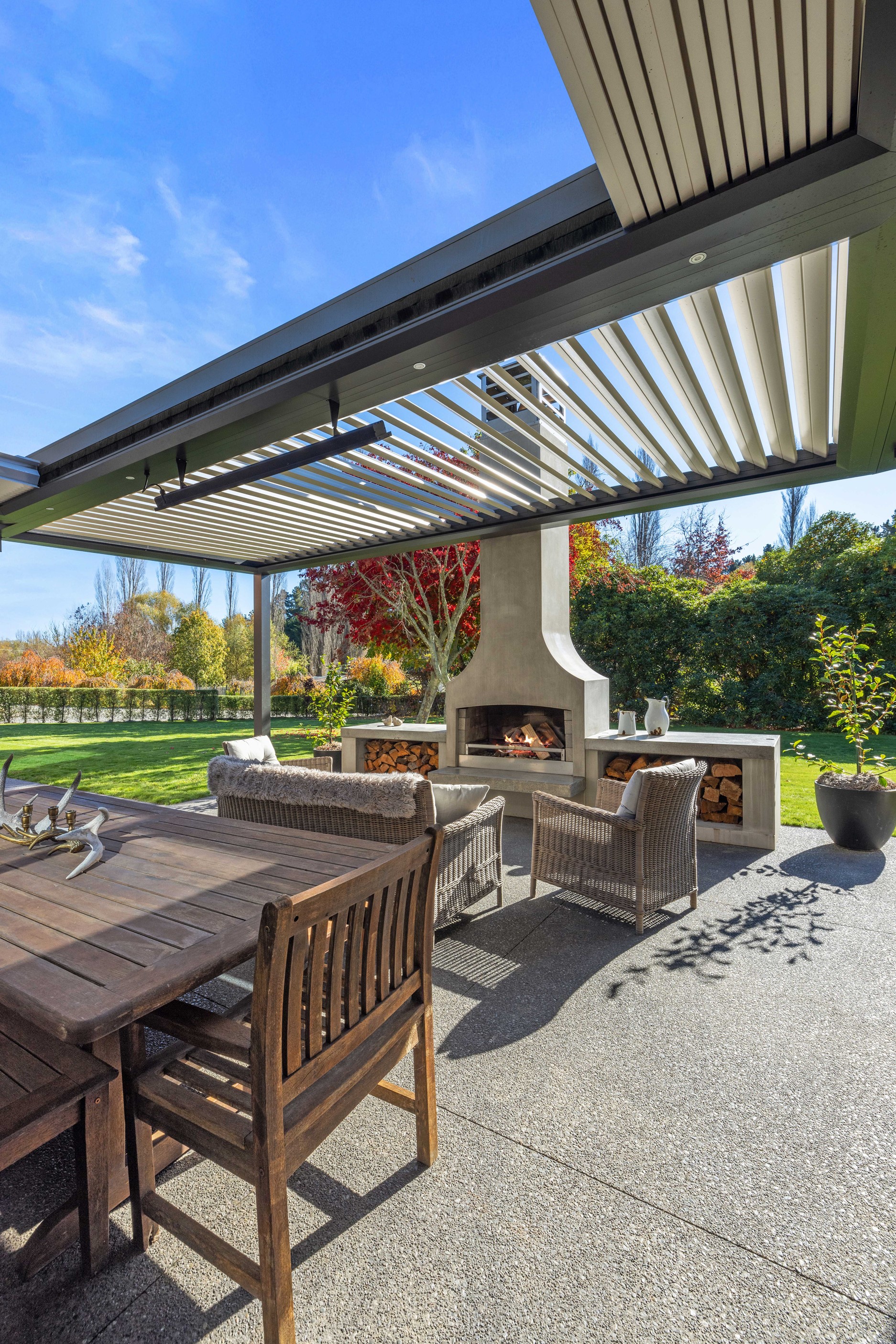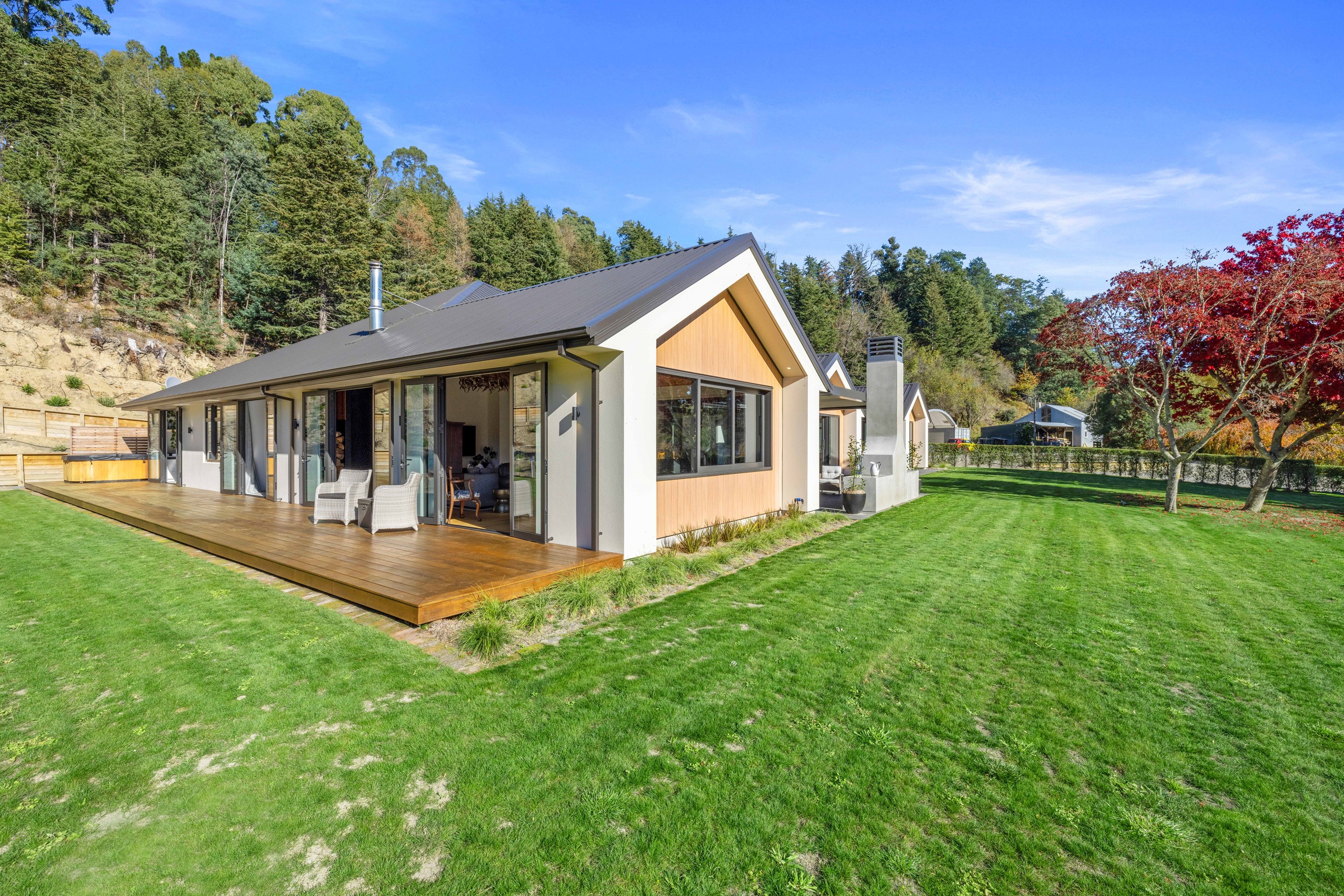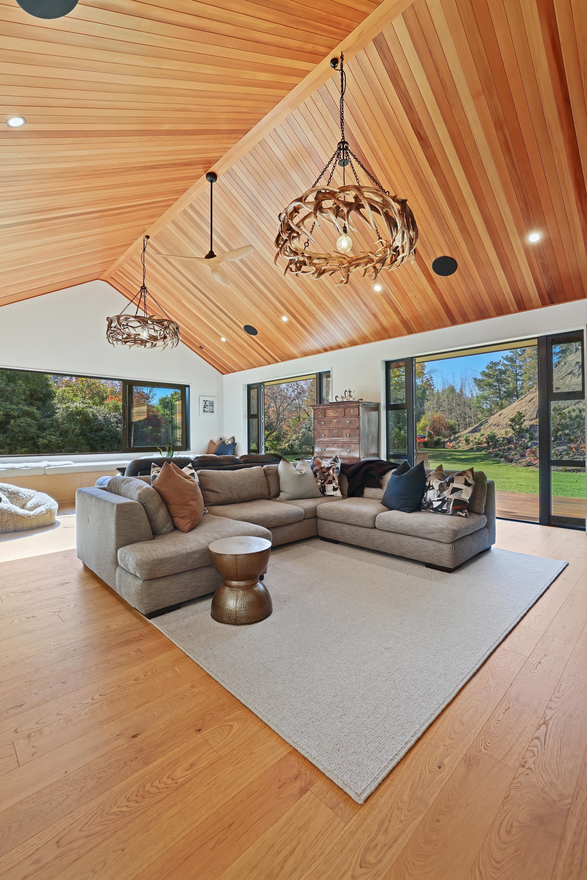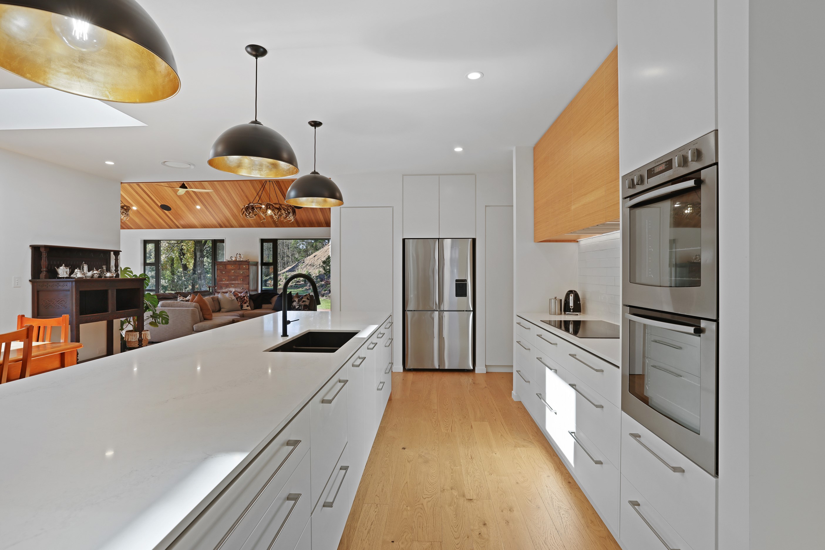 When an earthquake caused severe damage to this much-loved family homestead, it also provided an opportunity to give it a new lease of life. The rebuild needed to be sympathetic to the past and incorporate future-proofing features to serve generations to come. At the heart of this 347sqm home is the spacious kitchen and living room, with its soaring cedar-lined ceiling that puts the builders’ skills on show. Located in rural Canterbury, thermal efficiency was a priority. Engineered waffle foundation with slab-edge insulation, low-e glass and thermal spacers combine to create the best possible performance. The garage and garage door have also been thermally insulated to ensure this area can be used as a home gym. Two indoor log fires – repurposed from the original home – provide extra warmth in winter. The main fire includes a wet back to help mitigate the effects of rural power outages. The layout ensures living areas and bedrooms are placed to make the most of the sun. With four large bedrooms, two bathrooms, a mudroom, cloakroom, office and generous outdoor living, this residence is designed and built to provide a welcoming and enjoyable environment for its busy owners.