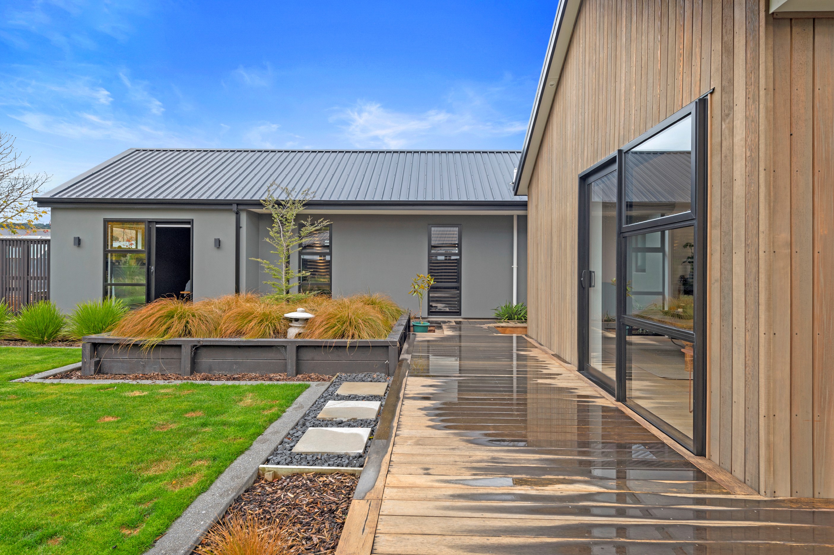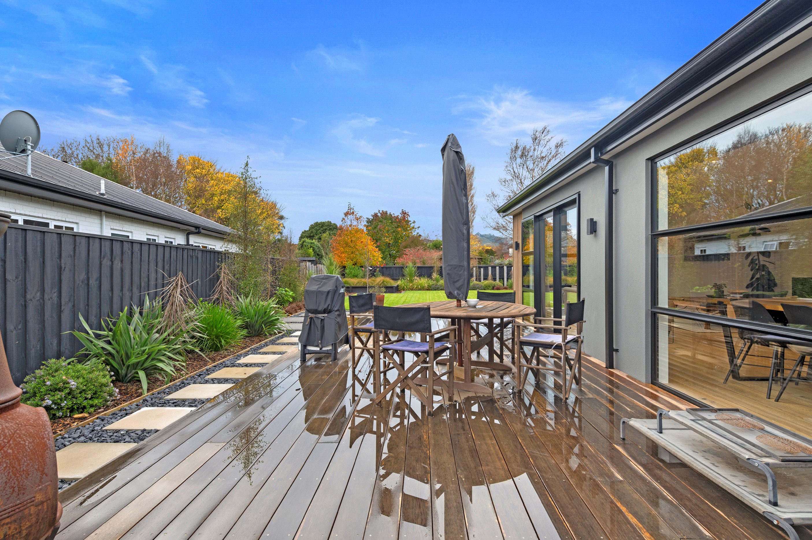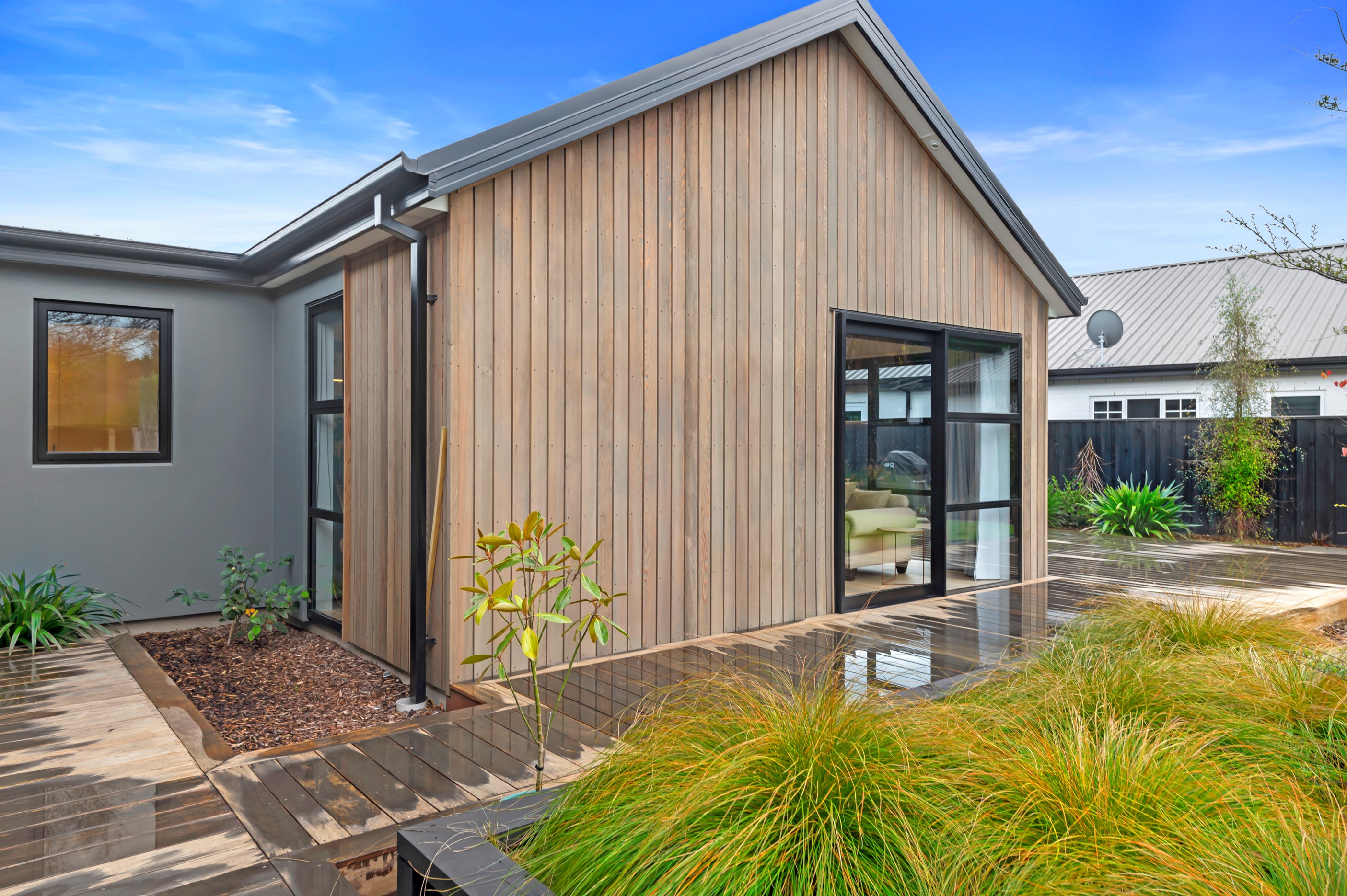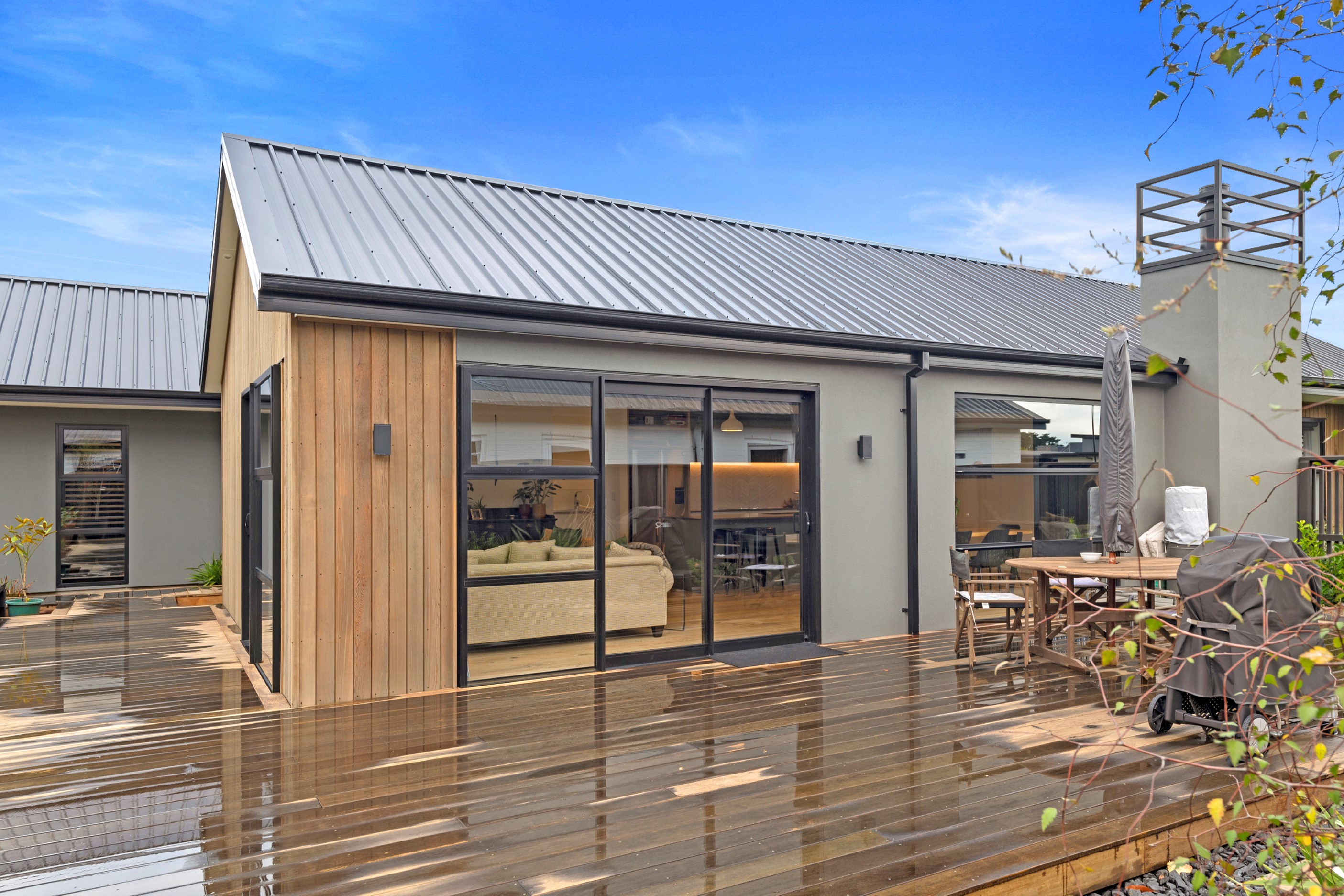 Style and entertainment are two words that define this Canterbury residence. The contemporary design of this four-bedroom home projects relaxed living at its best. Textured plaster and vertical cedar cladding connect seamlessly to hardwood decking and landscaping, all of which make for a warm welcome on arrival. Inside, the heart of this home is the kitchen, placed centre stage in the cleverly designed, open-plan, shared dining and living space. The generous island provides plenty of bench space. With Spanish stone countertops, a wine fridge, a chevron-tile splashback, walk-in pantry and bar seating, the kitchen is the star of the show. Sleek German appliances, including a dual oven, complete the cooking and entertaining hub. Living areas are enhanced by the pitched ceiling, which lends light, volume and drama to the scene. Wide-plank timber flooring connects the inside with the outdoors, where life can be lived even larger beyond the already generous 238sqm footprint. The cosy fire nook is a comfort during Canterbury cold snaps and, together with ducted heating and cooling anda water filtration system, this home is well set for a long and happy future.
