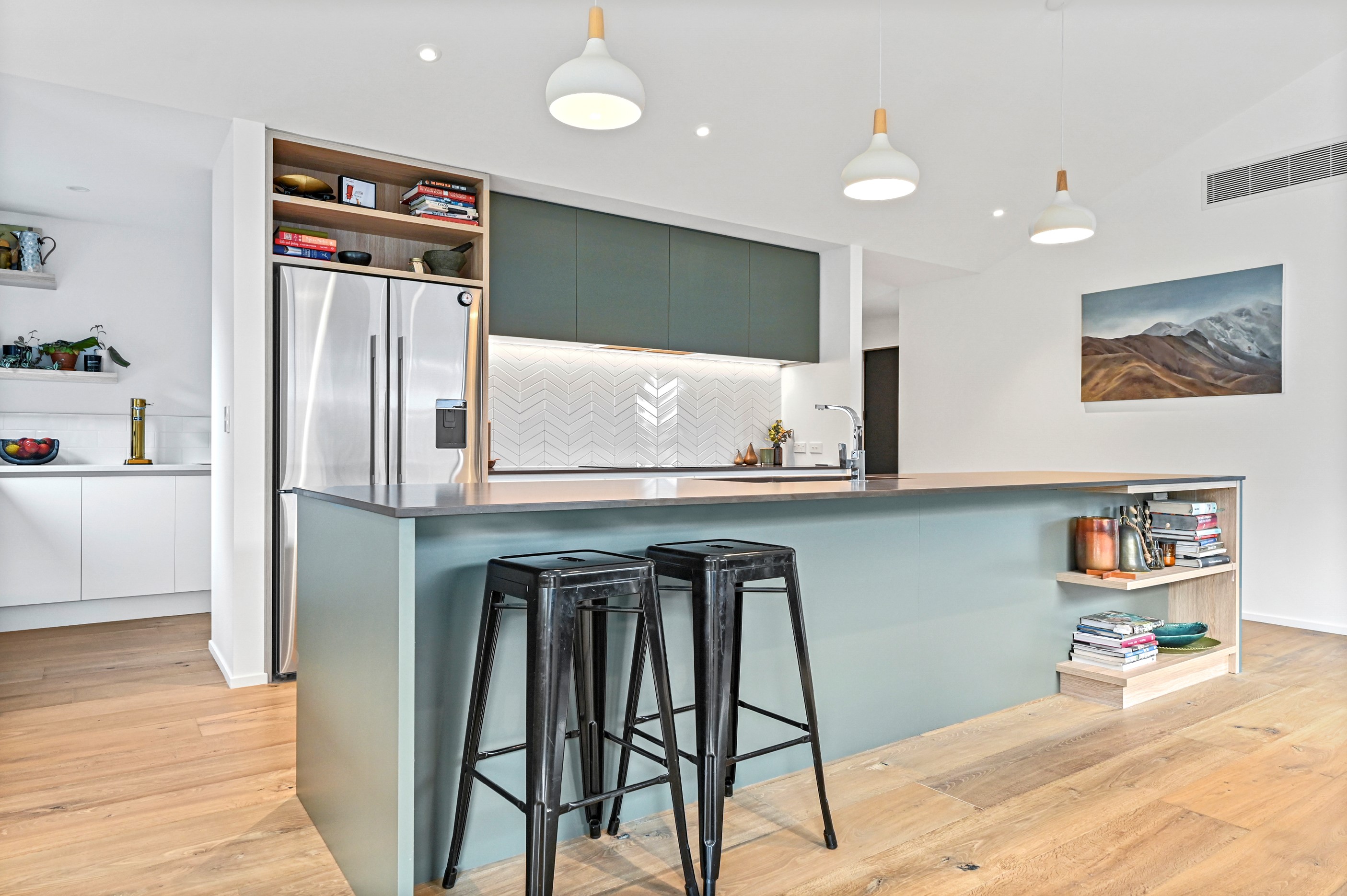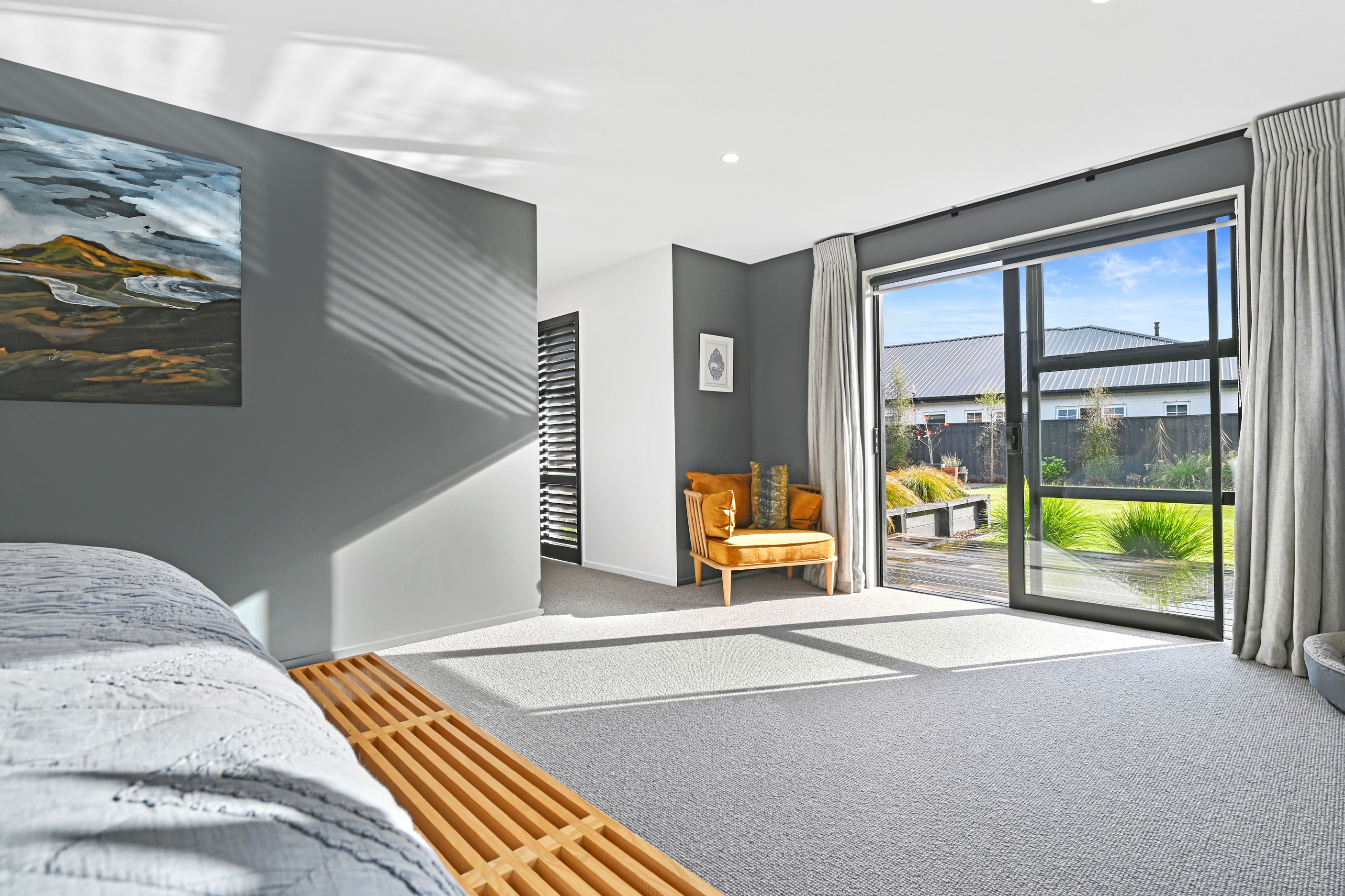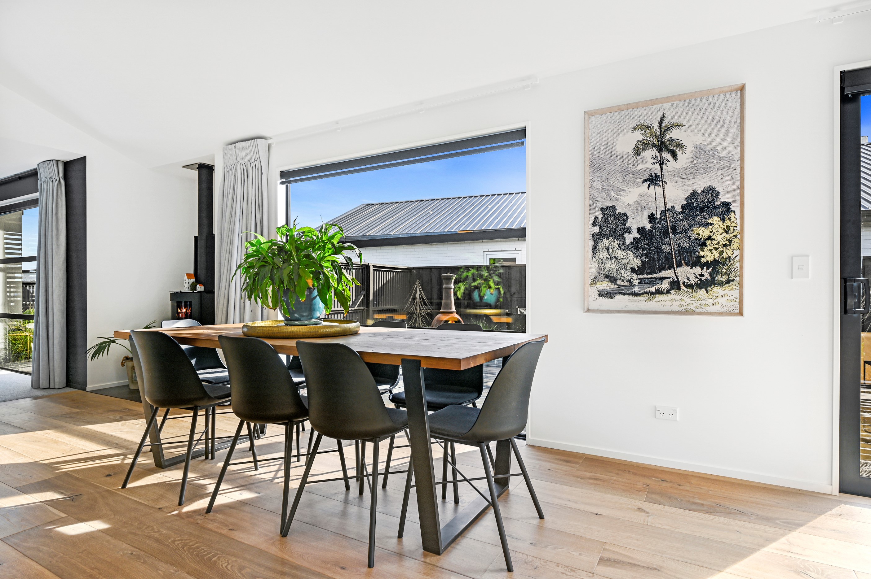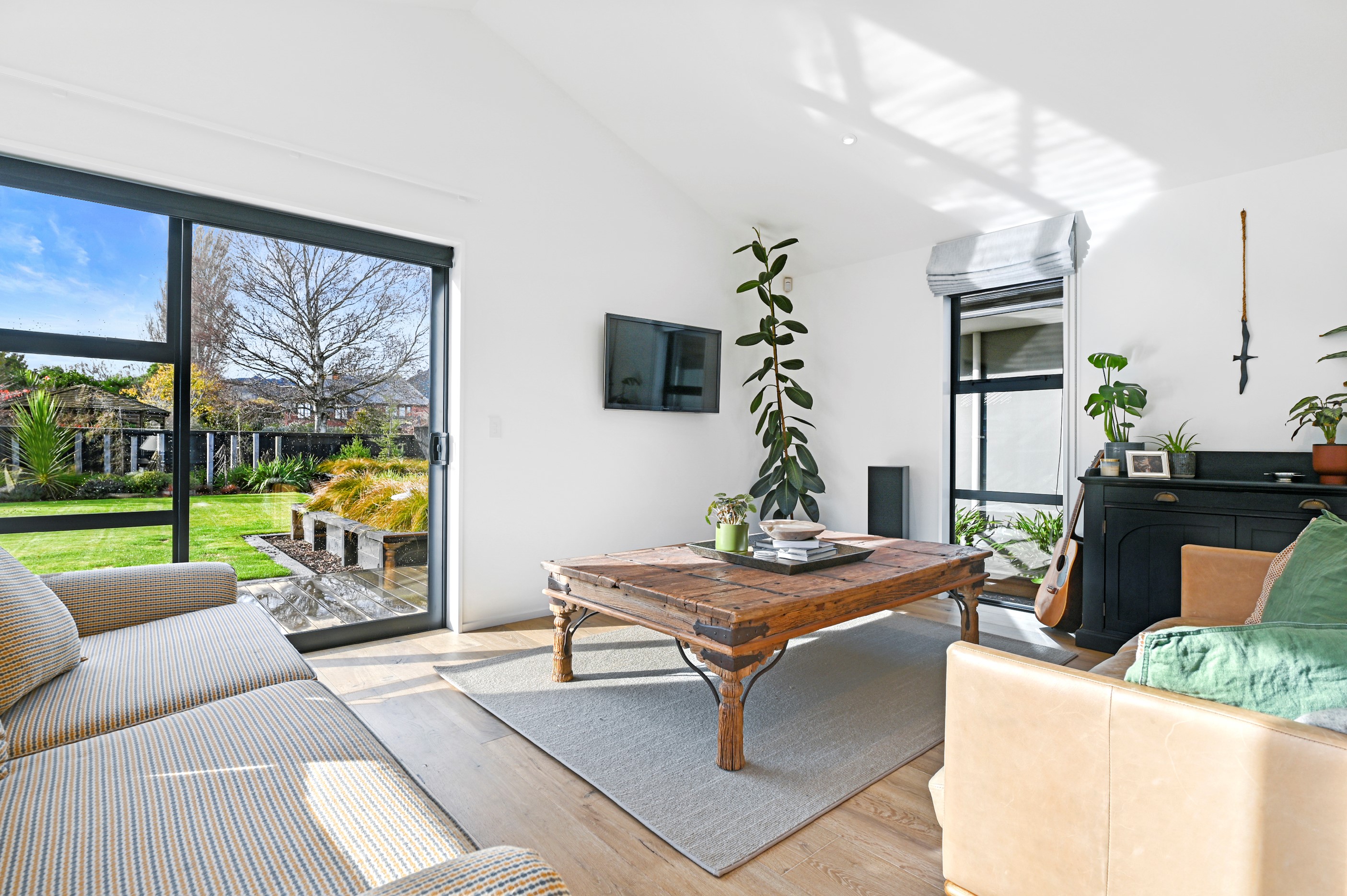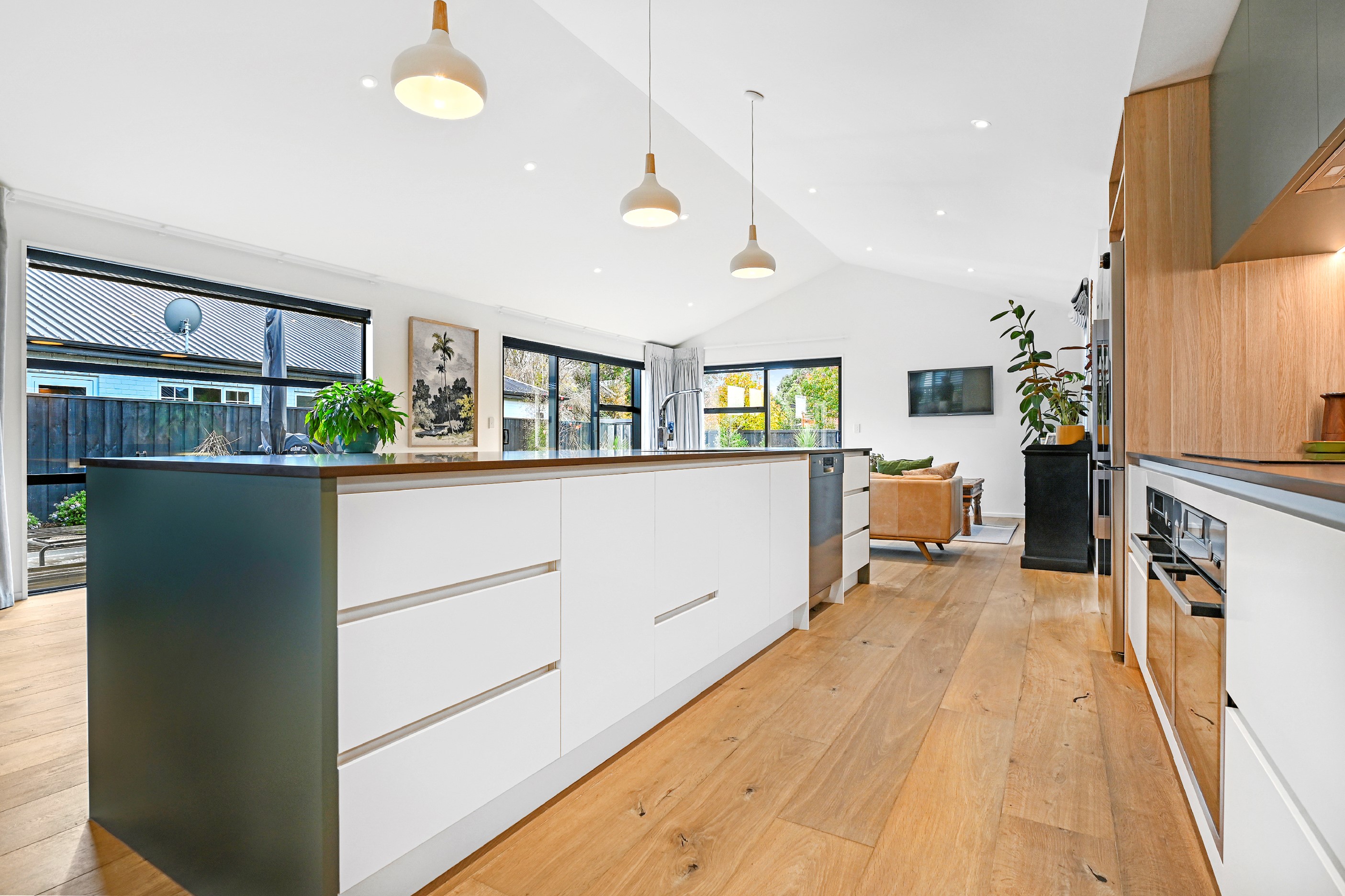 Style and entertainment are two words that define this Canterbury residence. The contemporary design of this four-bedroom home projects relaxed living at its best. Textured plaster and vertical cedar cladding connect seamlessly to hardwood decking and landscaping, all of which make for a warm welcome on arrival. Inside, the heart of this home is the kitchen, placed centre stage in the cleverly designed, open-plan, shared dining and living space. The generous island provides plenty of bench space. With Spanish stone countertops, a wine fridge, a chevron-tile splashback, walk-in pantry and bar seating, the kitchen is the star of the show. Sleek German appliances, including a dual oven, complete the cooking and entertaining hub. Living areas are enhanced by the pitched ceiling, which lends light, volume and drama to the scene. Wide-plank timber flooring connects the inside with the outdoors, where life can be lived even larger beyond the already generous 238sqm footprint. The cosy fire nook is a comfort during Canterbury cold snaps and, together with ducted heating and cooling anda water filtration system, this home is well set for a long and happy future.