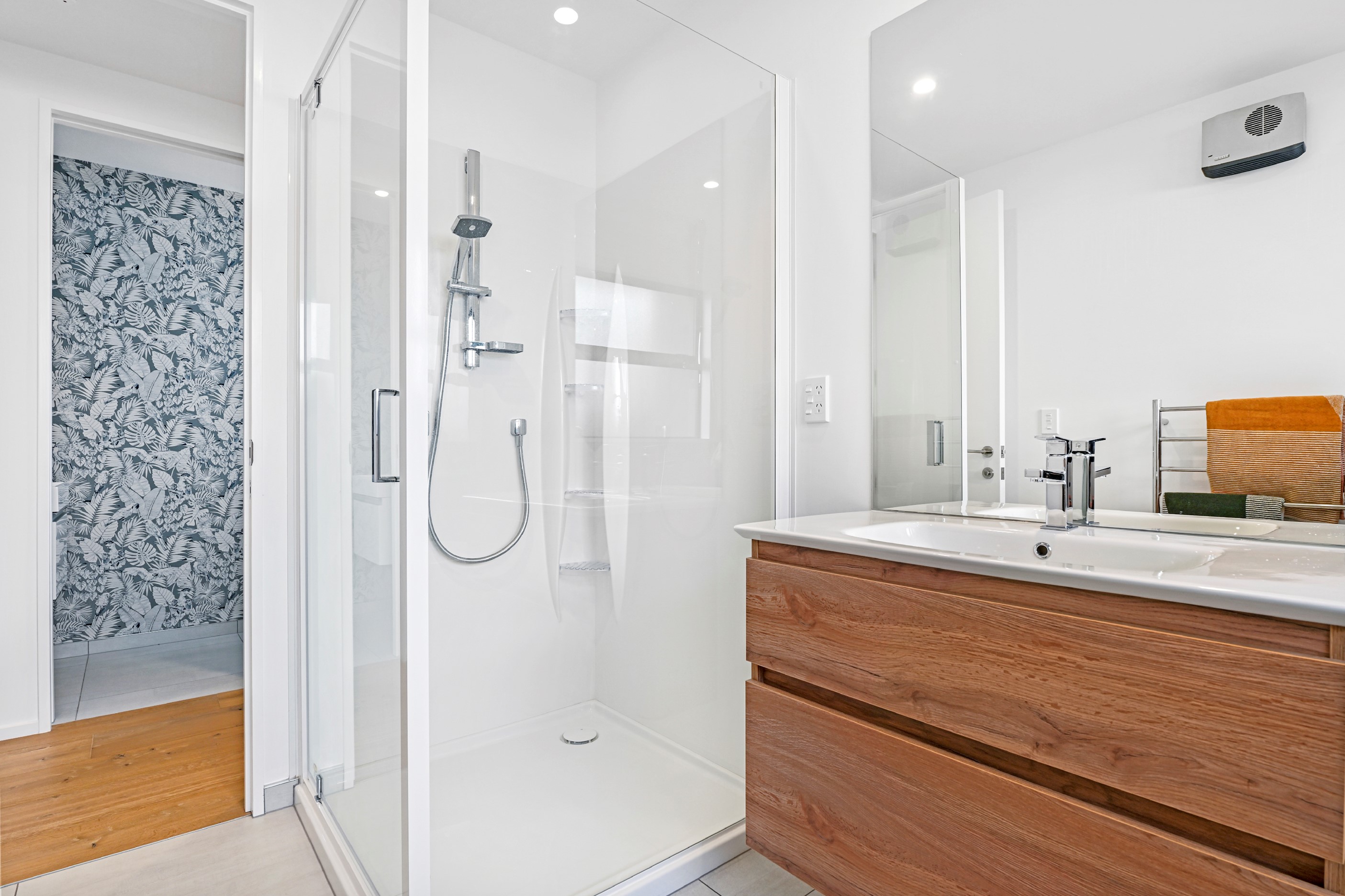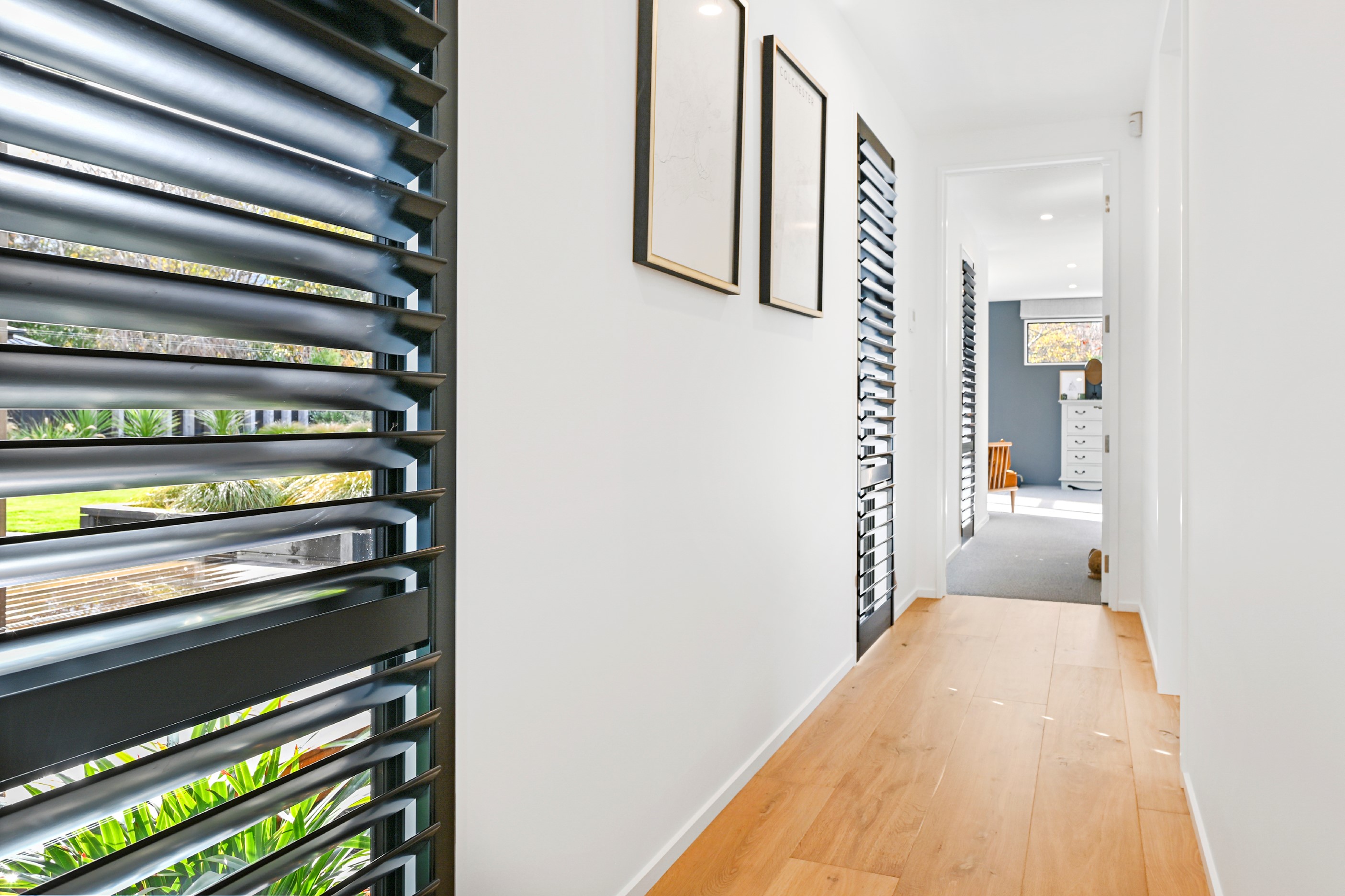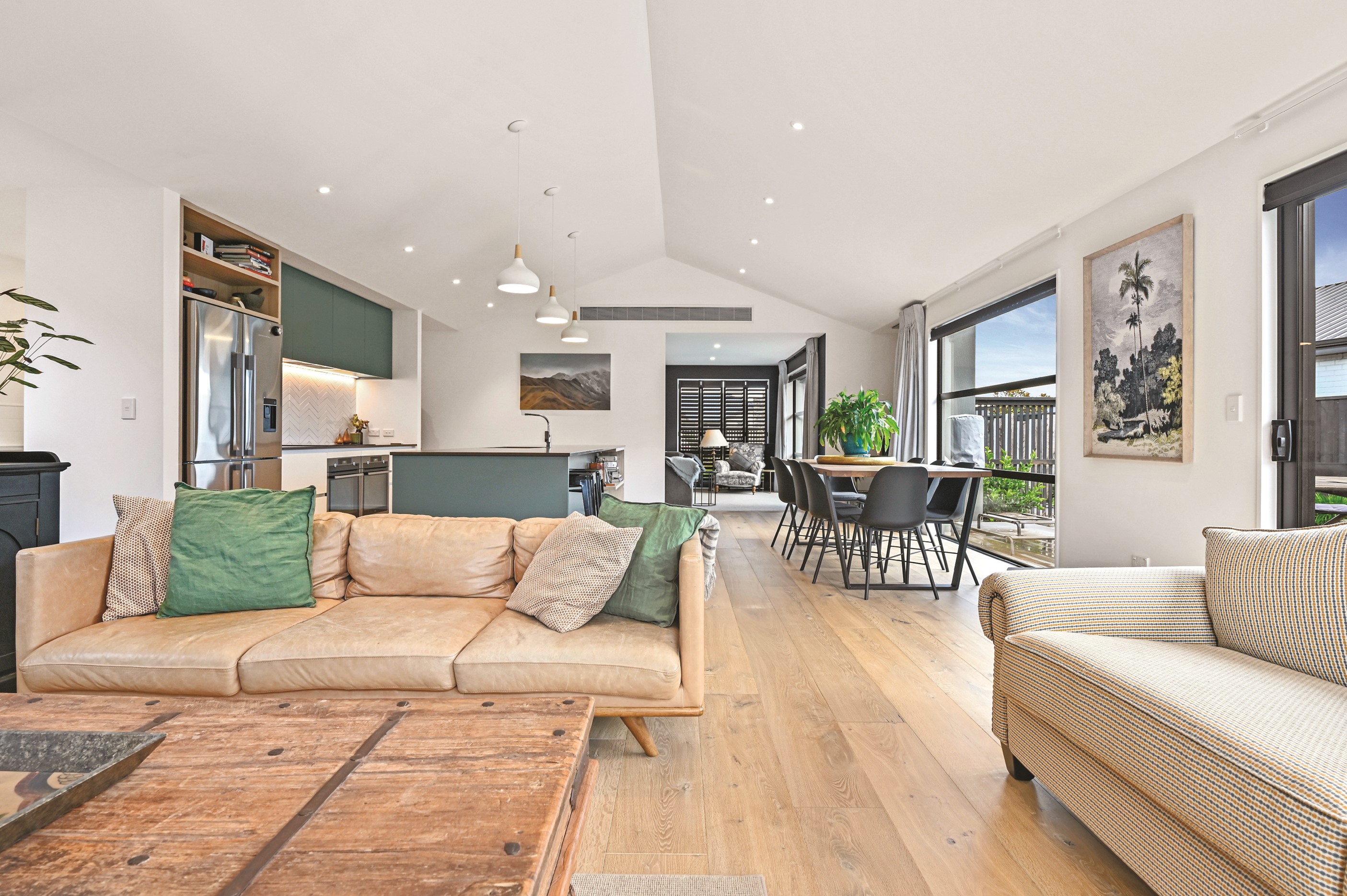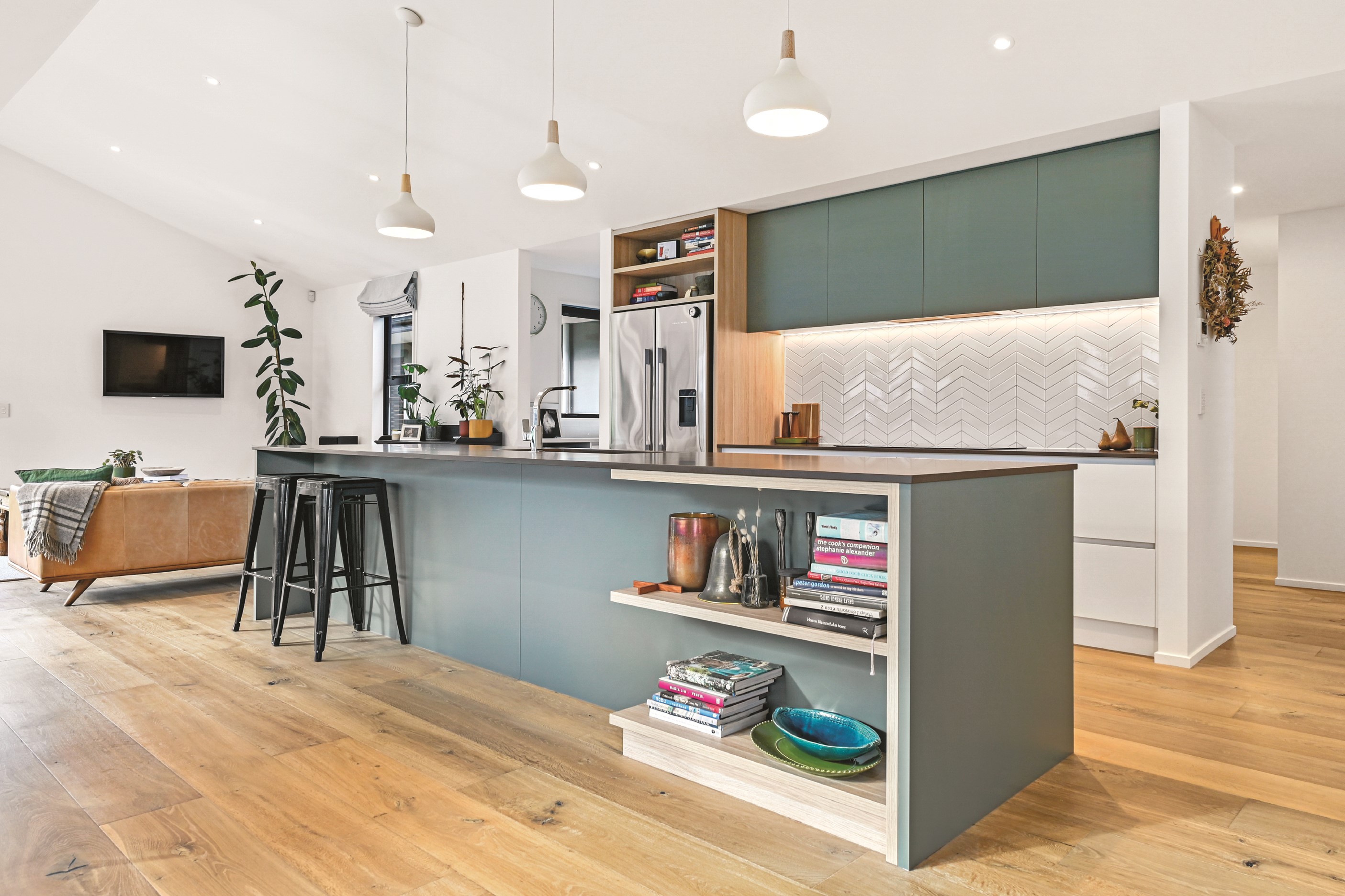 Style and entertainment are two words that define this Canterbury residence. The contemporary design of this four-bedroom home projects relaxed living at its best. Textured plaster and vertical cedar cladding connect seamlessly to hardwood decking and landscaping, all of which make for a warm welcome on arrival. Inside, the heart of this home is the kitchen, placed centre stage in the cleverly designed, open-plan, shared dining and living space. The generous island provides plenty of bench space. With Spanish stone countertops, a wine fridge, a chevron-tile splashback, walk-in pantry and bar seating, the kitchen is the star of the show. Sleek German appliances, including a dual oven, complete the cooking and entertaining hub. Living areas are enhanced by the pitched ceiling, which lends light, volume and drama to the scene. Wide-plank timber flooring connects the inside with the outdoors, where life can be lived even larger beyond the already generous 238sqm footprint. The cosy fire nook is a comfort during Canterbury cold snaps and, together with ducted heating and cooling anda water filtration system, this home is well set for a long and happy future.