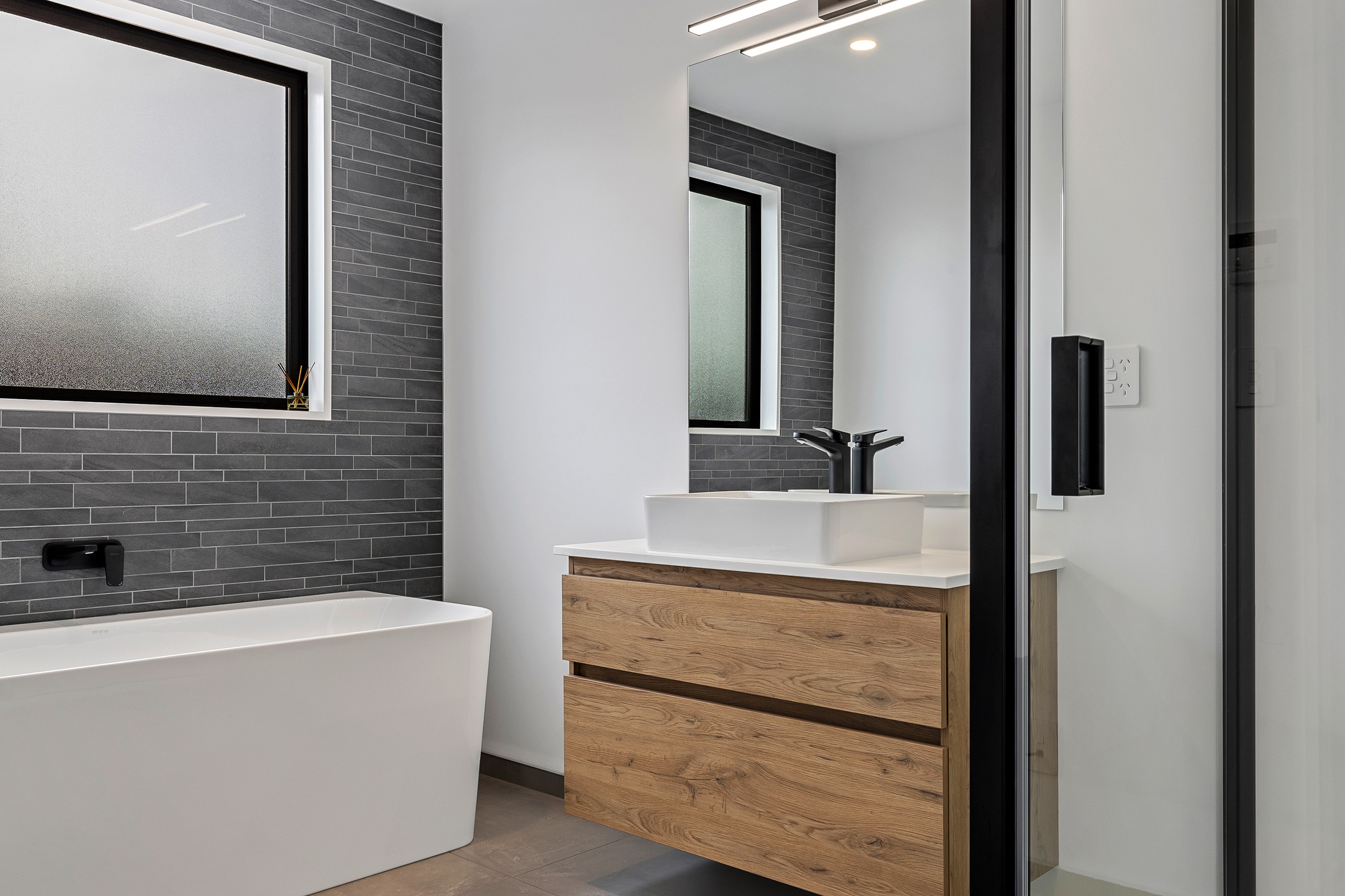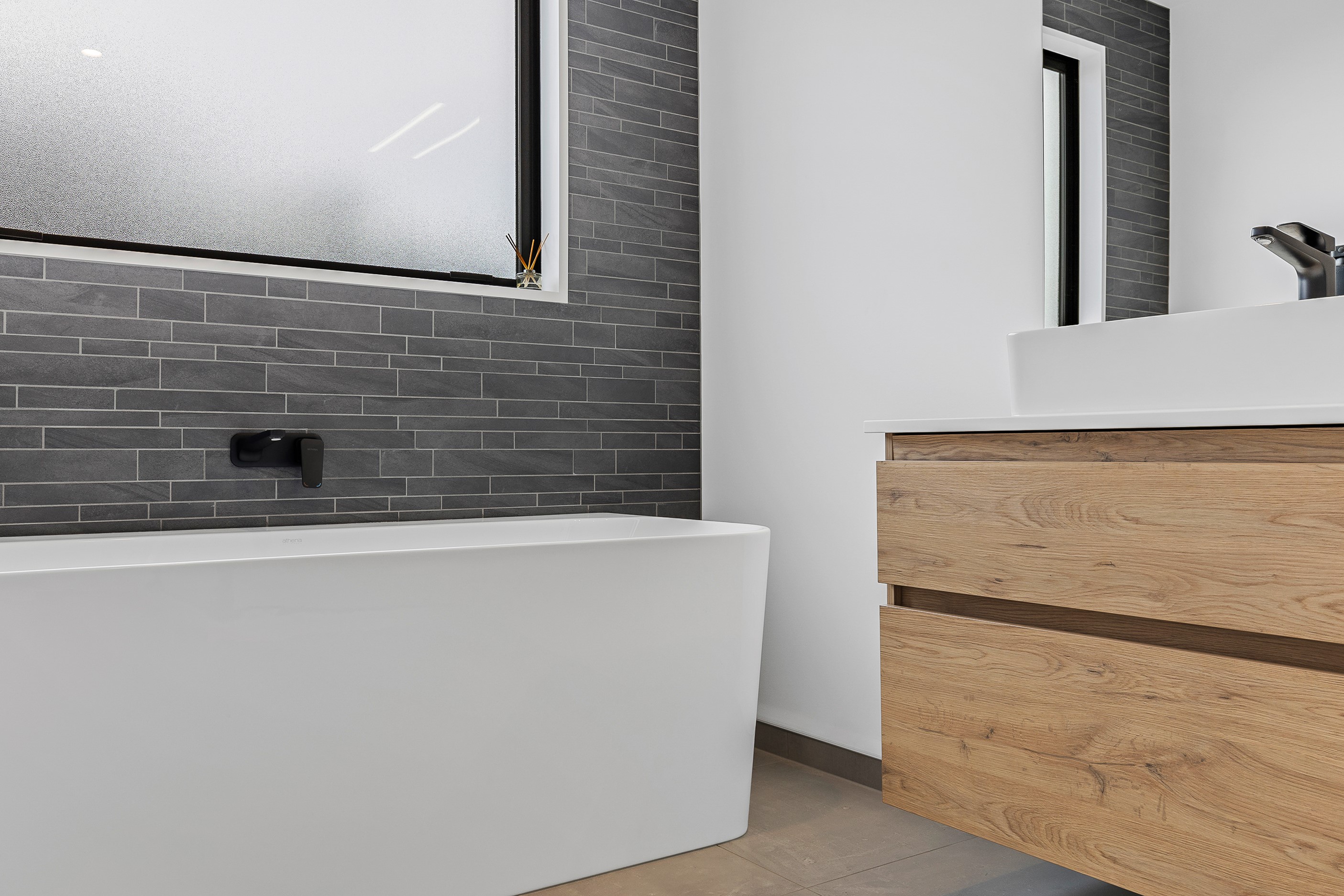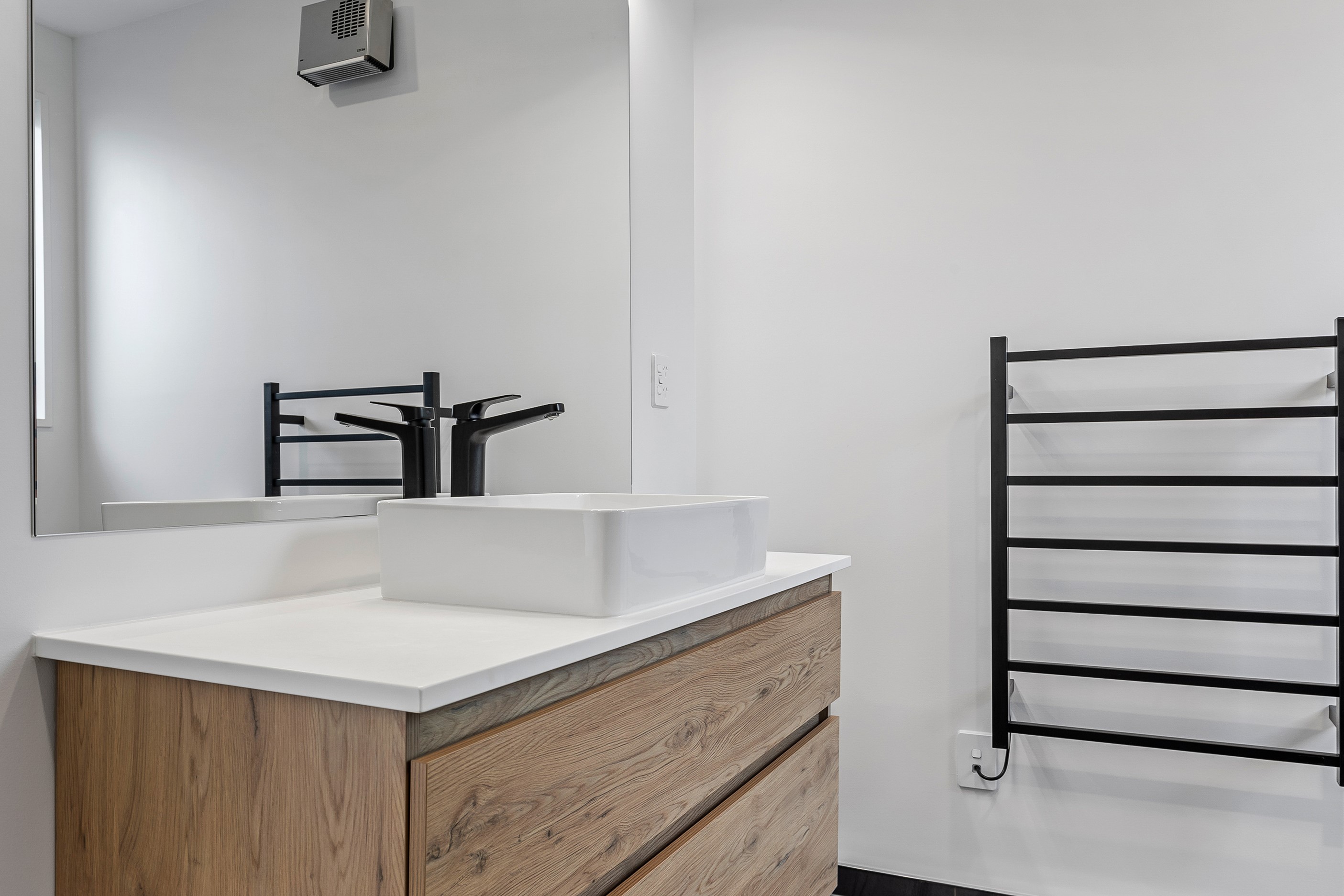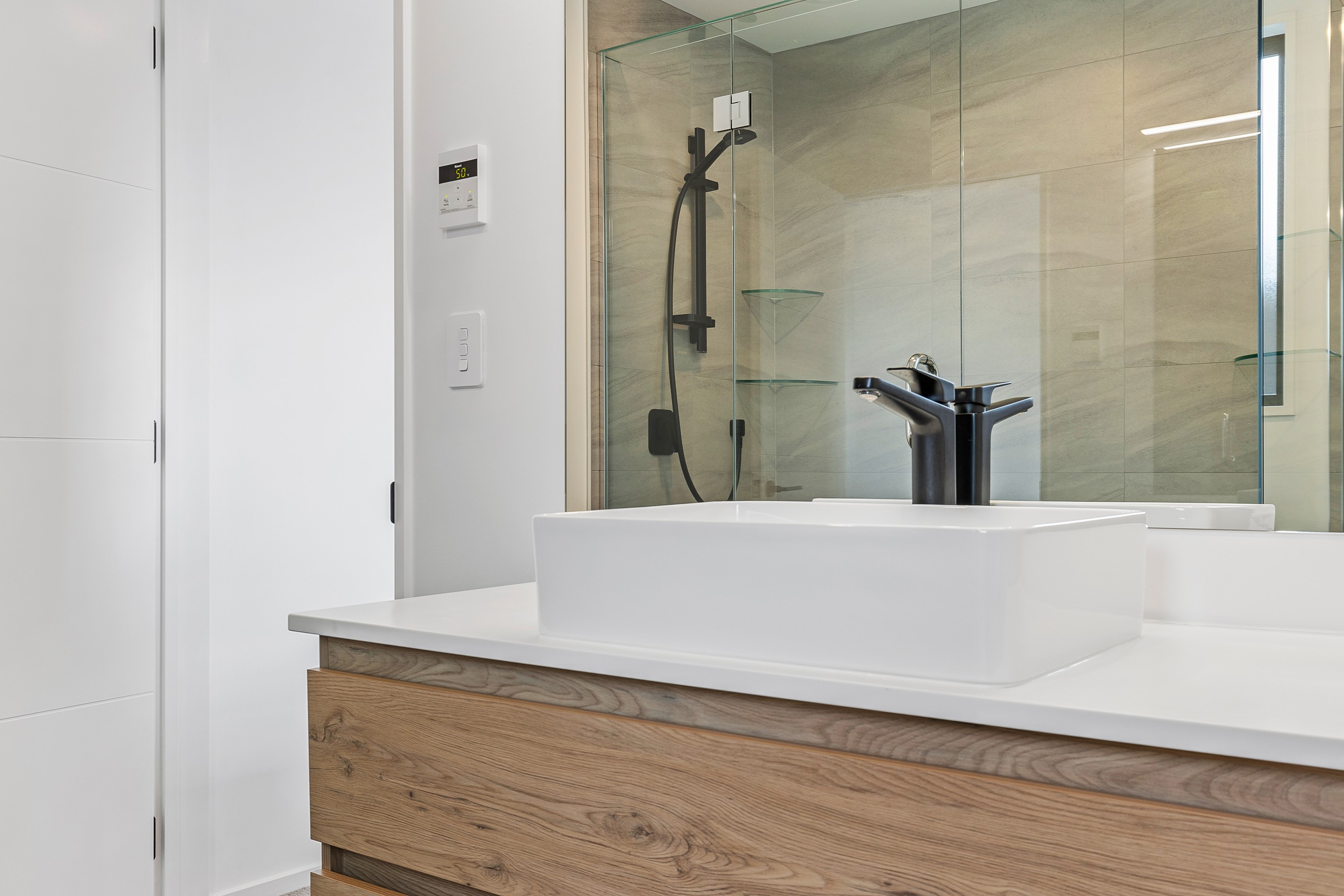 Situated in a quiet cul-de-sac, this 265sqm home is all about family. Built in a modern pavilion style, the light-filled living areas and designer kitchen feature warm hardwood flooring and honed concrete benchtops. It’s all beautiful, but also robust enough for family living. At the heart of the home, the central pavilion features a louvred shade system for year-round, sheltered dining. This area overlooks a sprawling lawn and an in-ground swimming pool. A colour palette of restful greys and whites are contrasted with bold feature walls, and the main bedroom suite includes a fully tiled ensuite, walk-in wardrobe, and large windows that look over attractive landscaping. You’ll find pitched ceilings, an internal block wall connected to the exterior to create visual cohesion, and reflective glazing on the front for privacy and warmth. Add in a handsome exterior in a white plaster cladding system with horizontal cedar accents, including the chimney casing, and you have quite the package. In terms of comforts and future-proofing, the four-bedroom two-bathroom home has a designer log burner, ducted heating, self-cleaning ovens and gas hot water. This home is truly a modern oasis for a growing family.