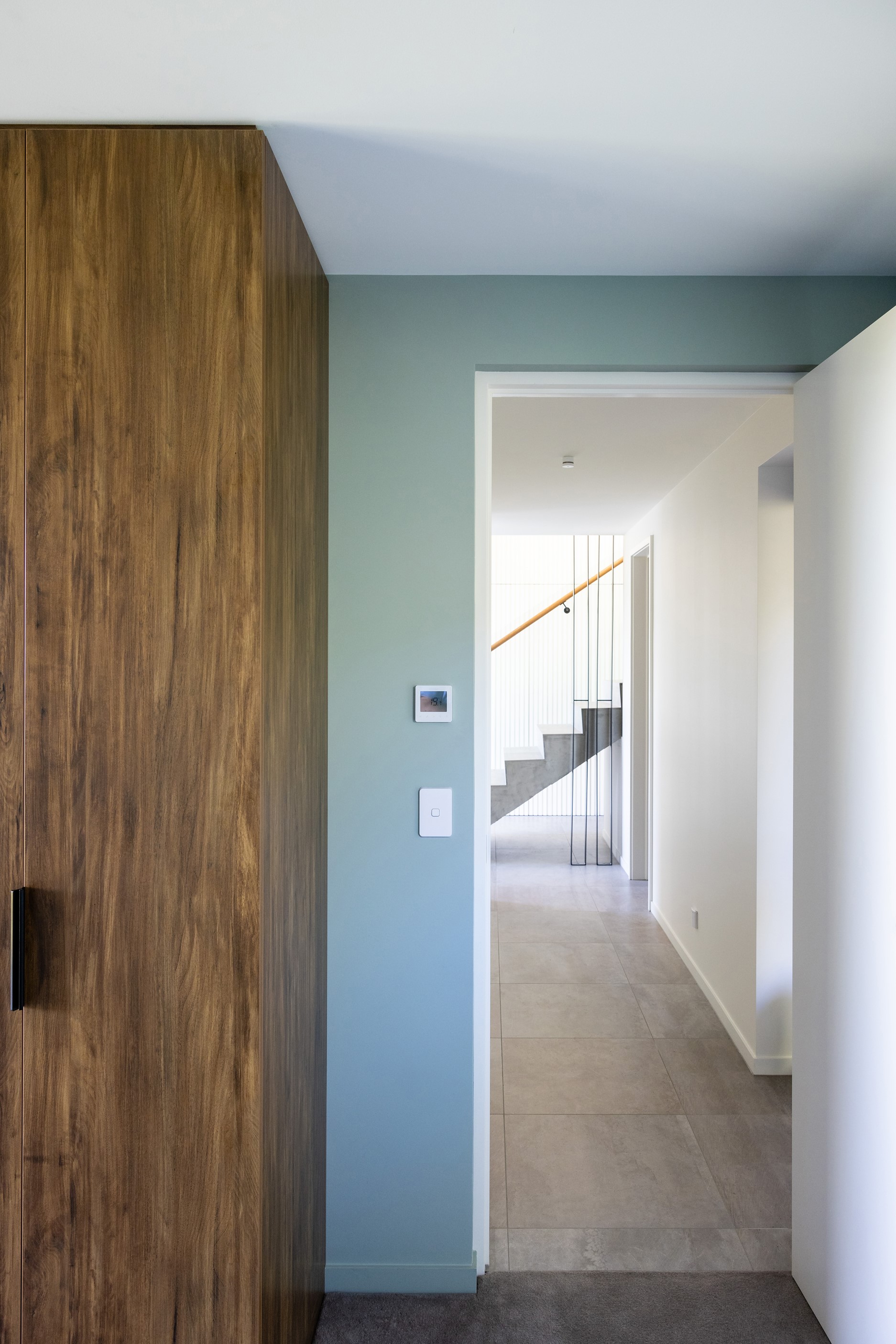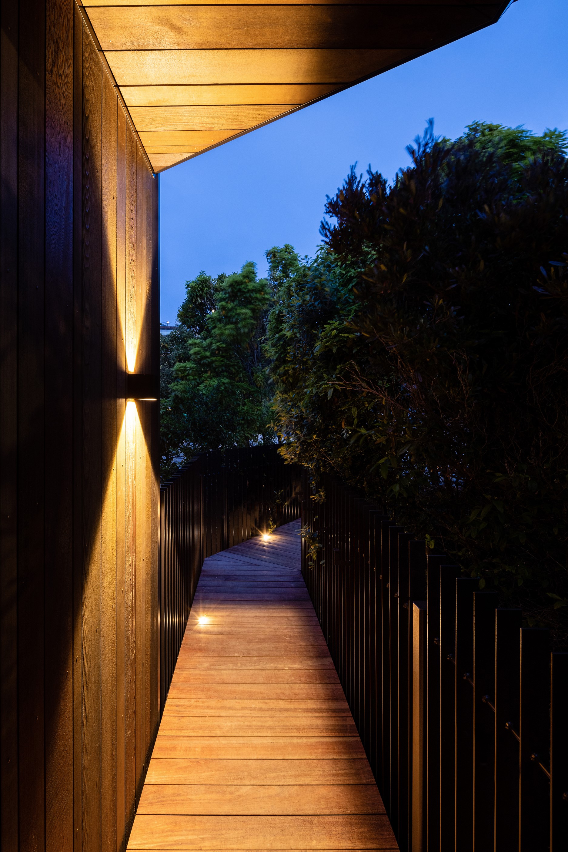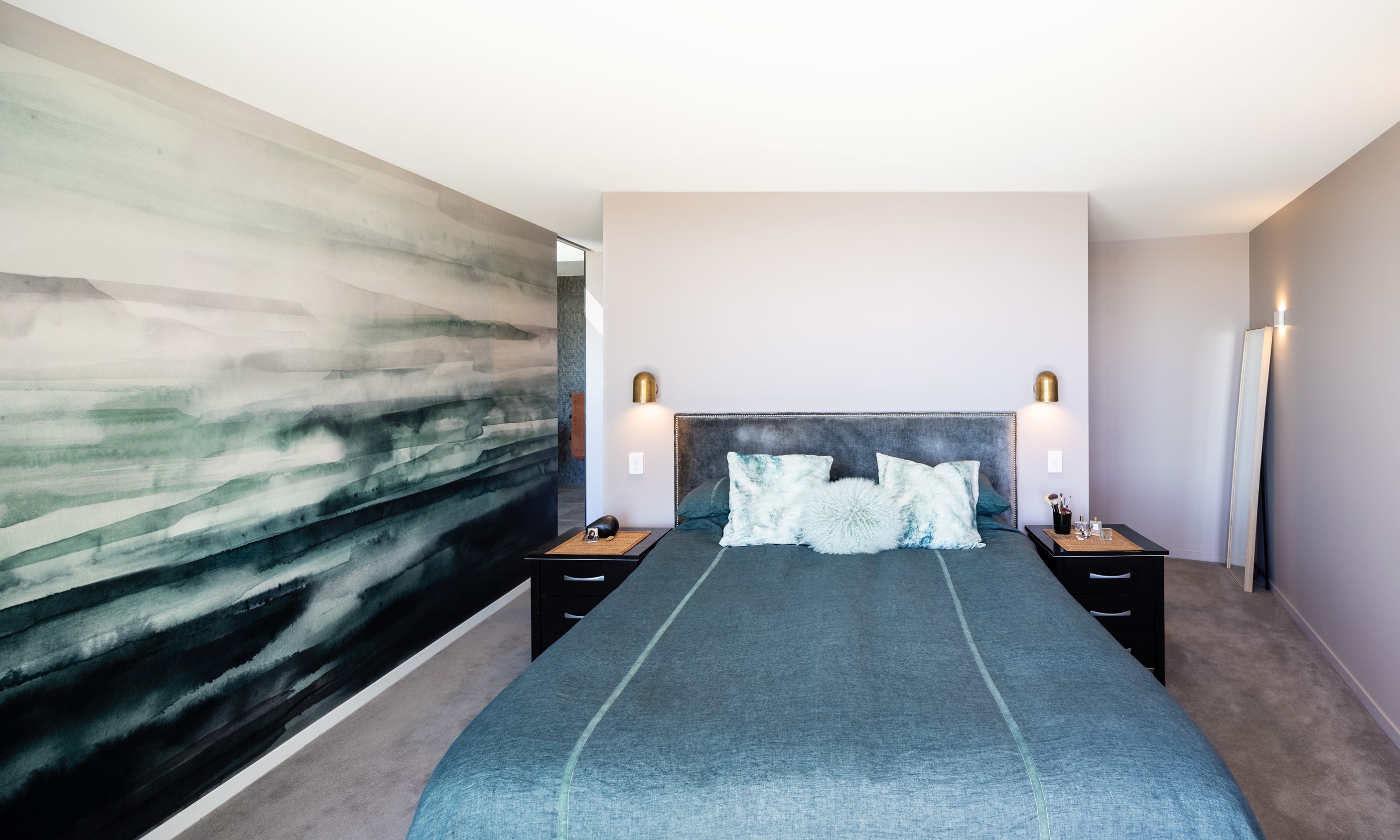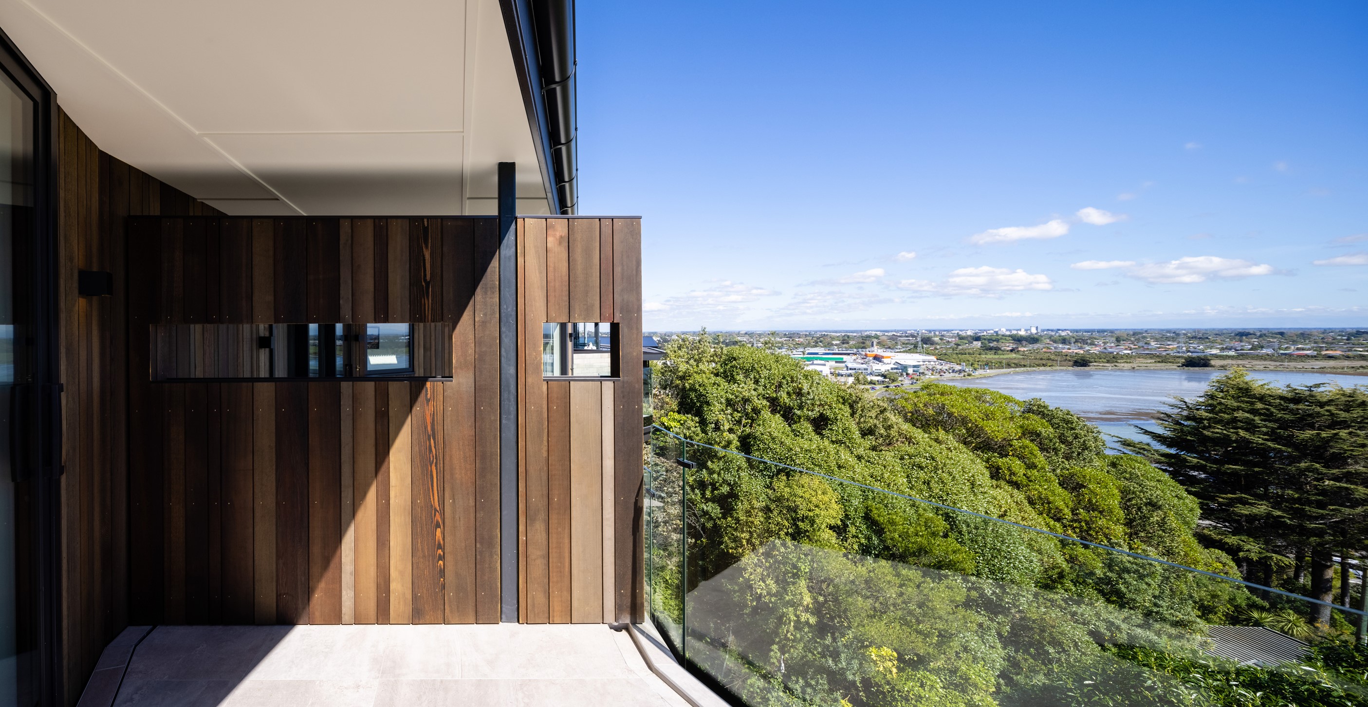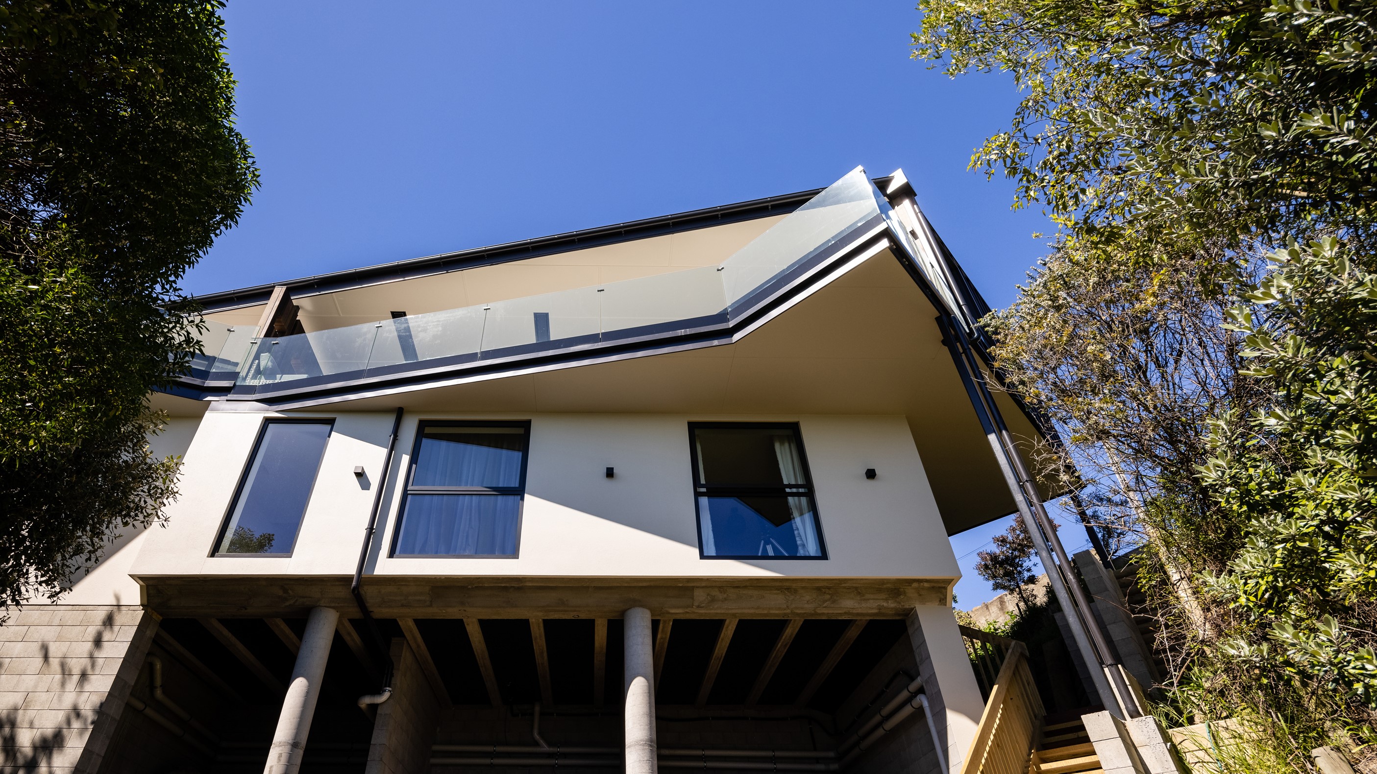 What do you do when you have a section in an awkward shape on a steep slope in an earthquake zone? If you’re this builder, you take all those challenges in your stride and emerge with this masterpiece. Designed by Max Capocaccia from MC Architecture Studio, the home intelligently exploits all available space. Most importantly, it honours the stunning views across the estuary and to the mountains in the distance. Unassuming and private from the street, the entrance is reached by a bridge, winding through native bush and trees. Once inside, however, this magnificent ode to craft opens up, with panels of glass drinking in sunlight and revealing that dazzling view. The living area, dining, kitchen, scullery, main bedroom and ensuite fill the upper floor. A balcony with a generous soffit extends the main living area to the deck. The level below features a guest bedroom and bathroom, plus a third bedroom that doubles as a home office. Refined in its expression, this is a glamorous home. Above the main living area, a vaulted cedar-batten ceiling converging in a skylight is a triumph. With shiplap timber ceilings, a luminous stairwell and bespoke built-in joinery, there are artisan delights at every turn.